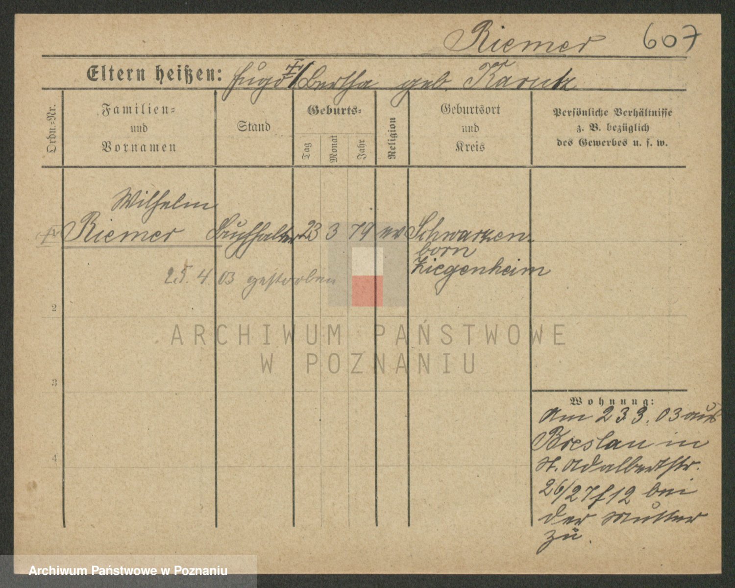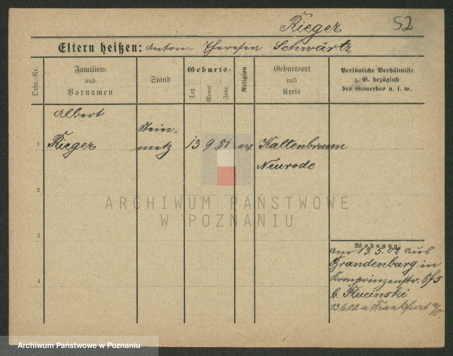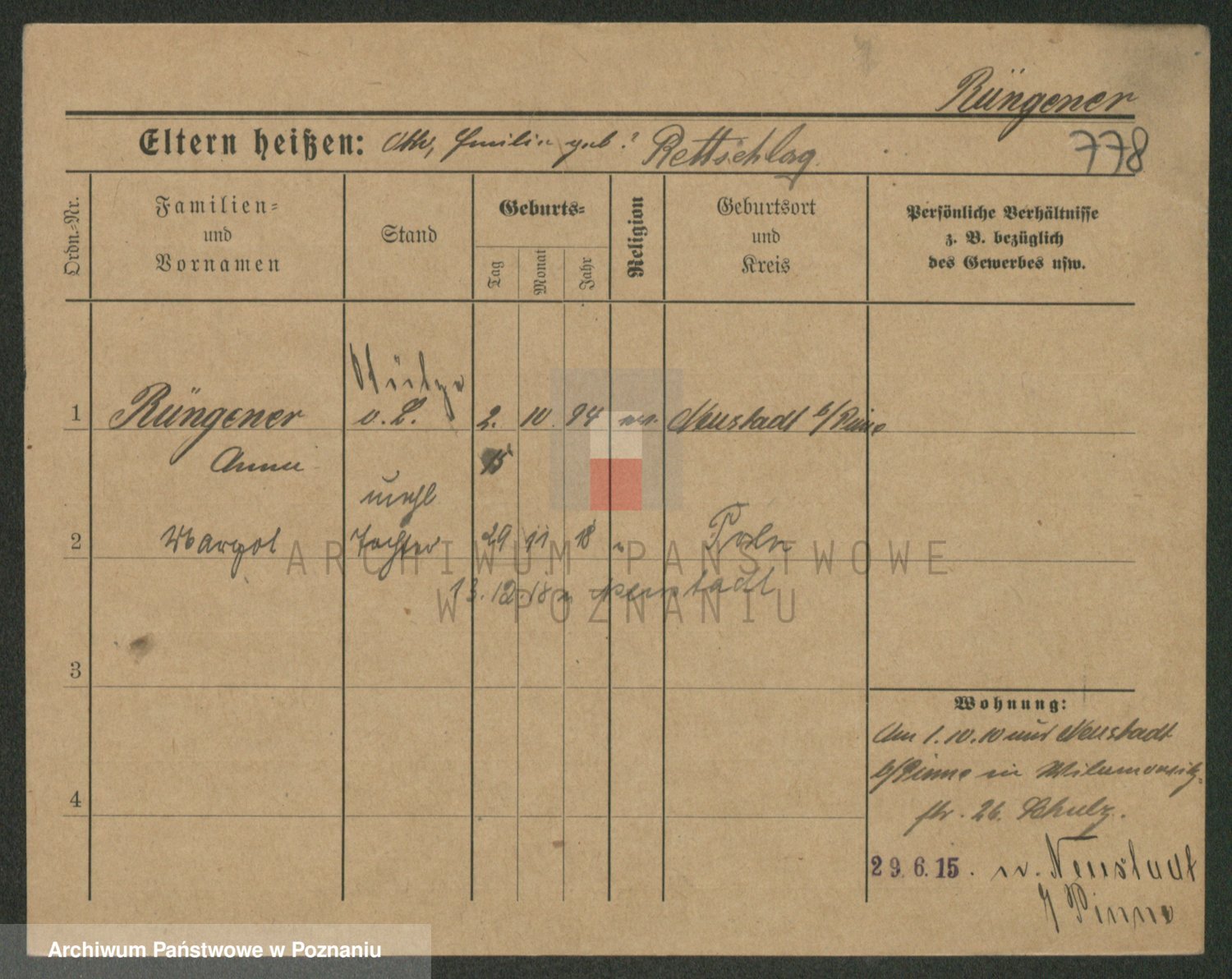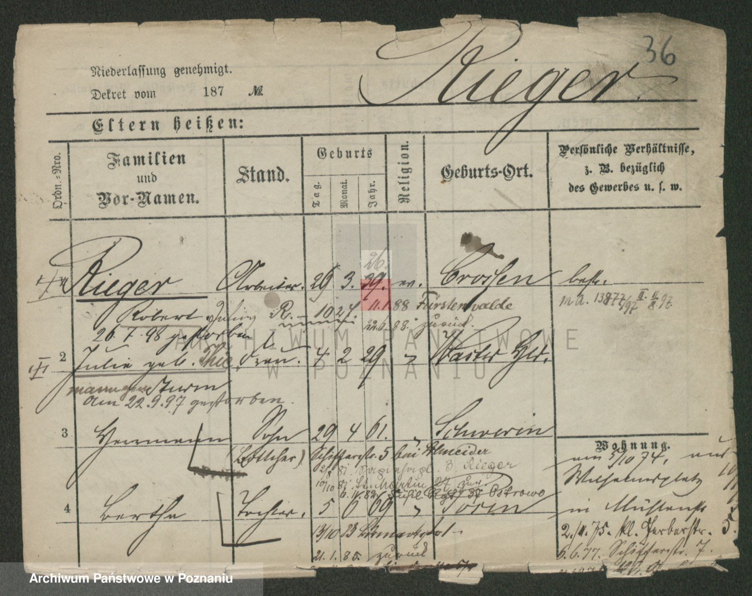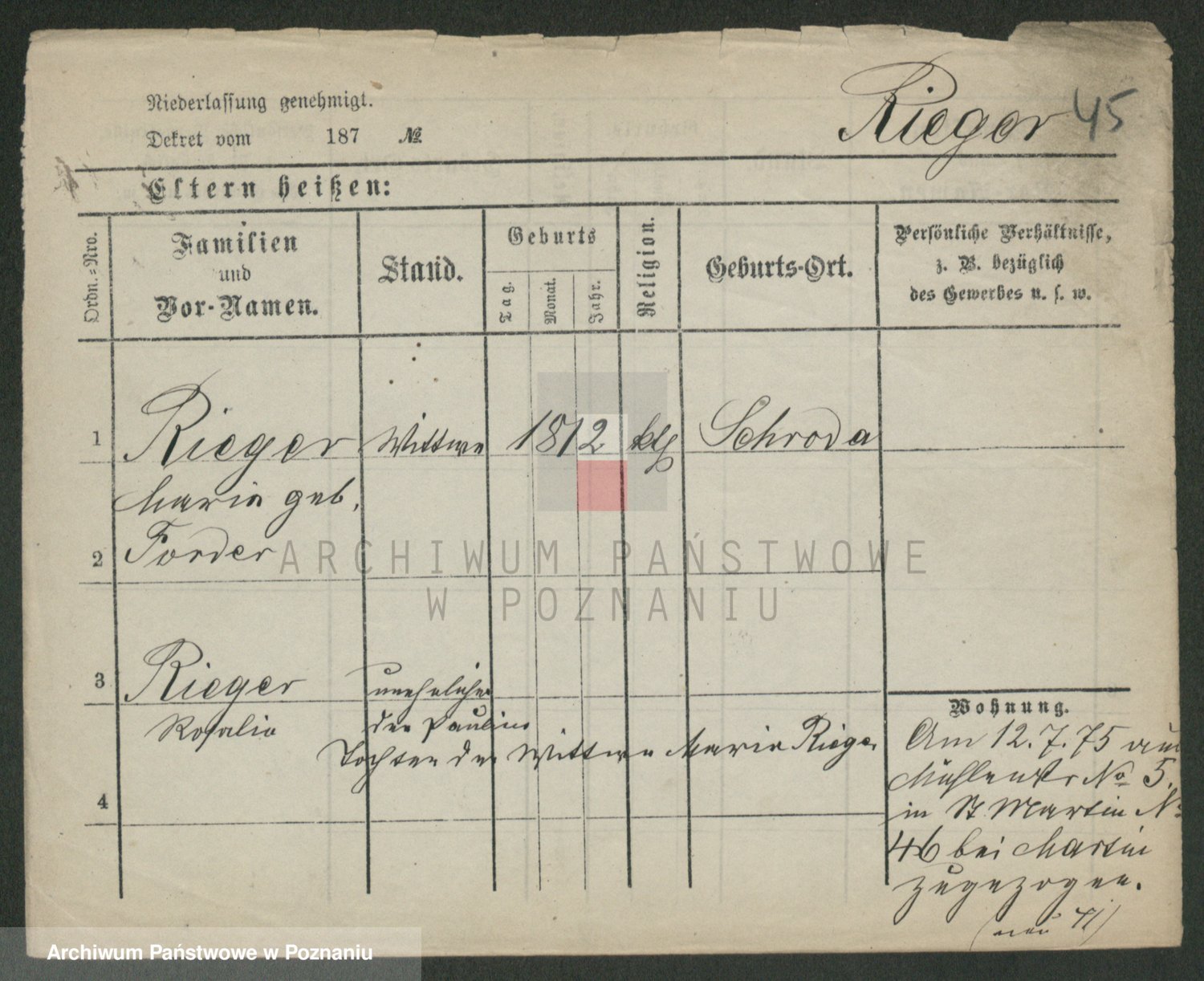 Rieger zd. Schuster, Marie