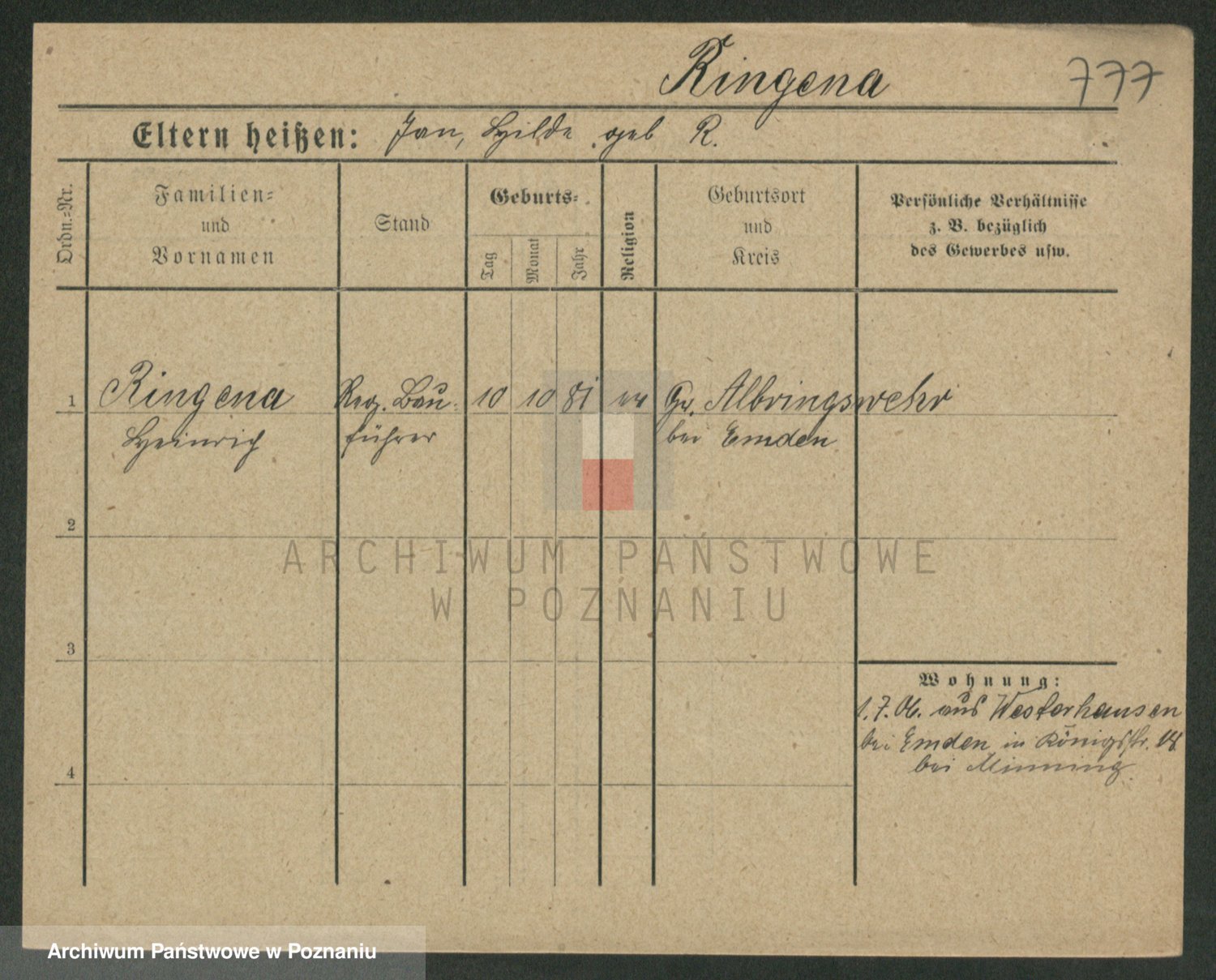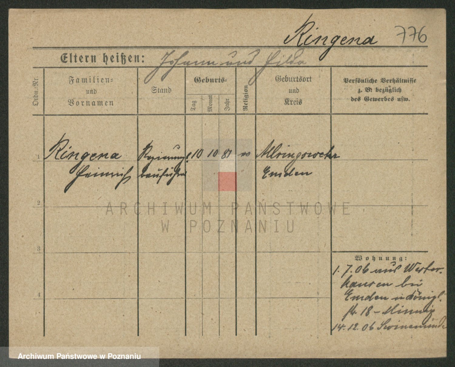 Ring zd. Wischke, Marie