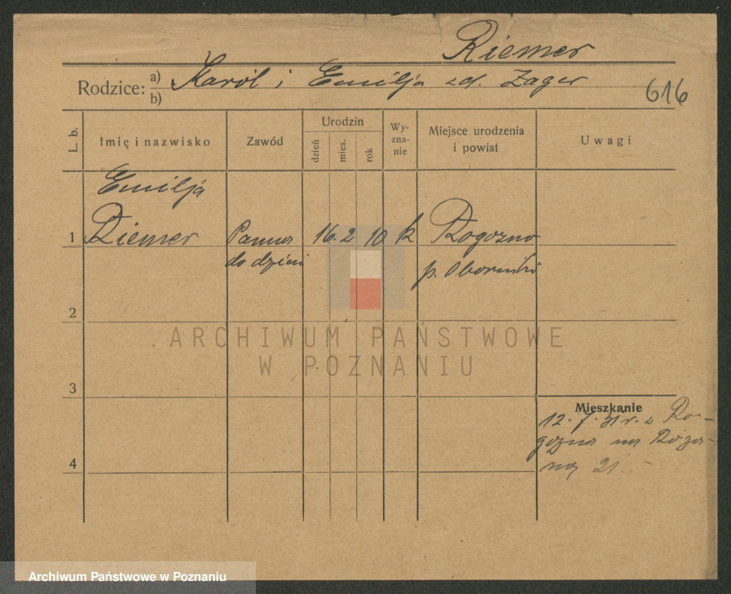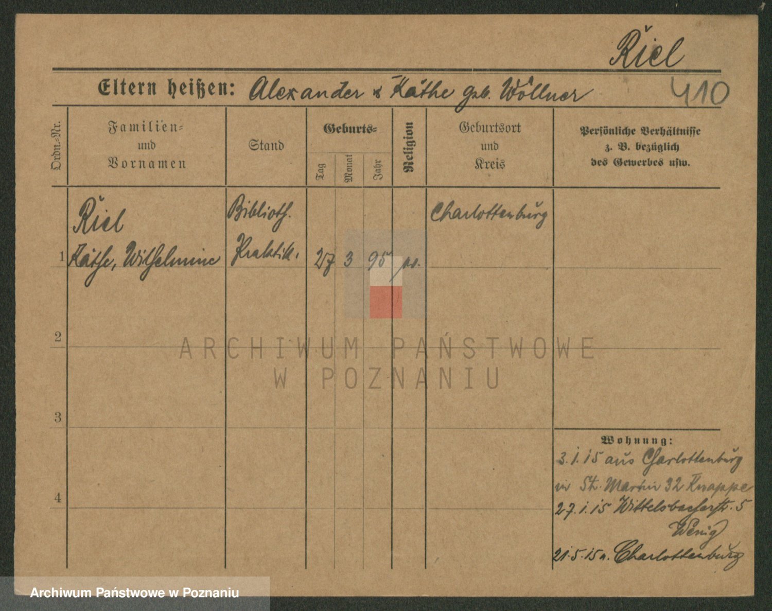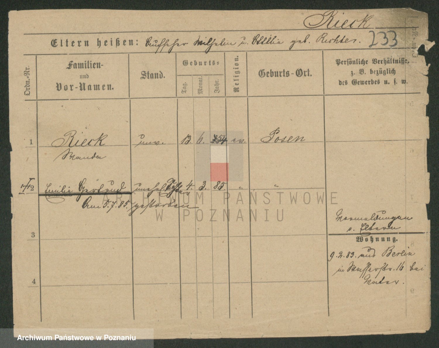 Rieger zd. Nickel, Emma Wilhelmine