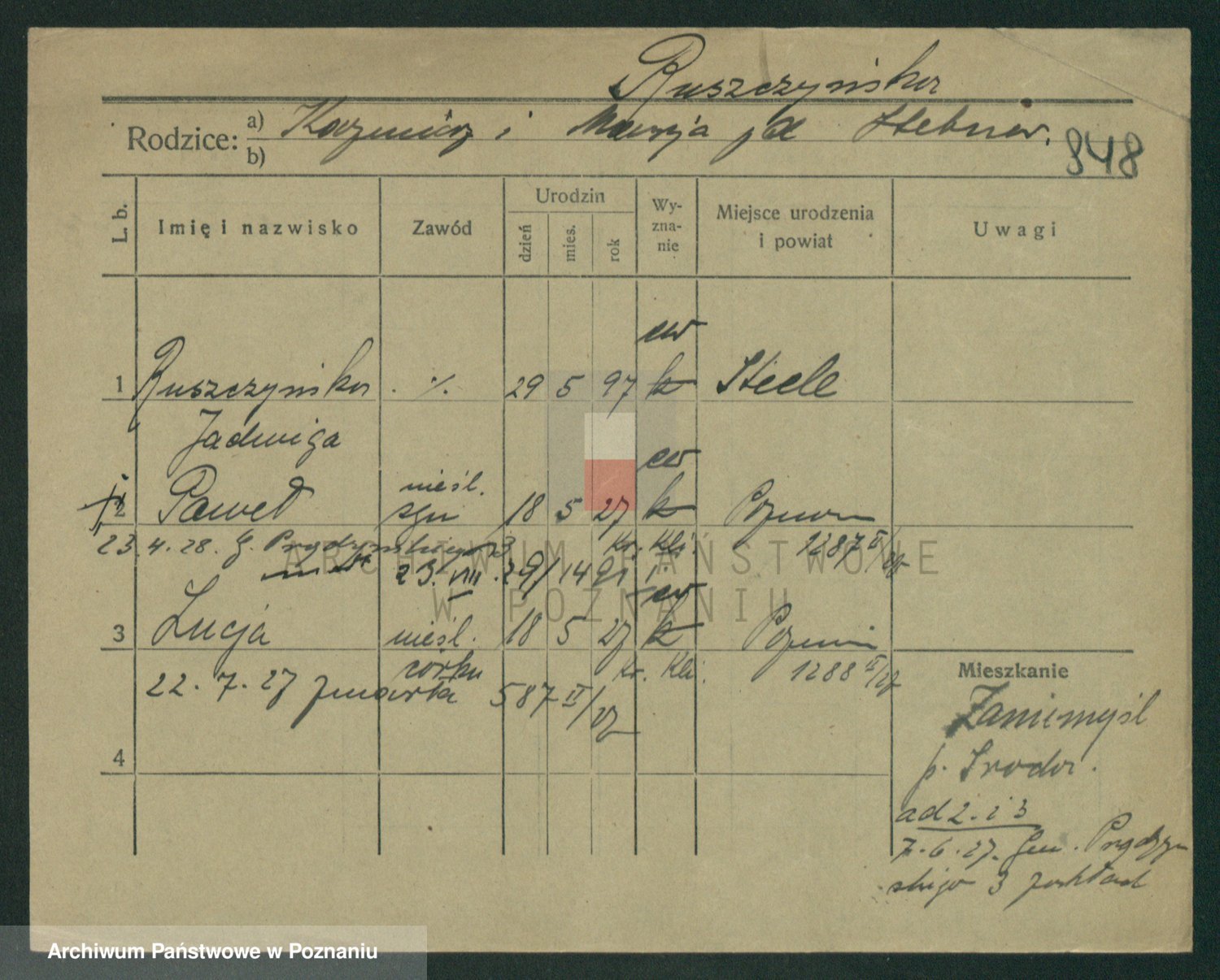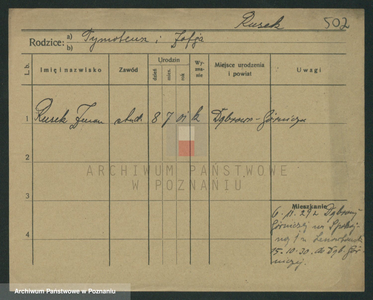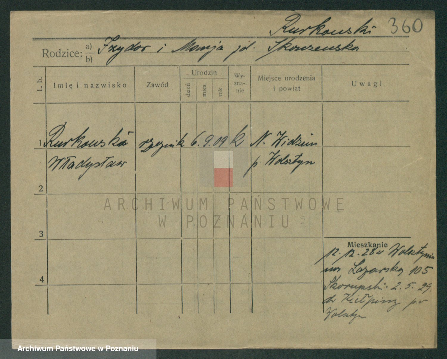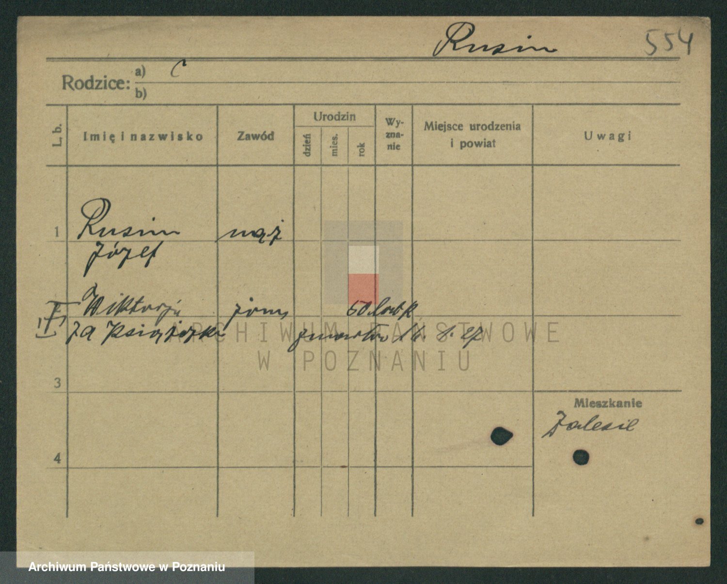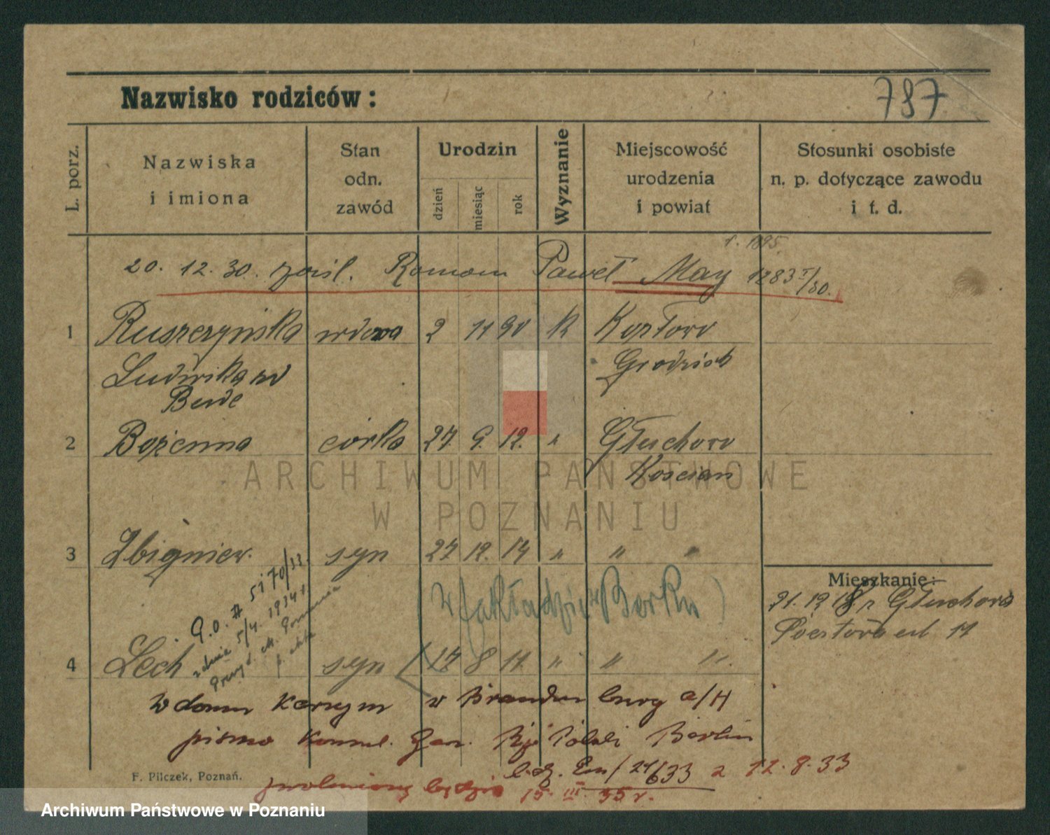Podgląd karty osobowej dostępny jest po kliknięciu na nazwisko lub ikonkę karty. Można dokonywać powiększenia (ikony na górze) lub przechodzić między kolejnymi skanami (strzałki po bokach).