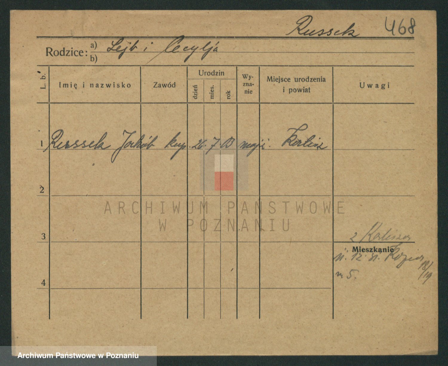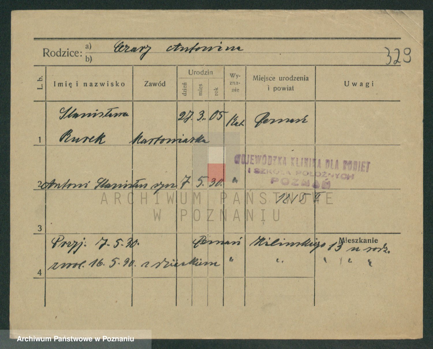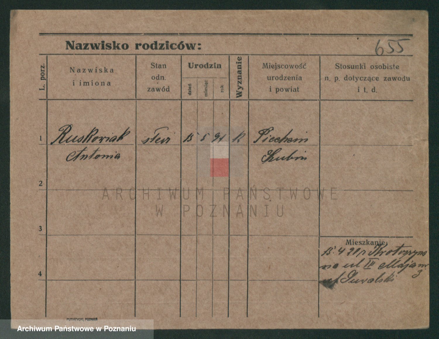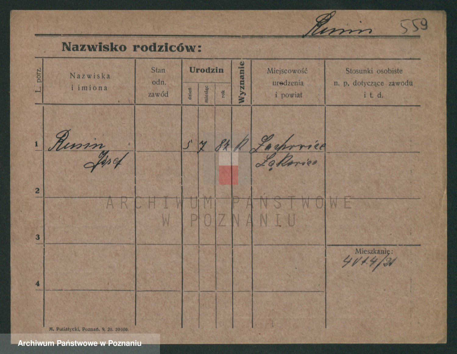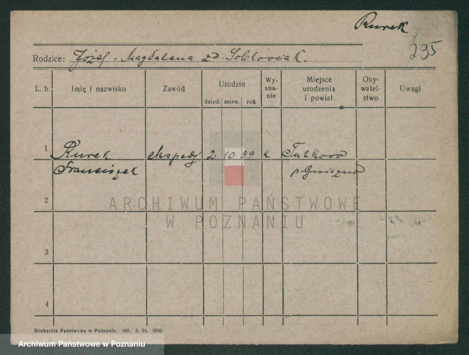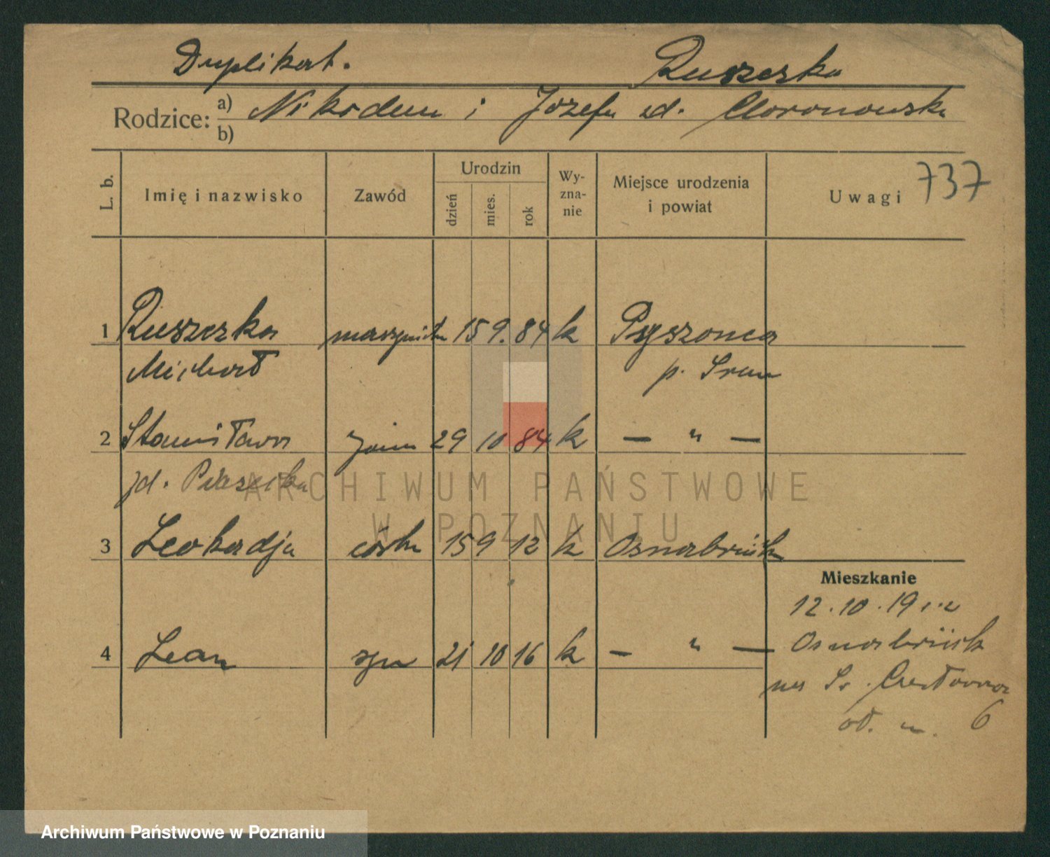 Podgląd karty osobowej dostępny jest po kliknięciu na nazwisko lub ikonkę karty. Można dokonywać powiększenia (ikony na górze) lub przechodzić między kolejnymi skanami (strzałki po bokach).