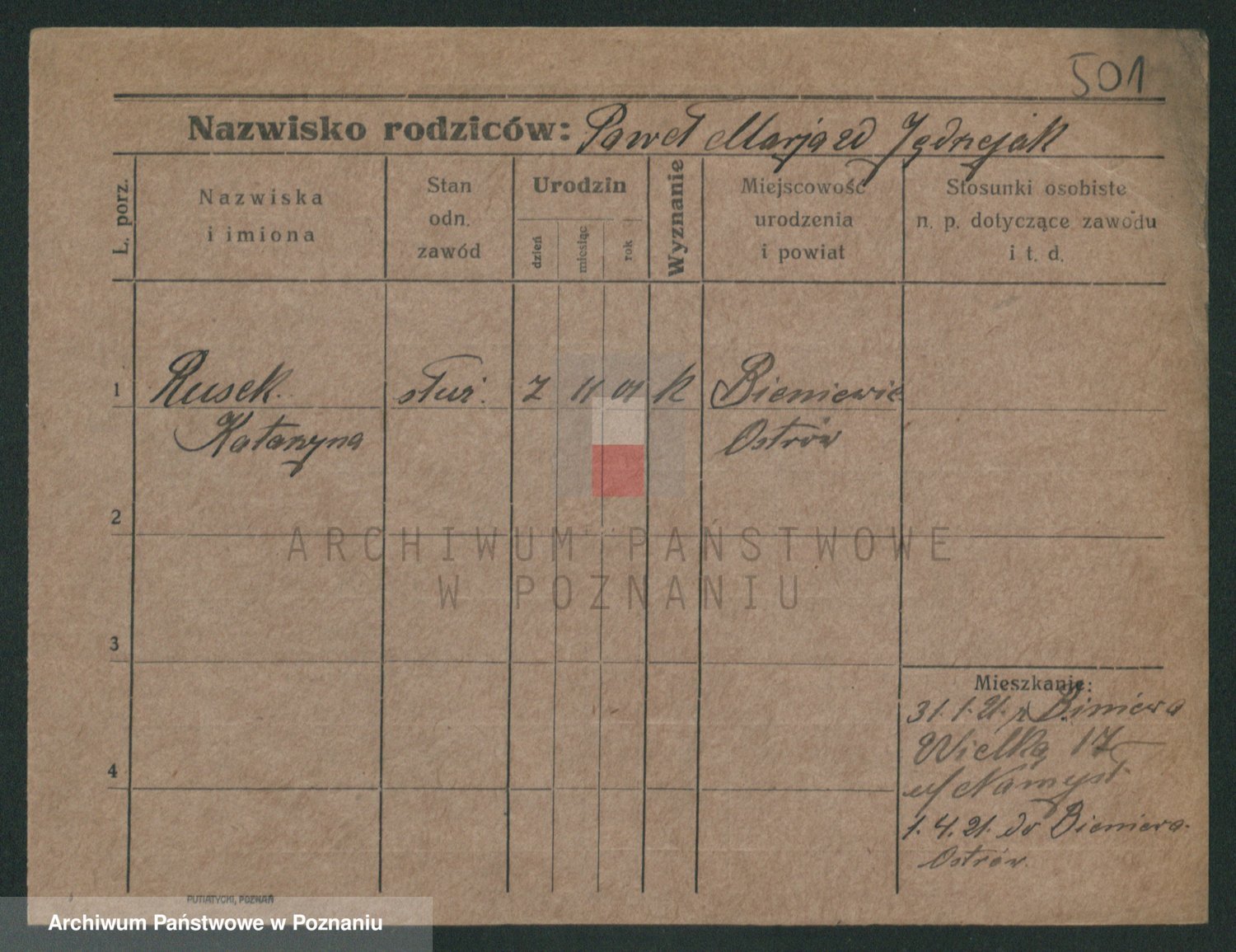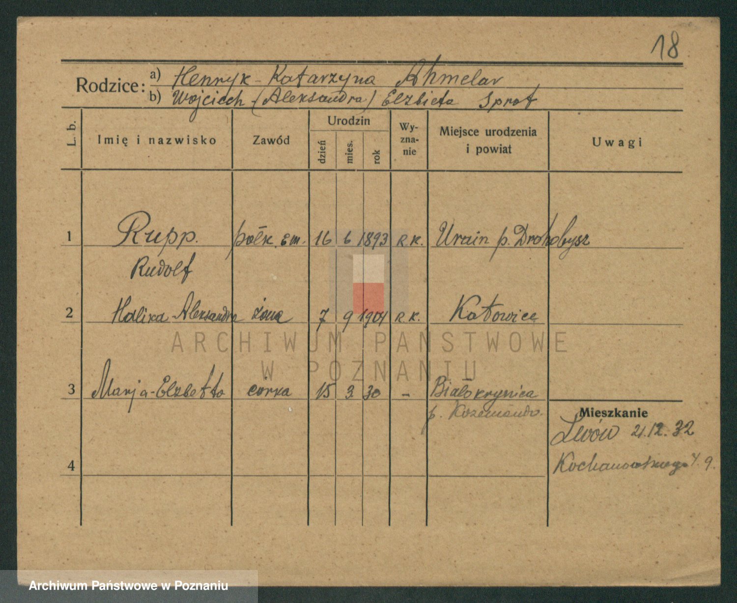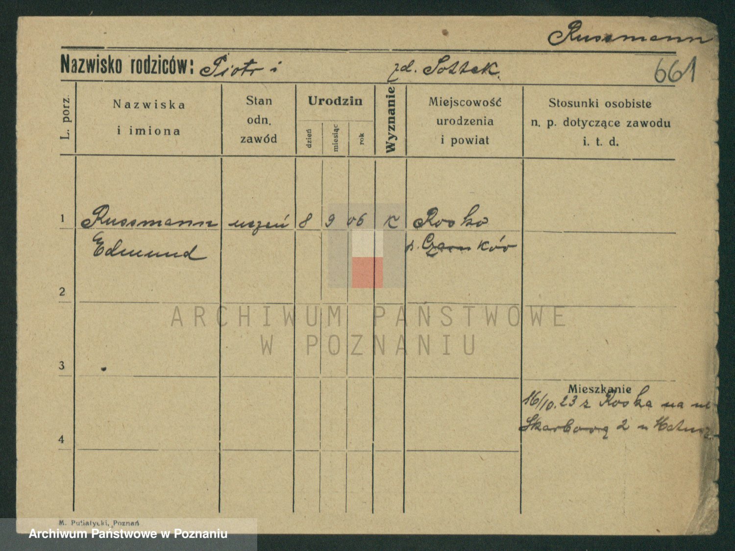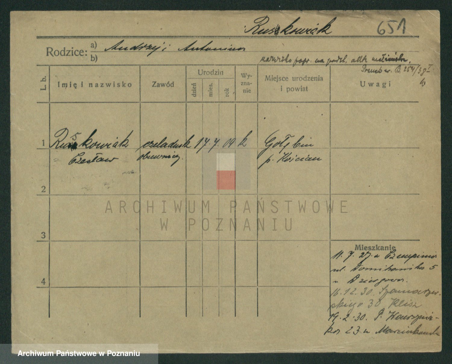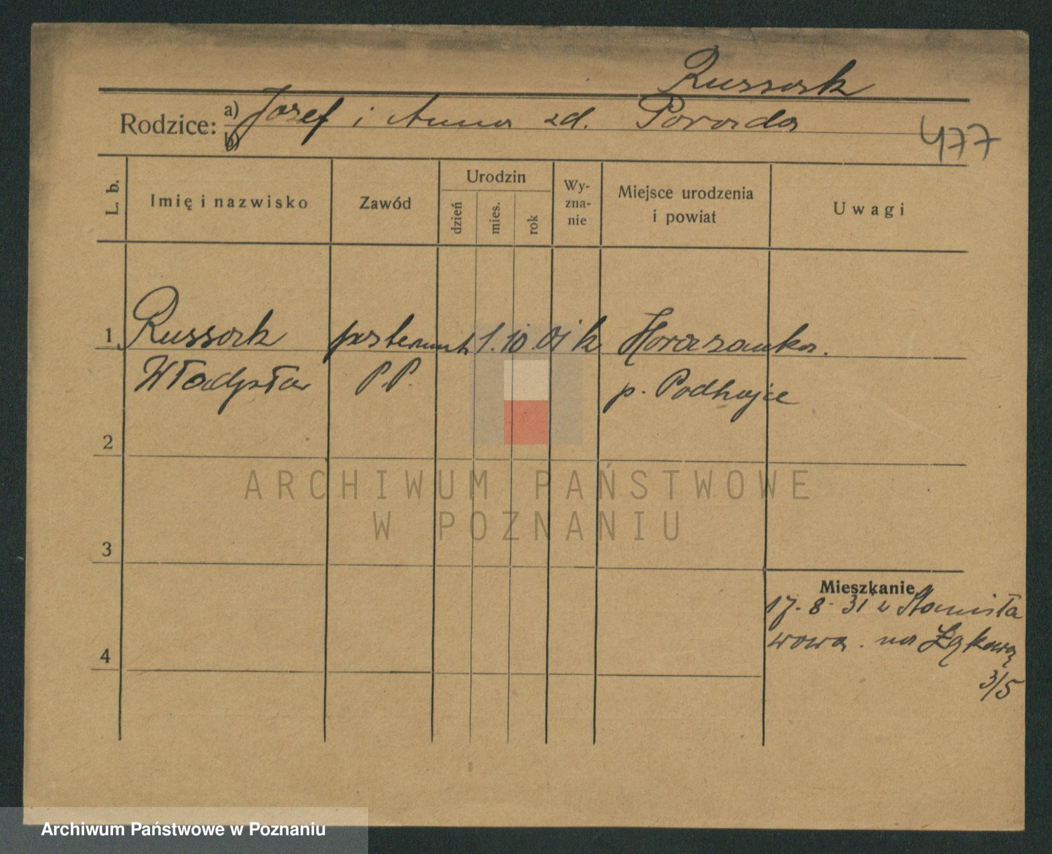 Podgląd karty osobowej dostępny jest po kliknięciu na nazwisko lub ikonkę karty. Można dokonywać powiększenia (ikony na górze) lub przechodzić między kolejnymi skanami (strzałki po bokach).