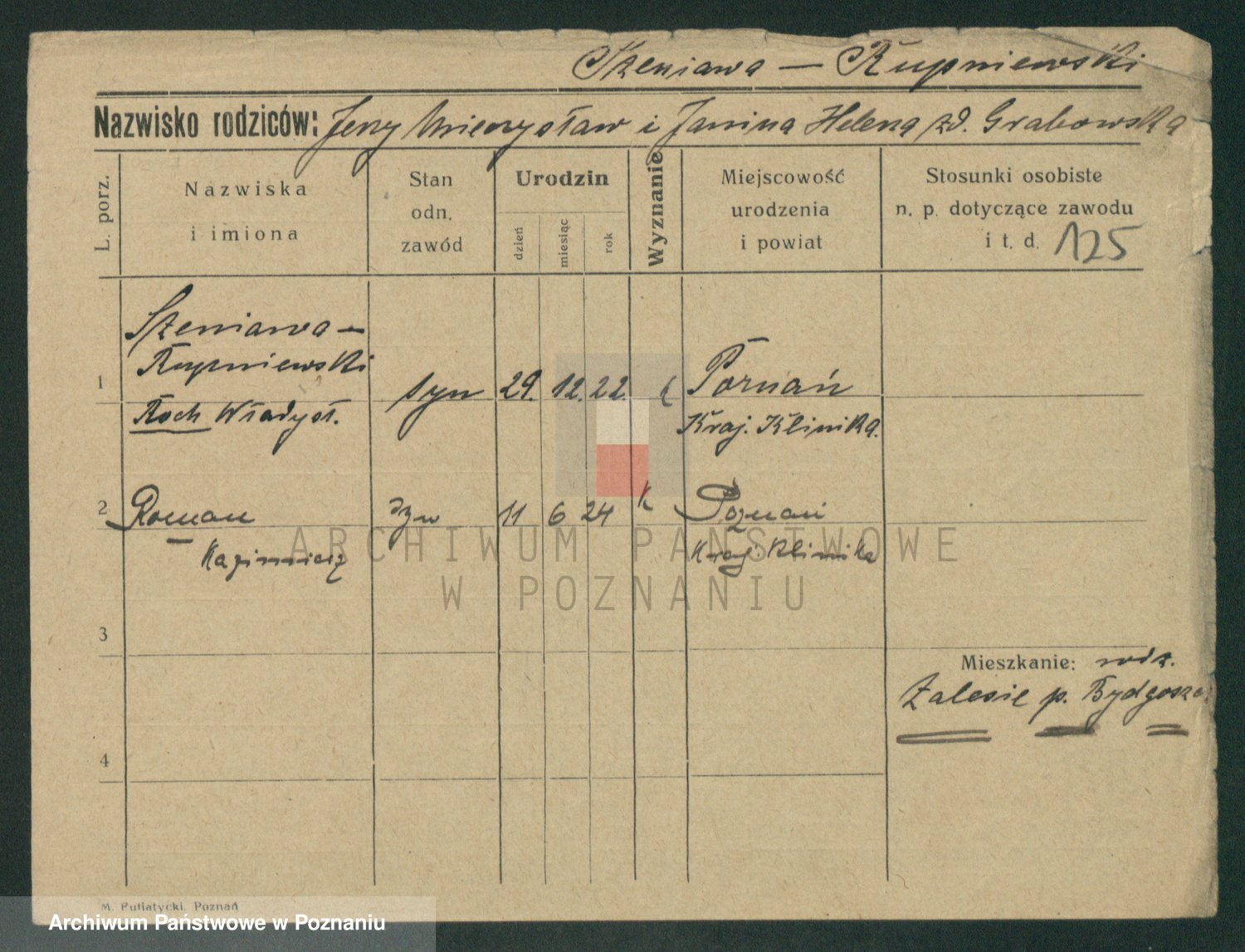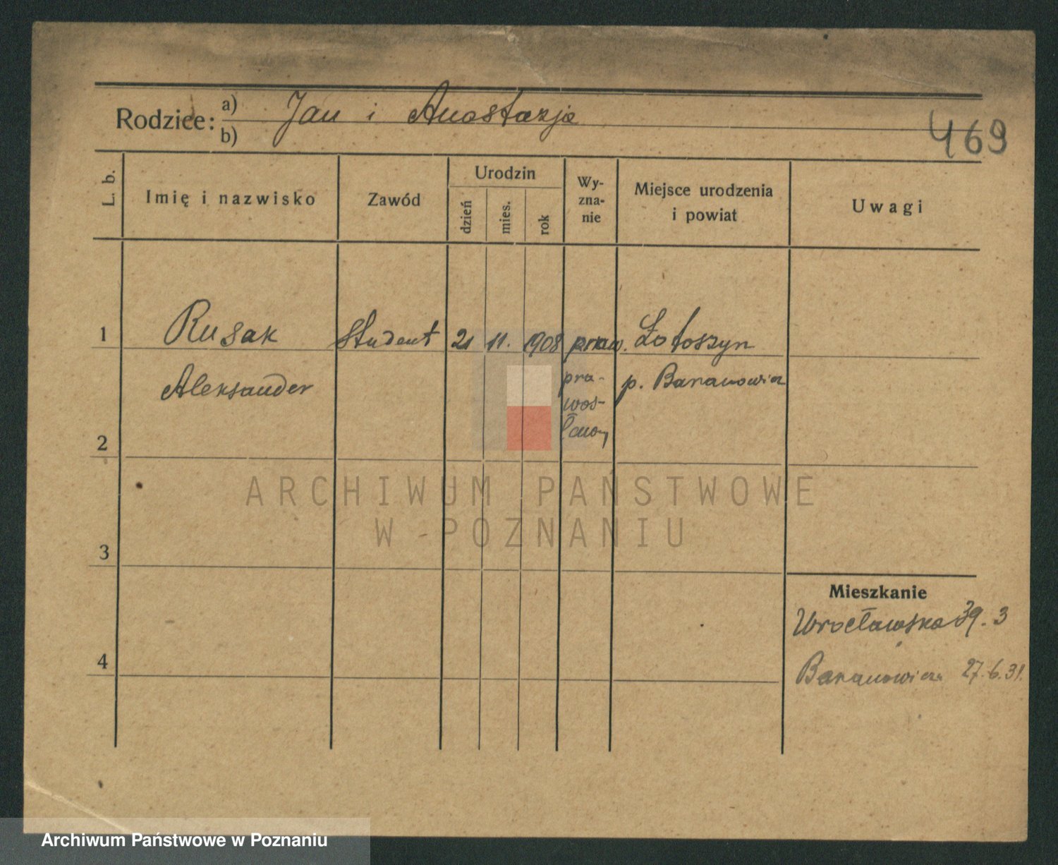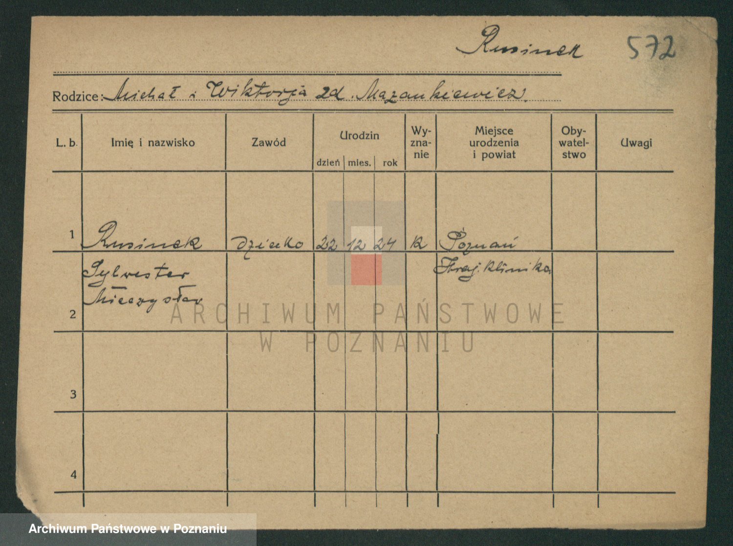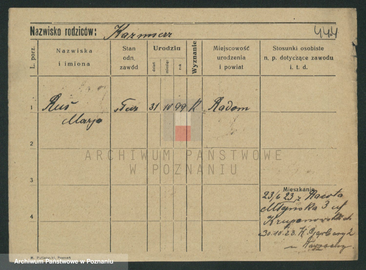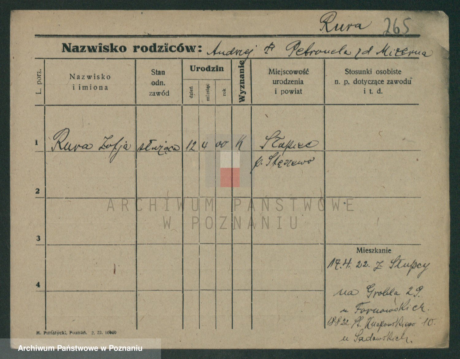 Podgląd karty osobowej dostępny jest po kliknięciu na nazwisko lub ikonkę karty. Można dokonywać powiększenia (ikony na górze) lub przechodzić między kolejnymi skanami (strzałki po bokach).