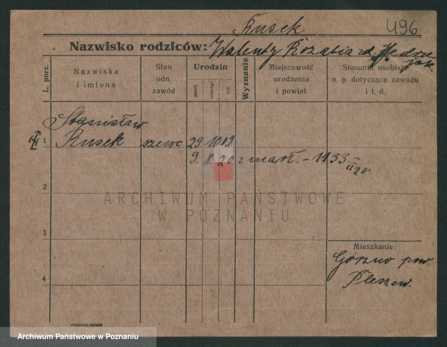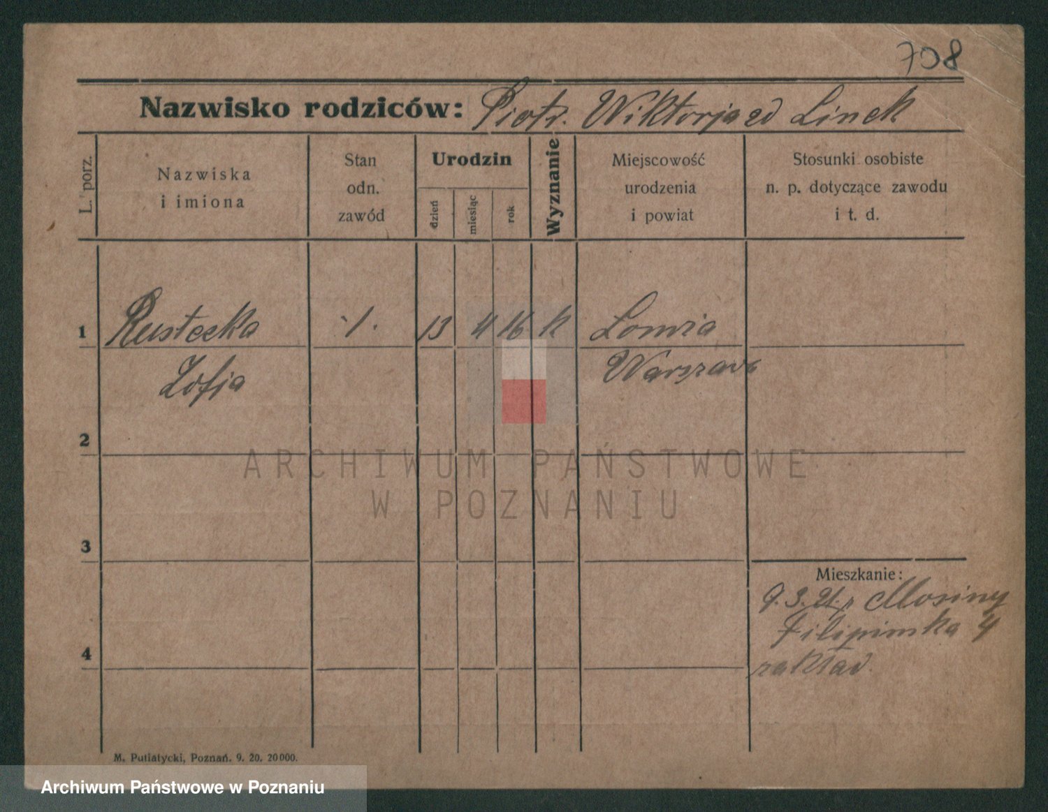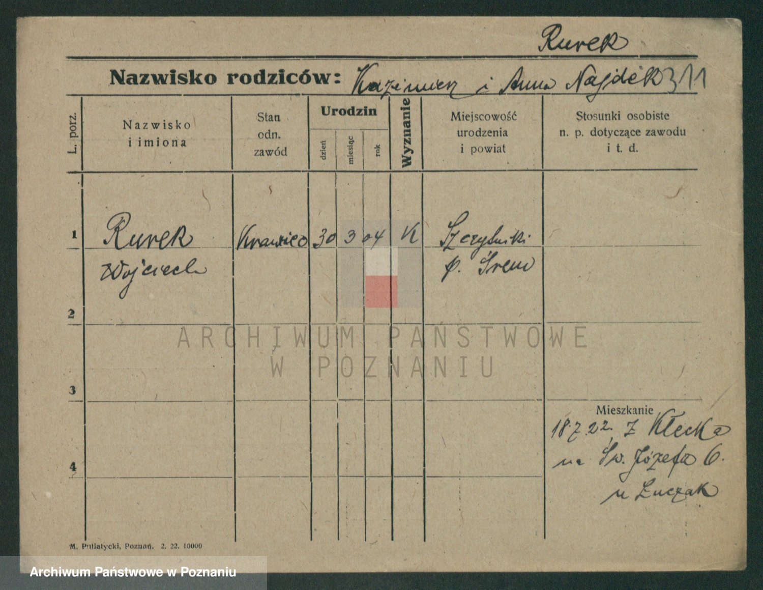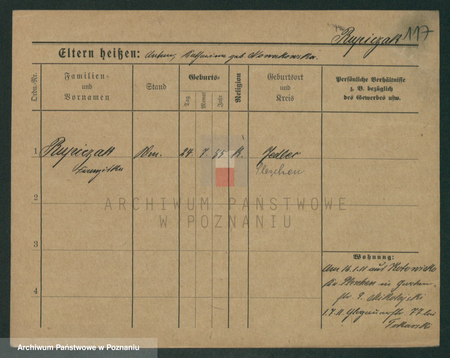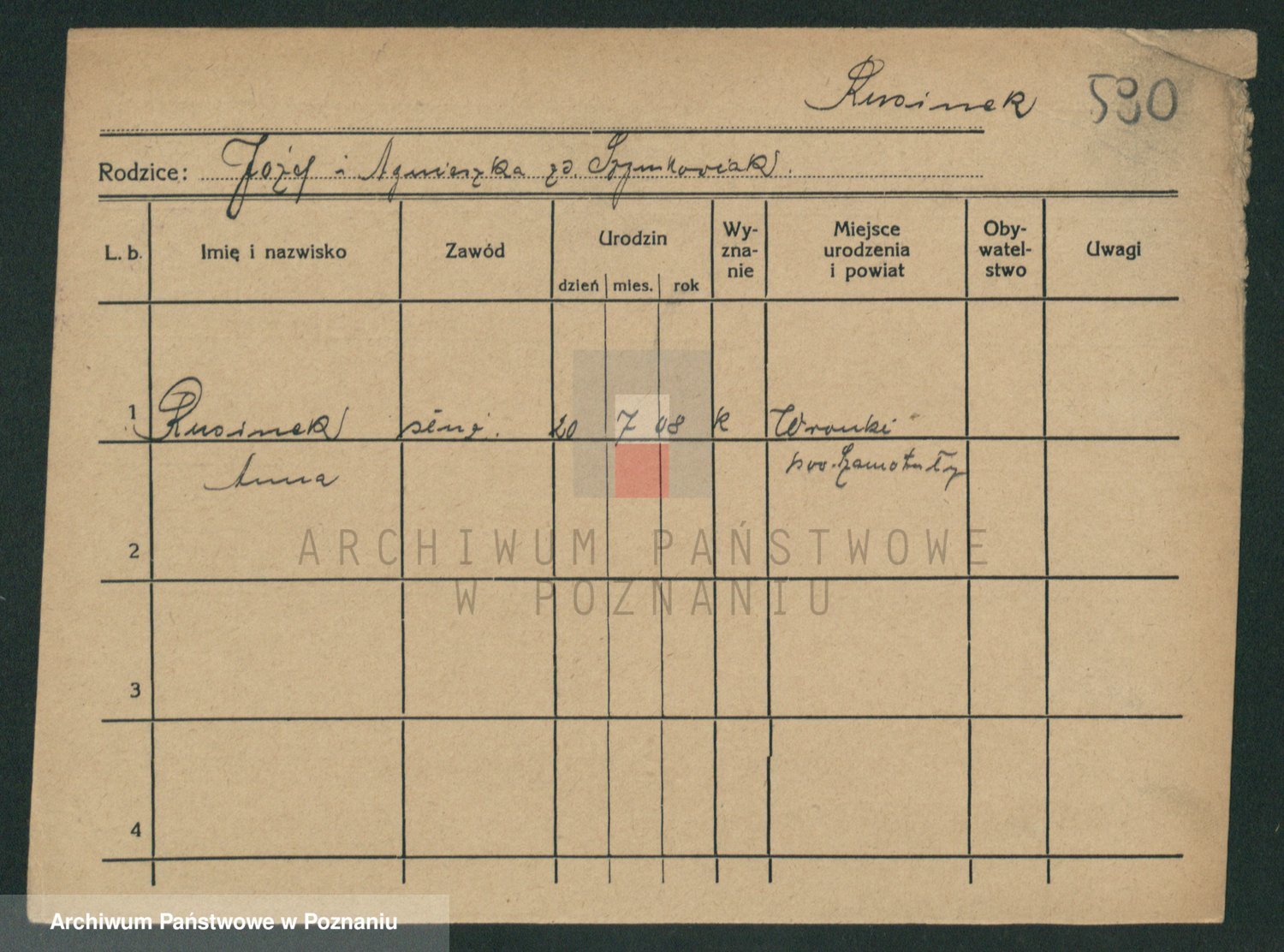 Podgląd karty osobowej dostępny jest po kliknięciu na nazwisko lub ikonkę karty. Można dokonywać powiększenia (ikony na górze) lub przechodzić między kolejnymi skanami (strzałki po bokach).