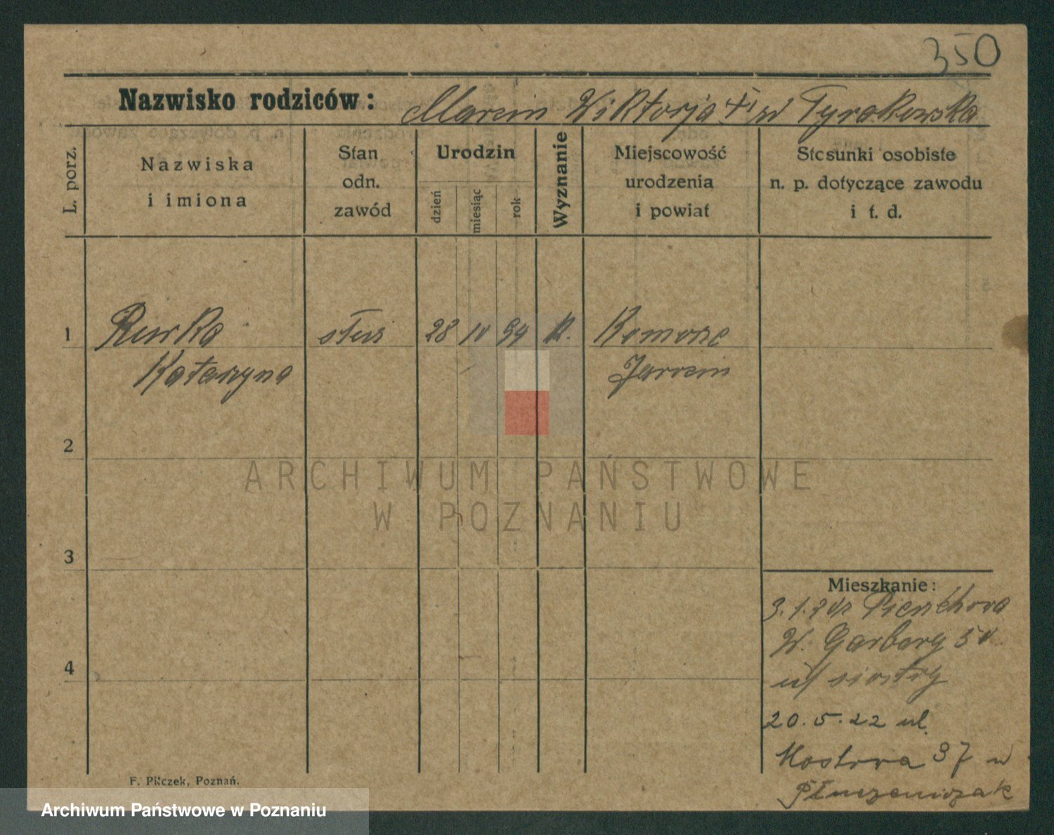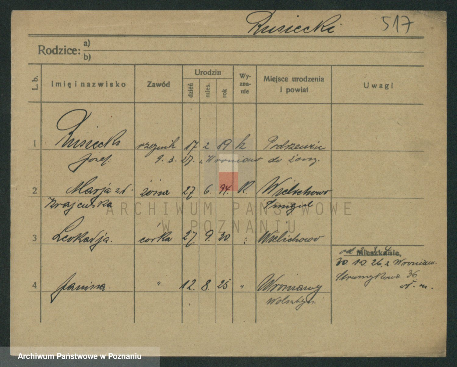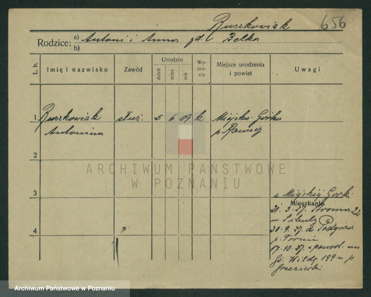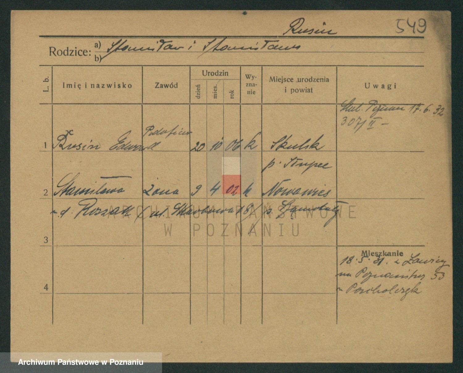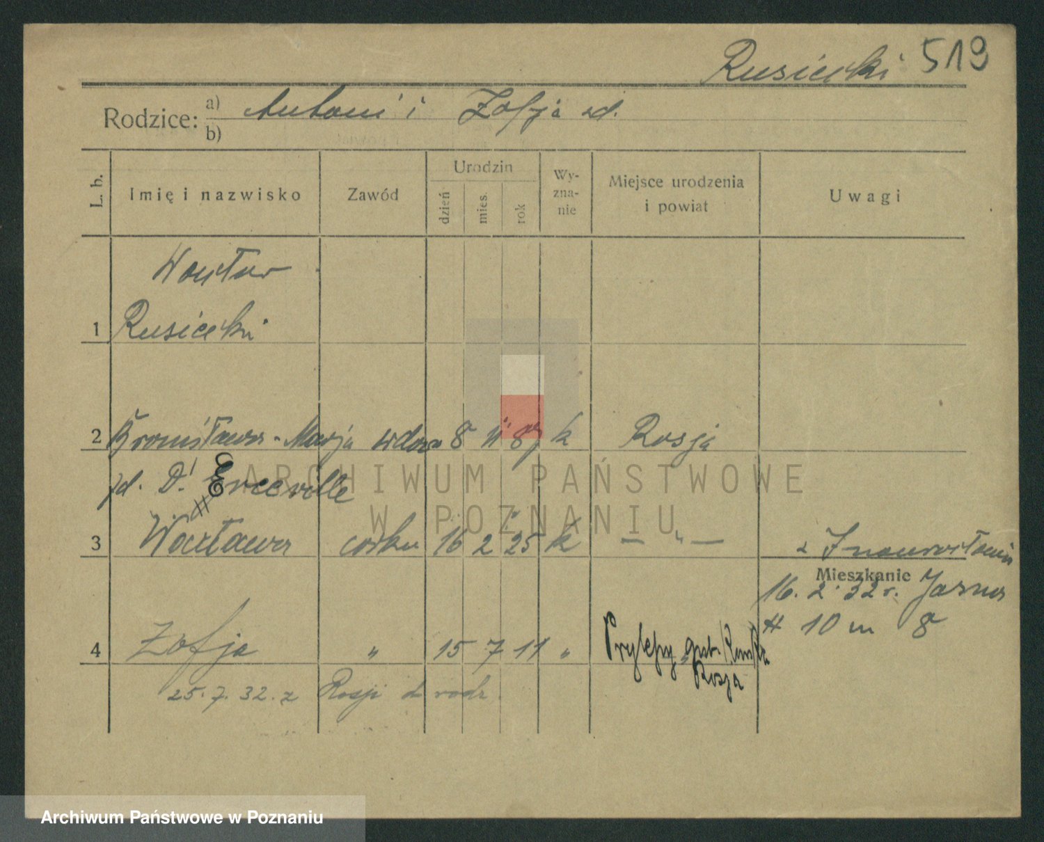 Podgląd karty osobowej dostępny jest po kliknięciu na nazwisko lub ikonkę karty. Można dokonywać powiększenia (ikony na górze) lub przechodzić między kolejnymi skanami (strzałki po bokach).