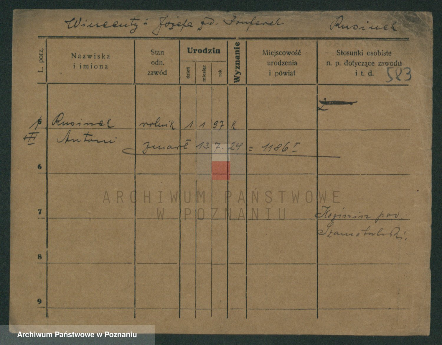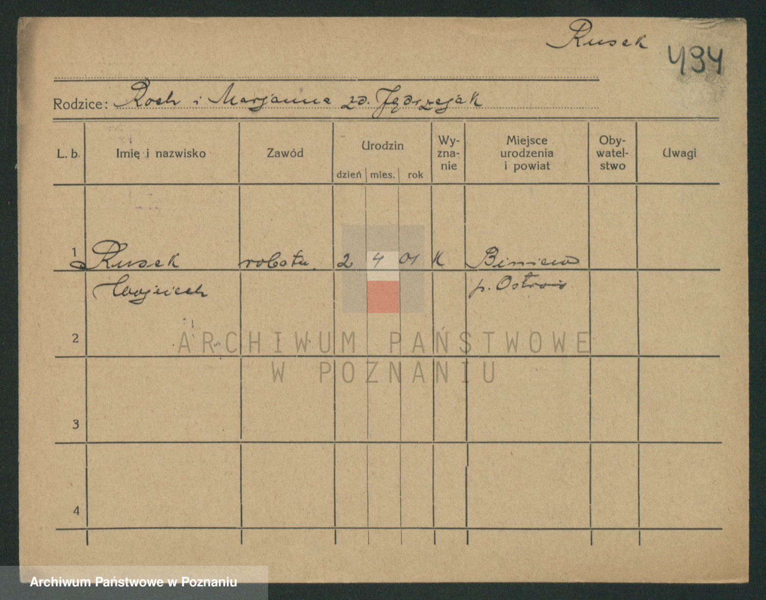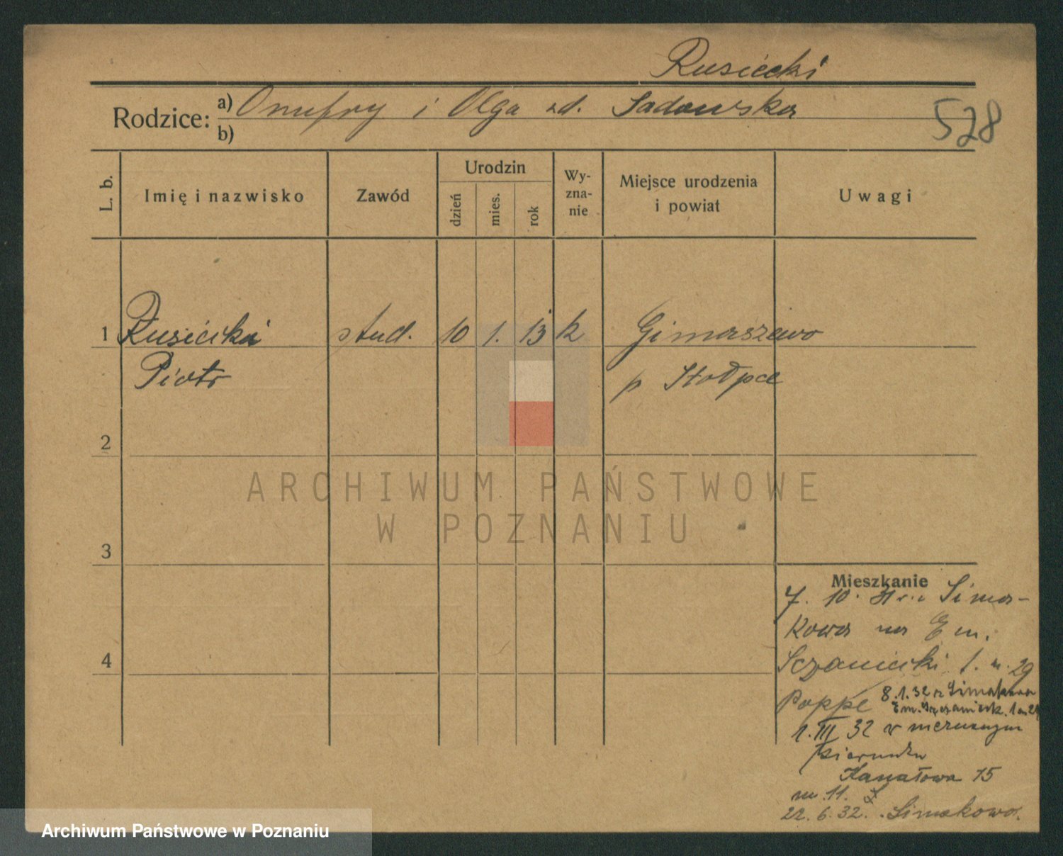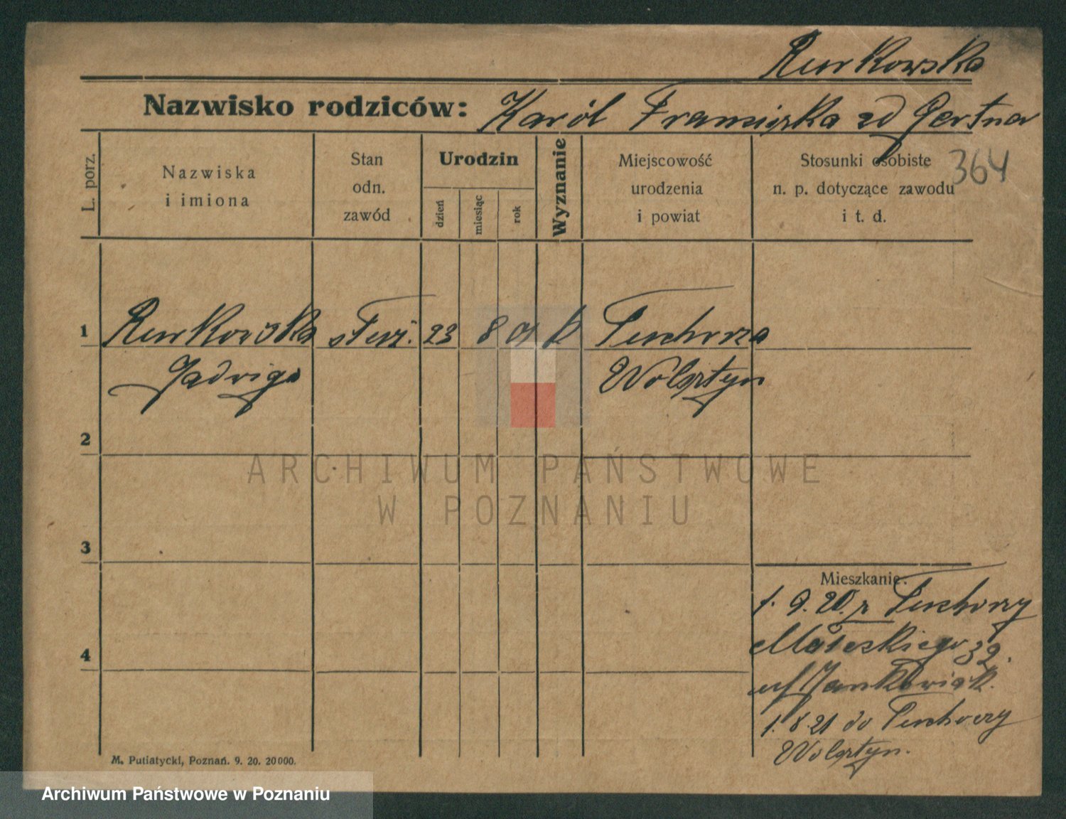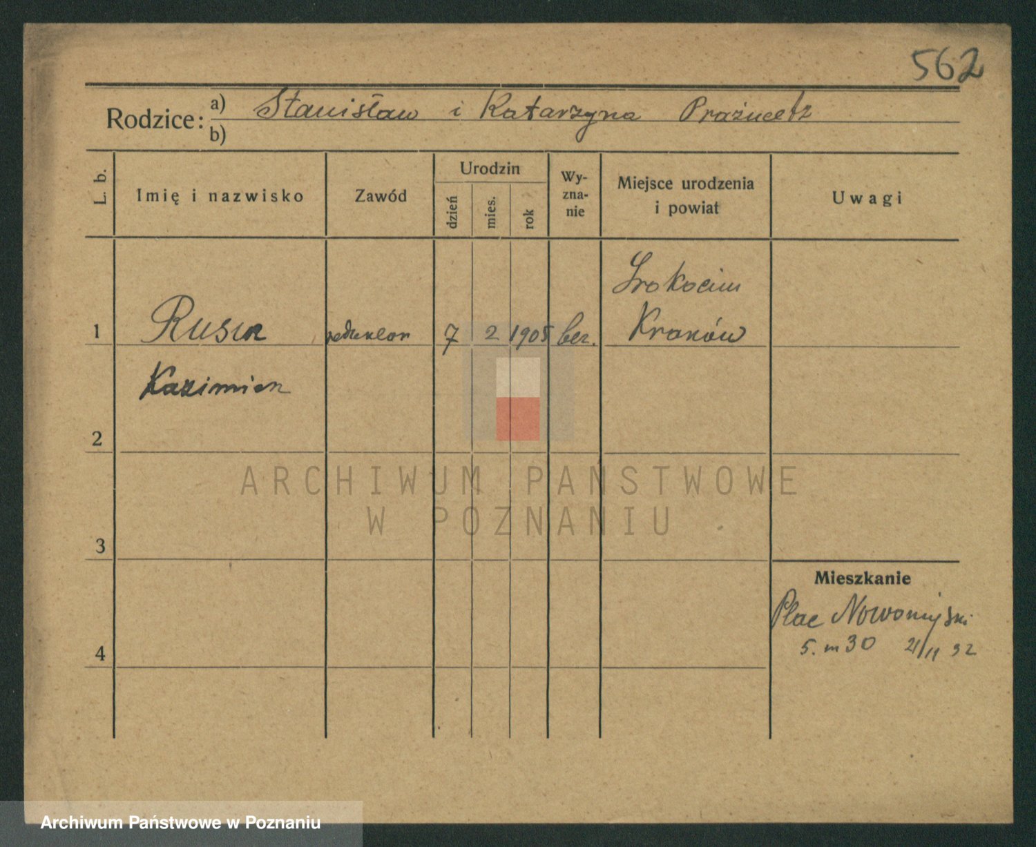 Podgląd karty osobowej dostępny jest po kliknięciu na nazwisko lub ikonkę karty. Można dokonywać powiększenia (ikony na górze) lub przechodzić między kolejnymi skanami (strzałki po bokach).