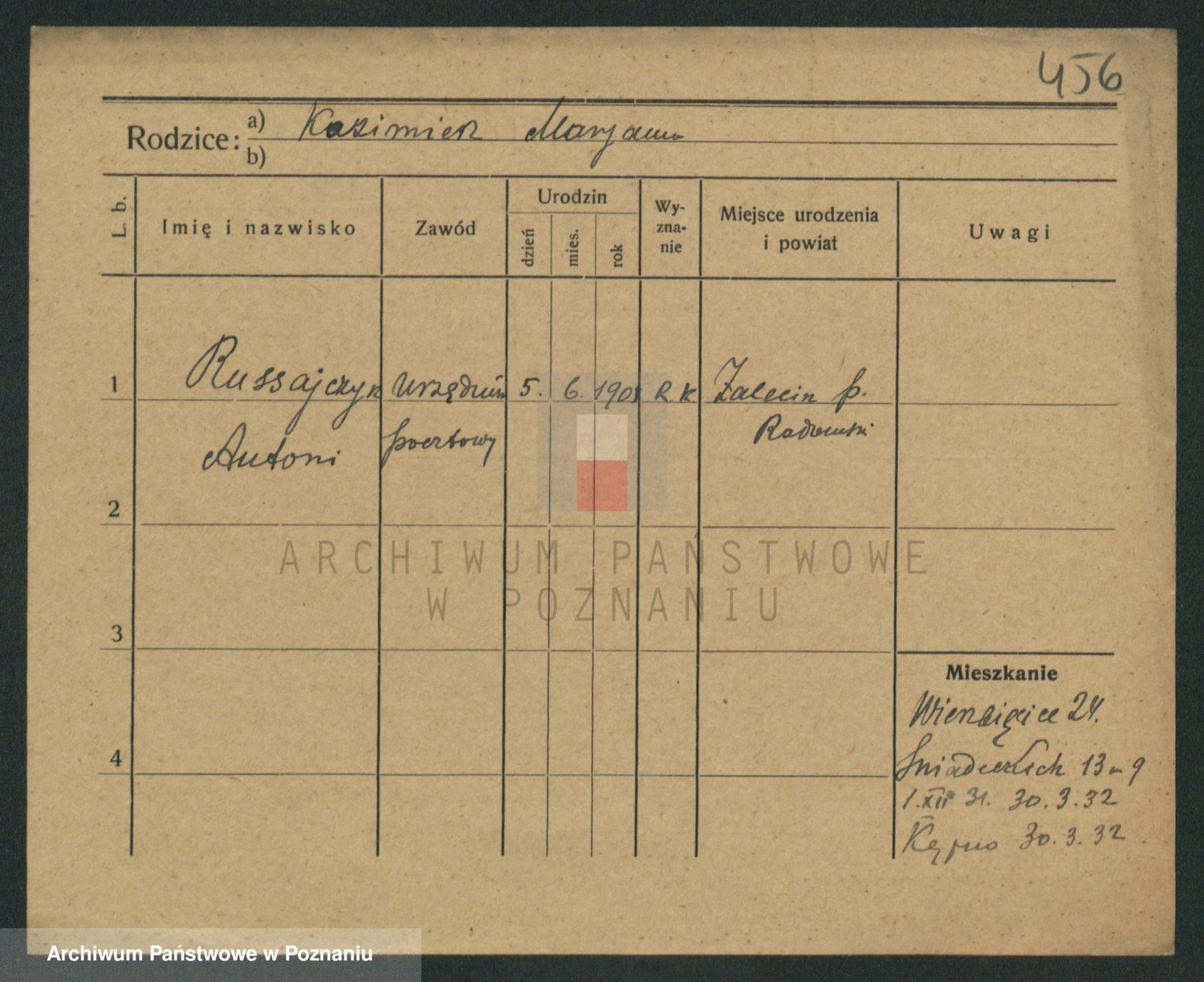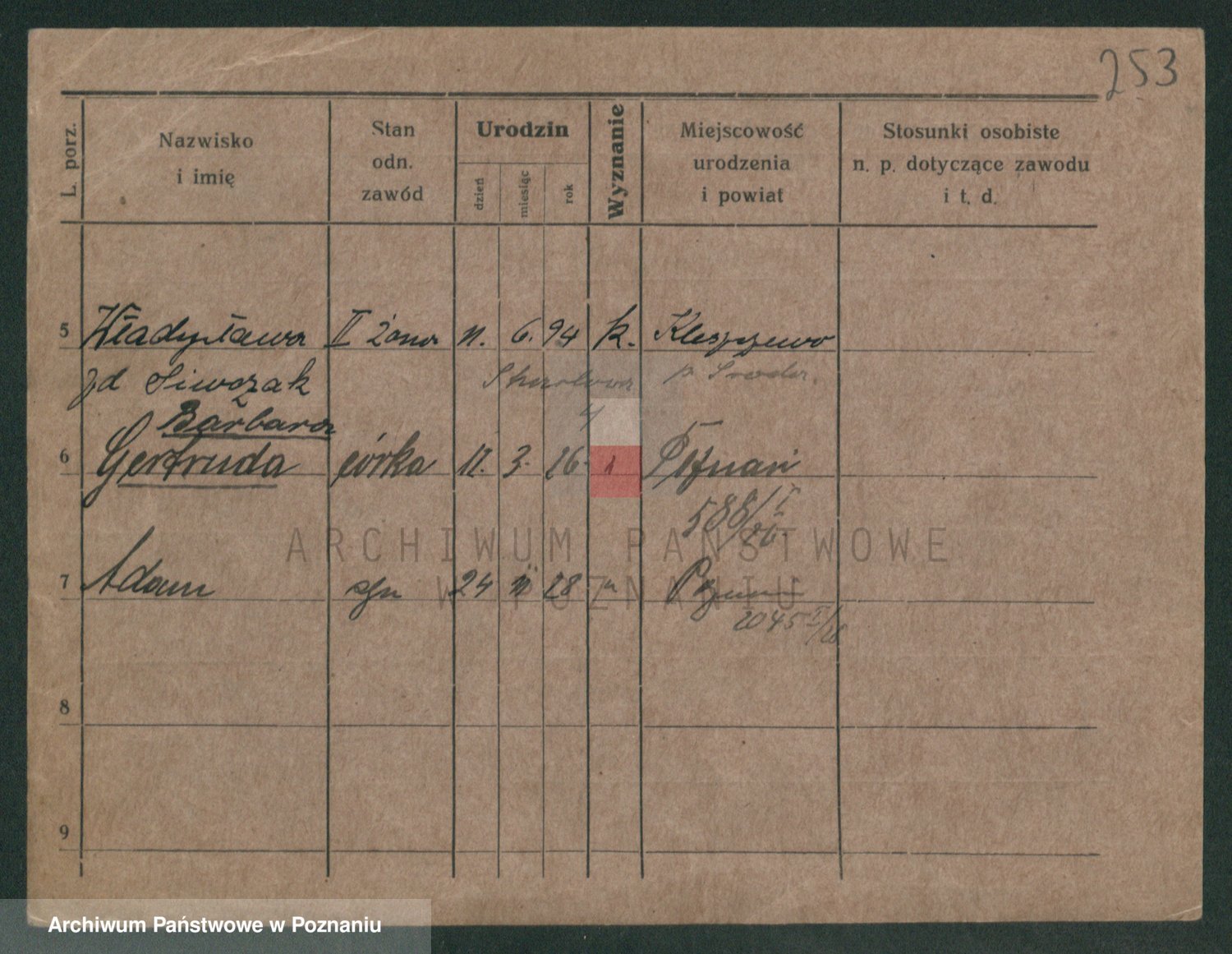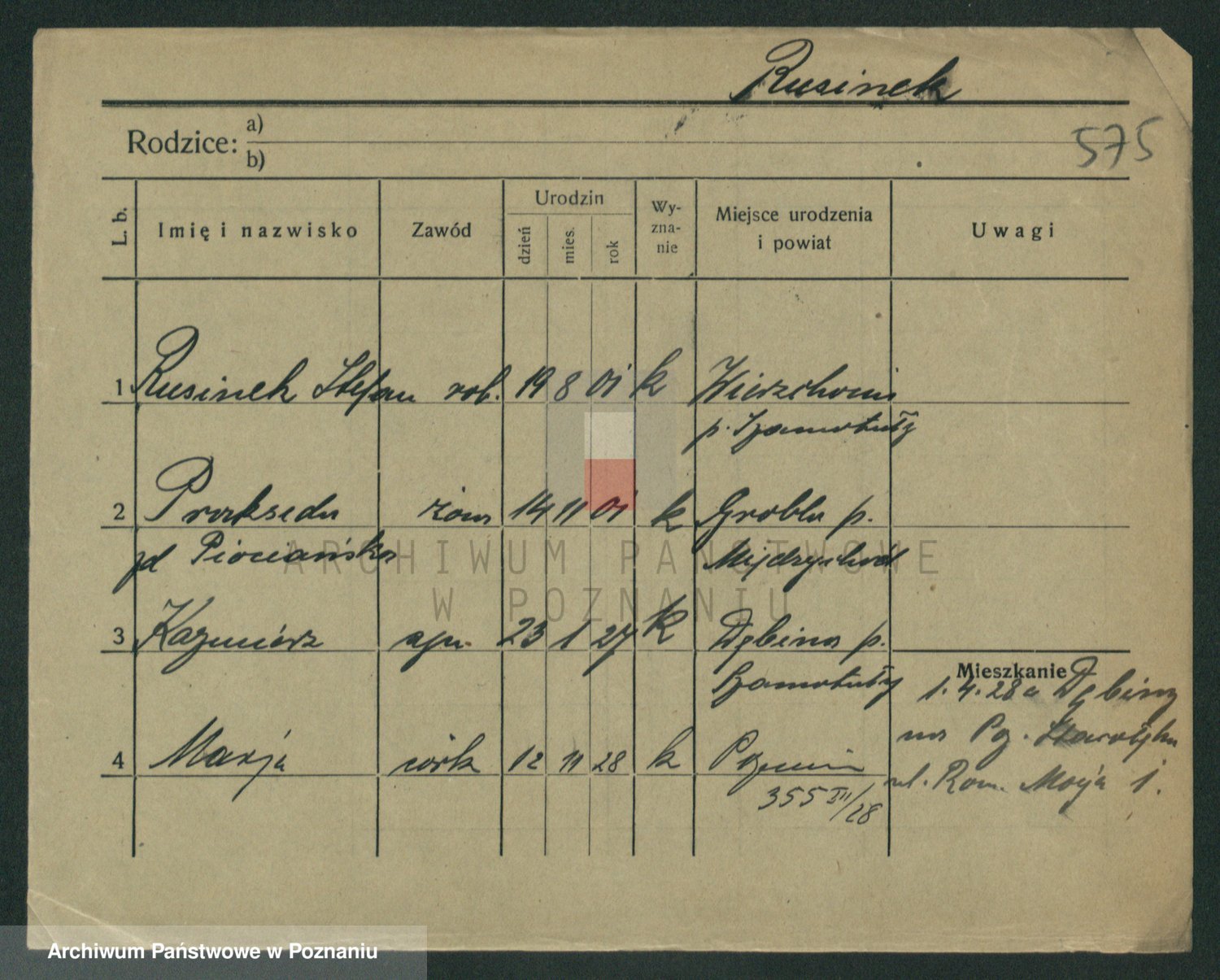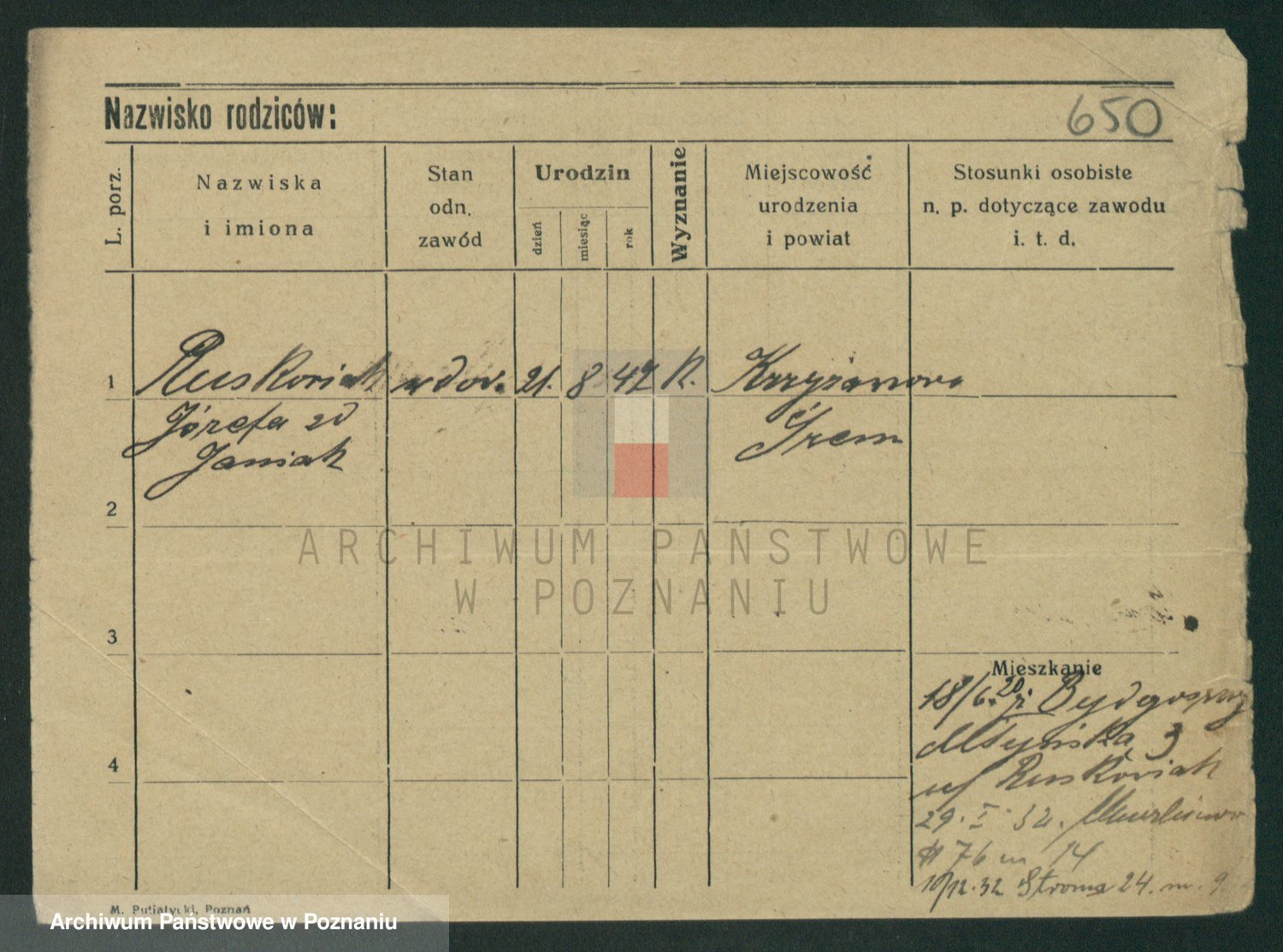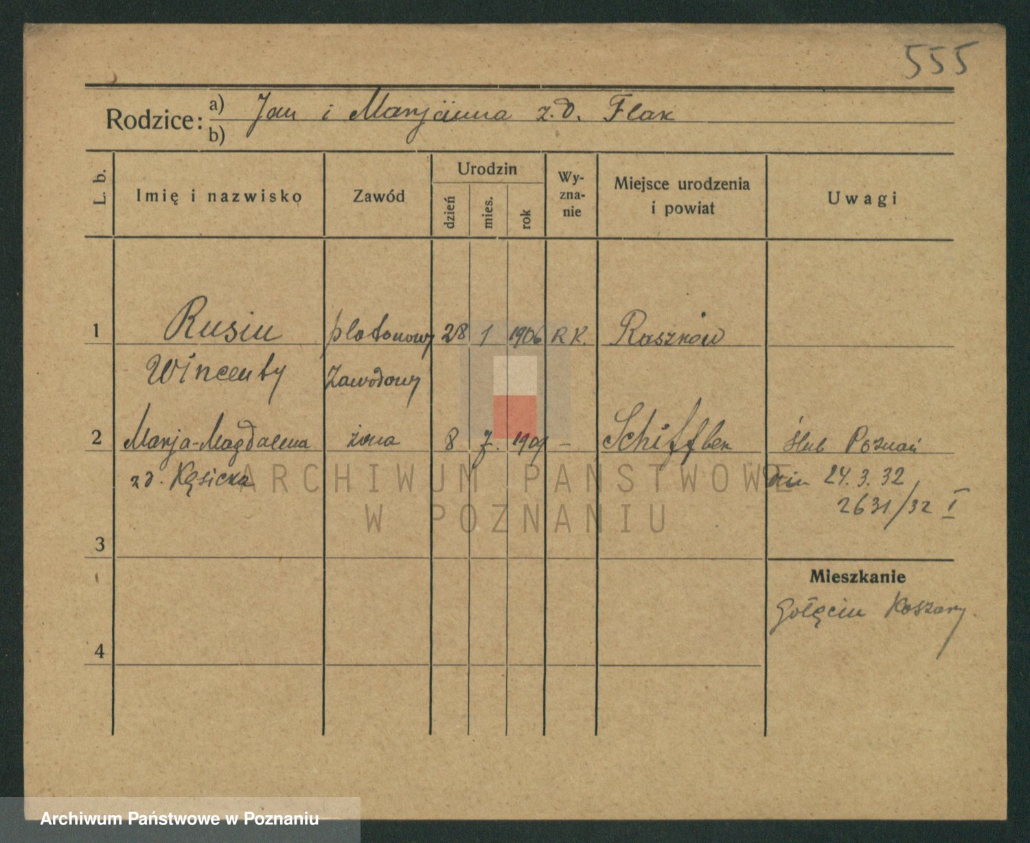 Podgląd karty osobowej dostępny jest po kliknięciu na nazwisko lub ikonkę karty. Można dokonywać powiększenia (ikony na górze) lub przechodzić między kolejnymi skanami (strzałki po bokach).