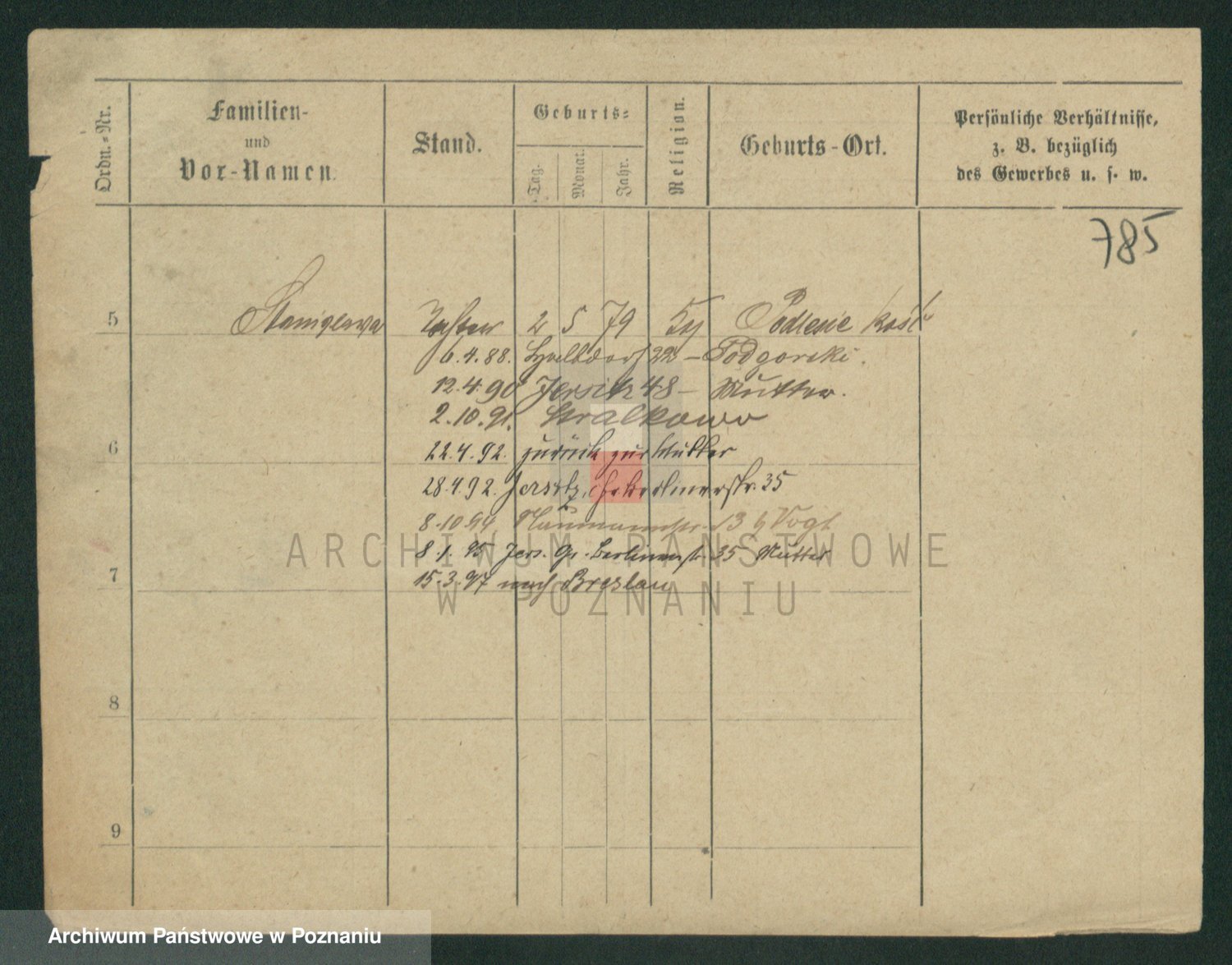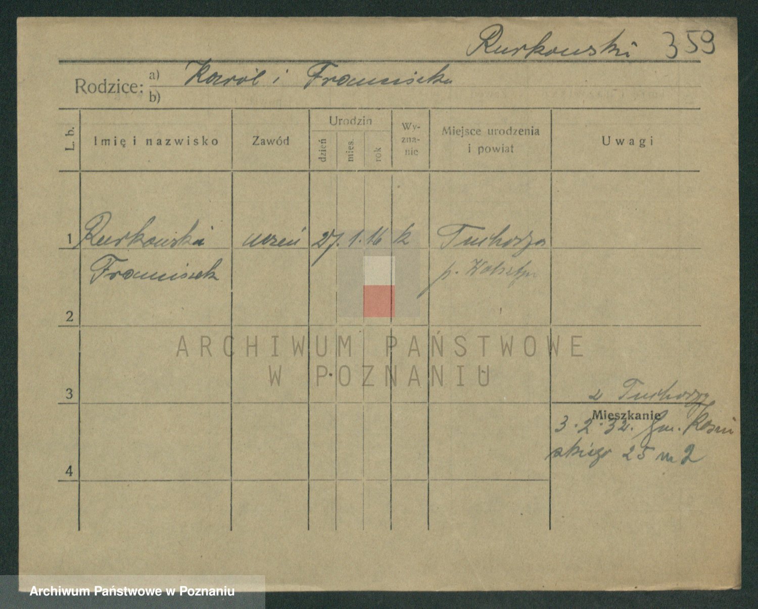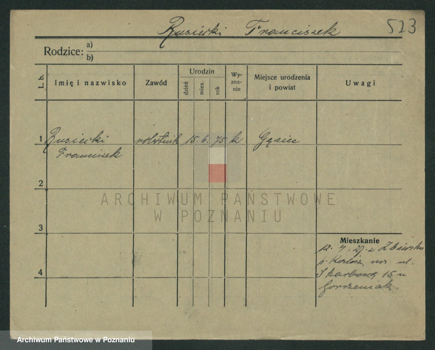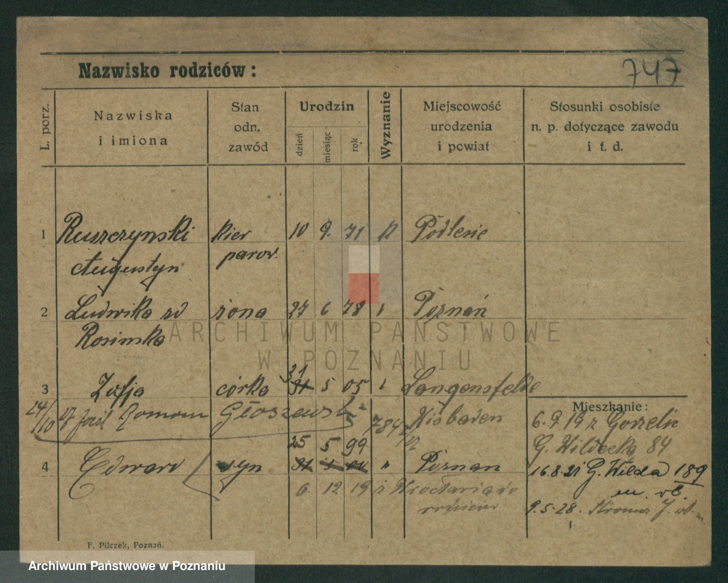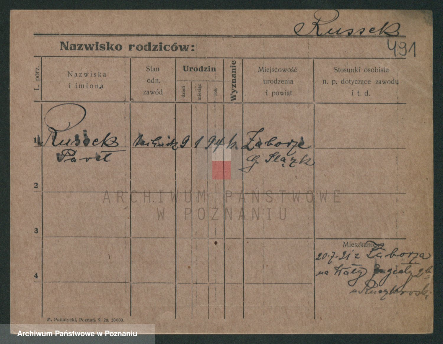 Podgląd karty osobowej dostępny jest po kliknięciu na nazwisko lub ikonkę karty. Można dokonywać powiększenia (ikony na górze) lub przechodzić między kolejnymi skanami (strzałki po bokach).