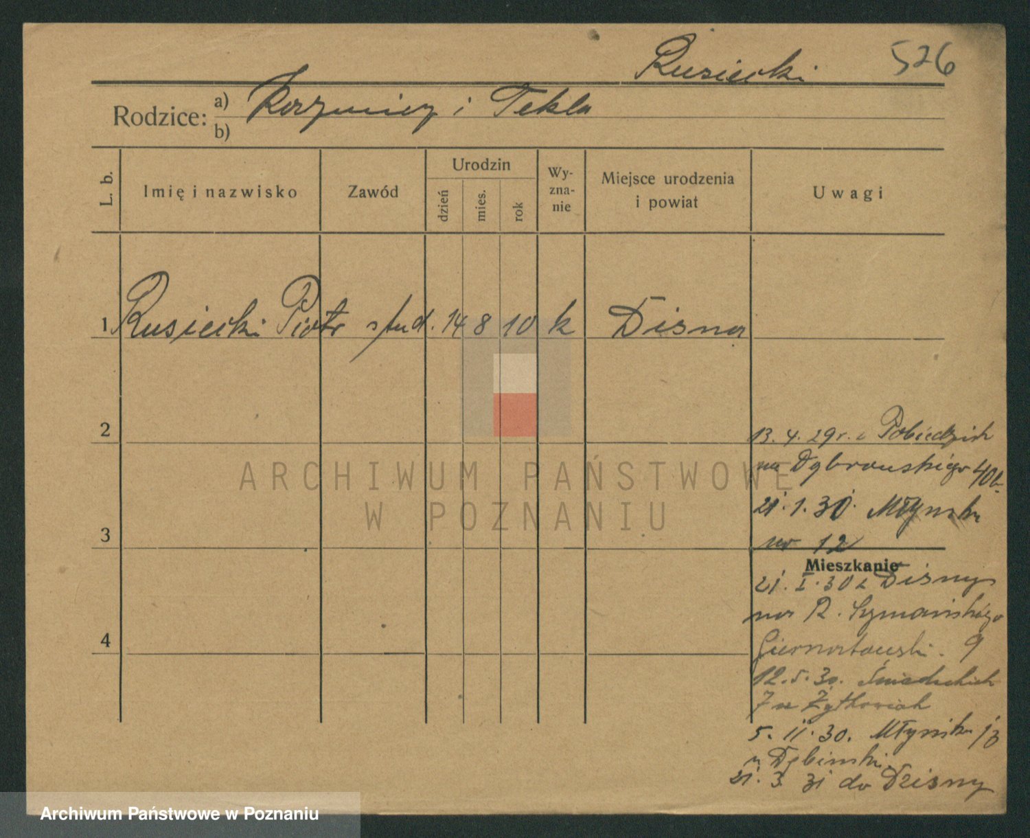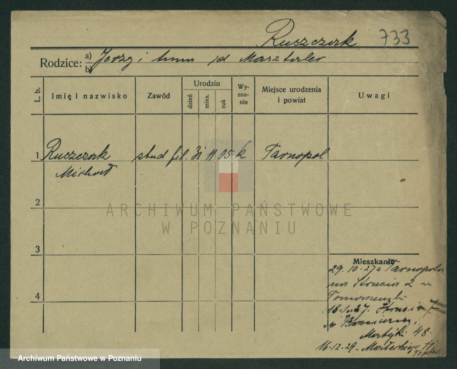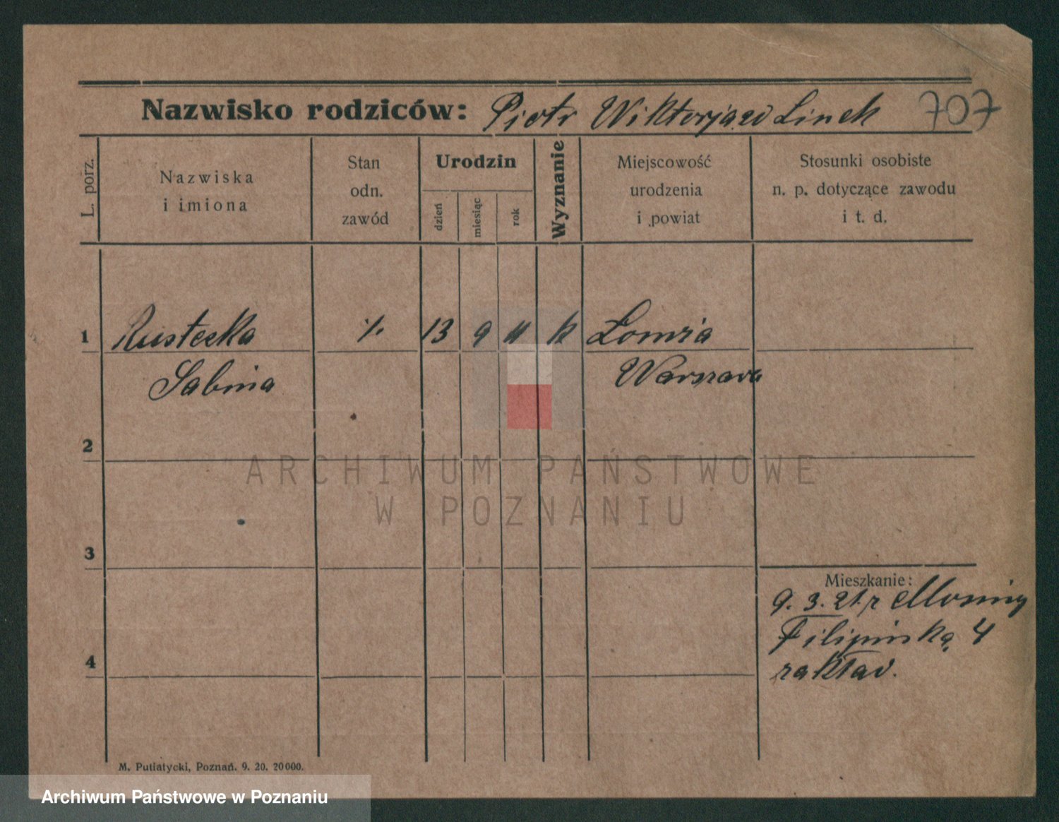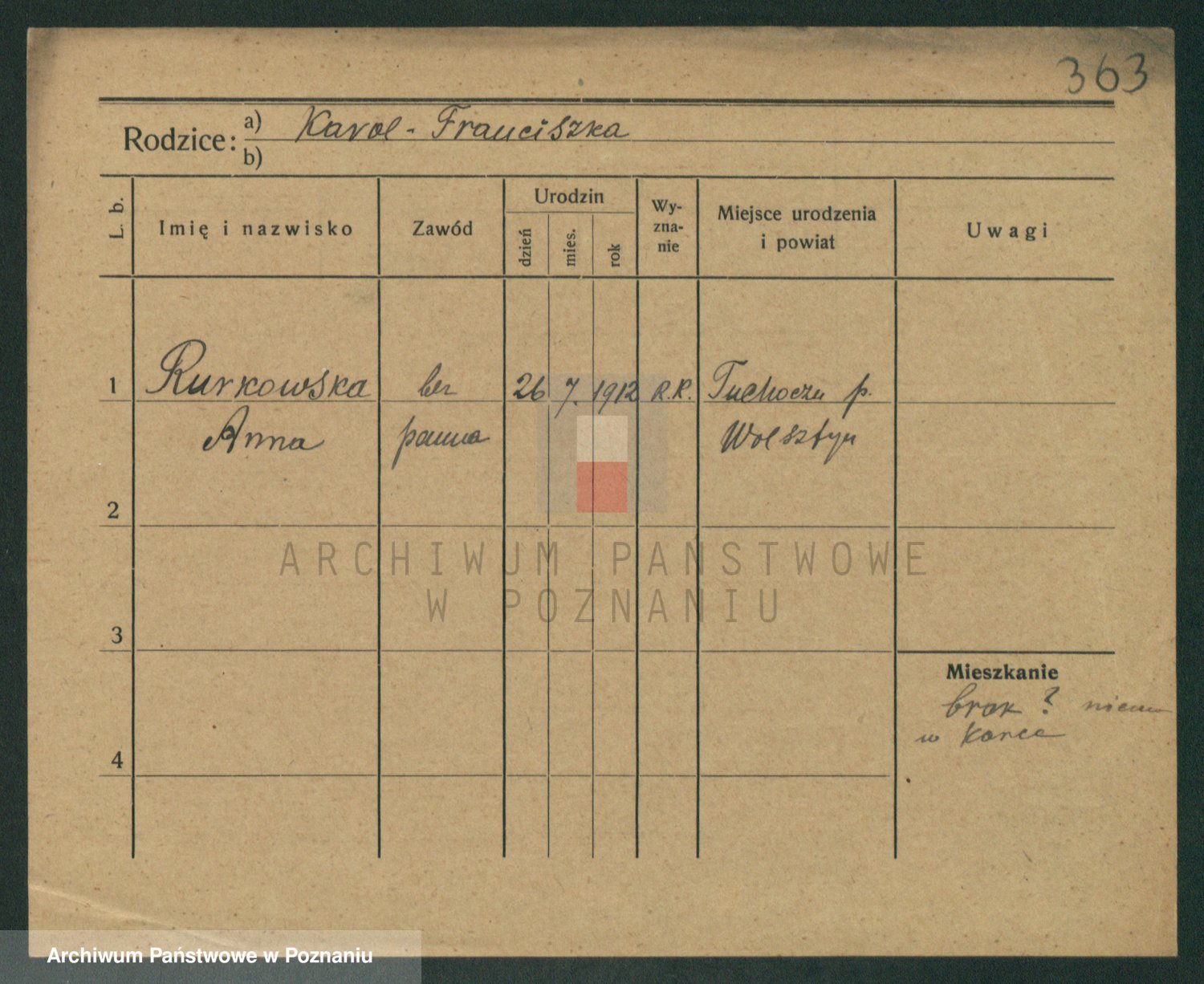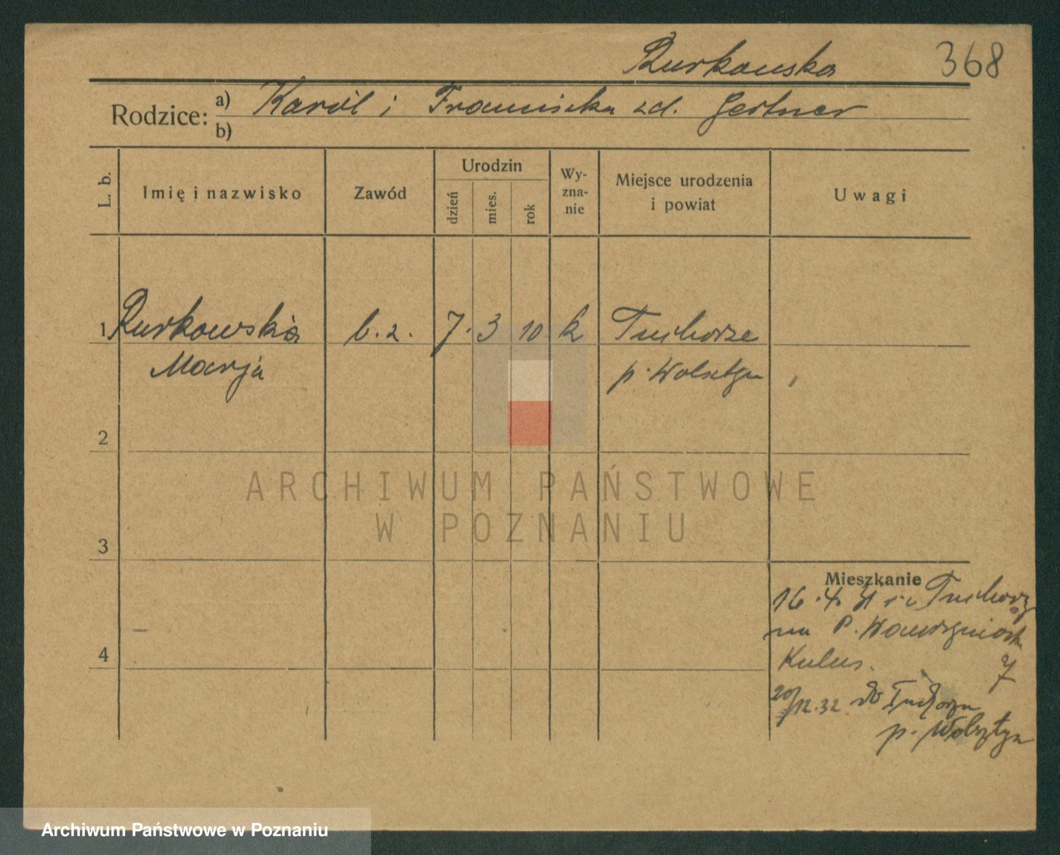 Podgląd karty osobowej dostępny jest po kliknięciu na nazwisko lub ikonkę karty. Można dokonywać powiększenia (ikony na górze) lub przechodzić między kolejnymi skanami (strzałki po bokach).