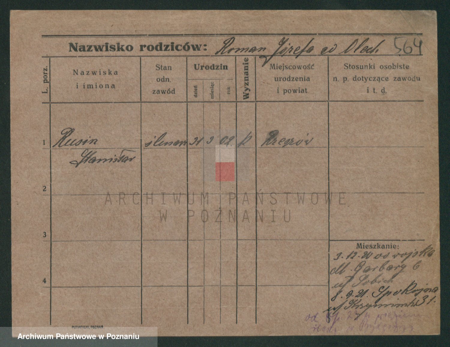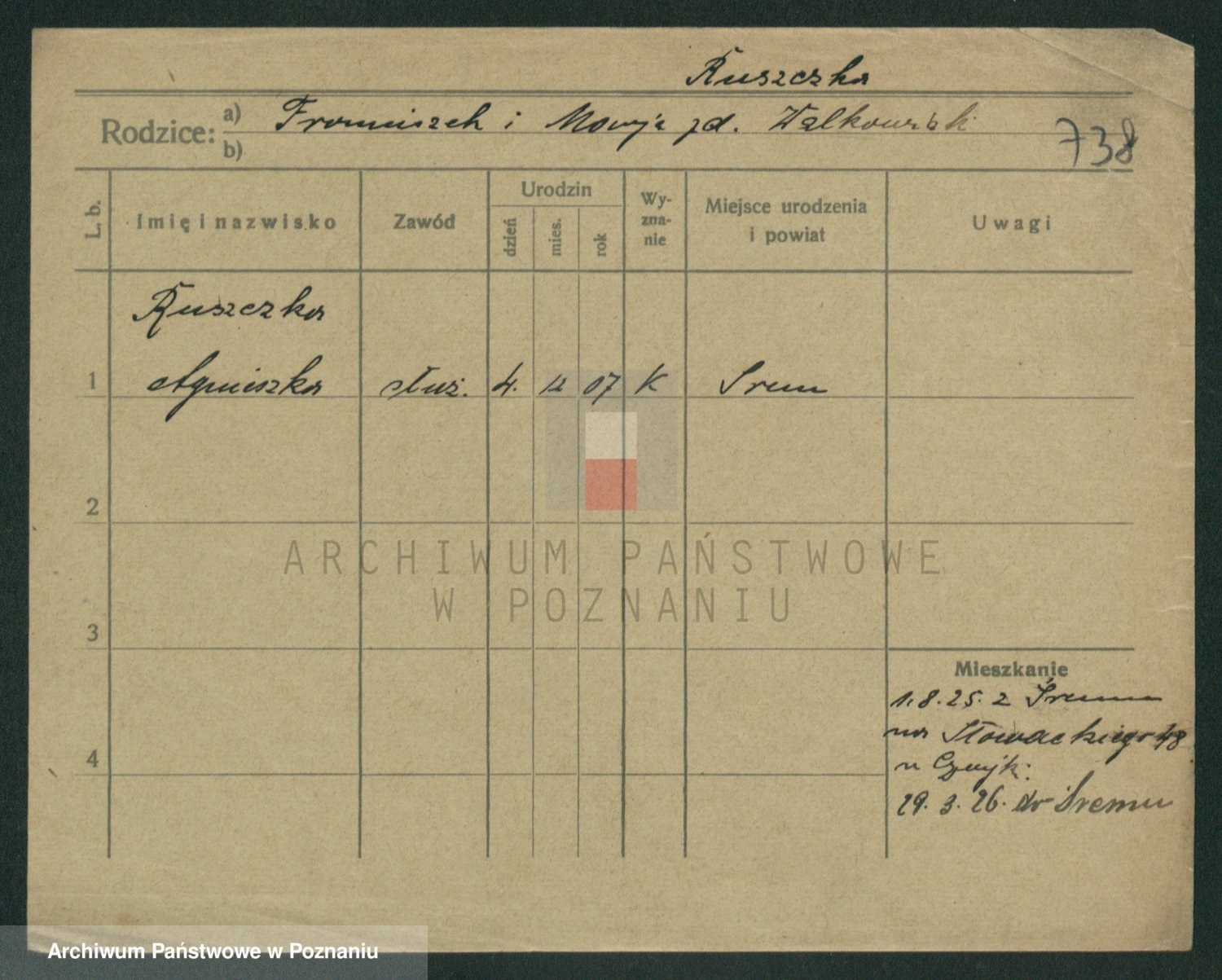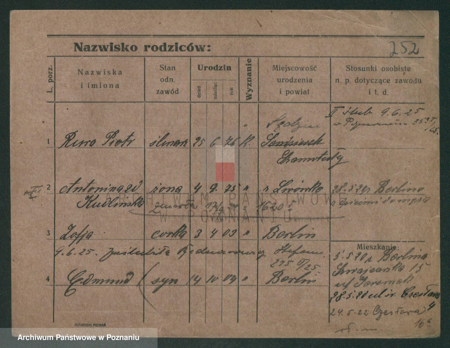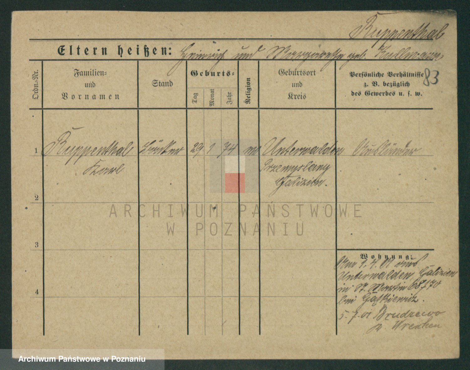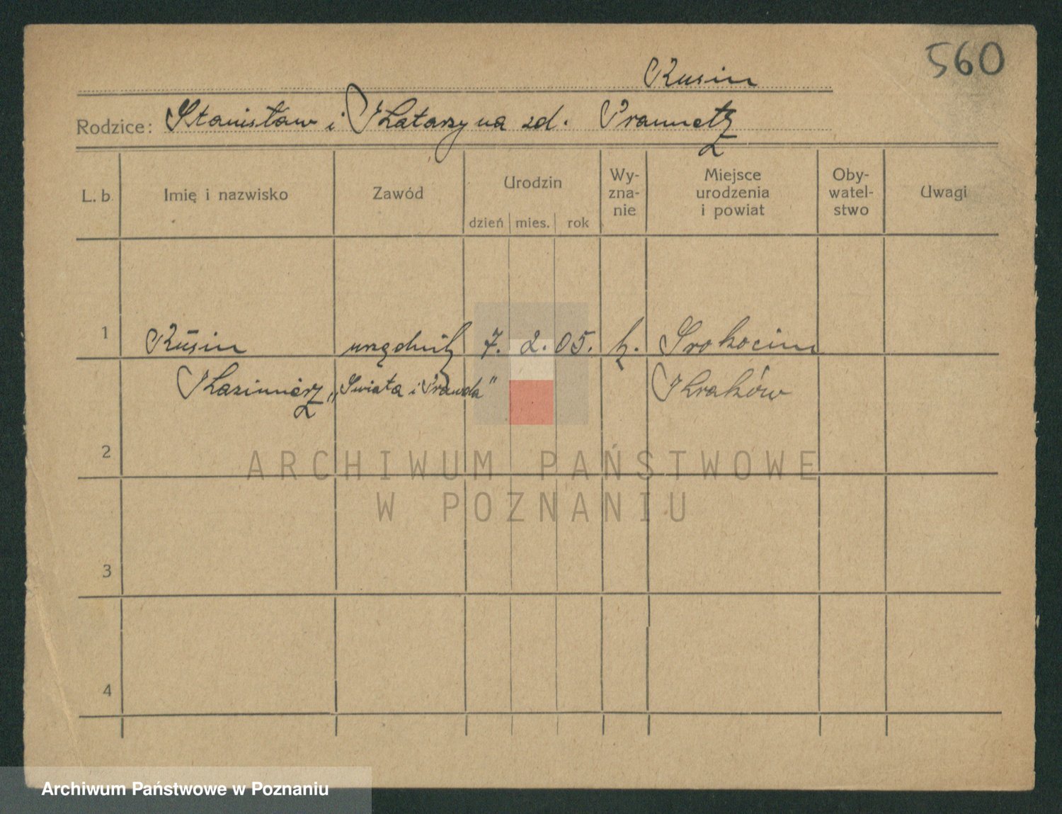 Podgląd karty osobowej dostępny jest po kliknięciu na nazwisko lub ikonkę karty. Można dokonywać powiększenia (ikony na górze) lub przechodzić między kolejnymi skanami (strzałki po bokach).