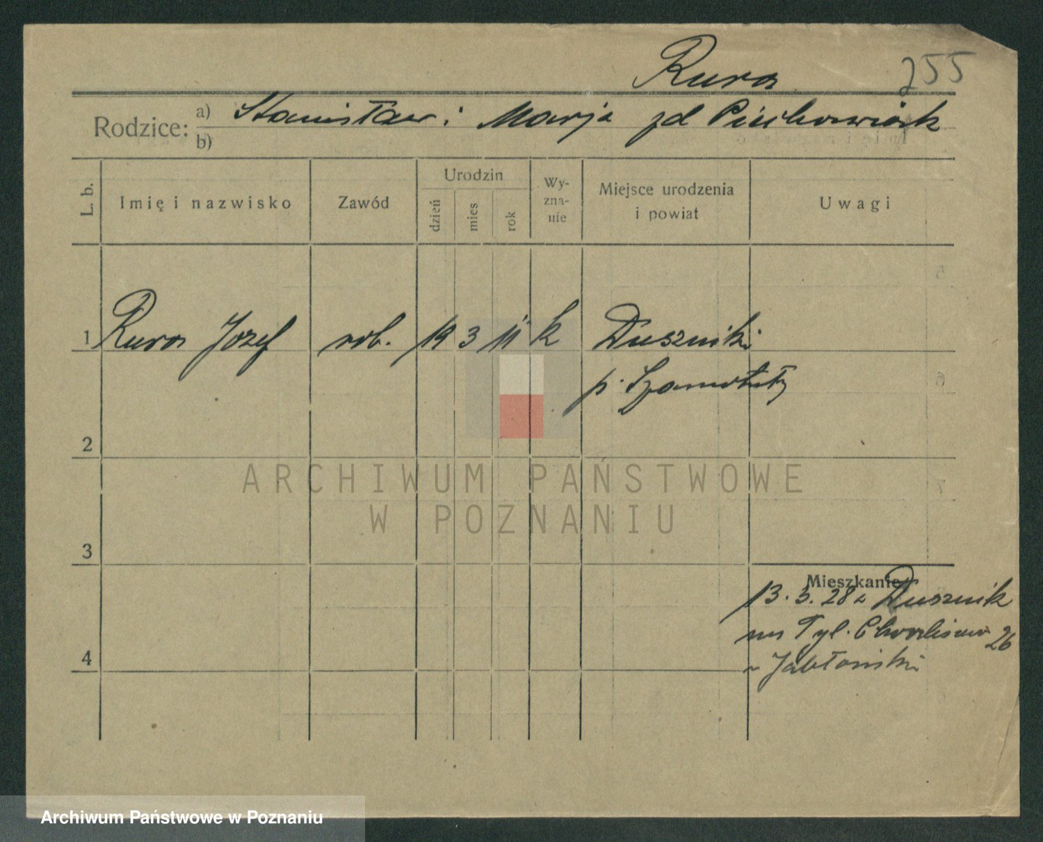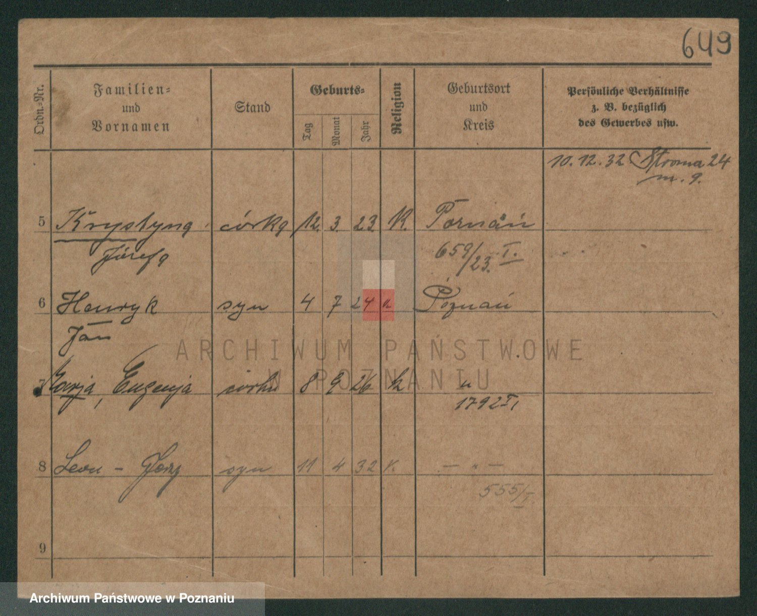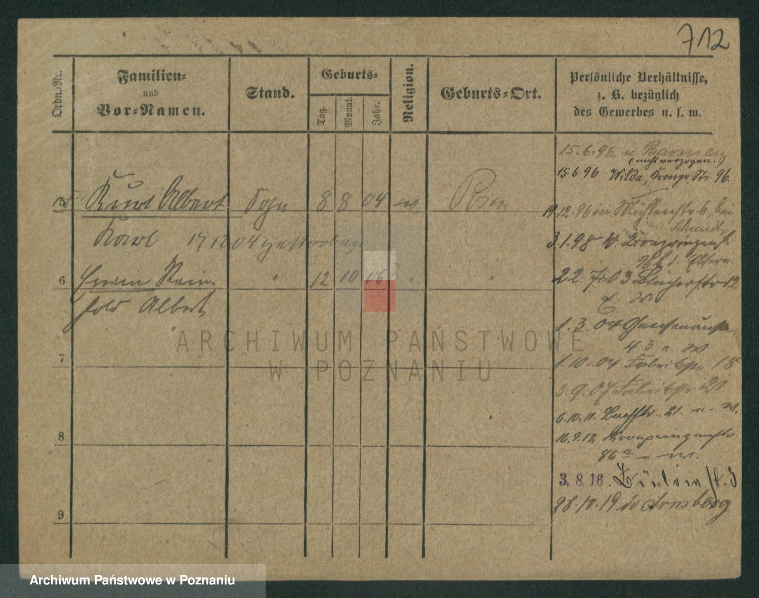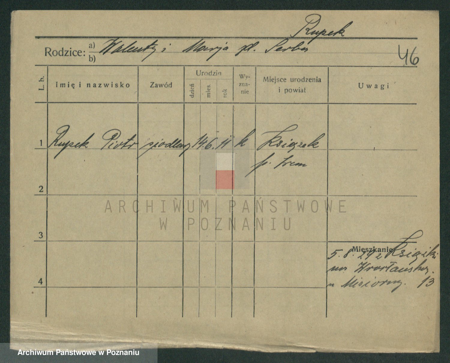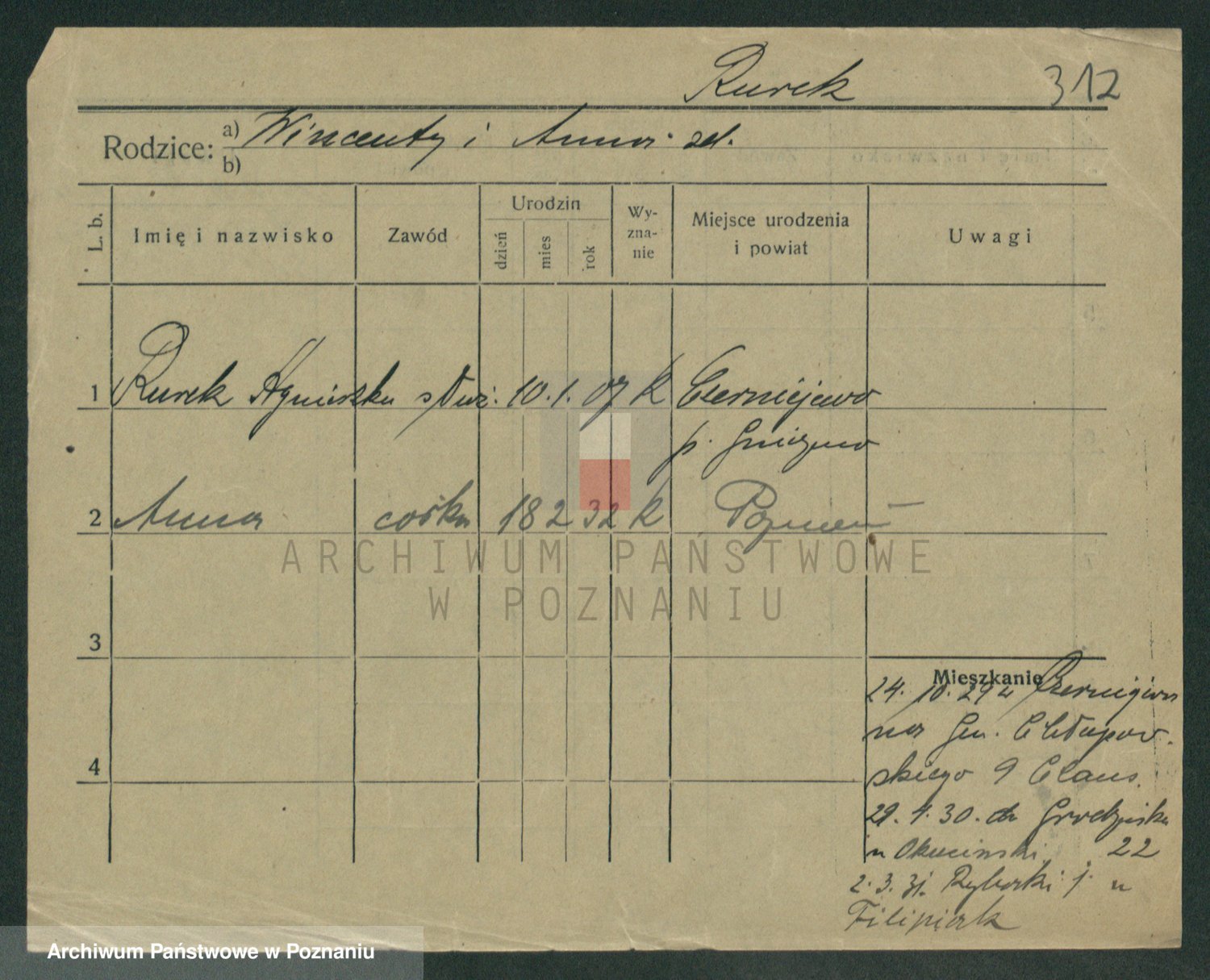Podgląd karty osobowej dostępny jest po kliknięciu na nazwisko lub ikonkę karty. Można dokonywać powiększenia (ikony na górze) lub przechodzić między kolejnymi skanami (strzałki po bokach).