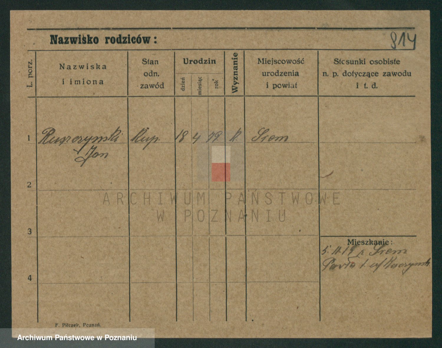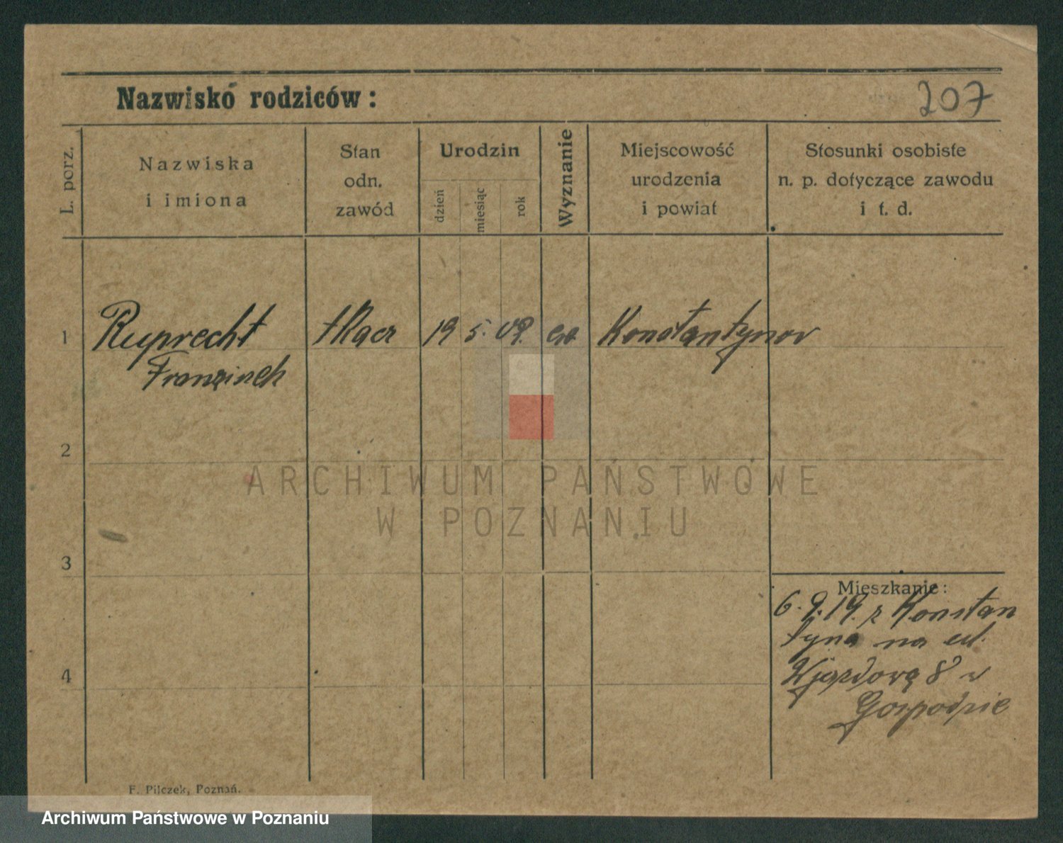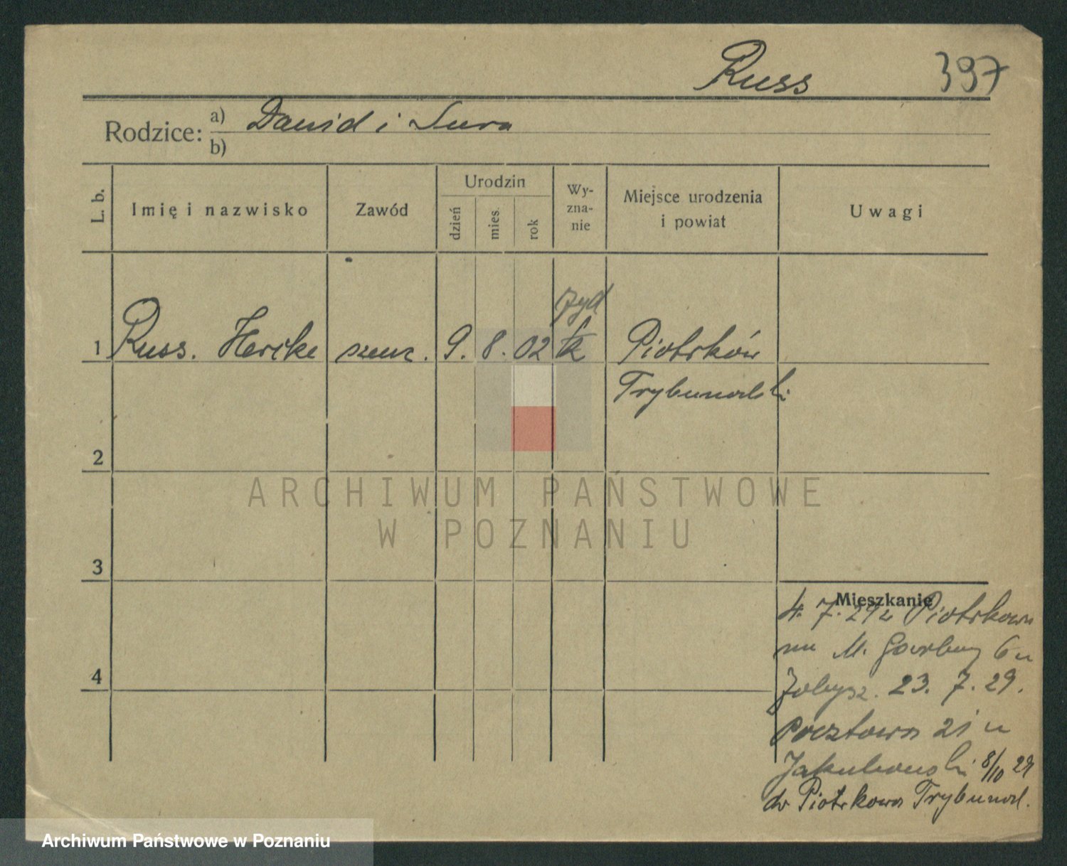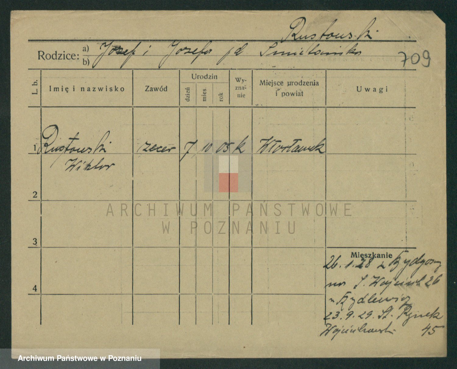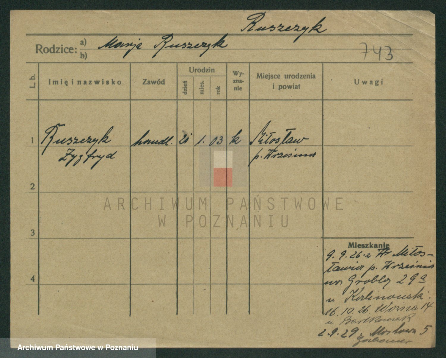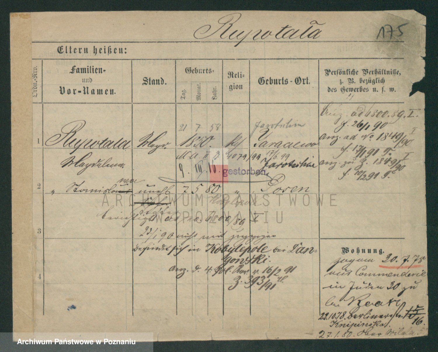 Podgląd karty osobowej dostępny jest po kliknięciu na nazwisko lub ikonkę karty. Można dokonywać powiększenia (ikony na górze) lub przechodzić między kolejnymi skanami (strzałki po bokach).