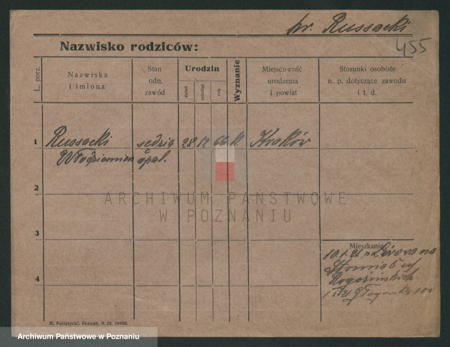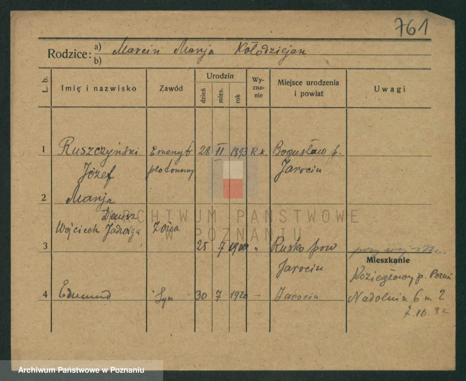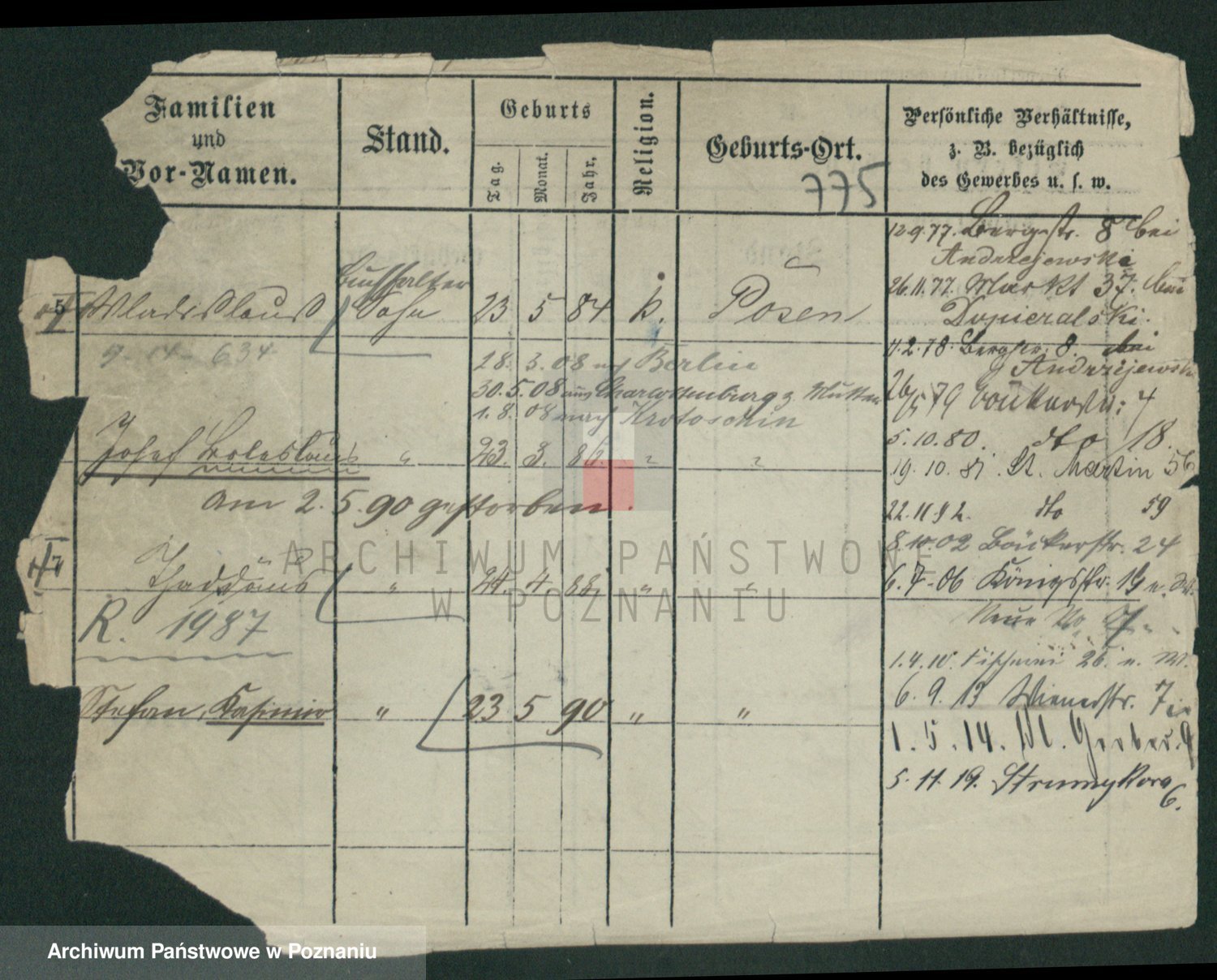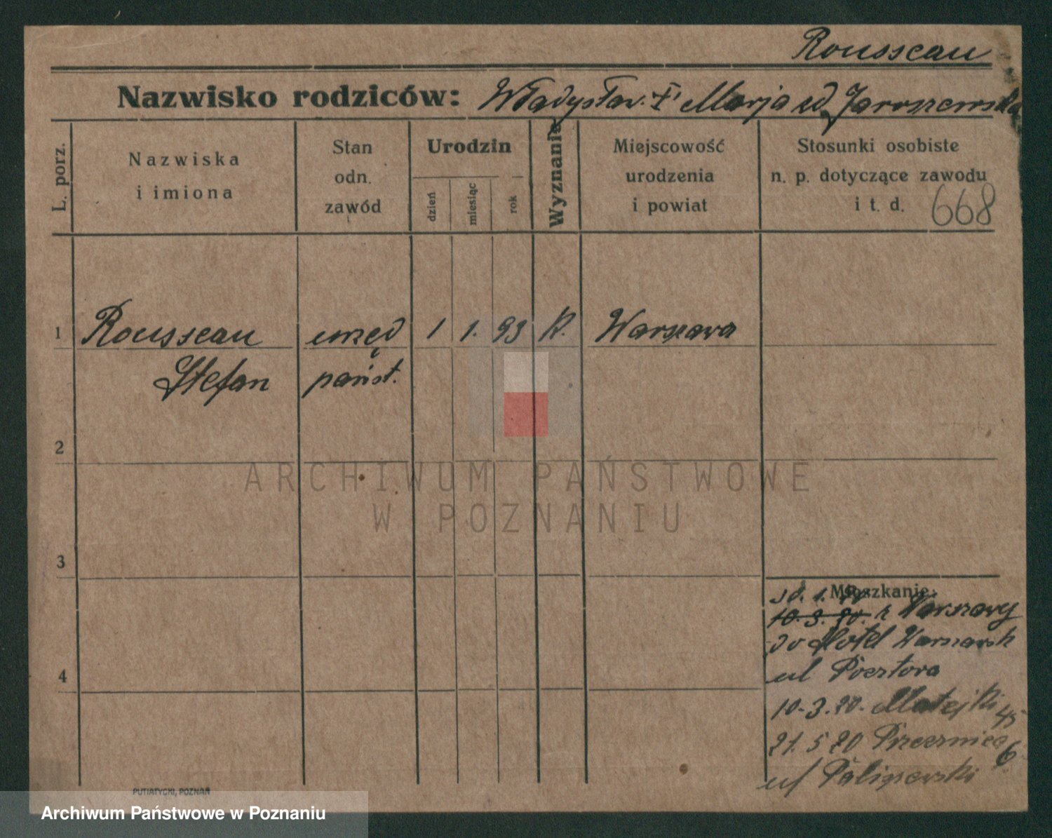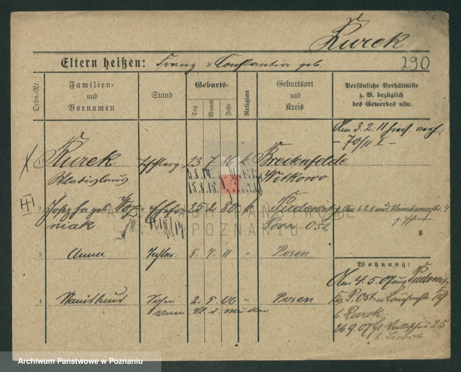 Podgląd karty osobowej dostępny jest po kliknięciu na nazwisko lub ikonkę karty. Można dokonywać powiększenia (ikony na górze) lub przechodzić między kolejnymi skanami (strzałki po bokach).