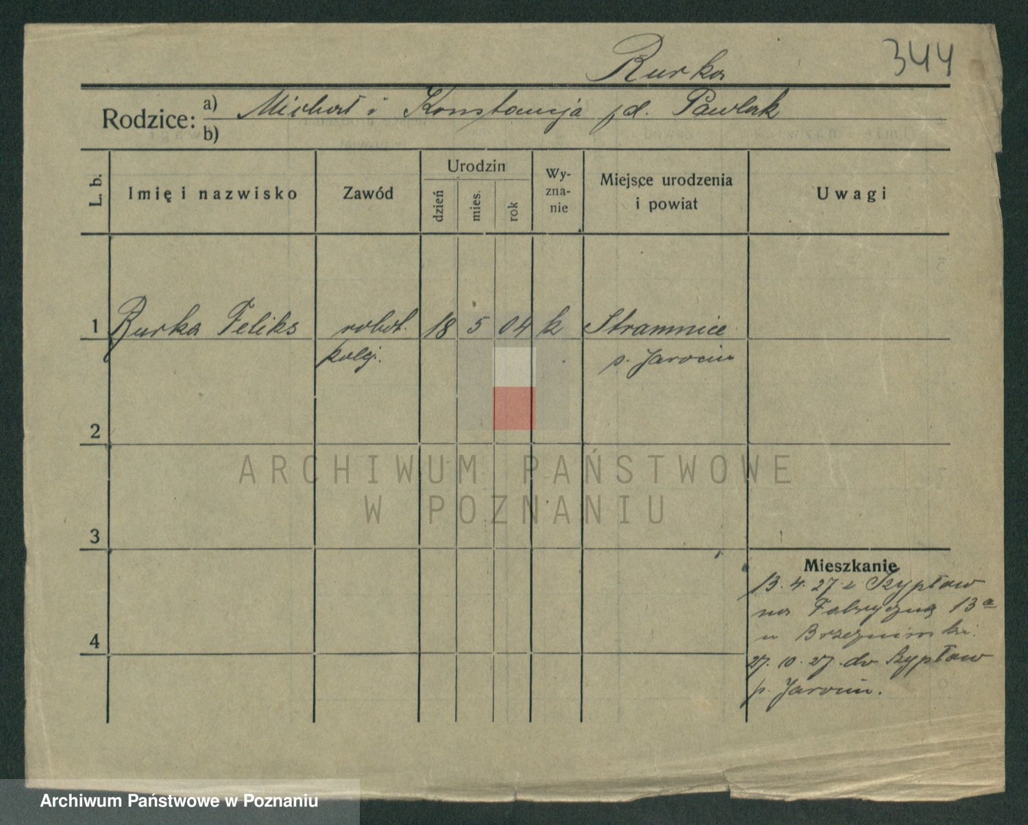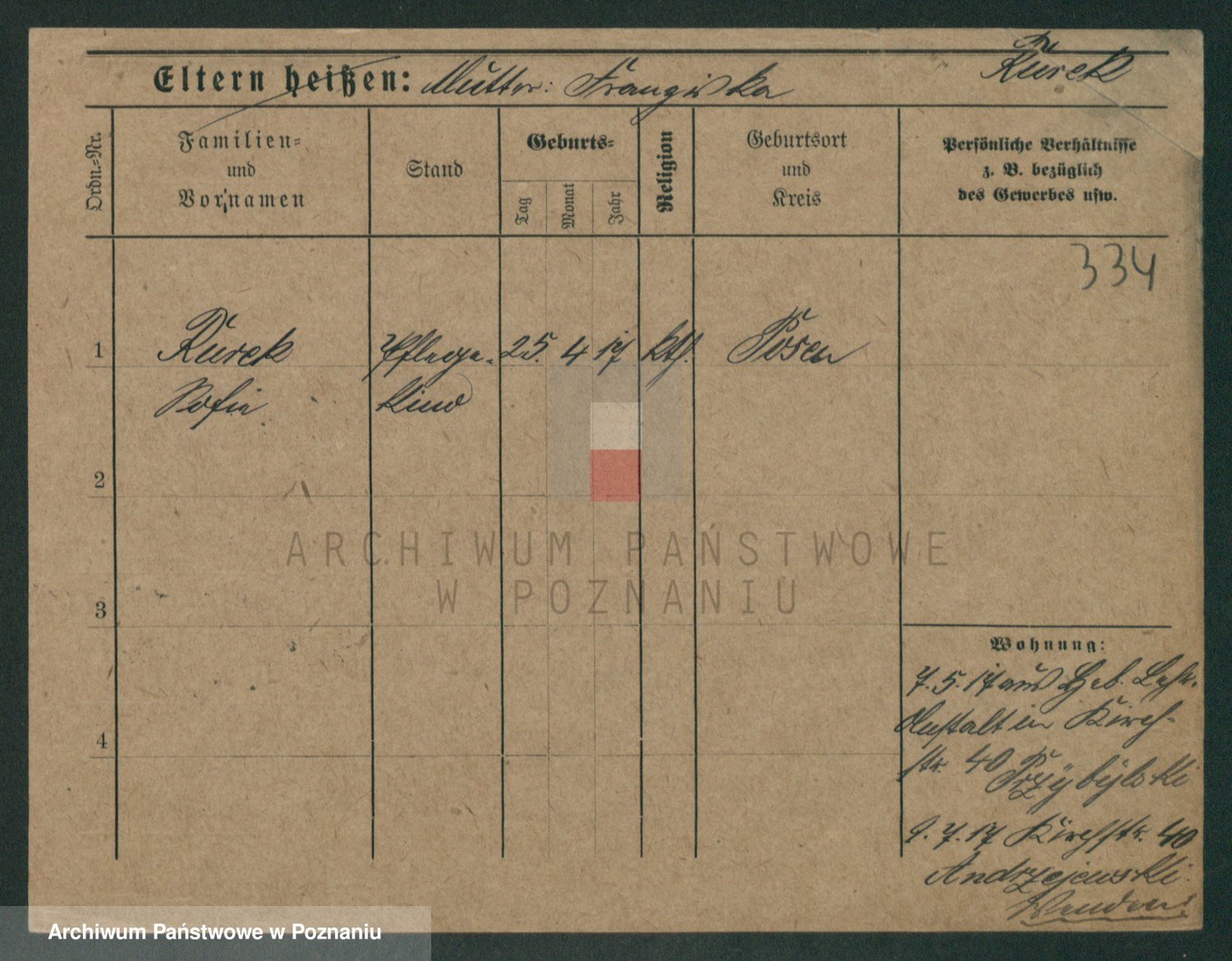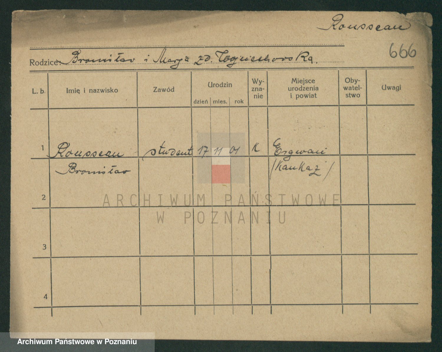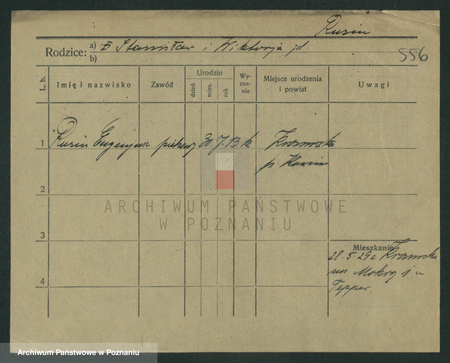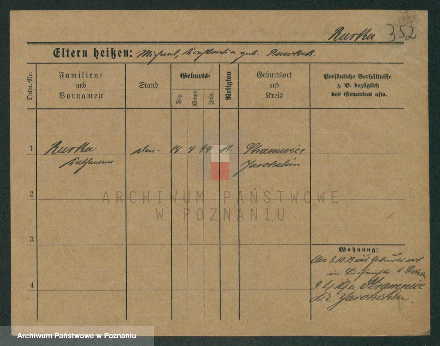 Podgląd karty osobowej dostępny jest po kliknięciu na nazwisko lub ikonkę karty. Można dokonywać powiększenia (ikony na górze) lub przechodzić między kolejnymi skanami (strzałki po bokach).