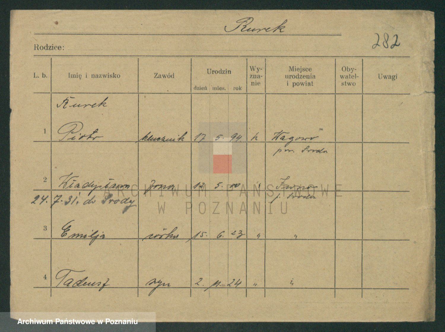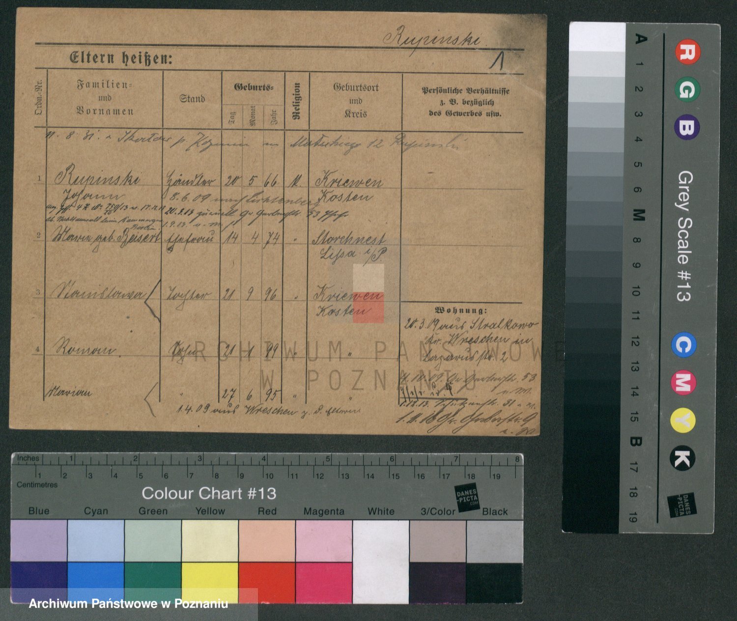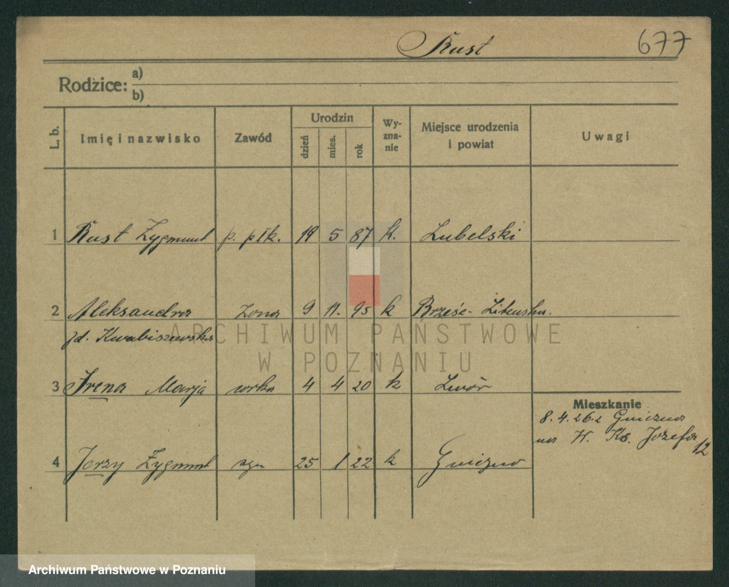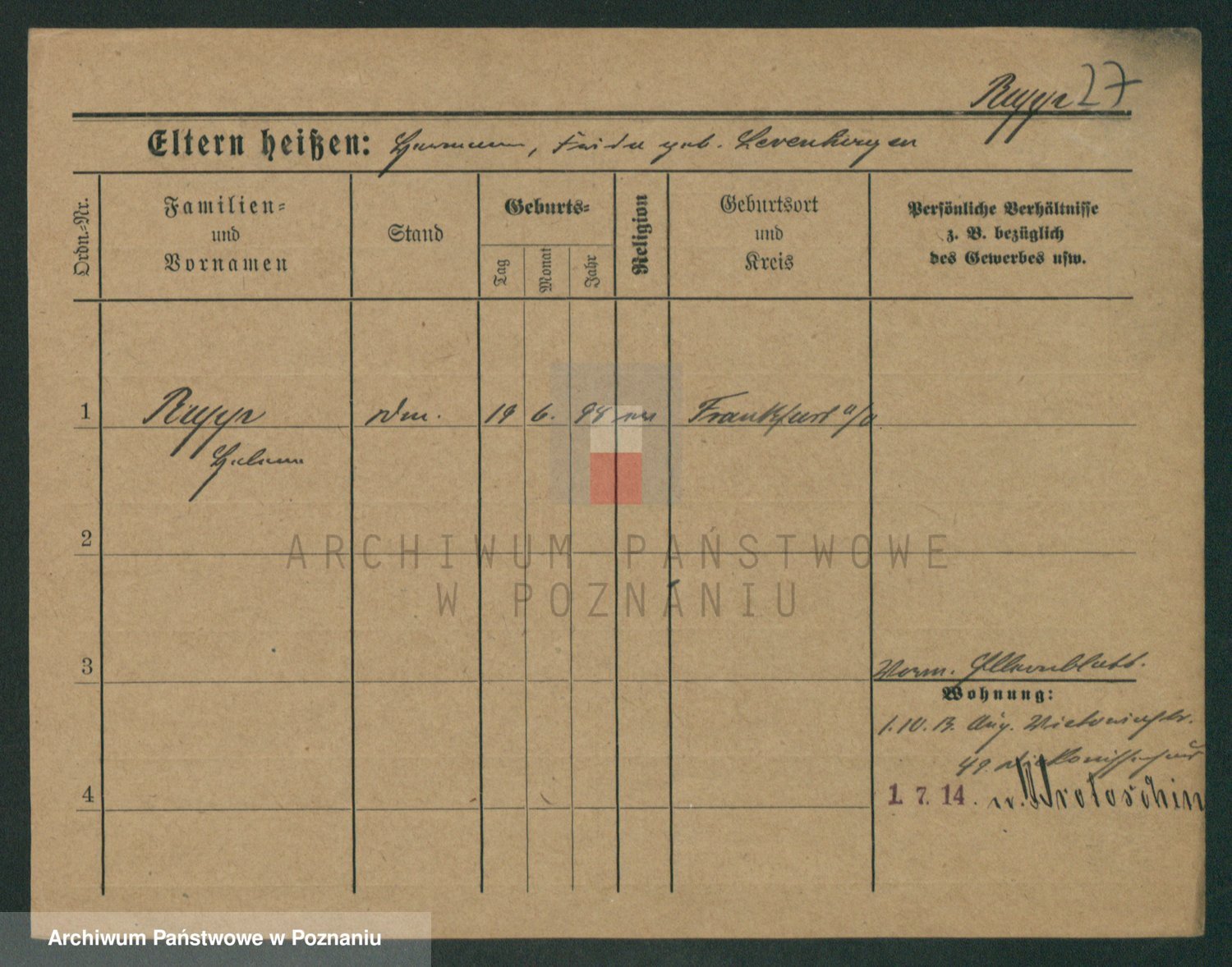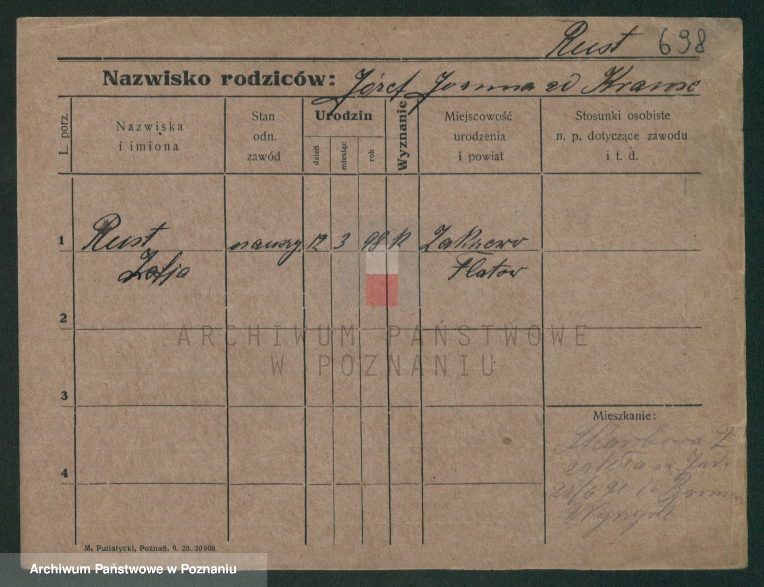 Podgląd karty osobowej dostępny jest po kliknięciu na nazwisko lub ikonkę karty. Można dokonywać powiększenia (ikony na górze) lub przechodzić między kolejnymi skanami (strzałki po bokach).