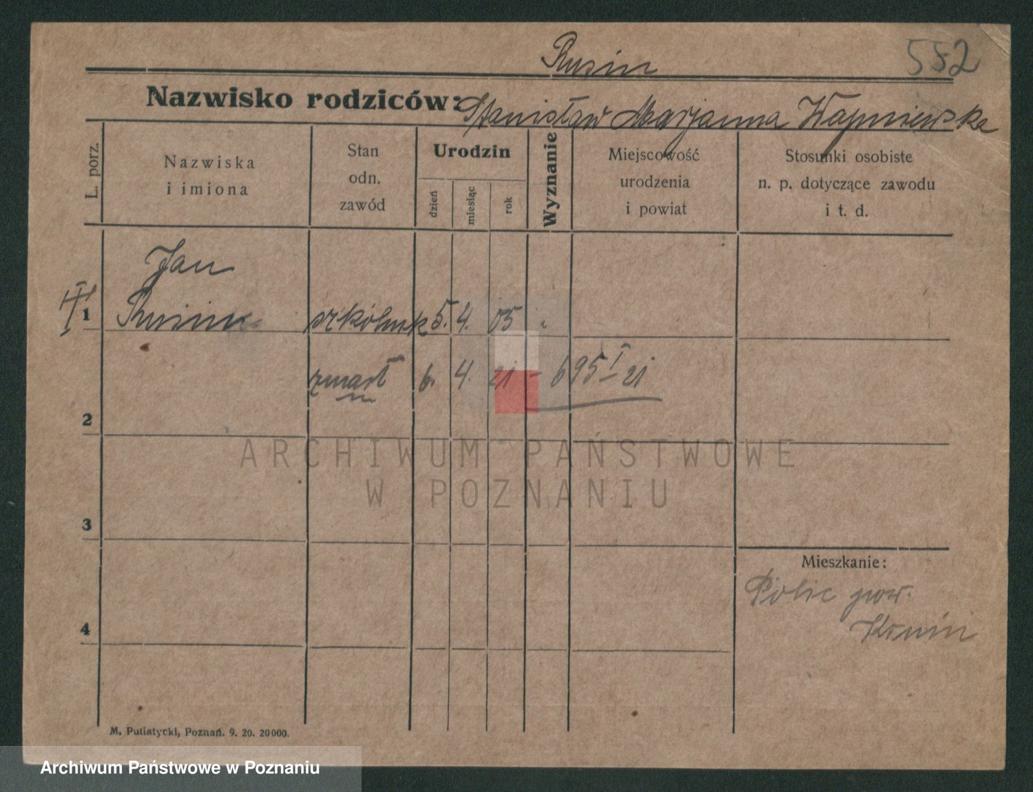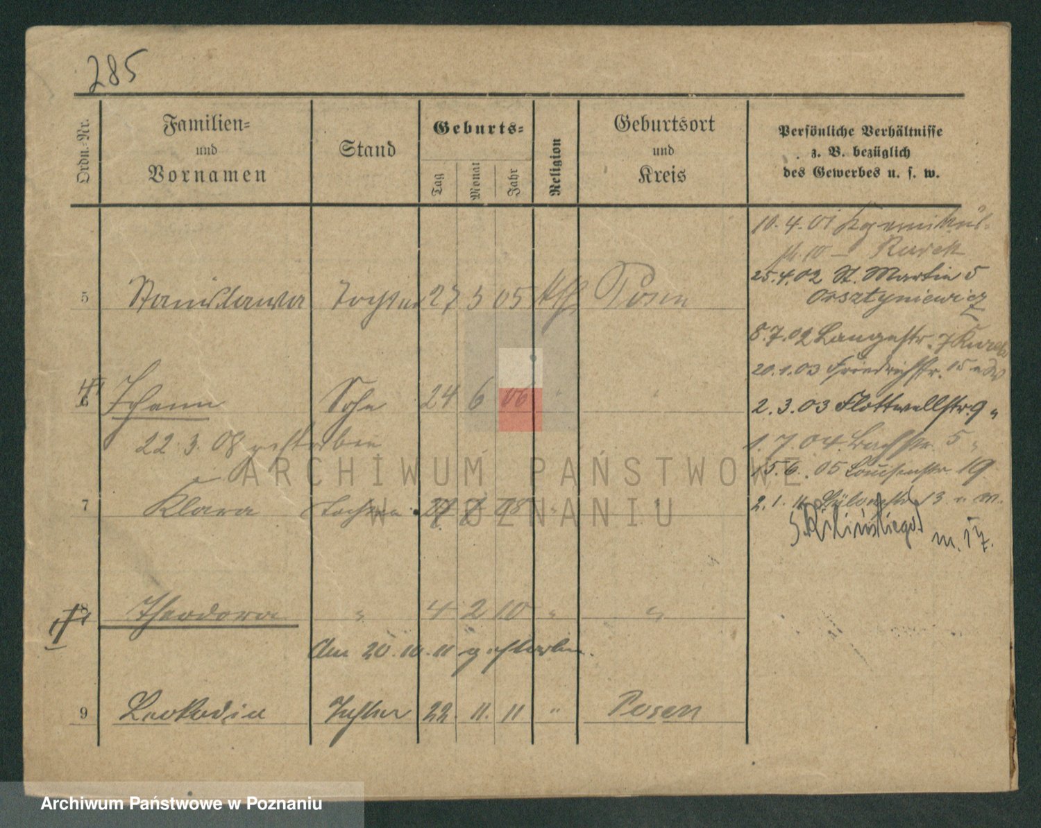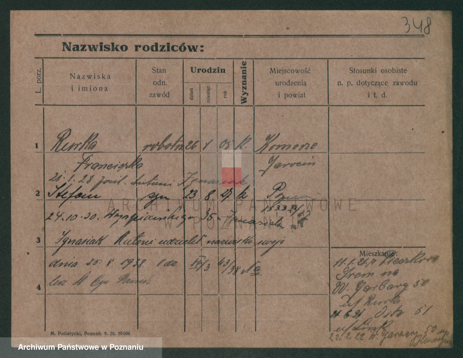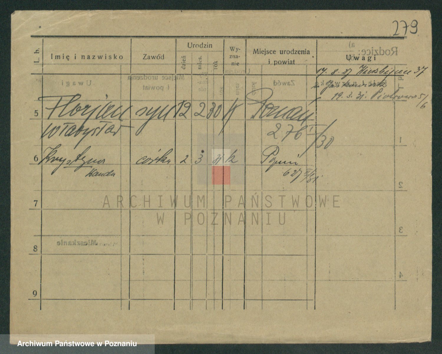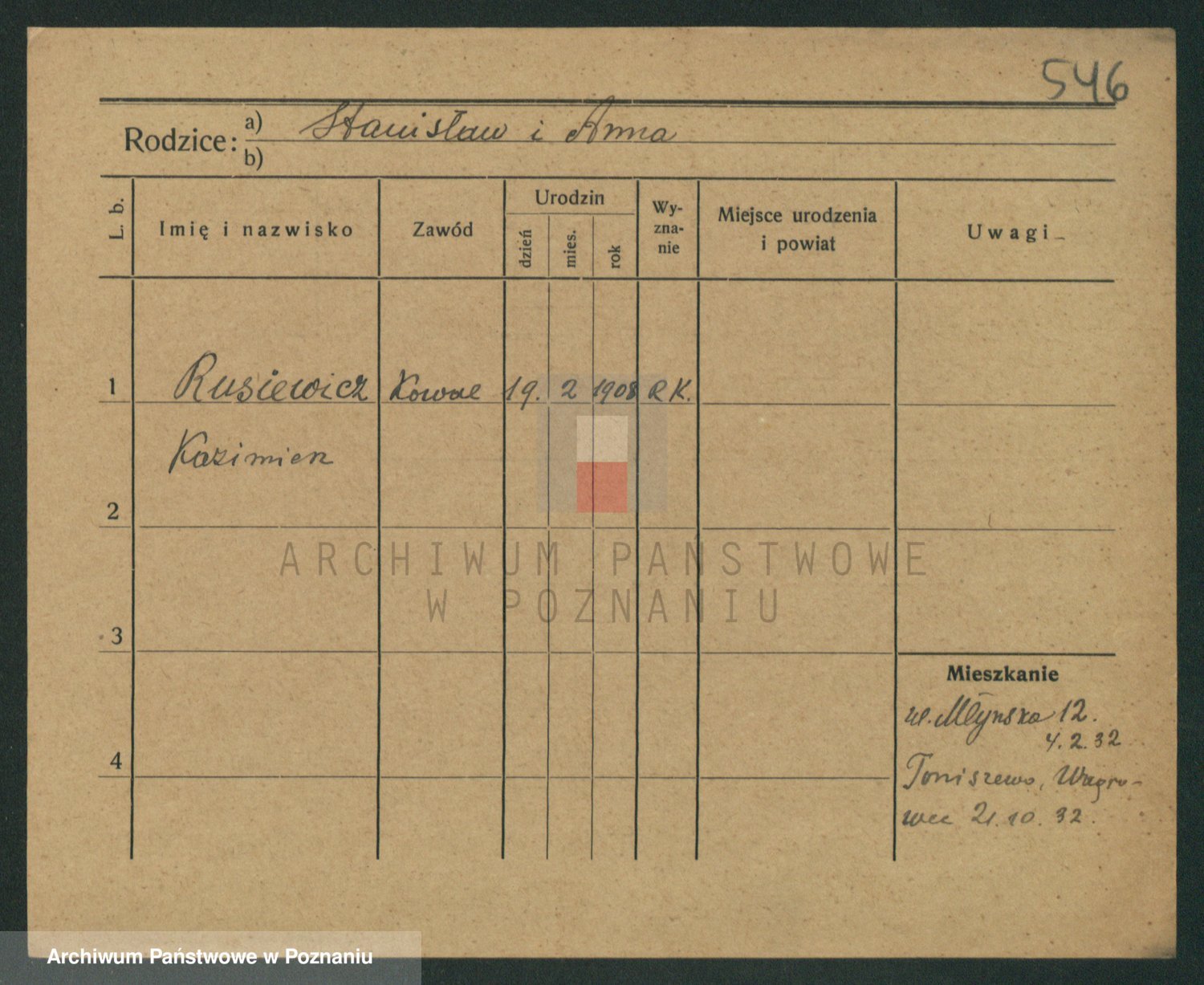 Podgląd karty osobowej dostępny jest po kliknięciu na nazwisko lub ikonkę karty. Można dokonywać powiększenia (ikony na górze) lub przechodzić między kolejnymi skanami (strzałki po bokach).