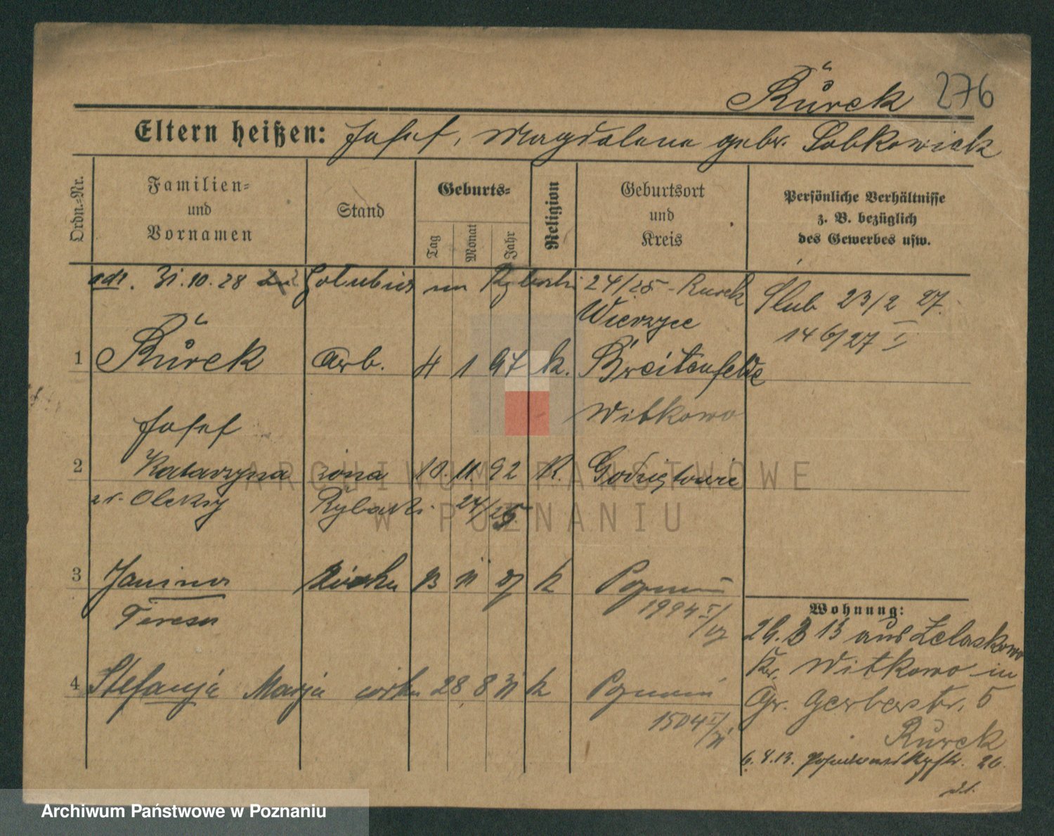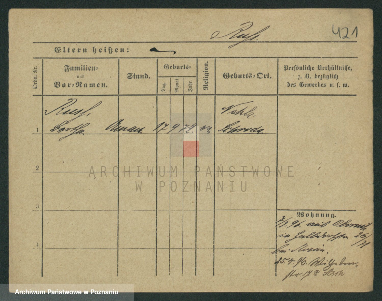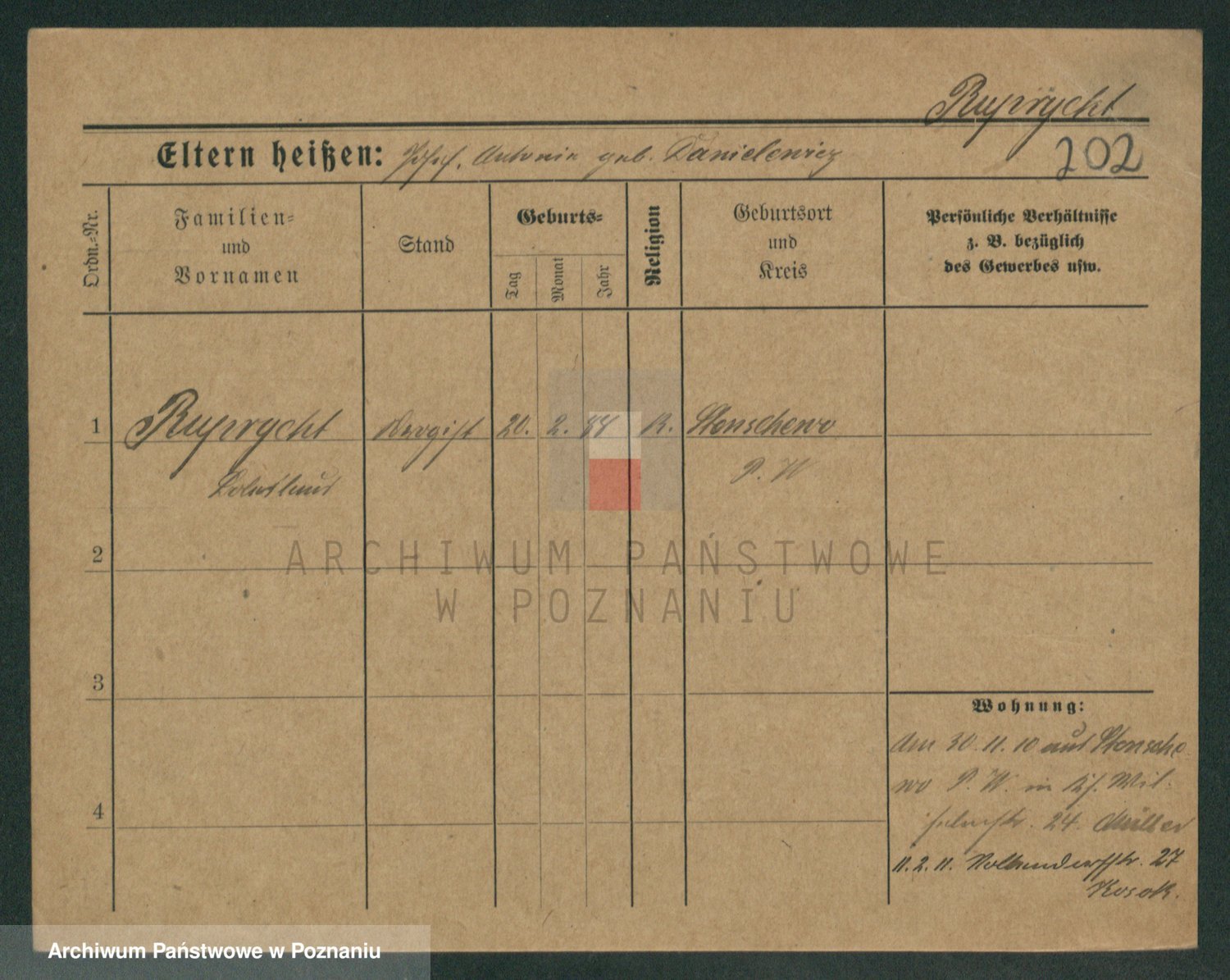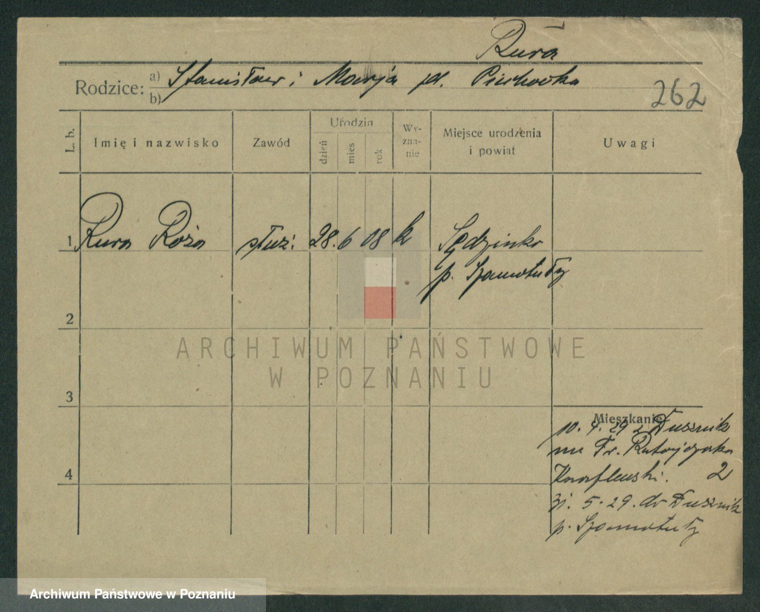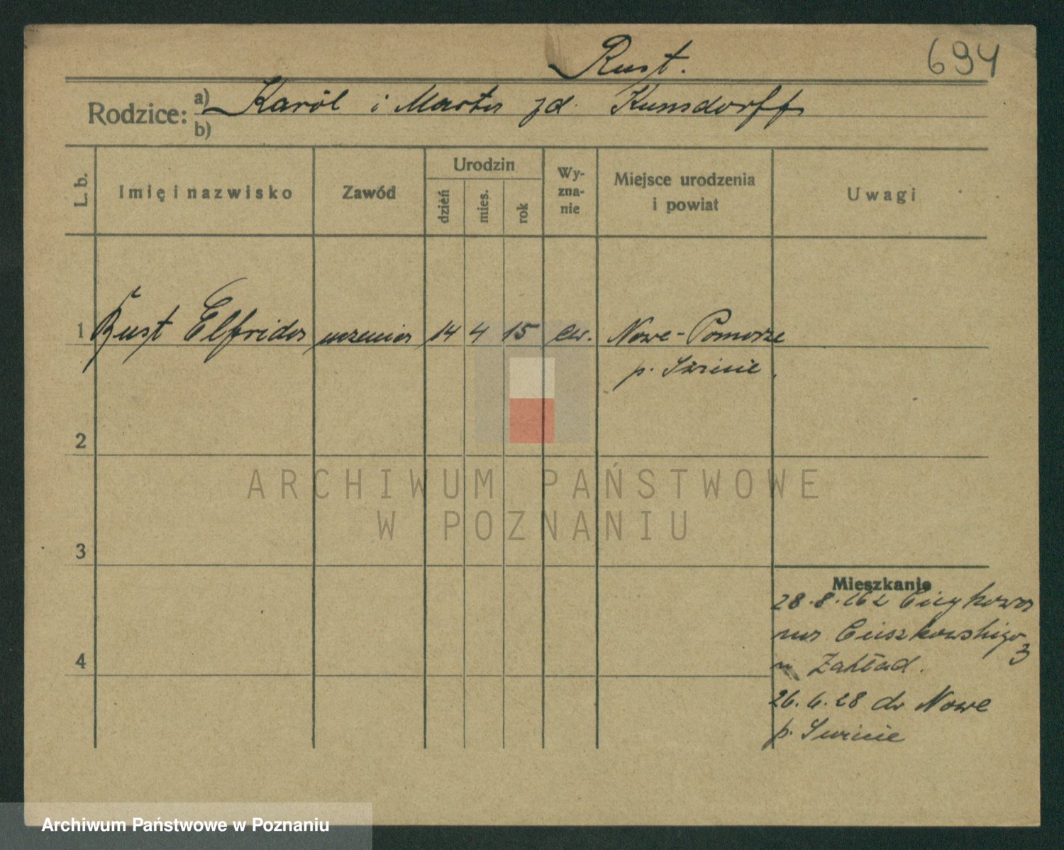 Podgląd karty osobowej dostępny jest po kliknięciu na nazwisko lub ikonkę karty. Można dokonywać powiększenia (ikony na górze) lub przechodzić między kolejnymi skanami (strzałki po bokach).