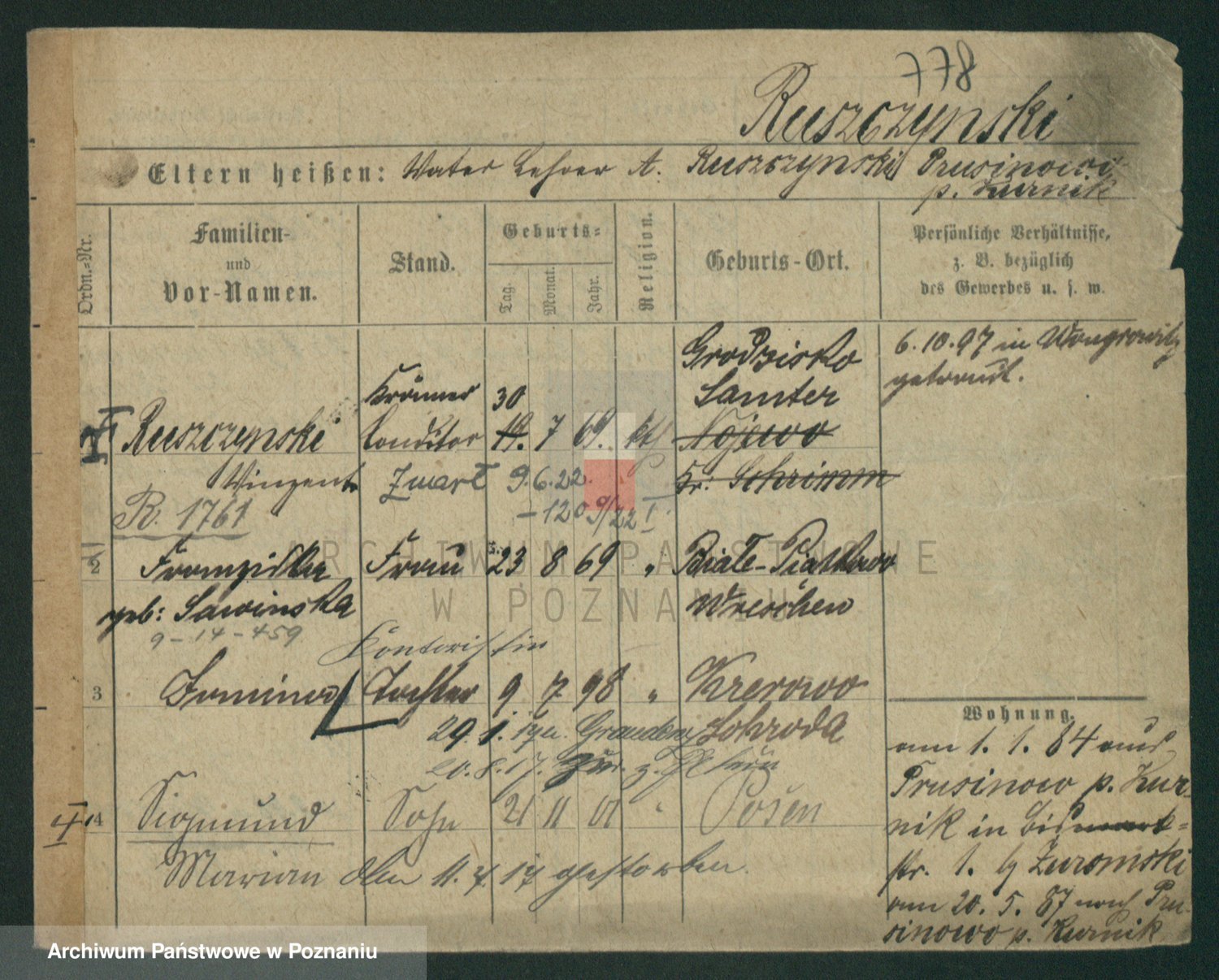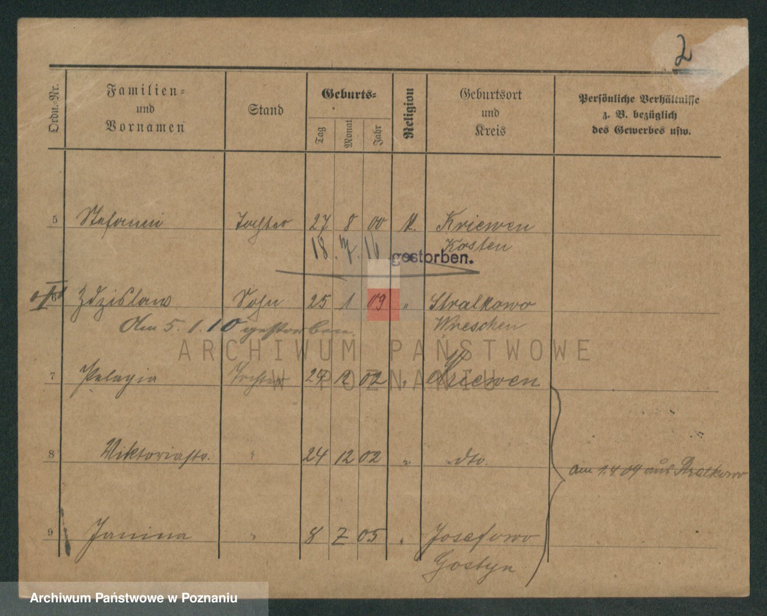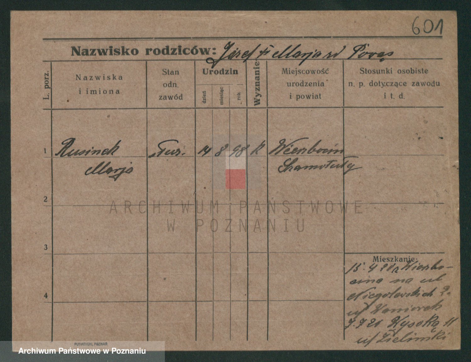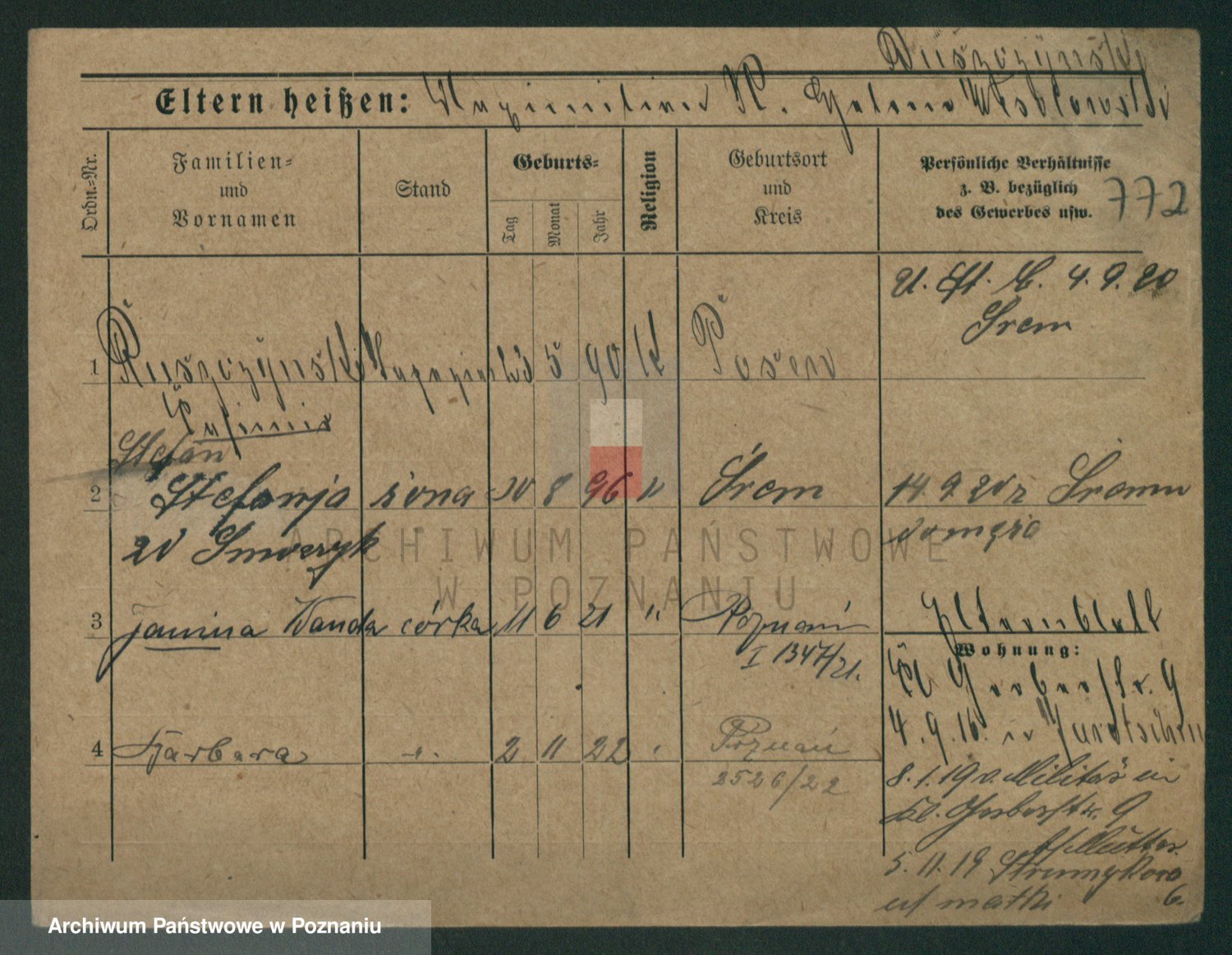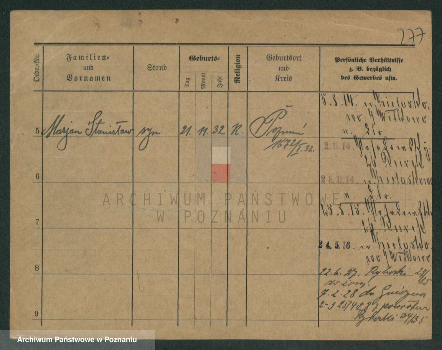 Podgląd karty osobowej dostępny jest po kliknięciu na nazwisko lub ikonkę karty. Można dokonywać powiększenia (ikony na górze) lub przechodzić między kolejnymi skanami (strzałki po bokach).
