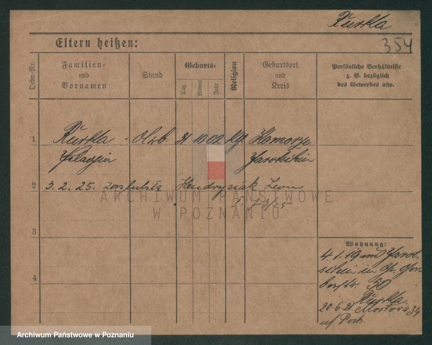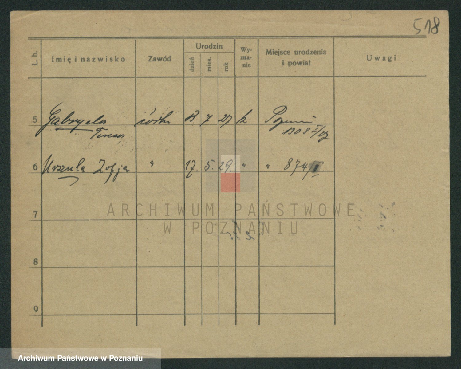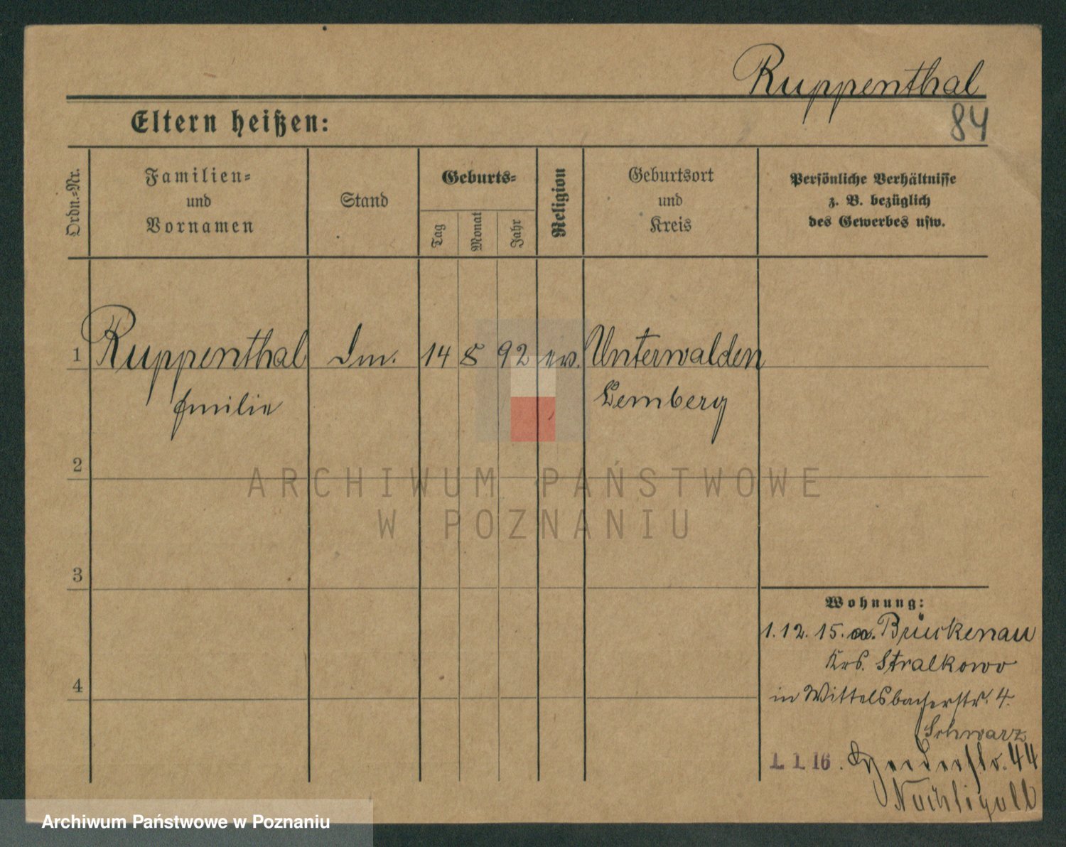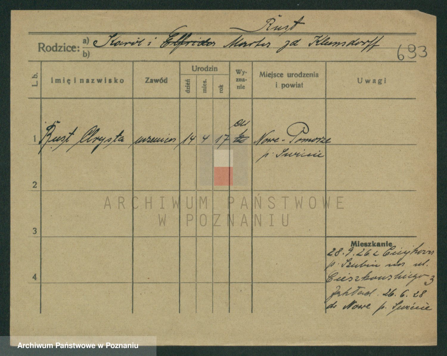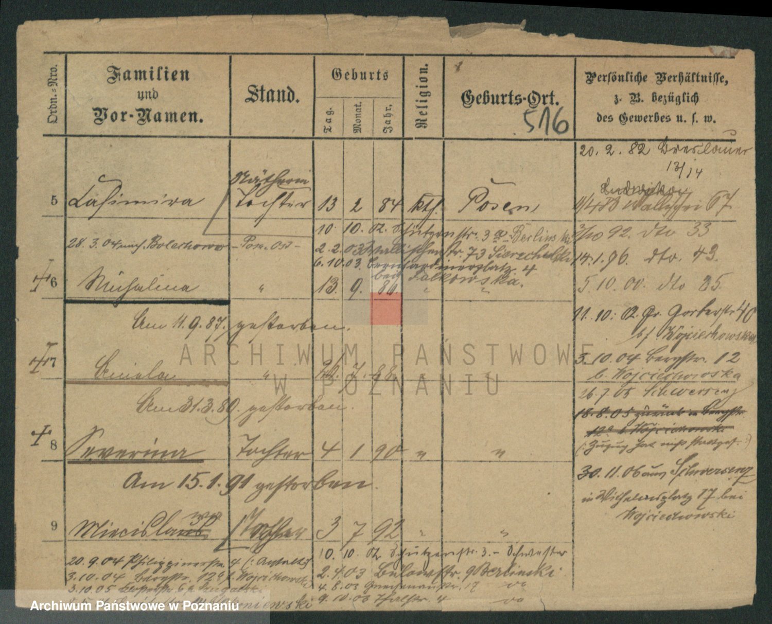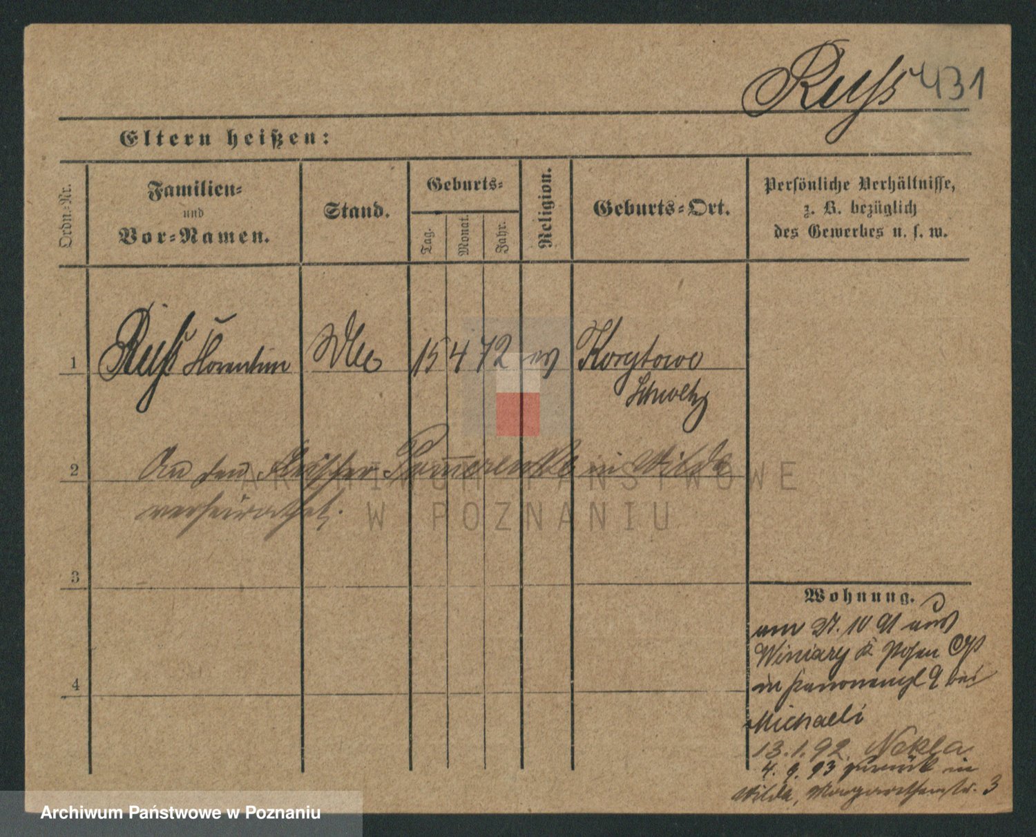 Podgląd karty osobowej dostępny jest po kliknięciu na nazwisko lub ikonkę karty. Można dokonywać powiększenia (ikony na górze) lub przechodzić między kolejnymi skanami (strzałki po bokach).