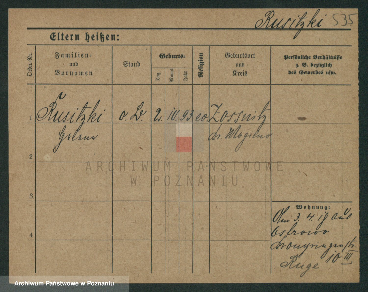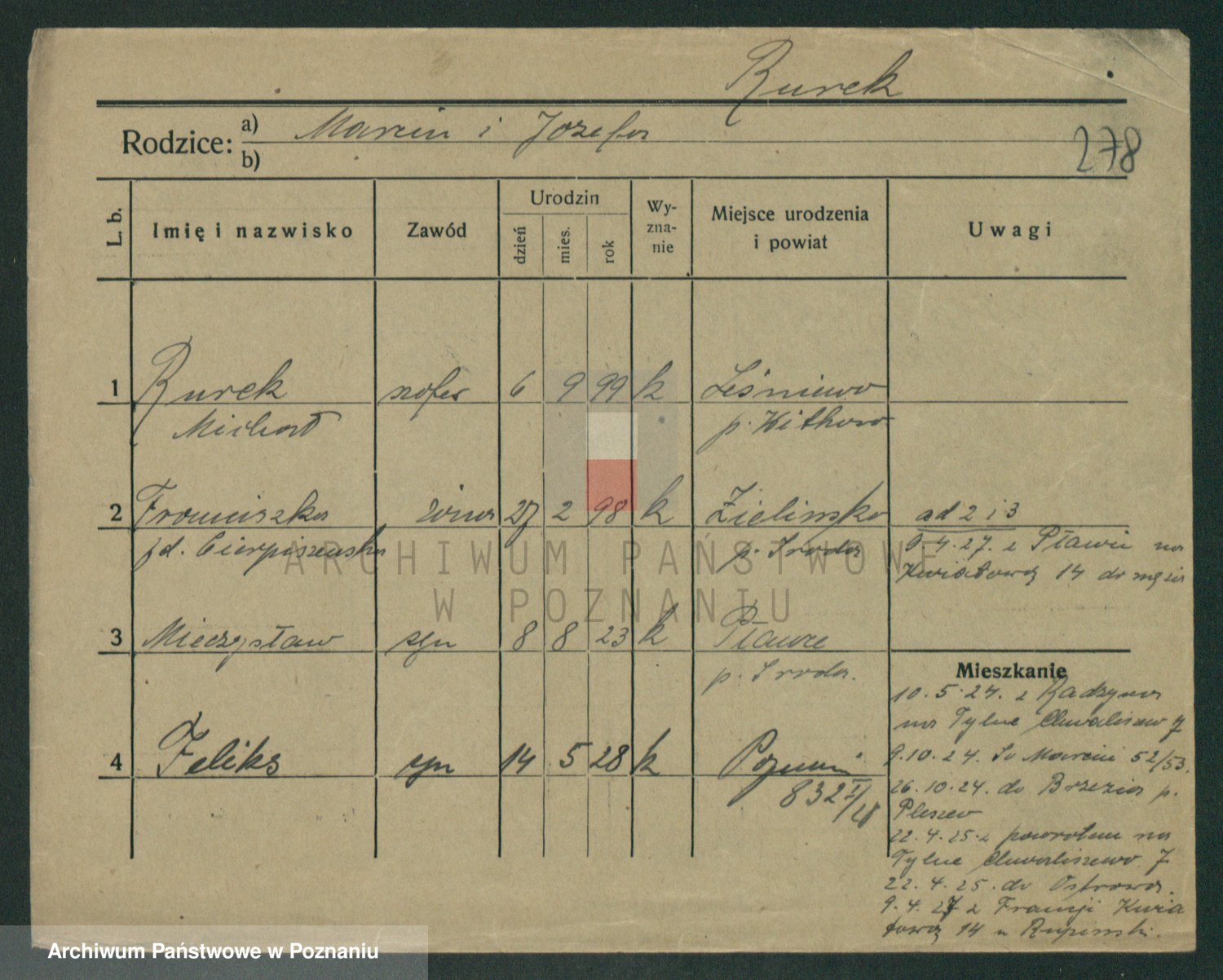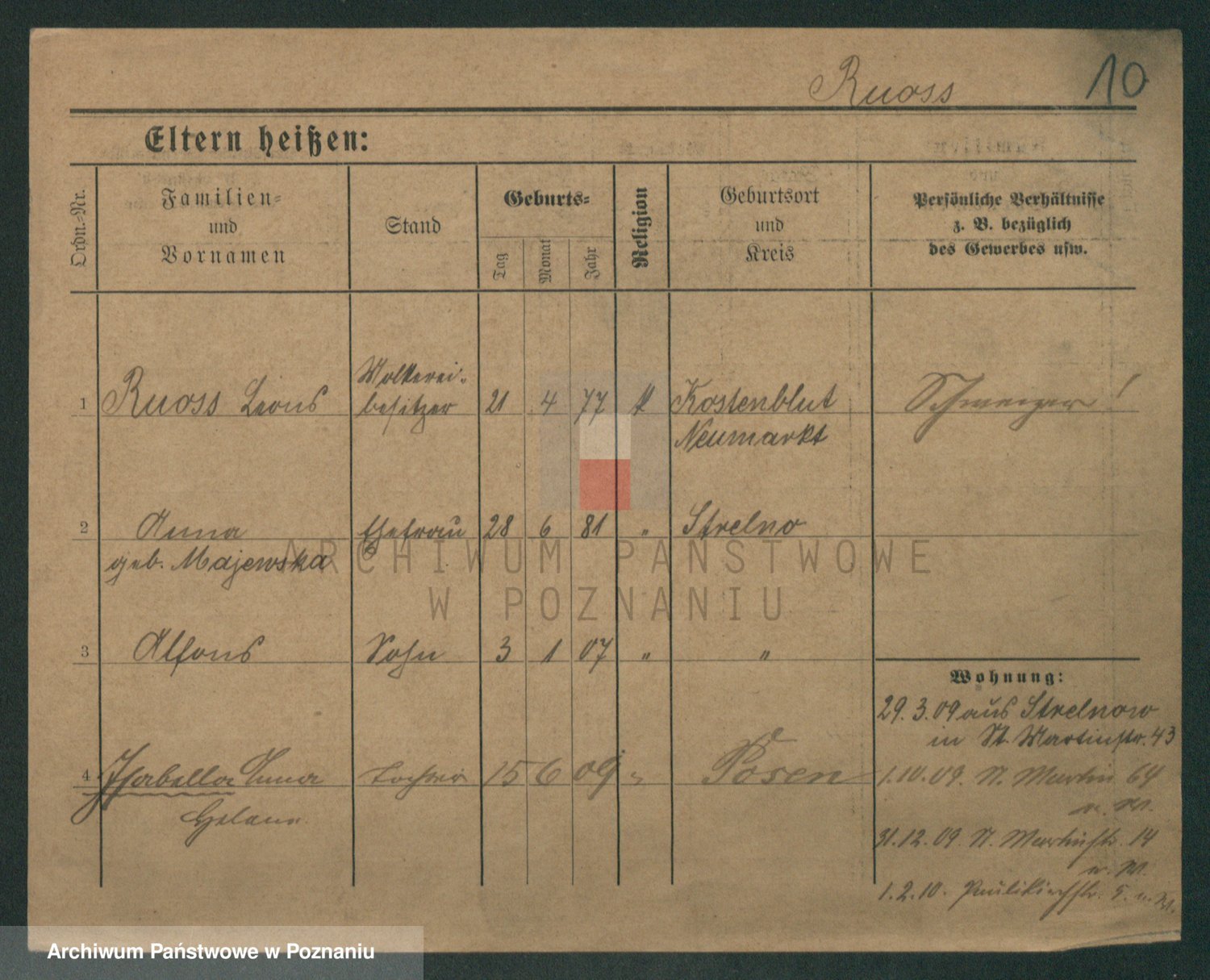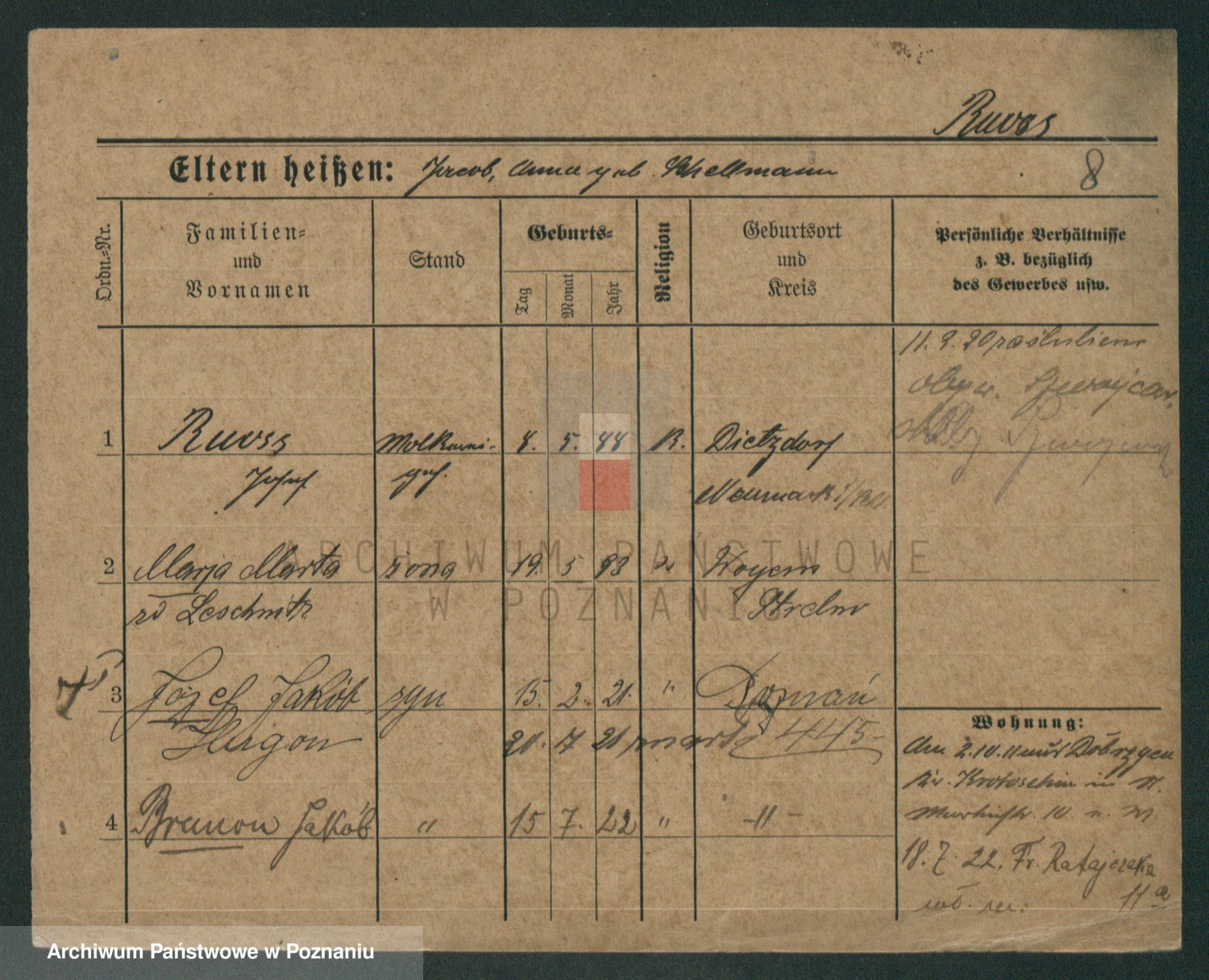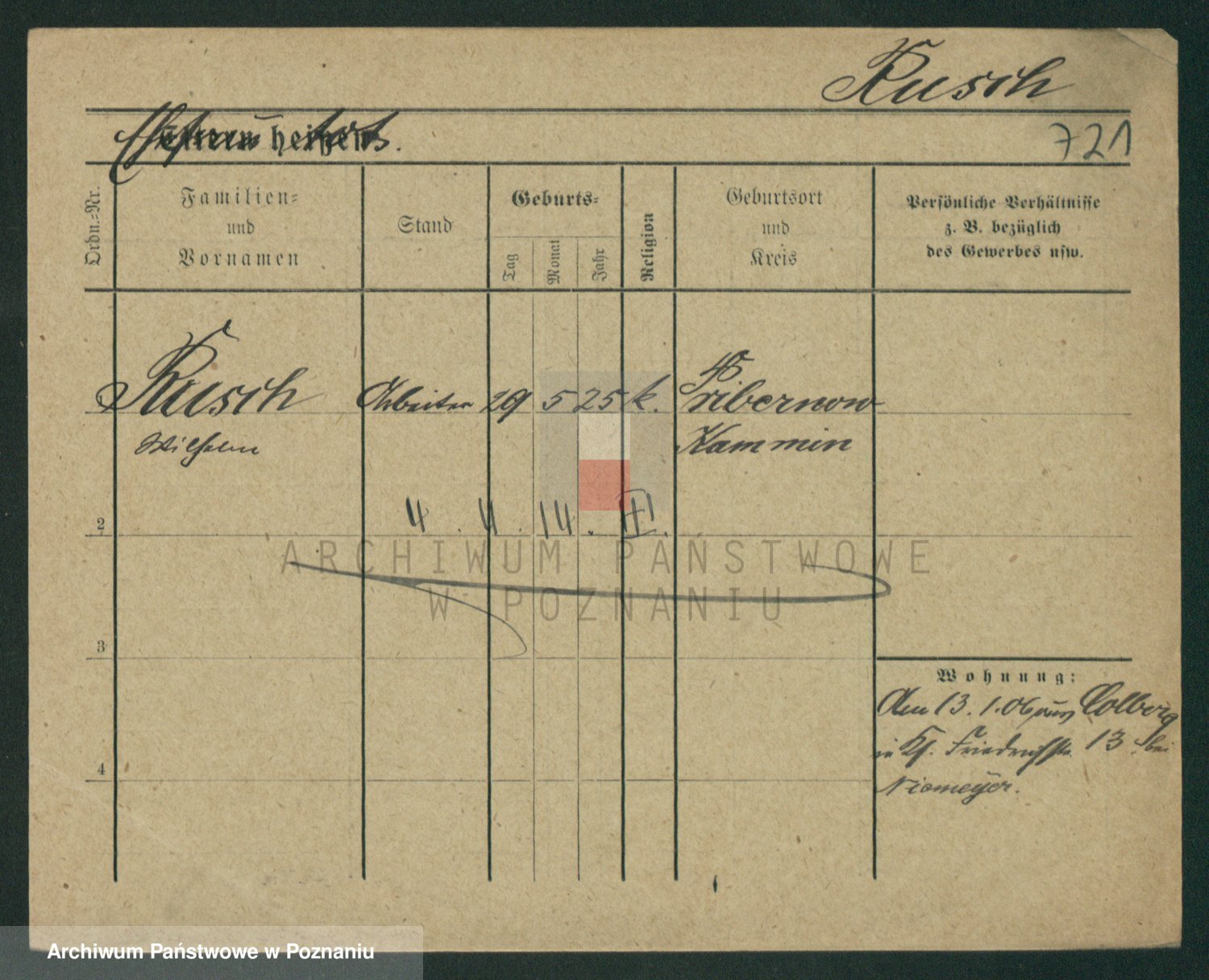 Podgląd karty osobowej dostępny jest po kliknięciu na nazwisko lub ikonkę karty. Można dokonywać powiększenia (ikony na górze) lub przechodzić między kolejnymi skanami (strzałki po bokach).