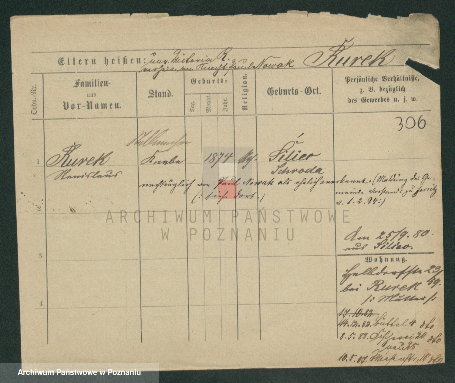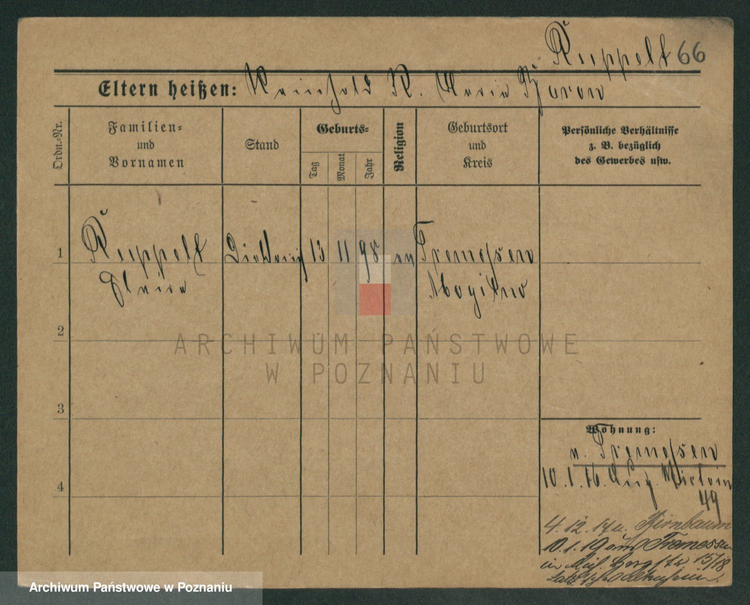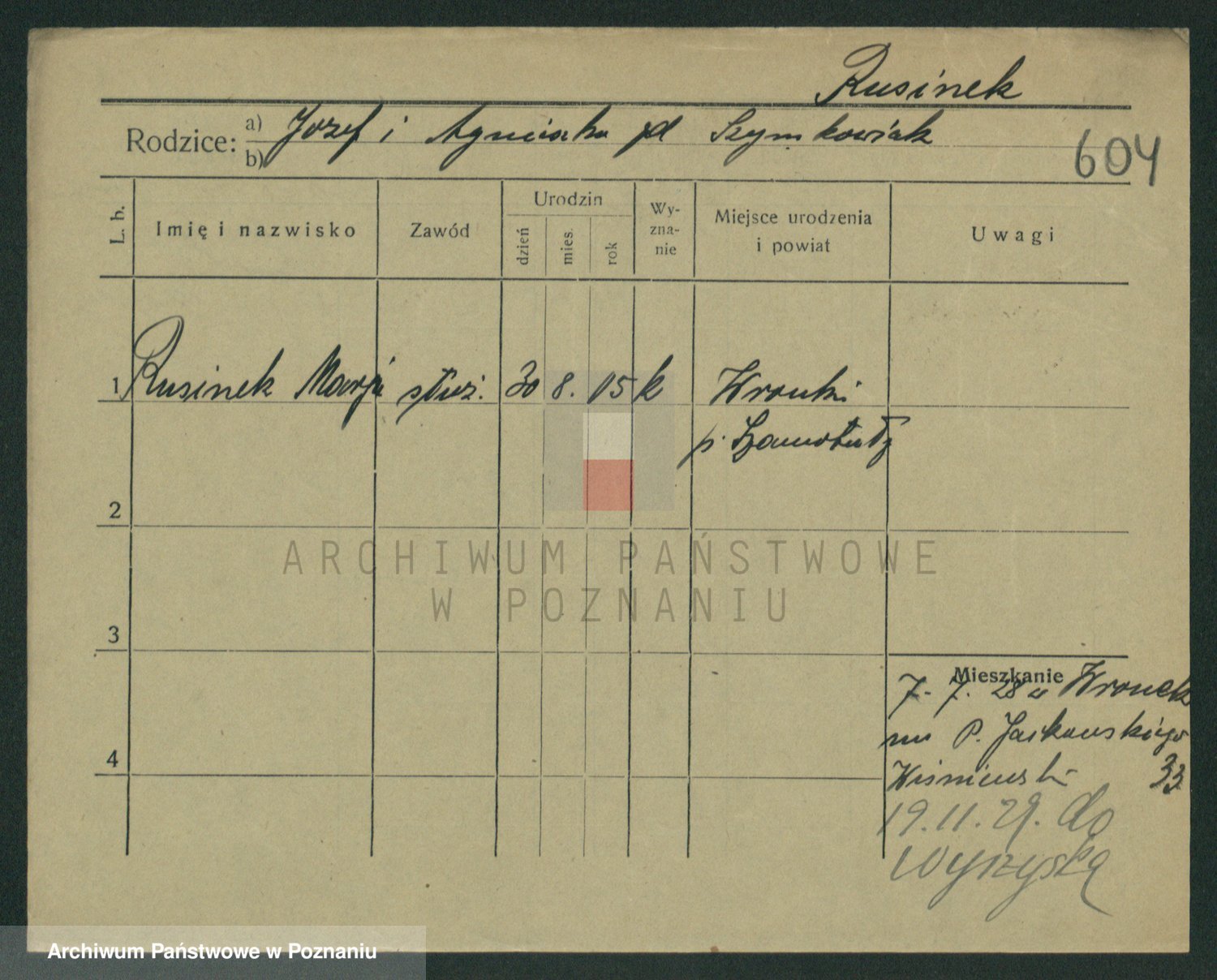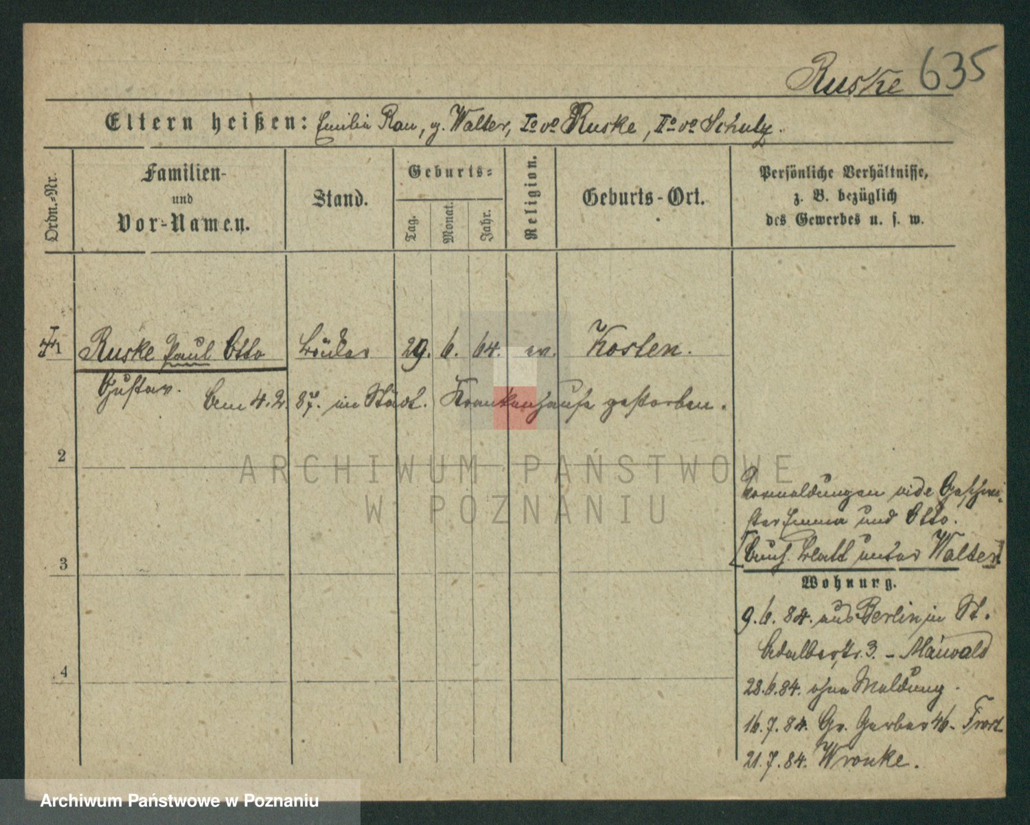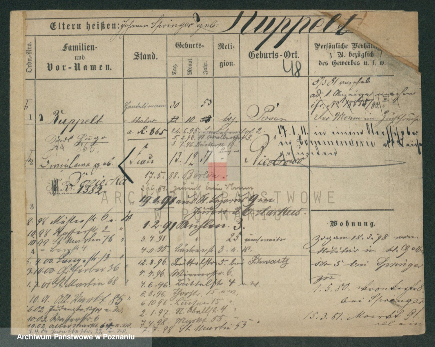 Podgląd karty osobowej dostępny jest po kliknięciu na nazwisko lub ikonkę karty. Można dokonywać powiększenia (ikony na górze) lub przechodzić między kolejnymi skanami (strzałki po bokach).