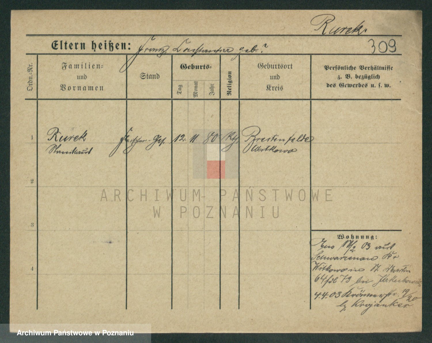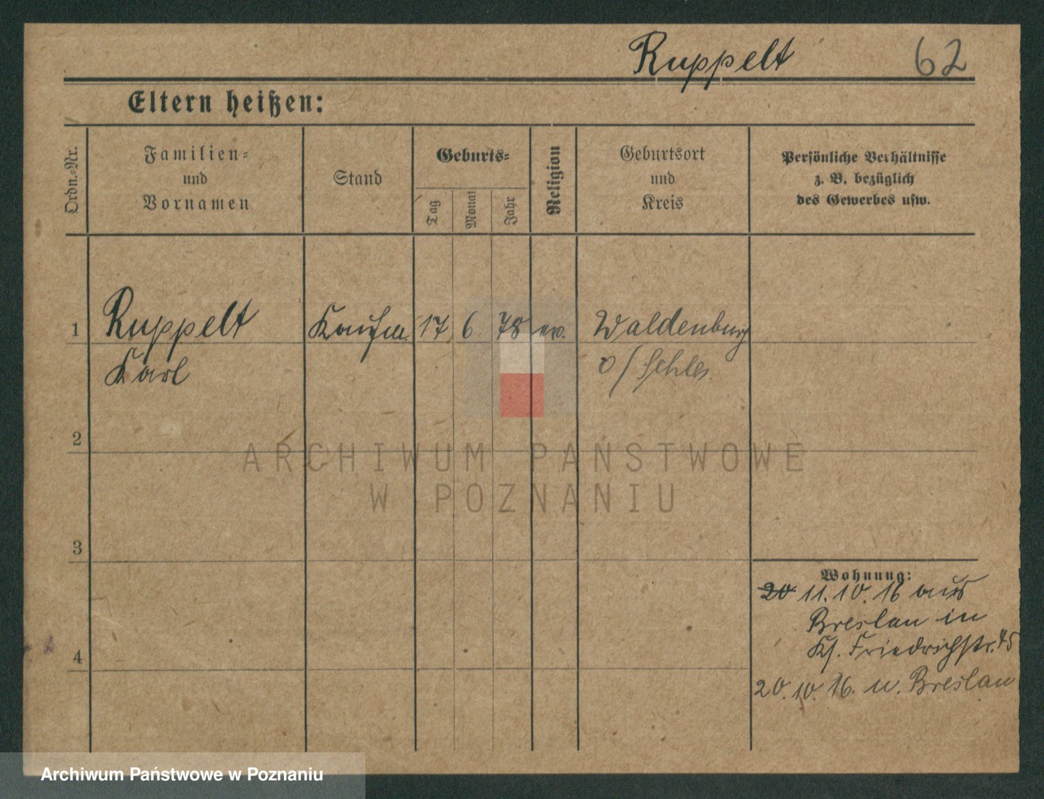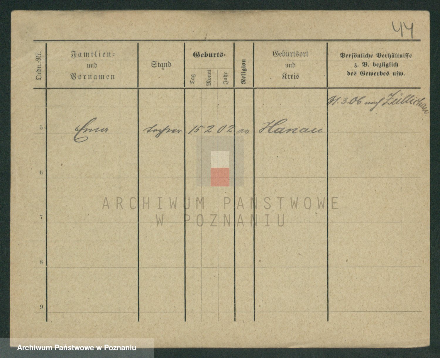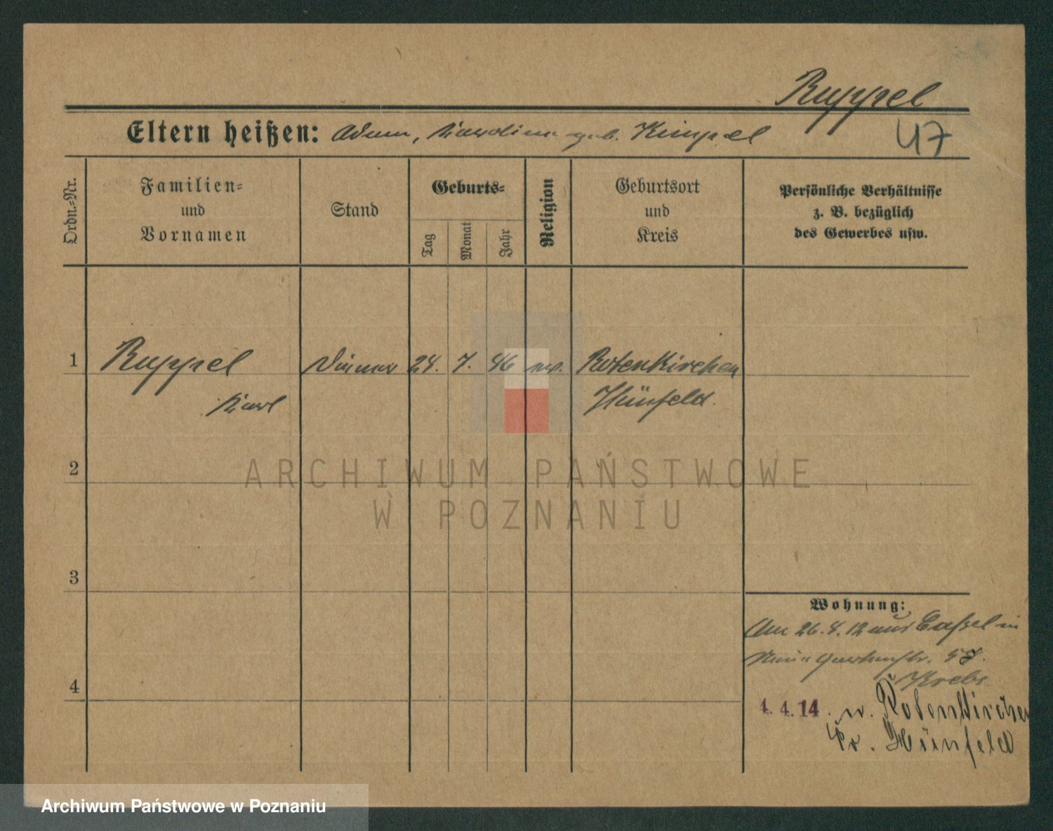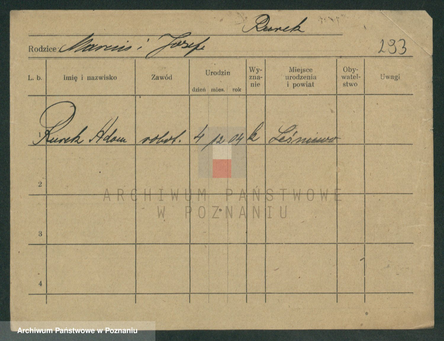 Podgląd karty osobowej dostępny jest po kliknięciu na nazwisko lub ikonkę karty. Można dokonywać powiększenia (ikony na górze) lub przechodzić między kolejnymi skanami (strzałki po bokach).