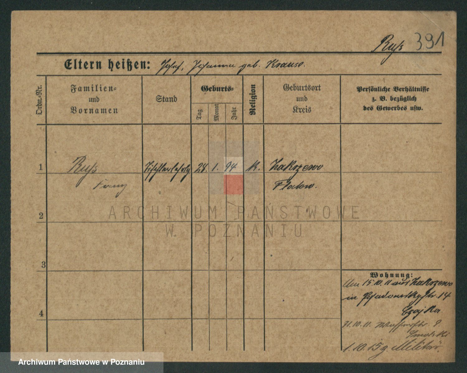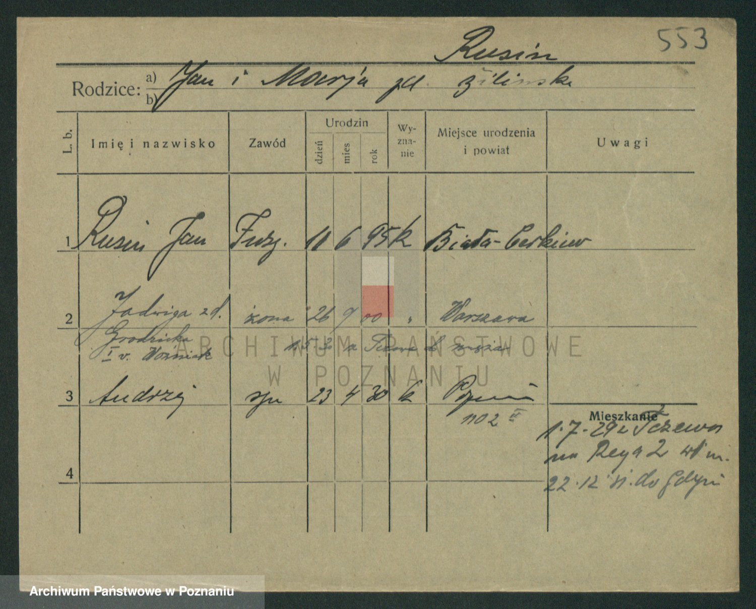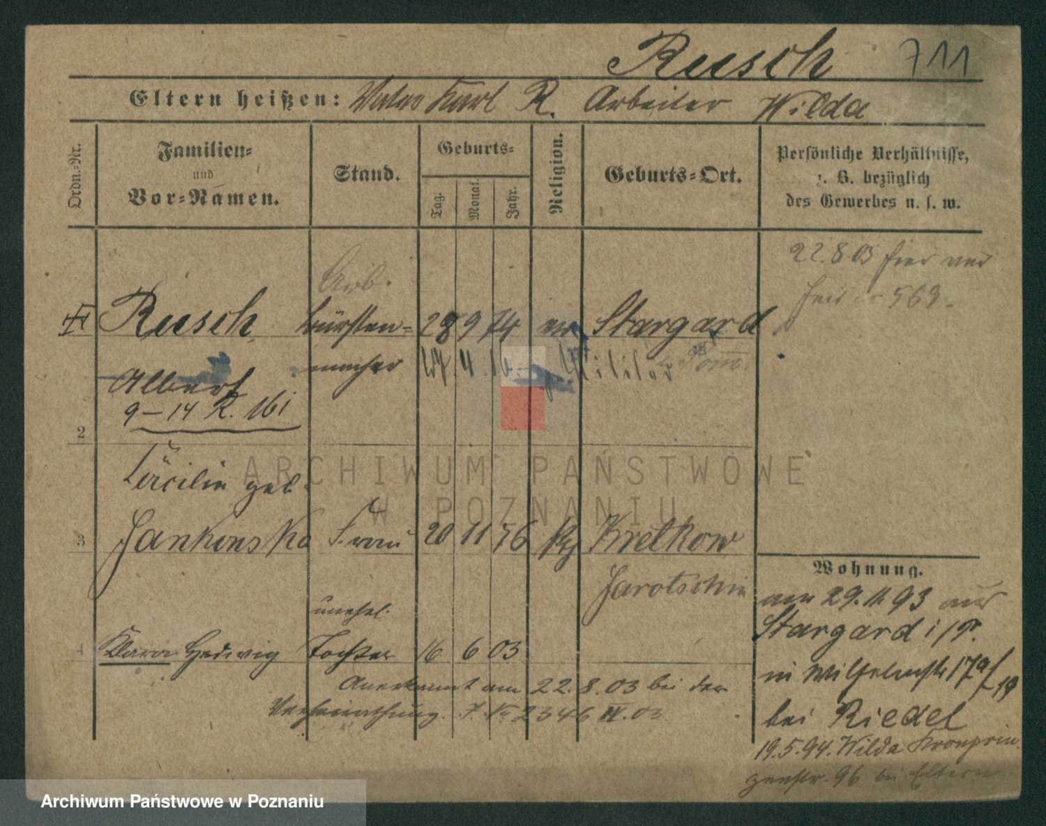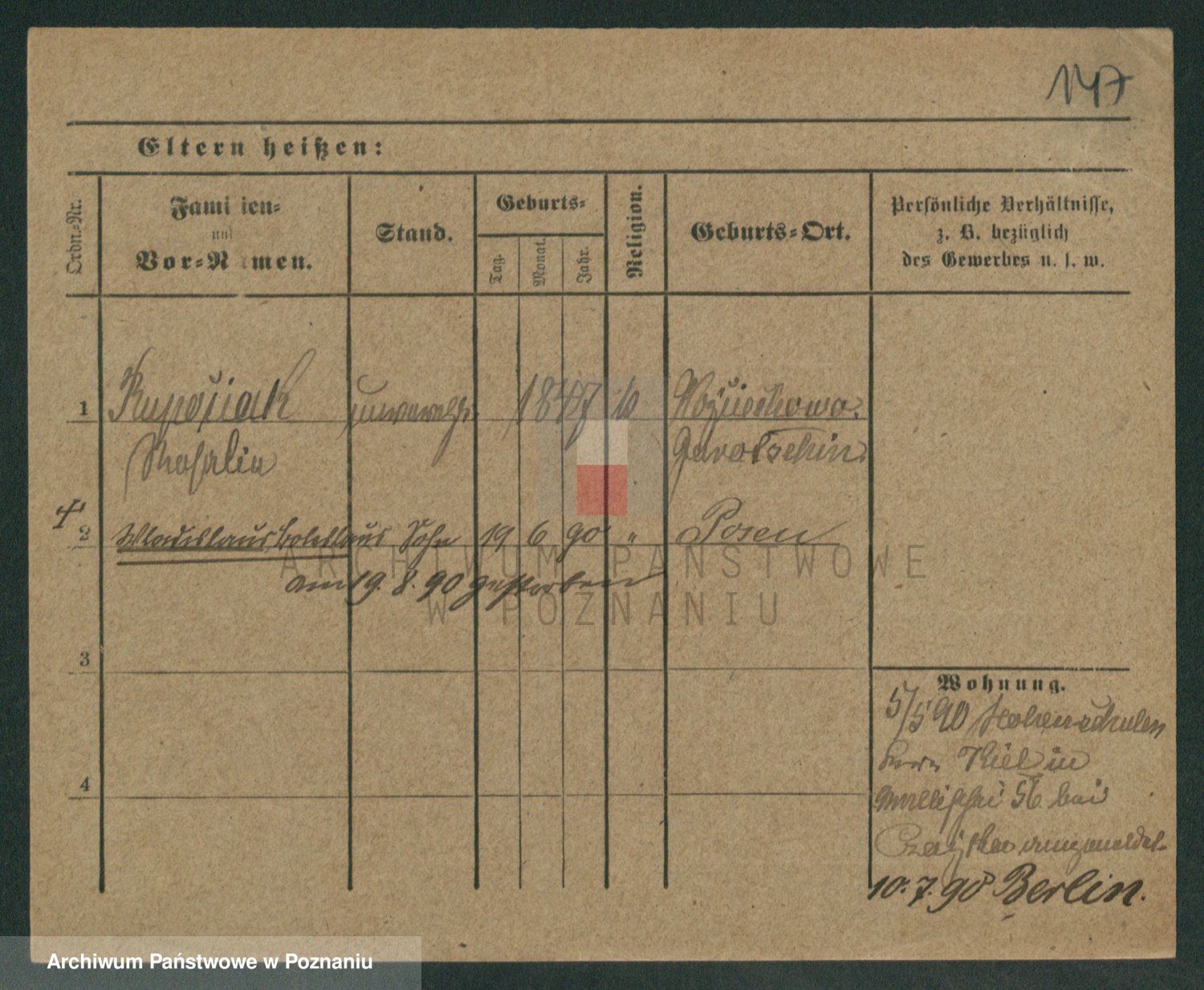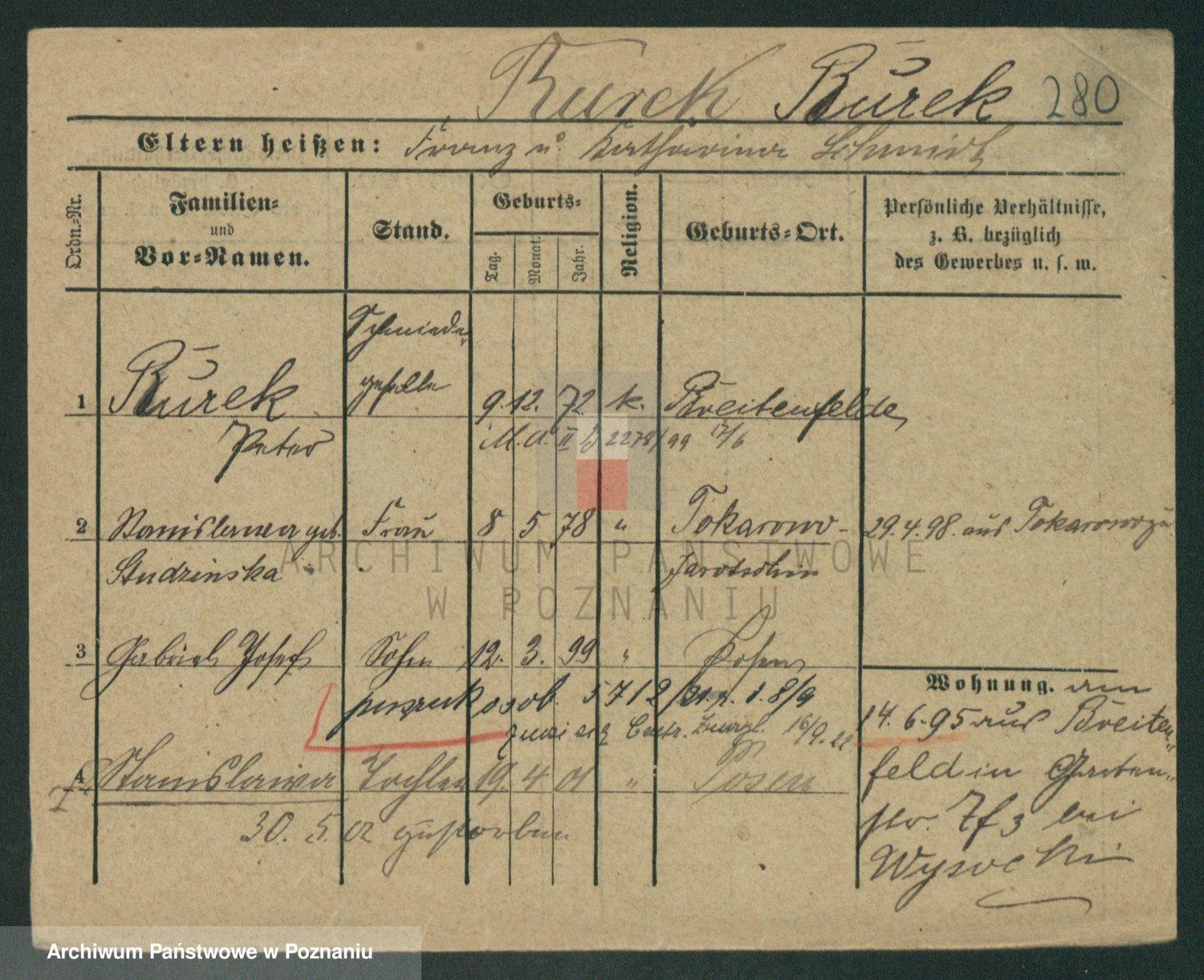Podgląd karty osobowej dostępny jest po kliknięciu na nazwisko lub ikonkę karty. Można dokonywać powiększenia (ikony na górze) lub przechodzić między kolejnymi skanami (strzałki po bokach).