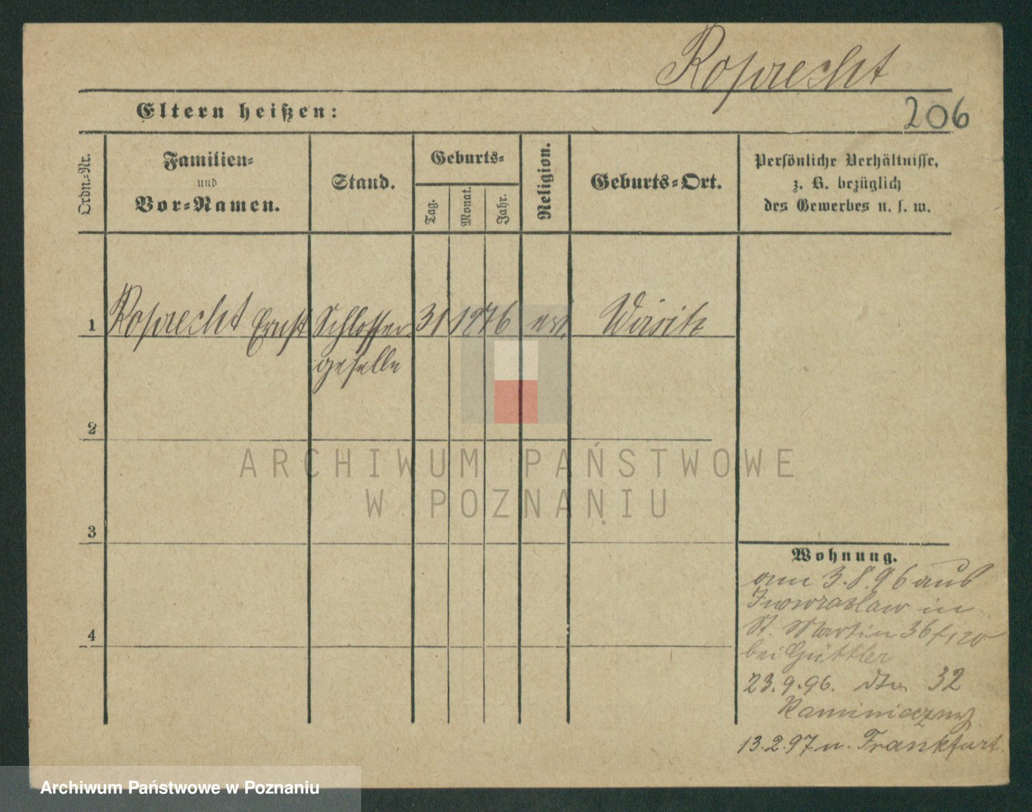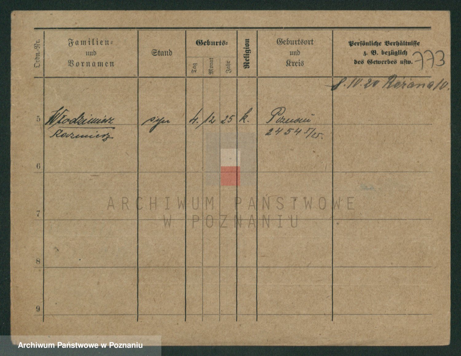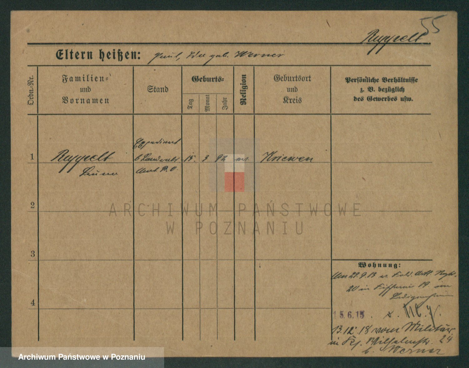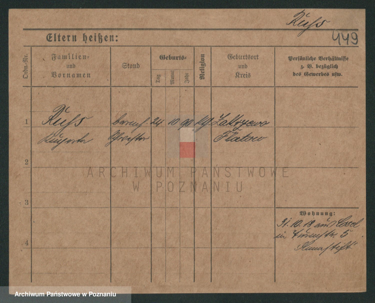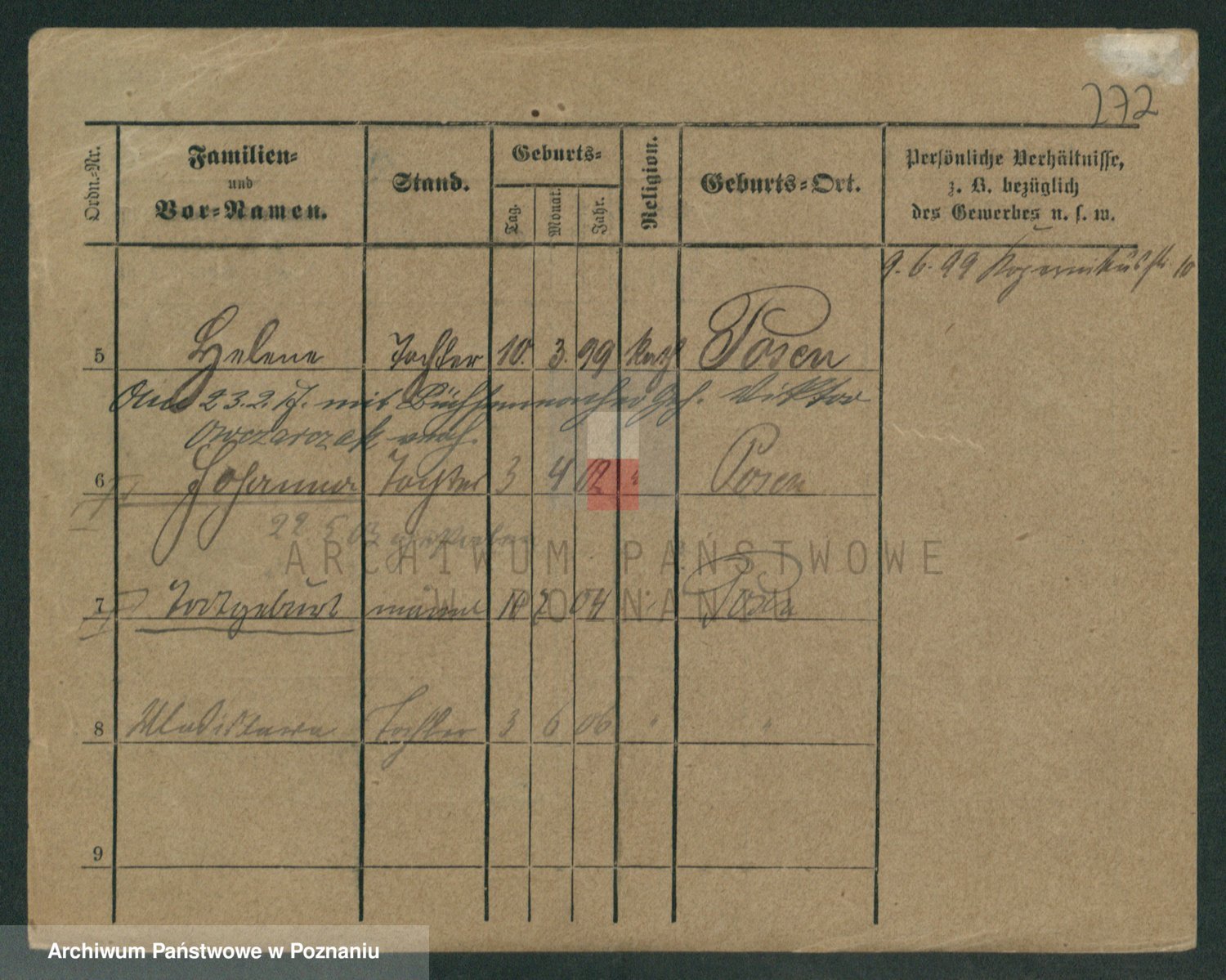 Podgląd karty osobowej dostępny jest po kliknięciu na nazwisko lub ikonkę karty. Można dokonywać powiększenia (ikony na górze) lub przechodzić między kolejnymi skanami (strzałki po bokach).