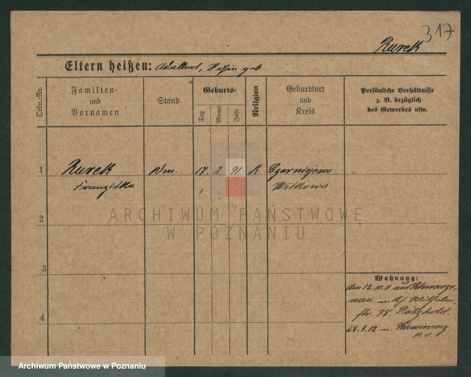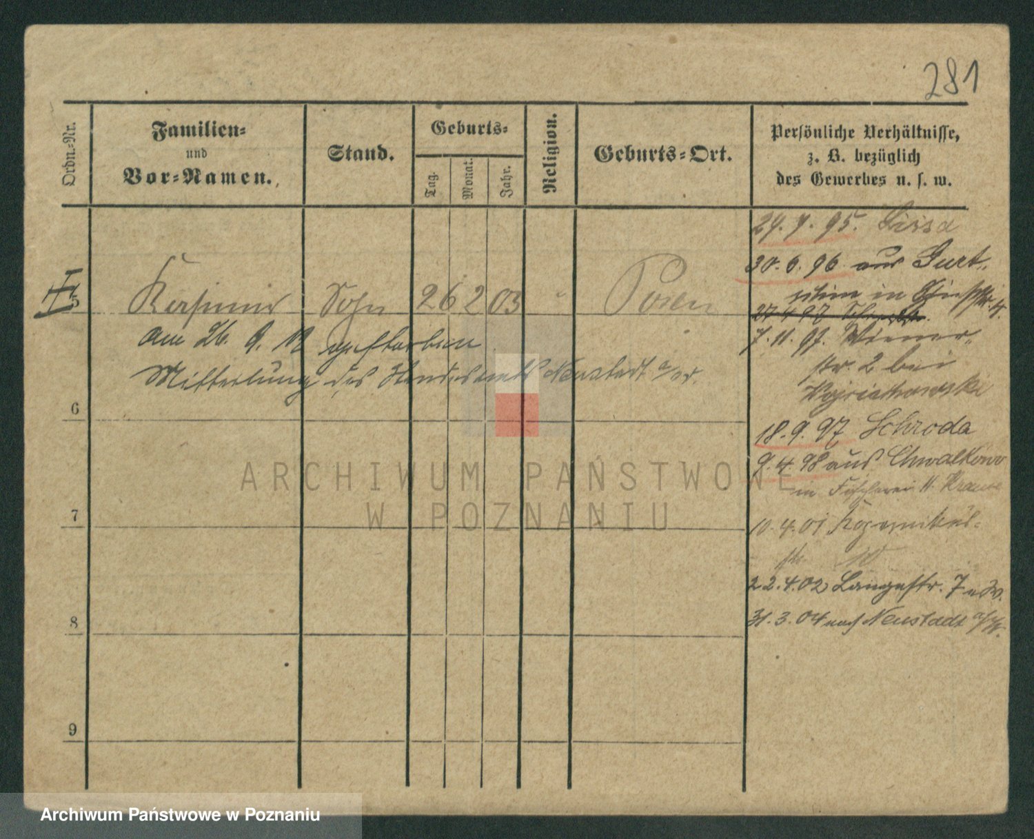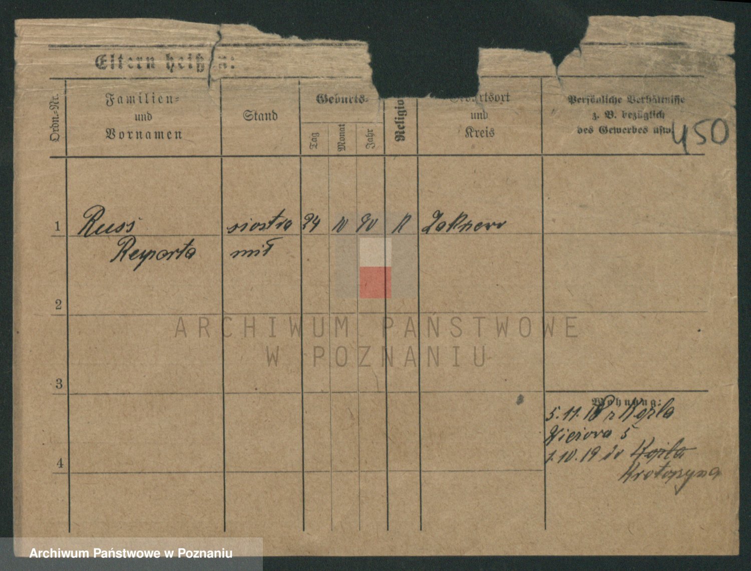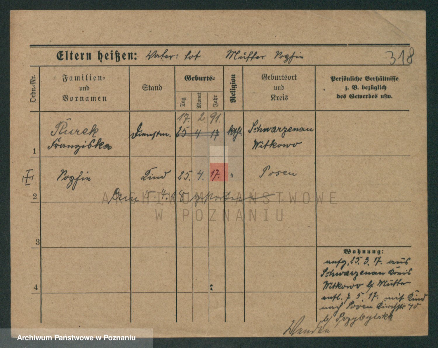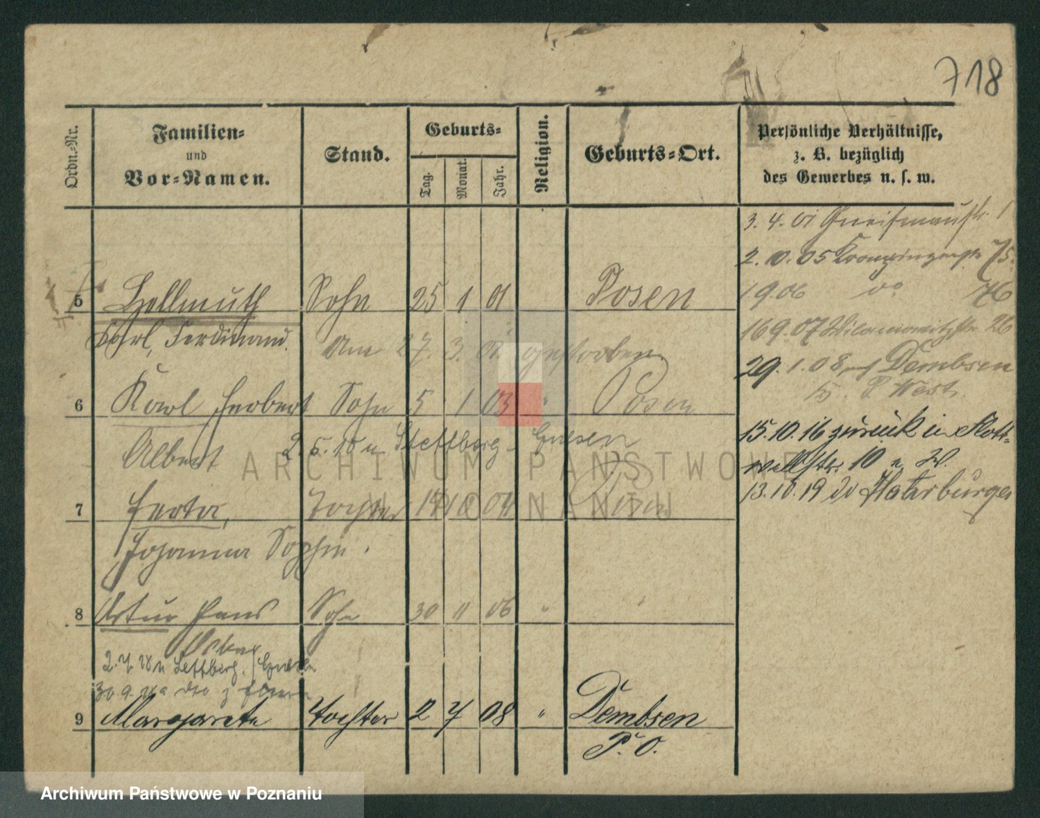 Podgląd karty osobowej dostępny jest po kliknięciu na nazwisko lub ikonkę karty. Można dokonywać powiększenia (ikony na górze) lub przechodzić między kolejnymi skanami (strzałki po bokach).