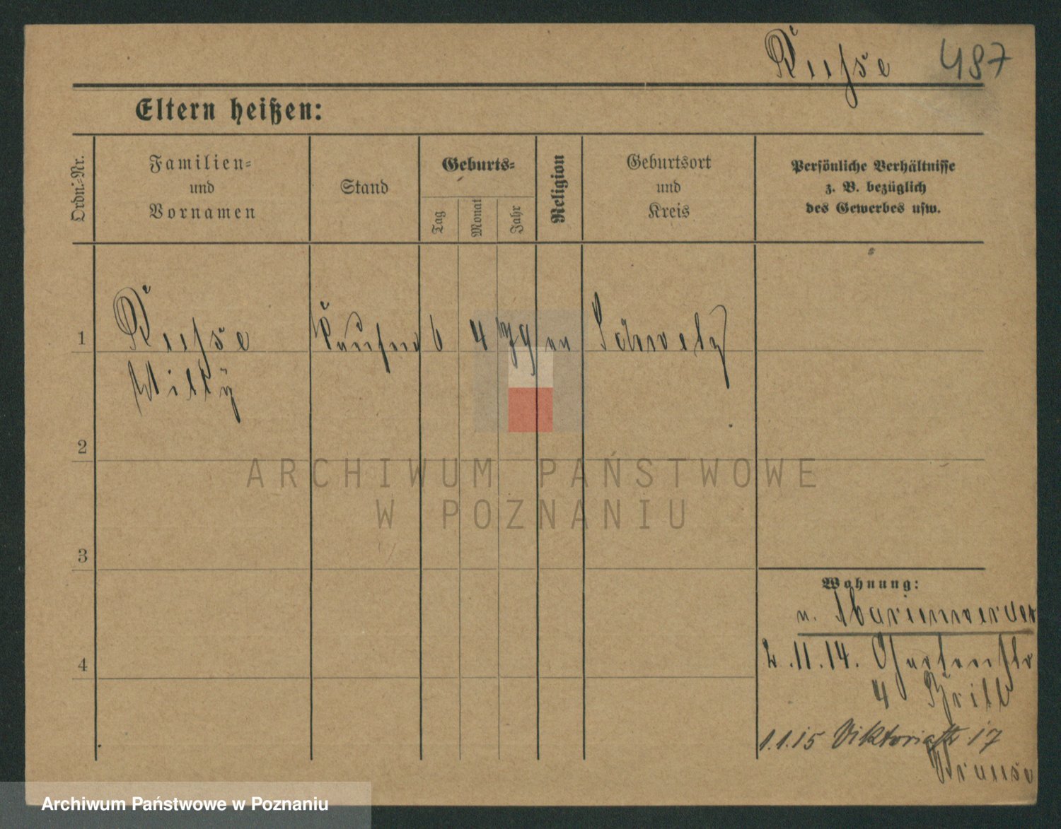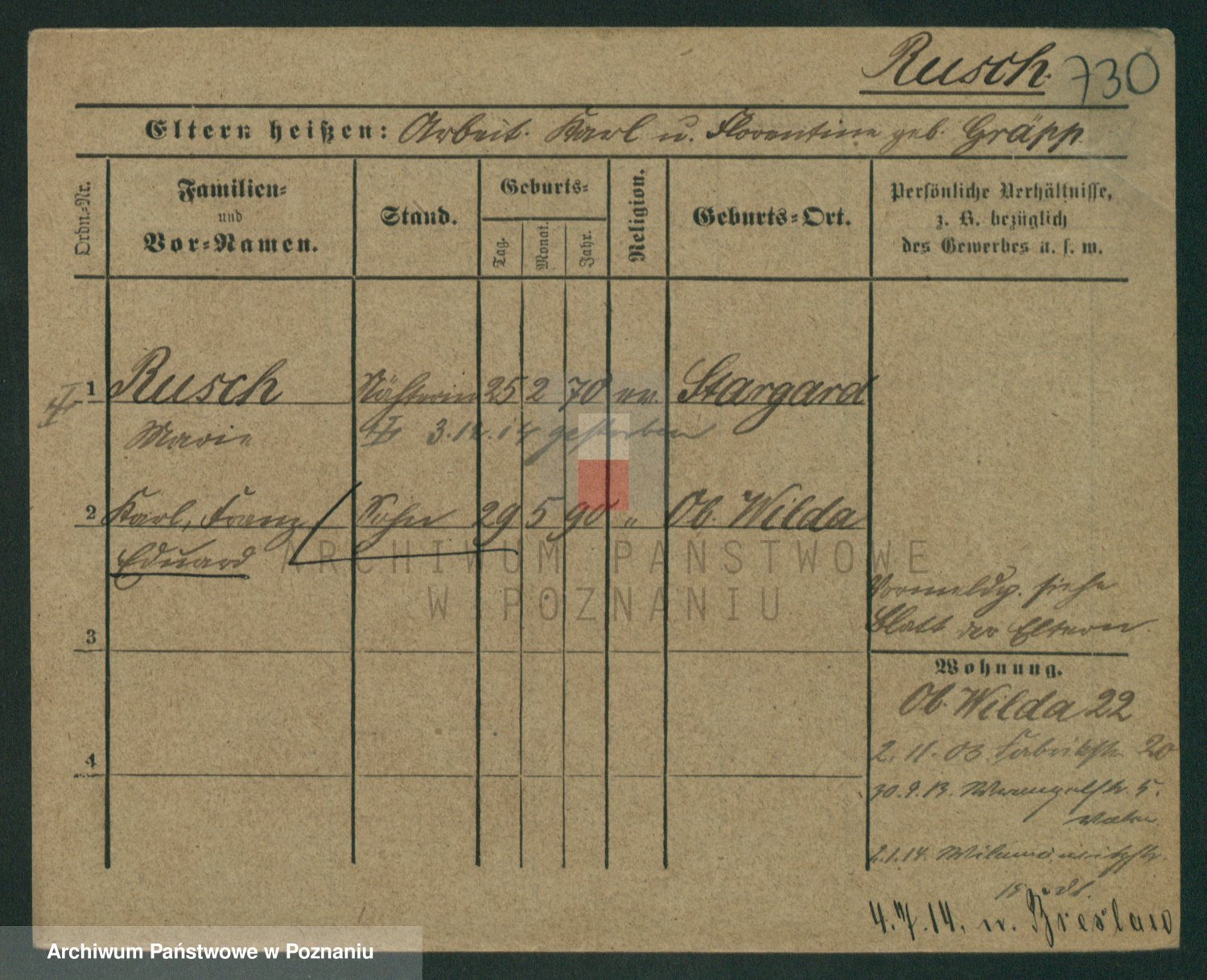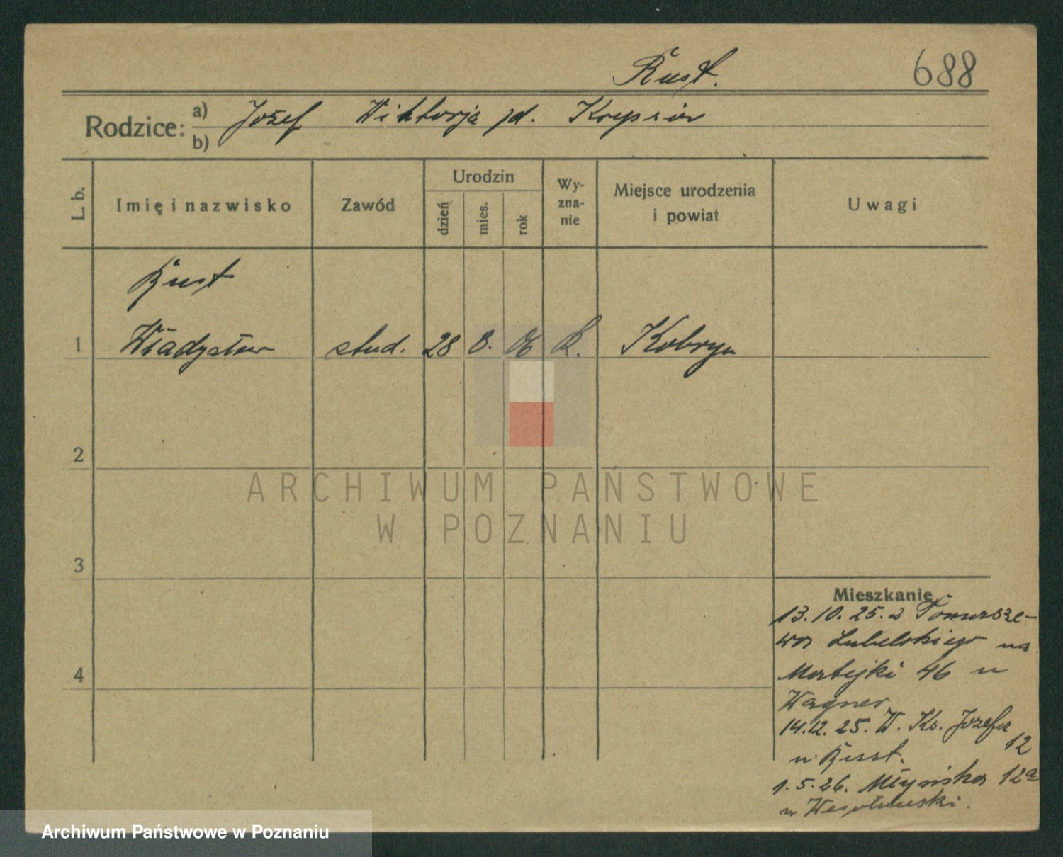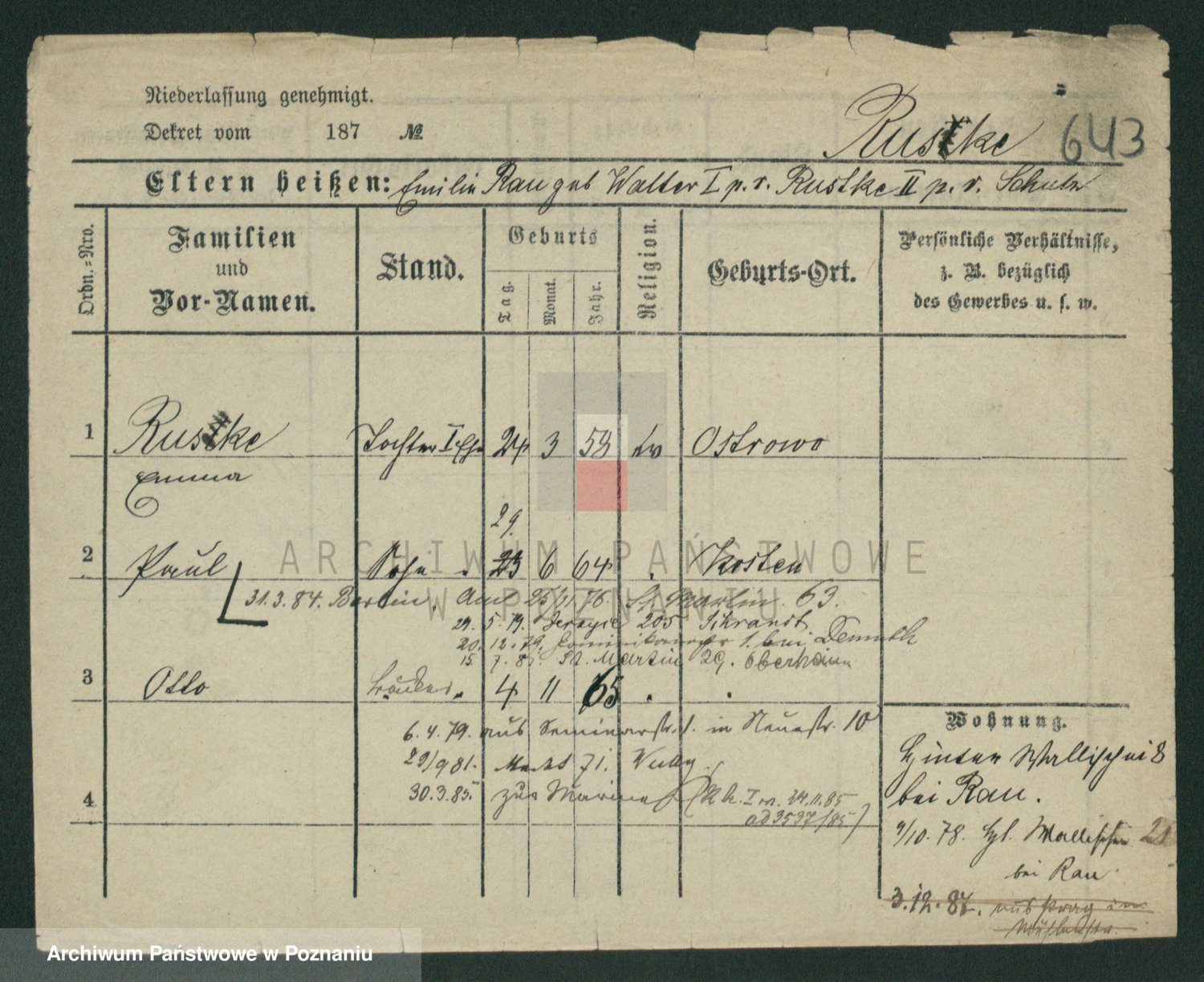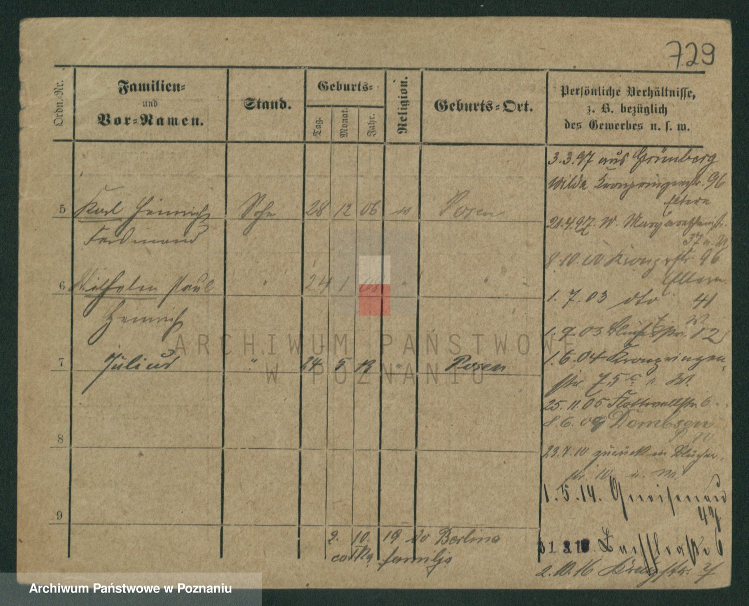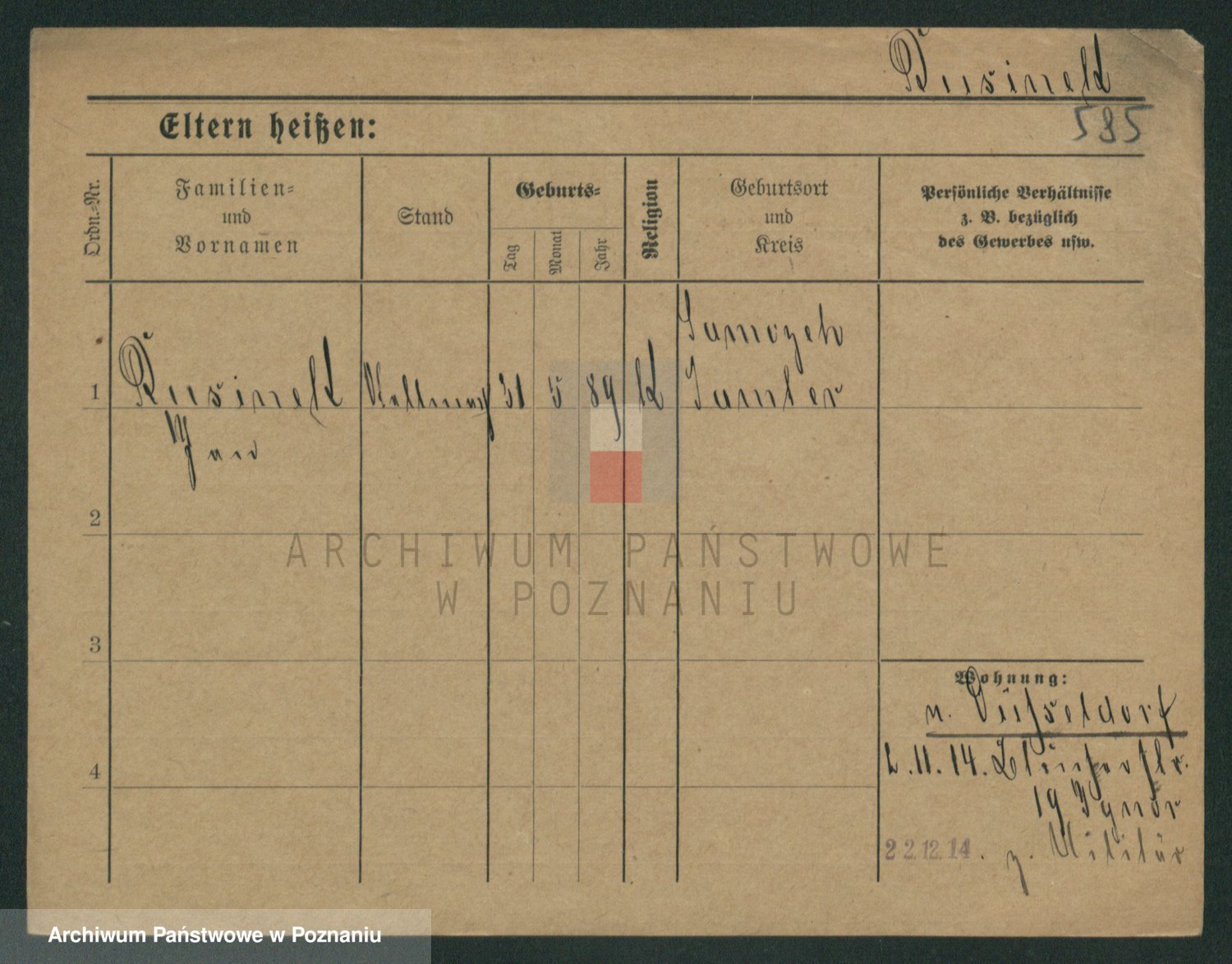 Podgląd karty osobowej dostępny jest po kliknięciu na nazwisko lub ikonkę karty. Można dokonywać powiększenia (ikony na górze) lub przechodzić między kolejnymi skanami (strzałki po bokach).
