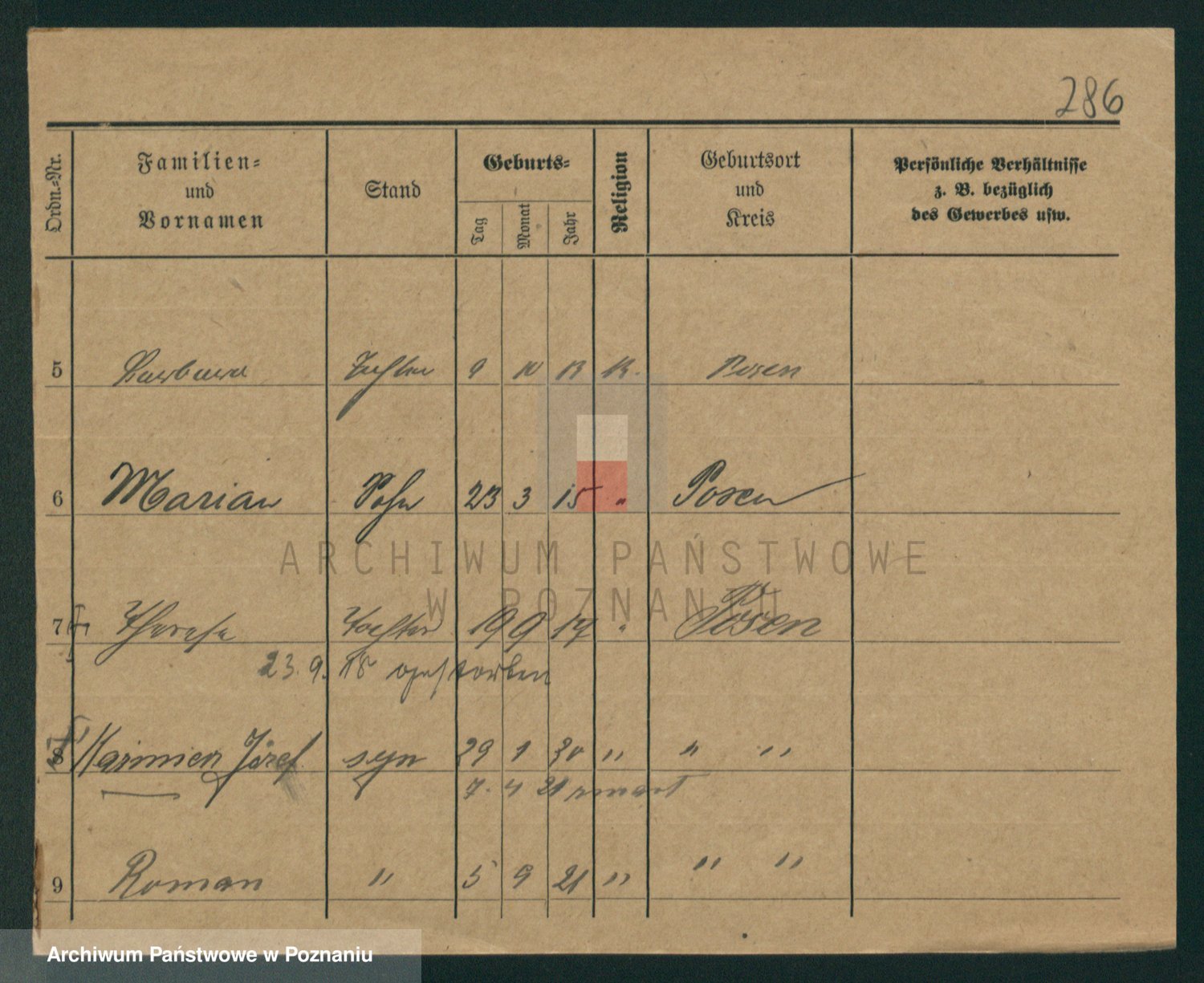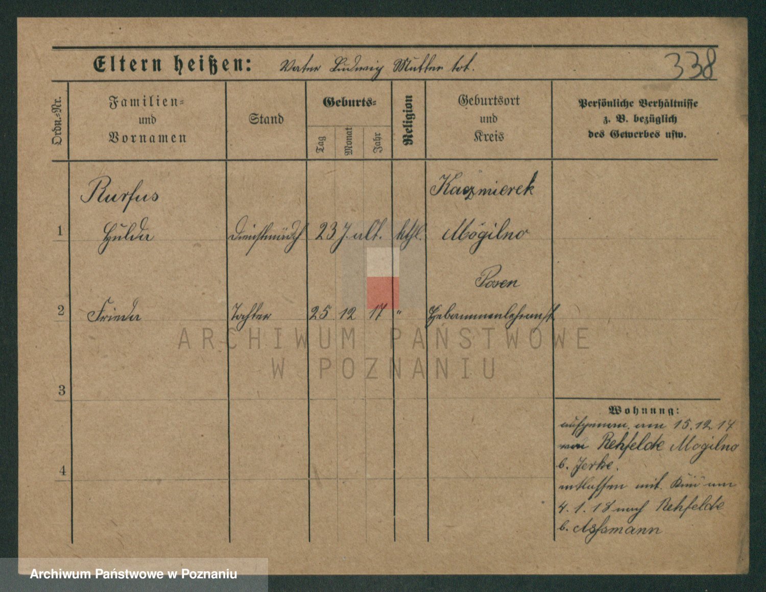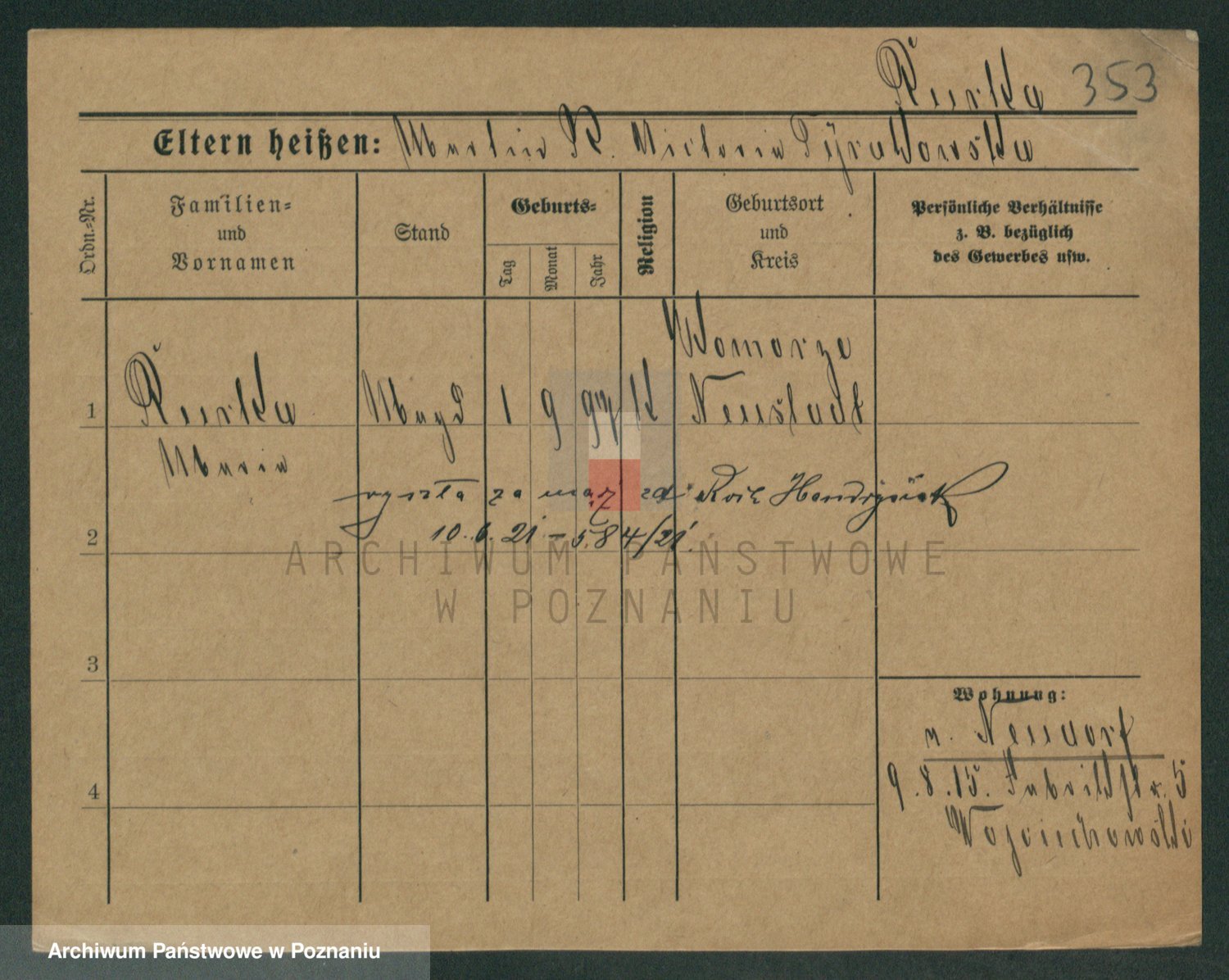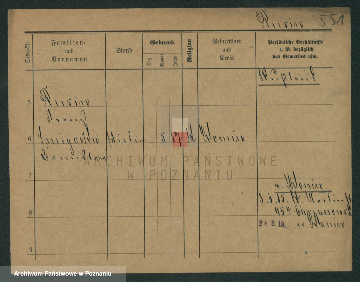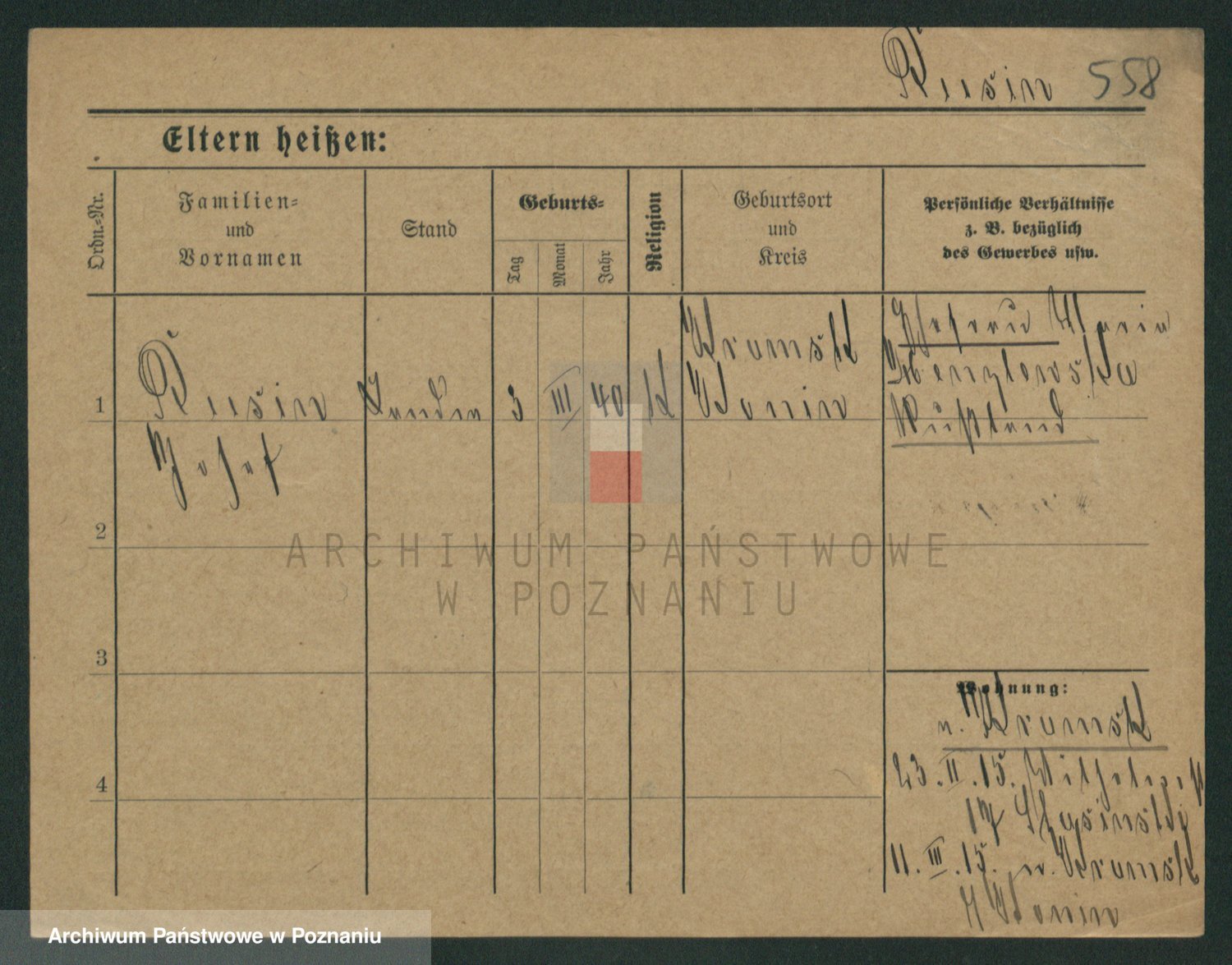 Podgląd karty osobowej dostępny jest po kliknięciu na nazwisko lub ikonkę karty. Można dokonywać powiększenia (ikony na górze) lub przechodzić między kolejnymi skanami (strzałki po bokach).