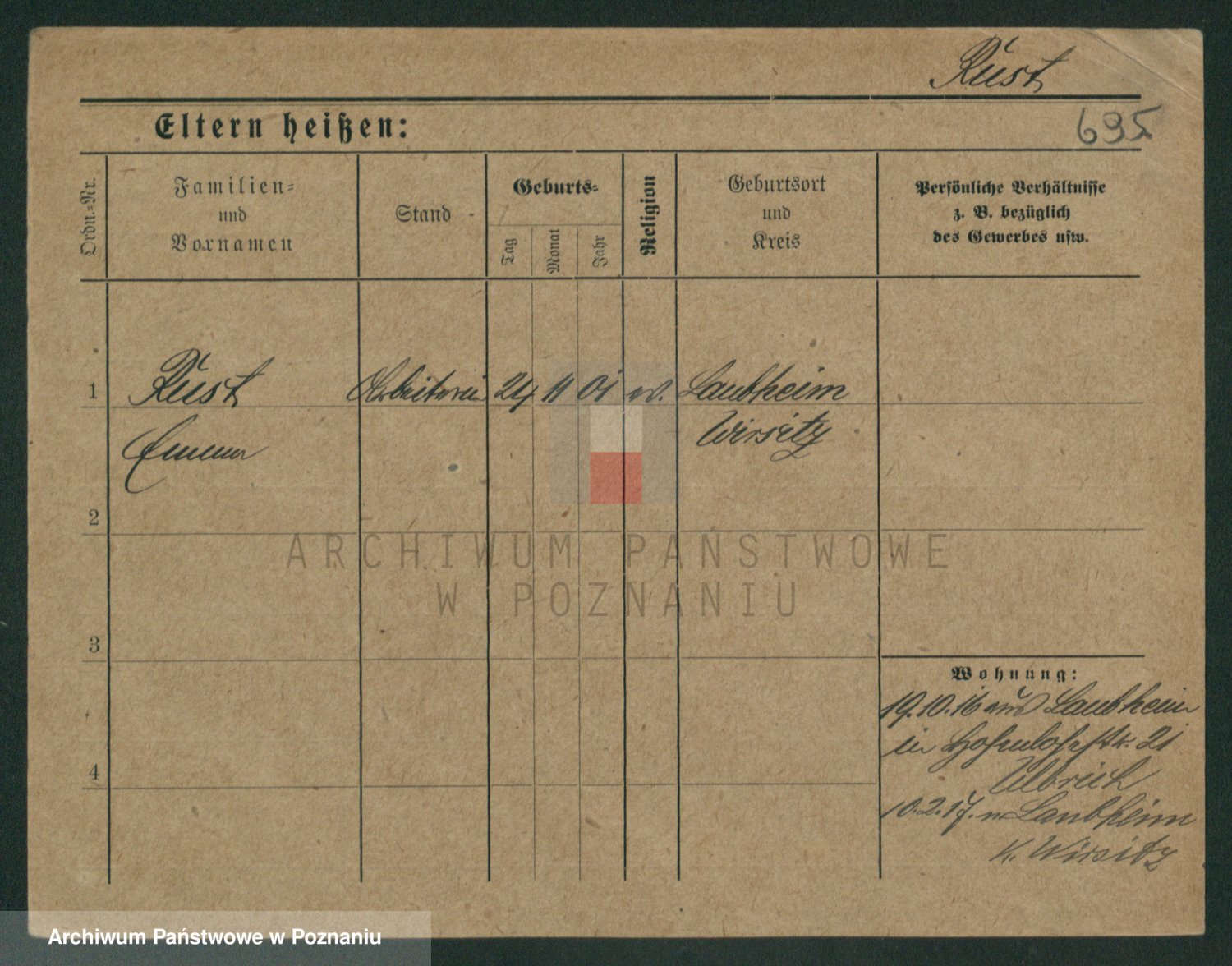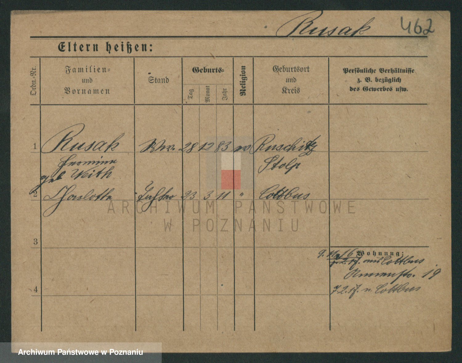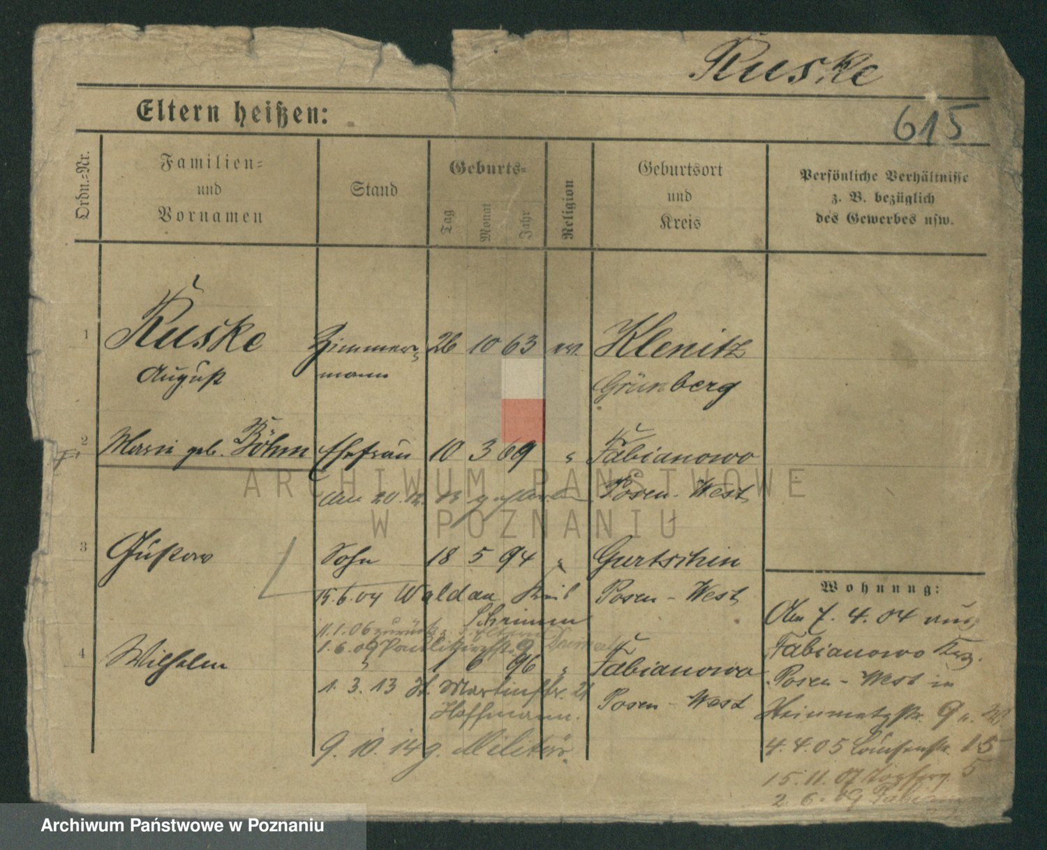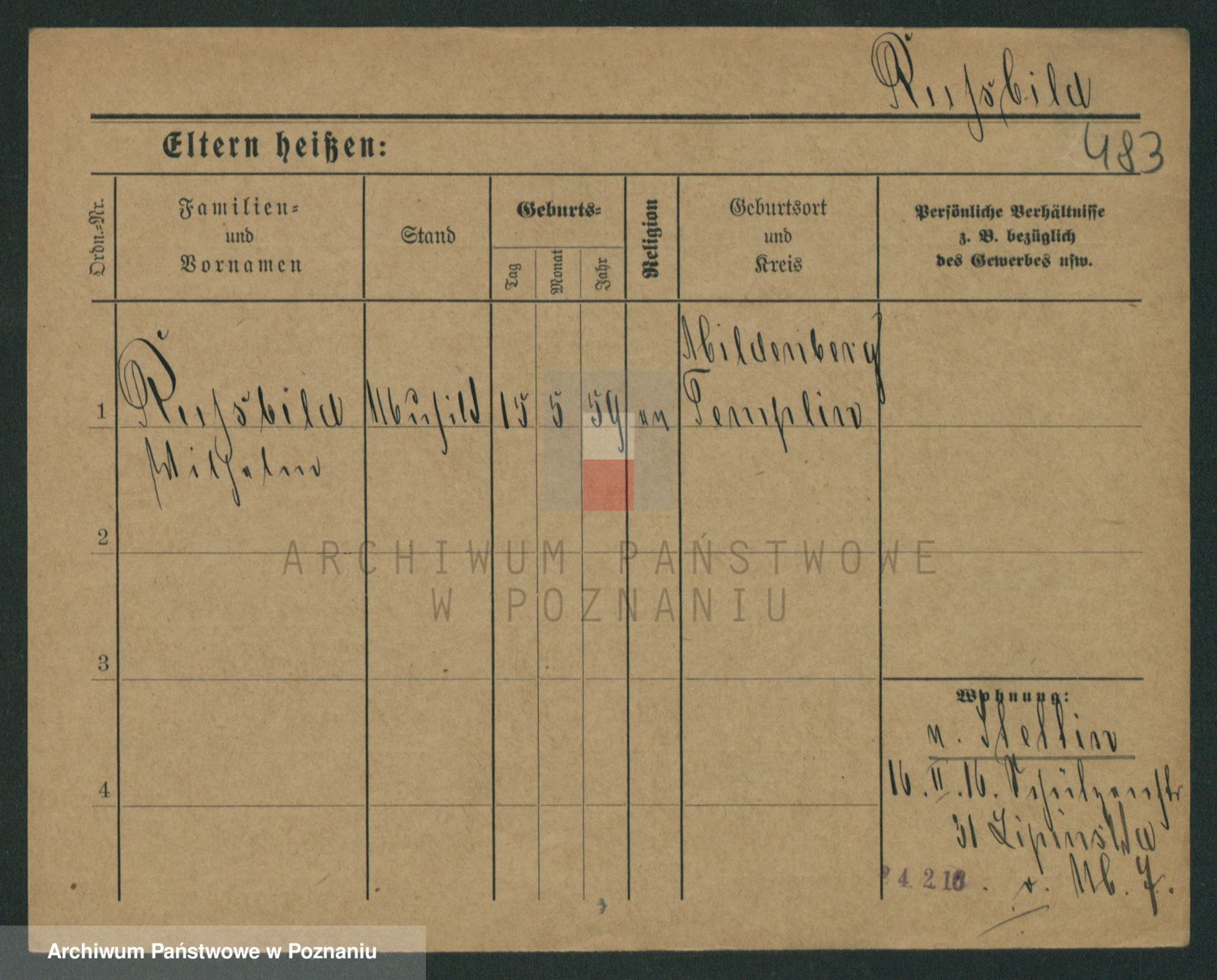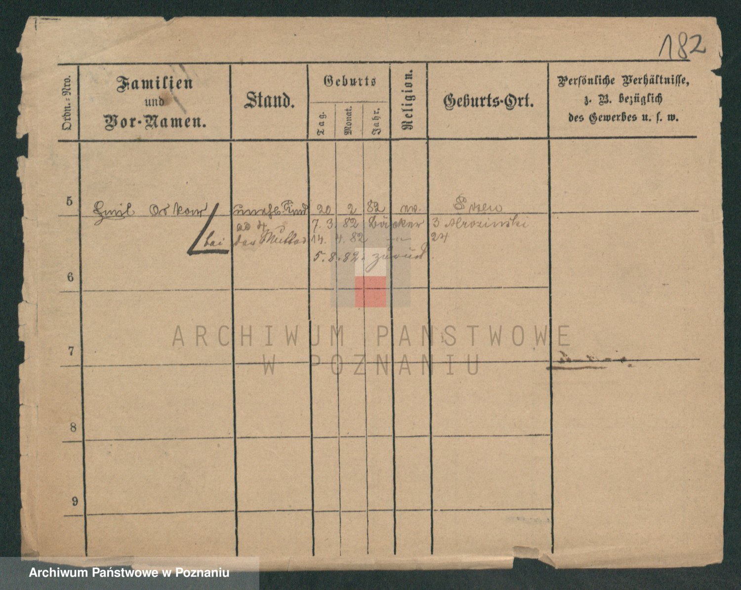 Podgląd karty osobowej dostępny jest po kliknięciu na nazwisko lub ikonkę karty. Można dokonywać powiększenia (ikony na górze) lub przechodzić między kolejnymi skanami (strzałki po bokach).