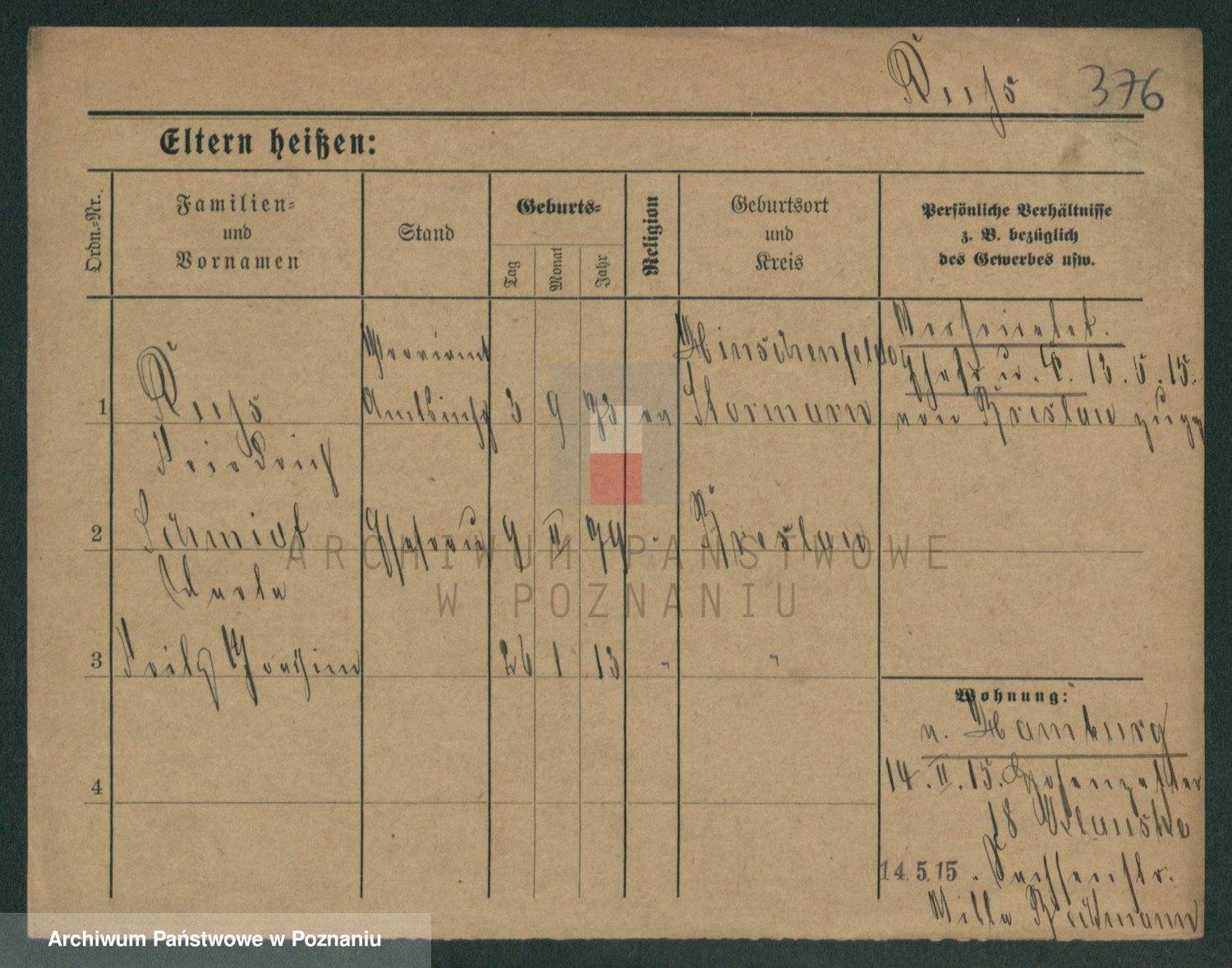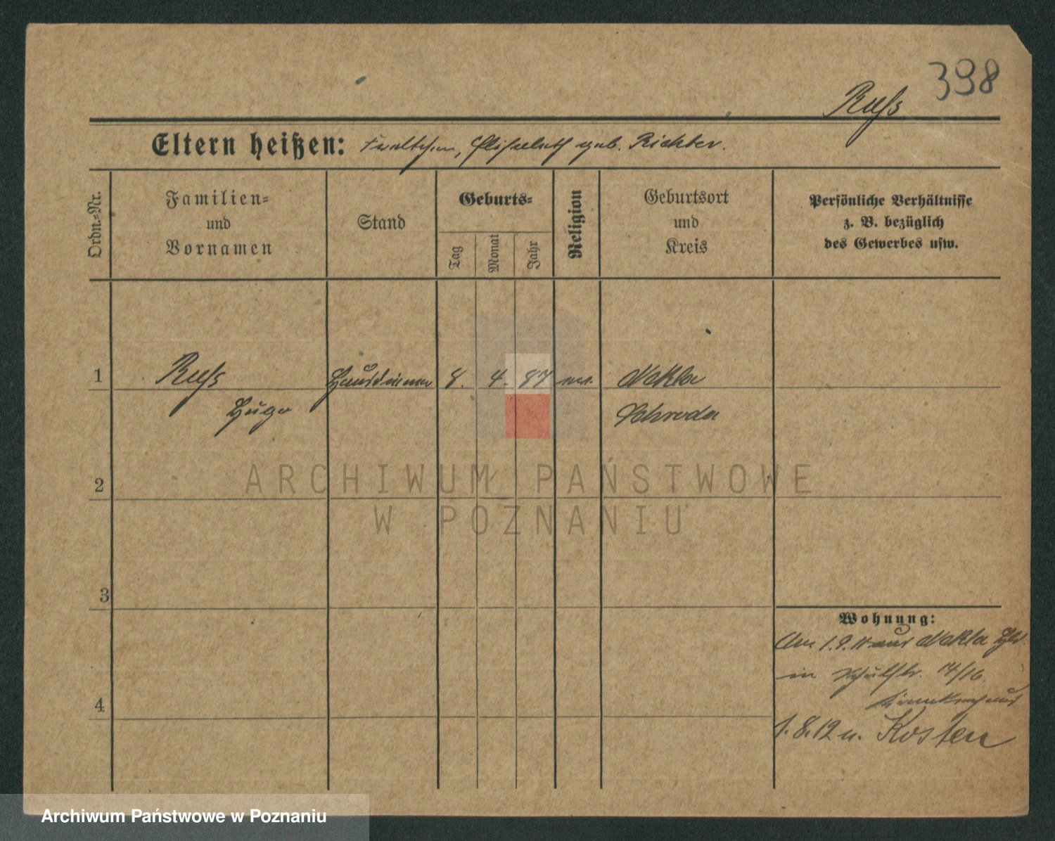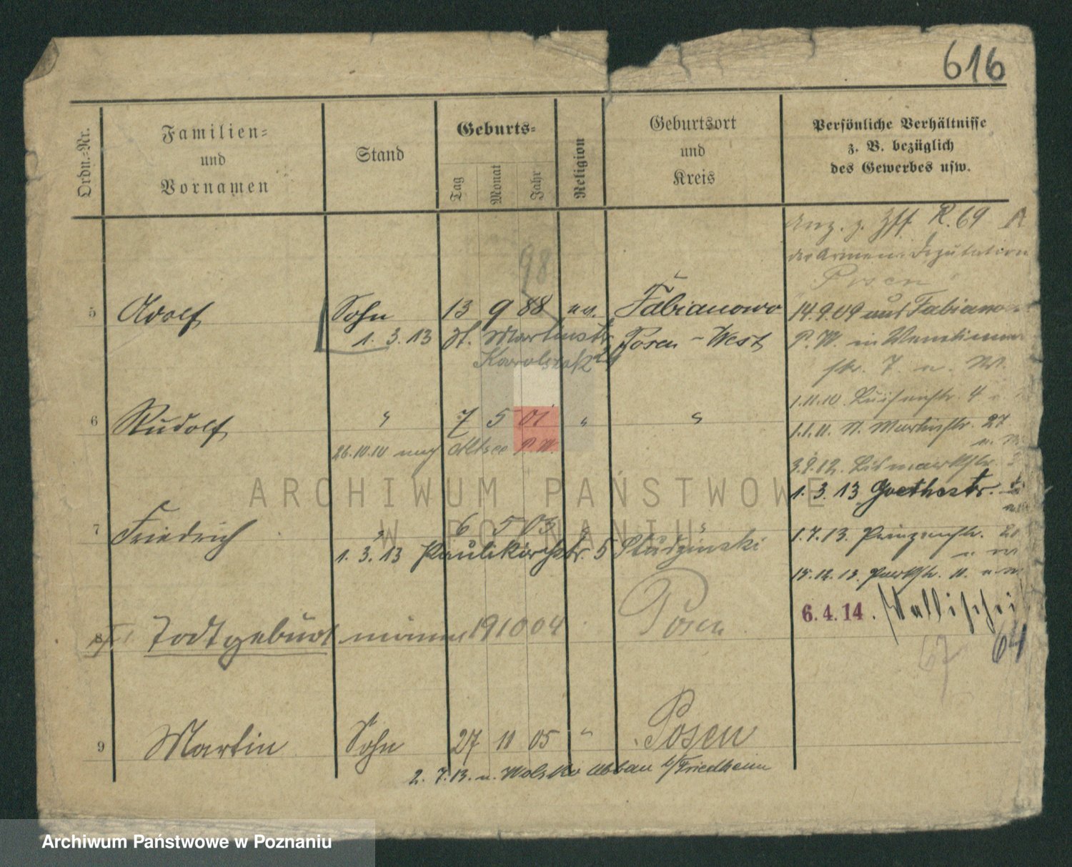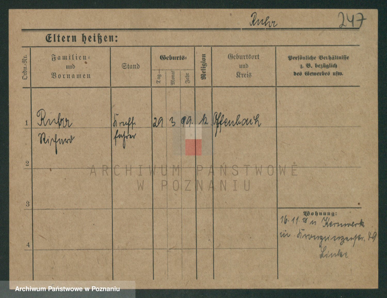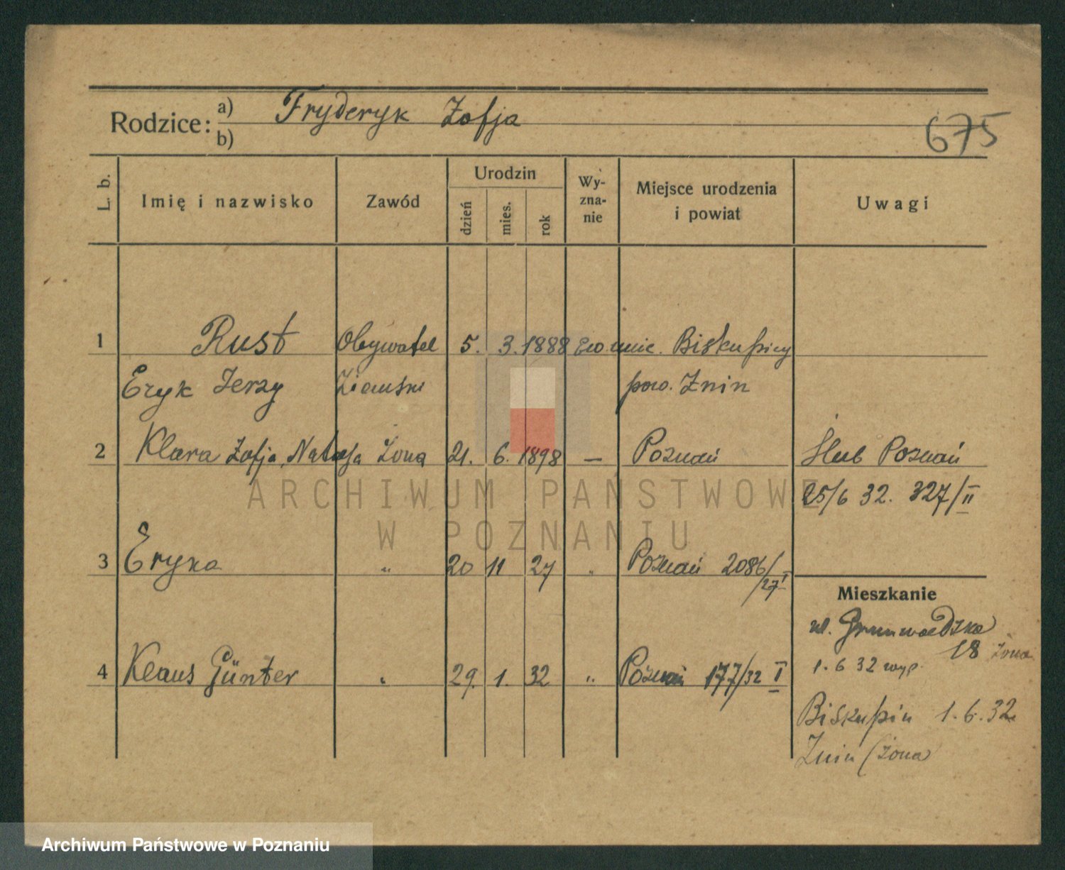 Podgląd karty osobowej dostępny jest po kliknięciu na nazwisko lub ikonkę karty. Można dokonywać powiększenia (ikony na górze) lub przechodzić między kolejnymi skanami (strzałki po bokach).