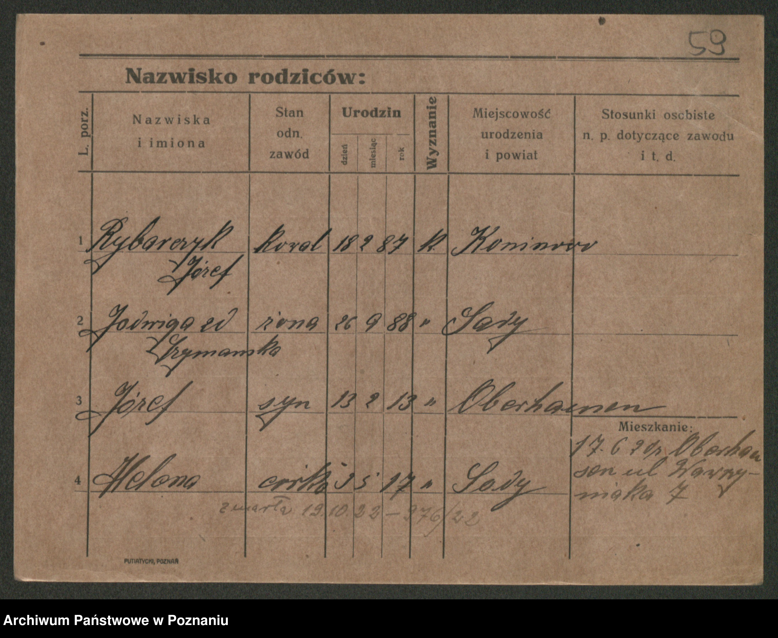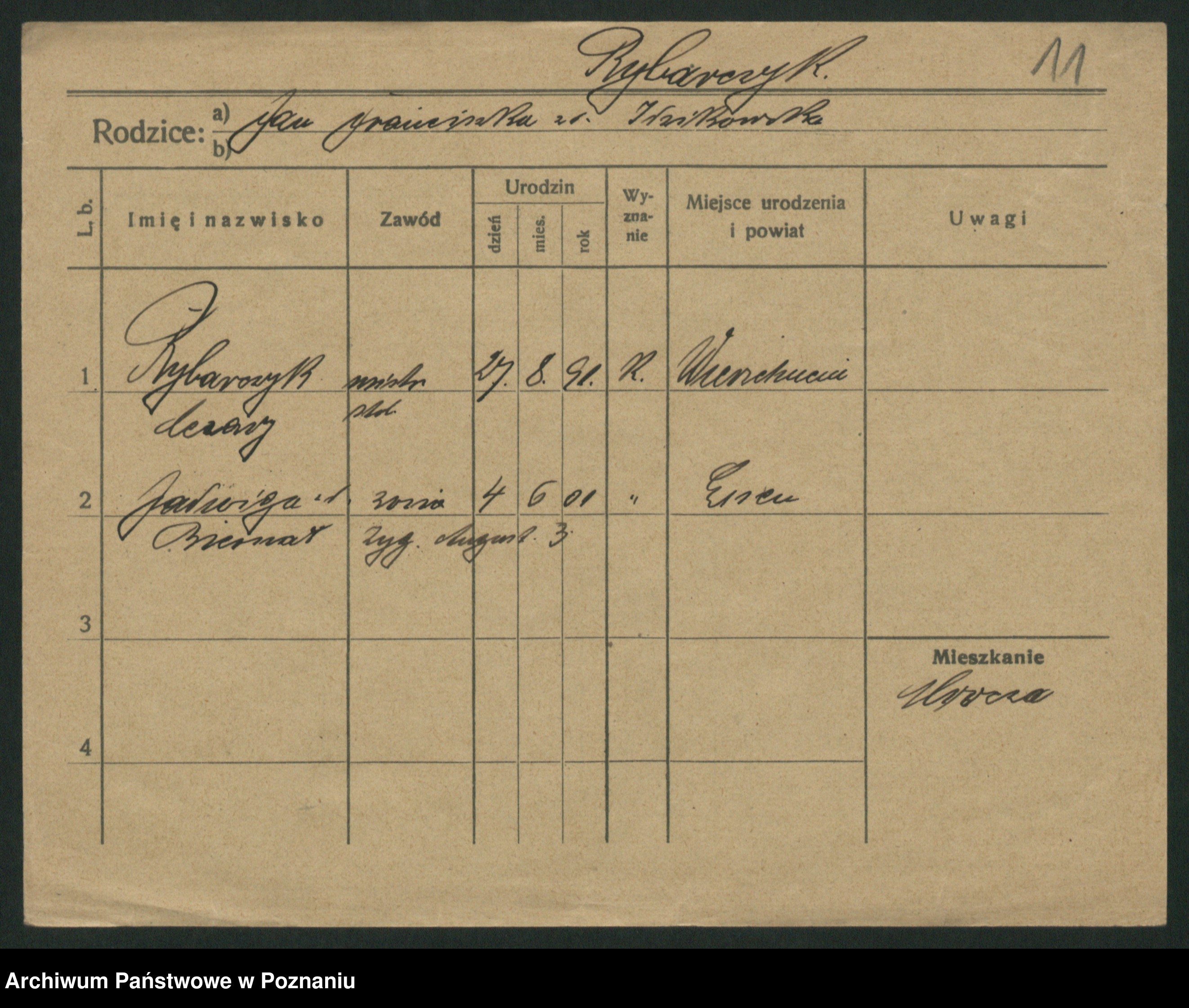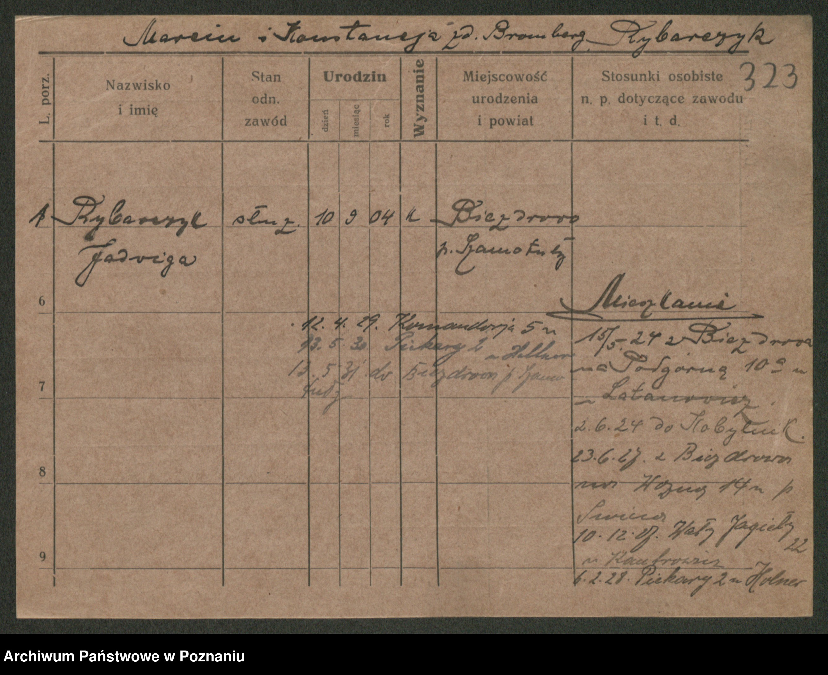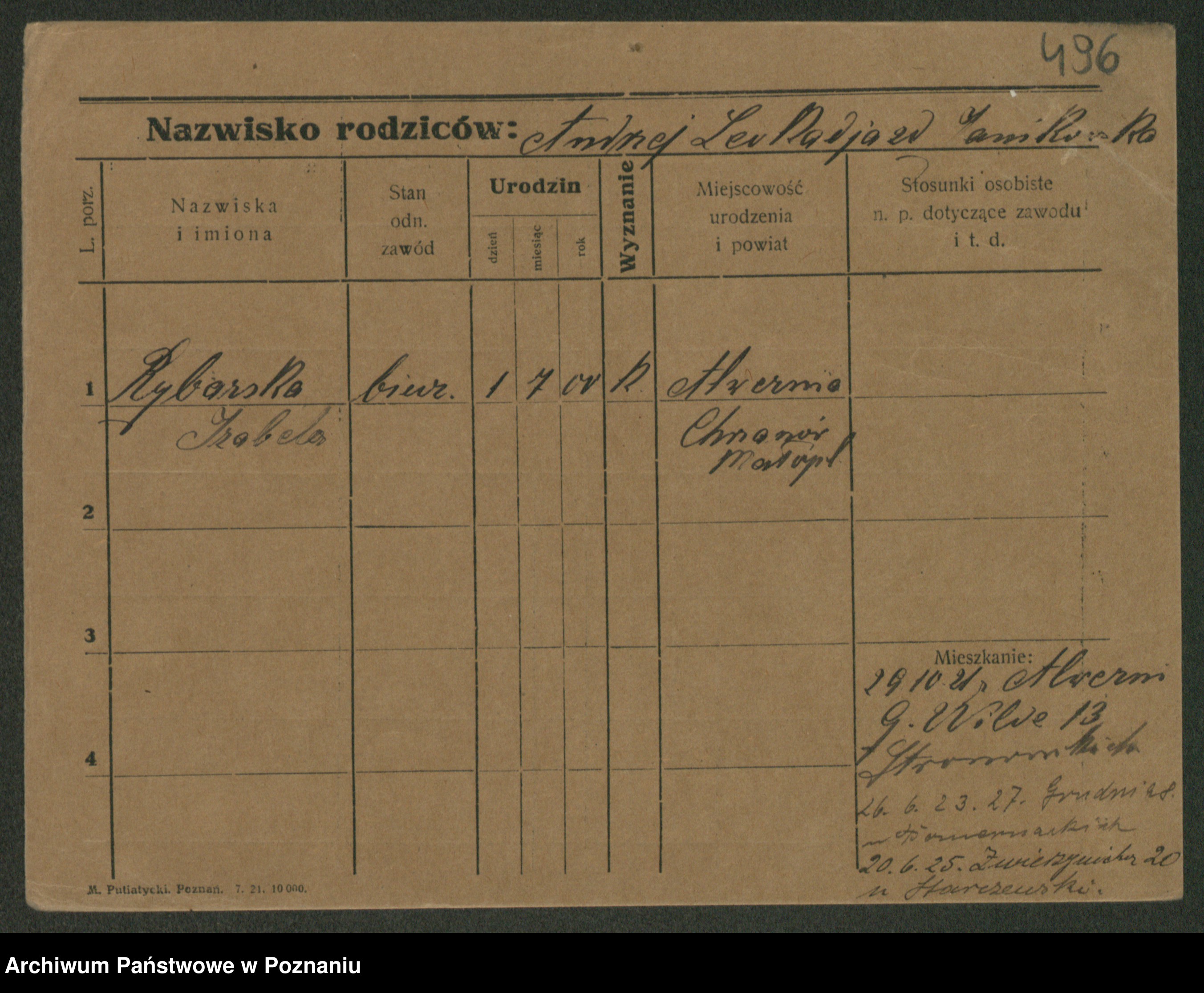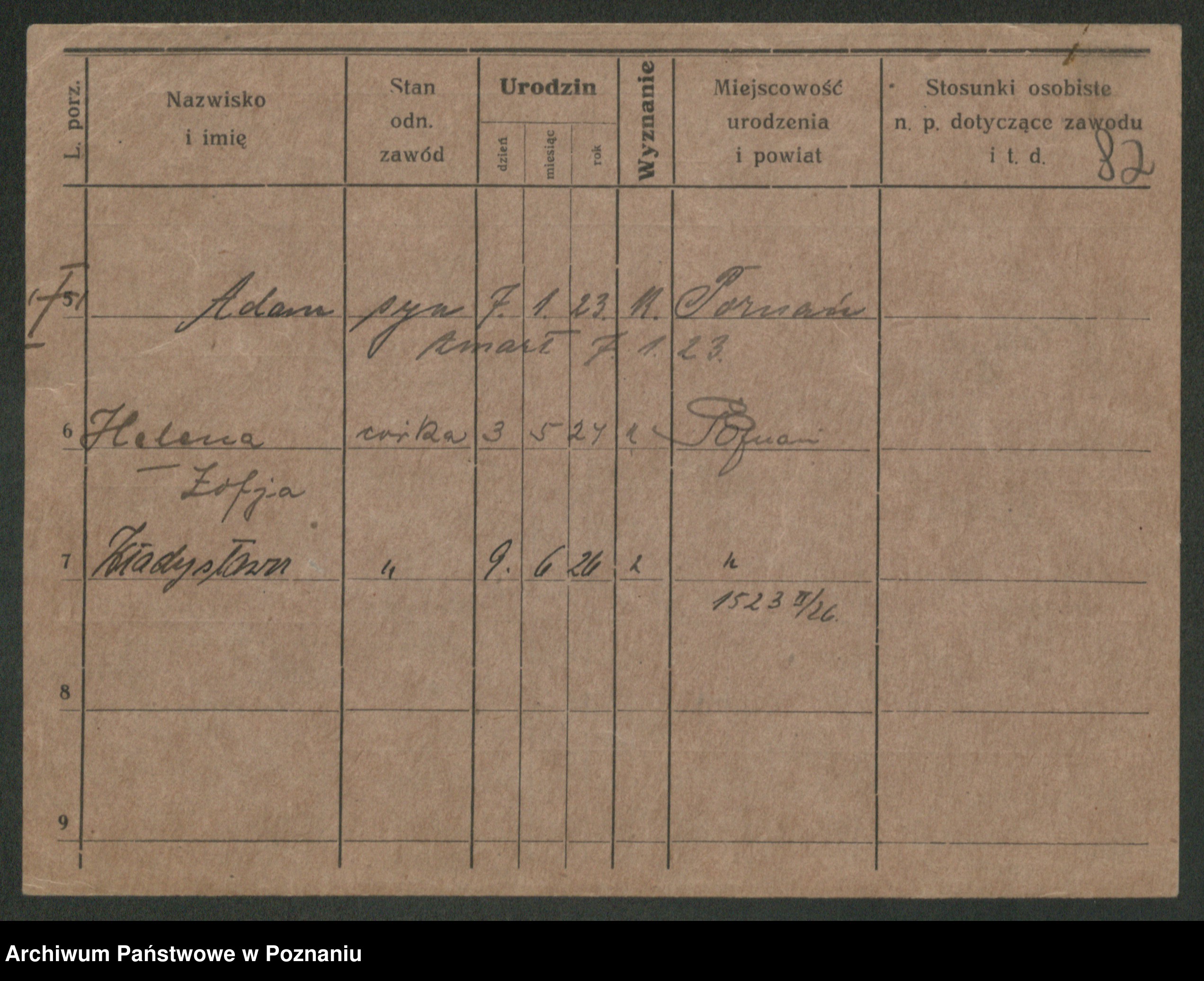 Podgląd karty osobowej dostępny jest po kliknięciu na nazwisko lub ikonkę karty. Można dokonywać powiększenia (ikony na górze) lub przechodzić między kolejnymi skanami (strzałki po bokach).