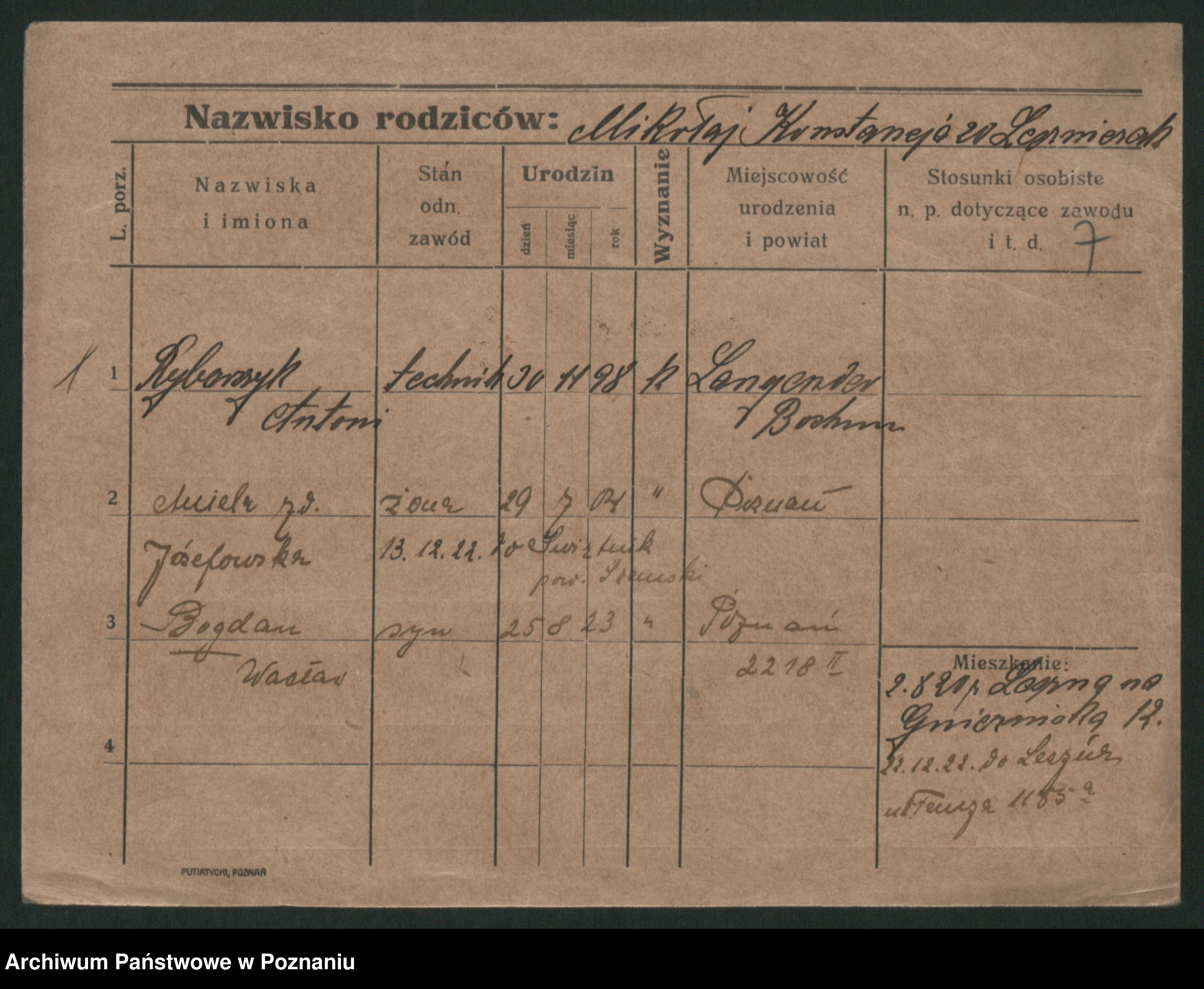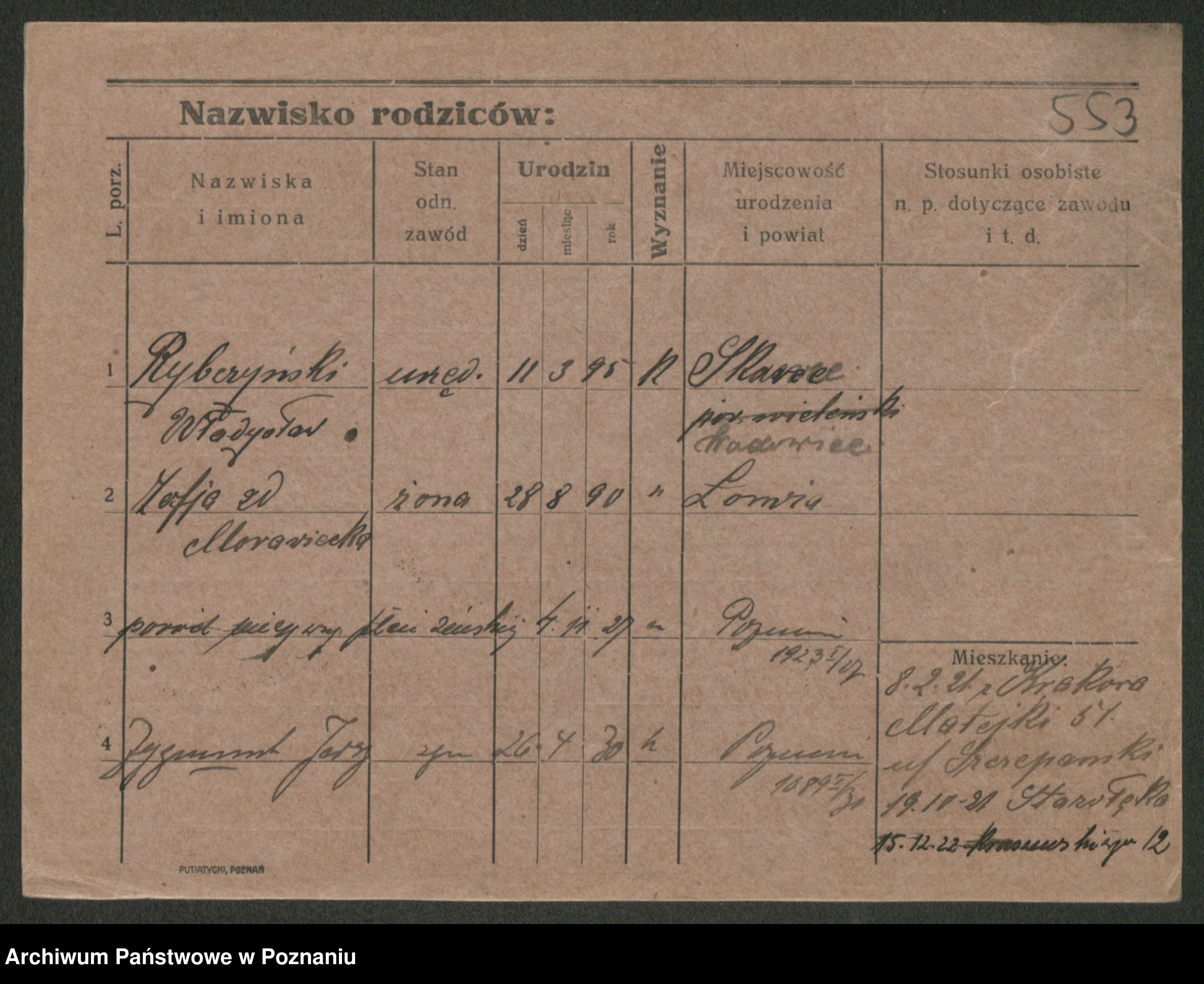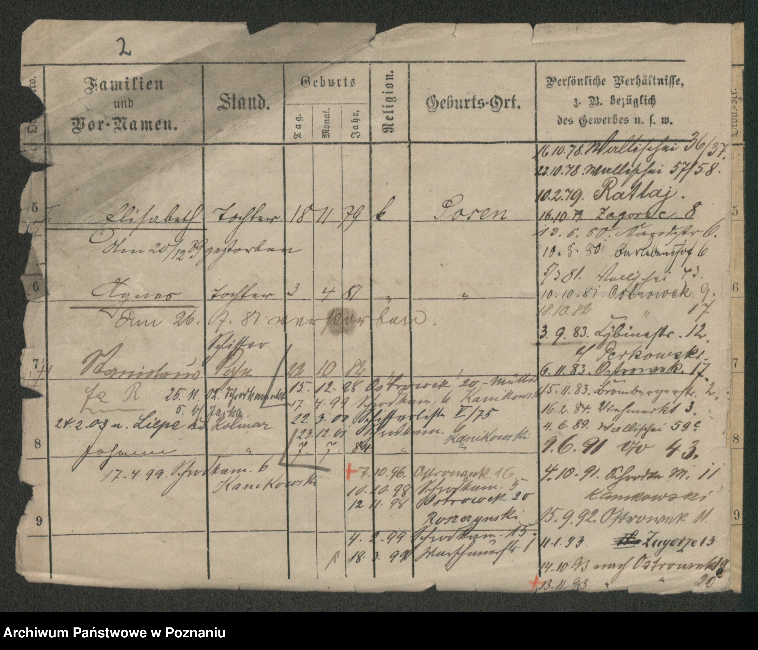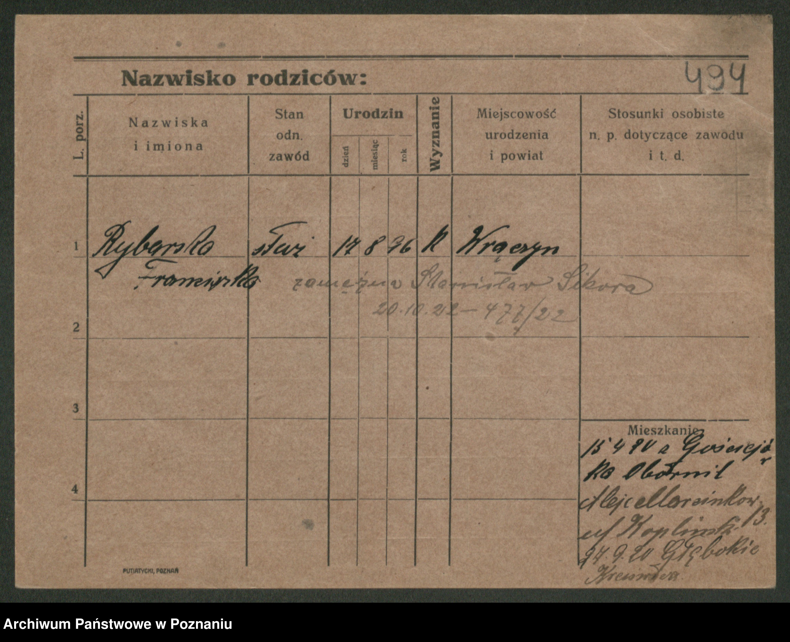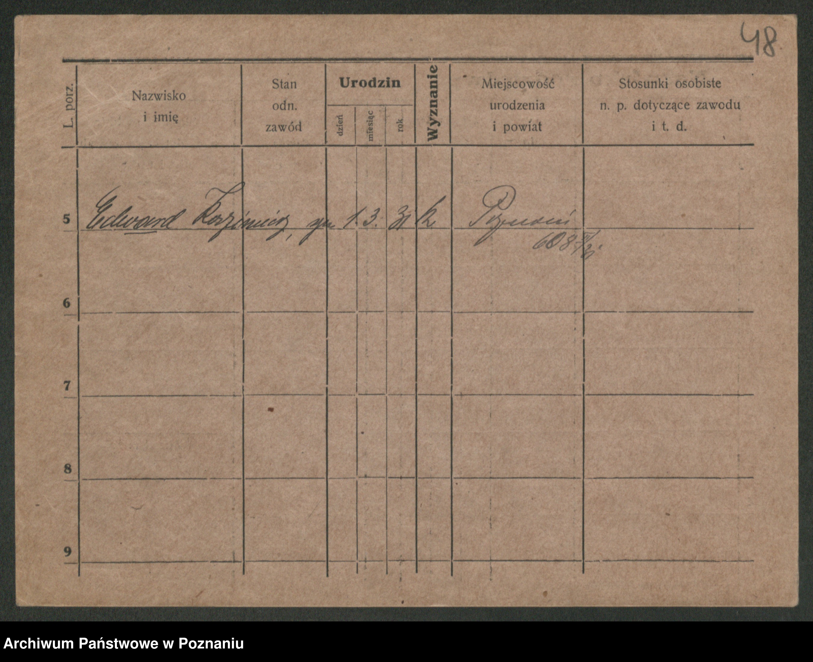 Podgląd karty osobowej dostępny jest po kliknięciu na nazwisko lub ikonkę karty. Można dokonywać powiększenia (ikony na górze) lub przechodzić między kolejnymi skanami (strzałki po bokach).
