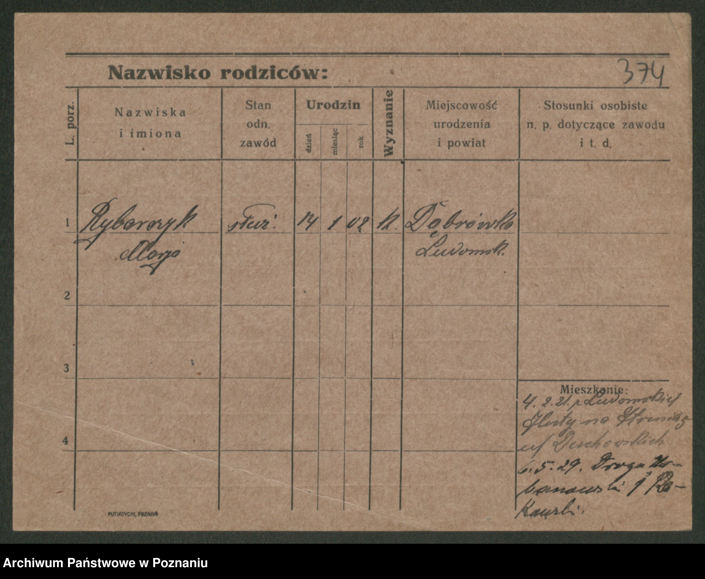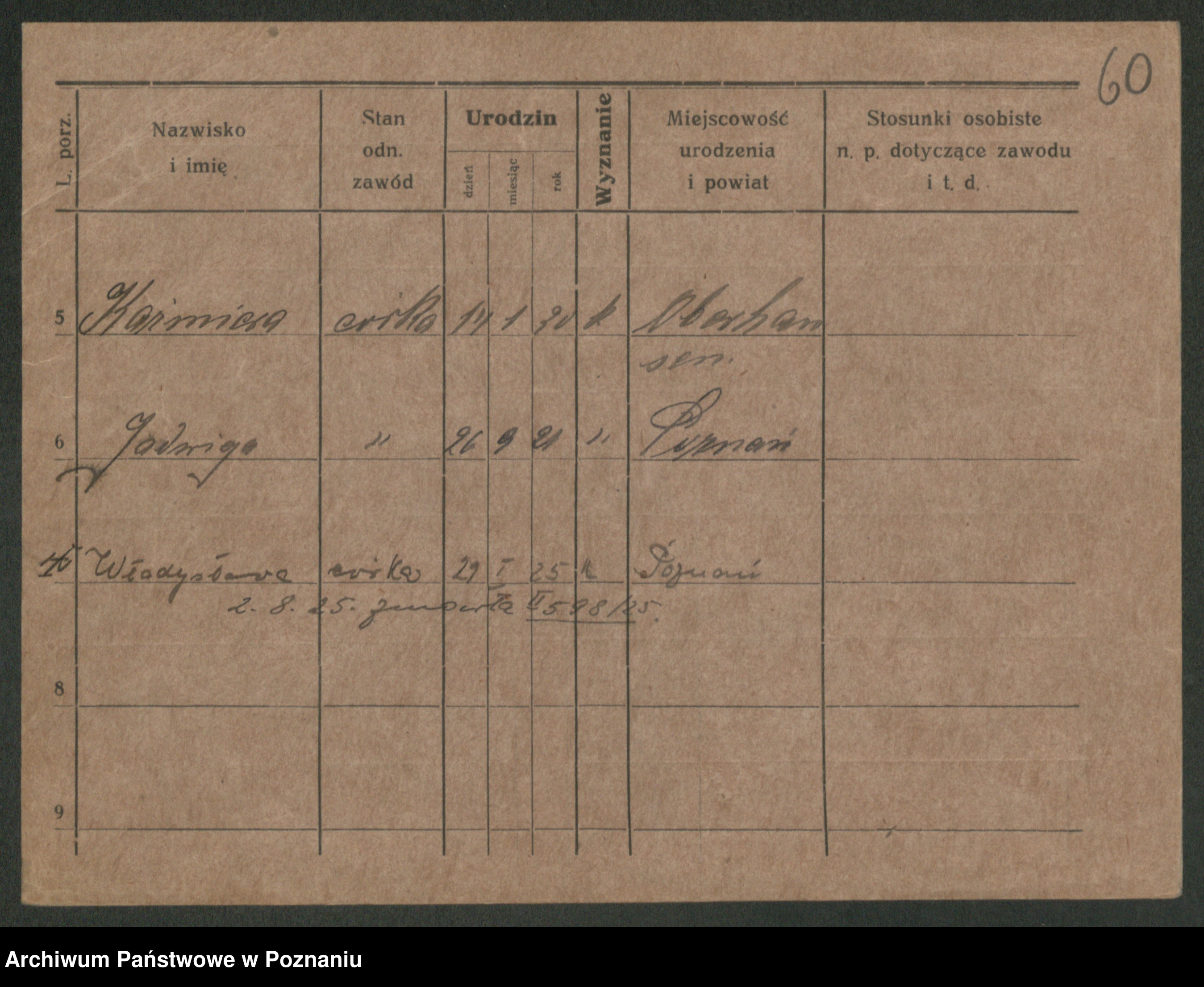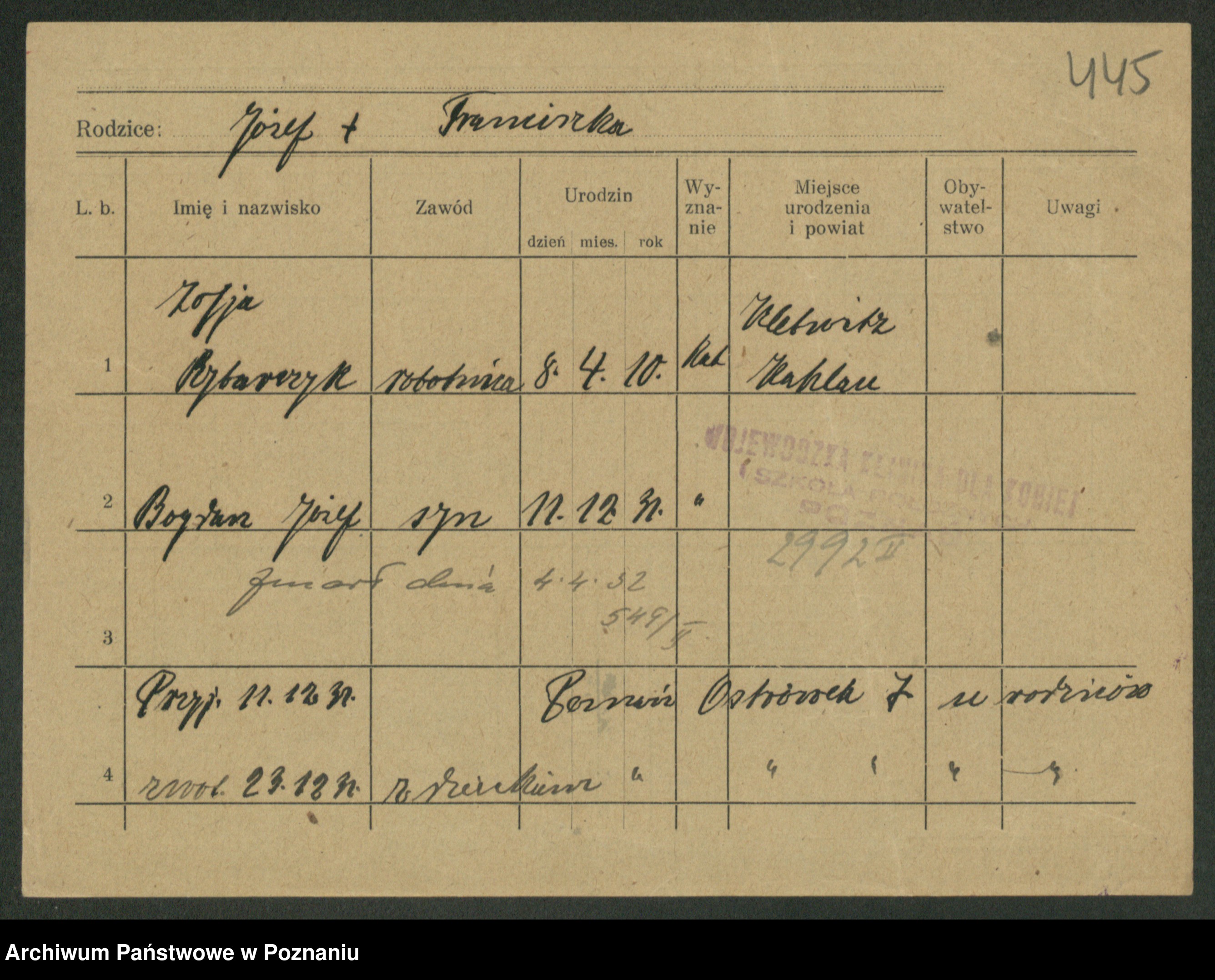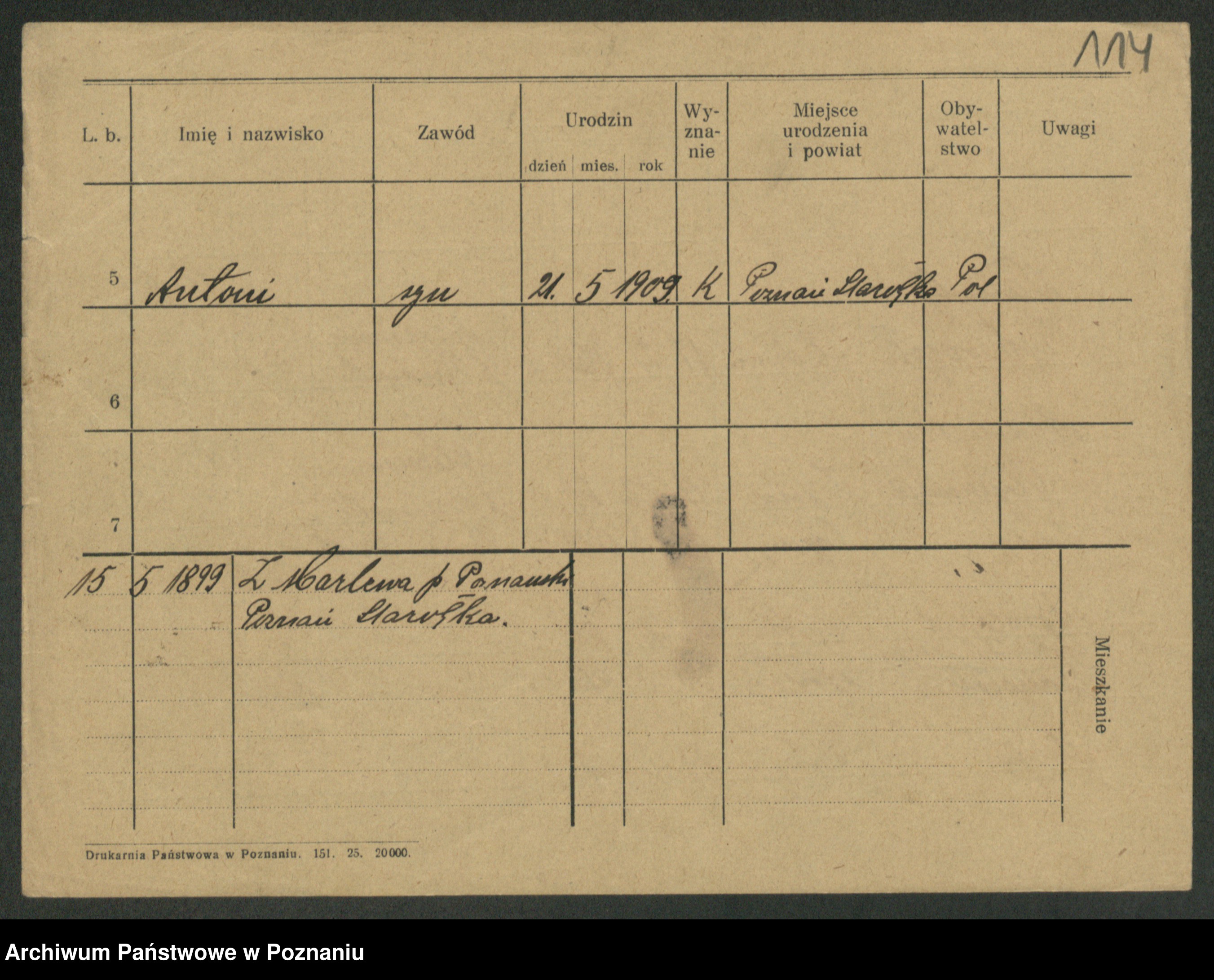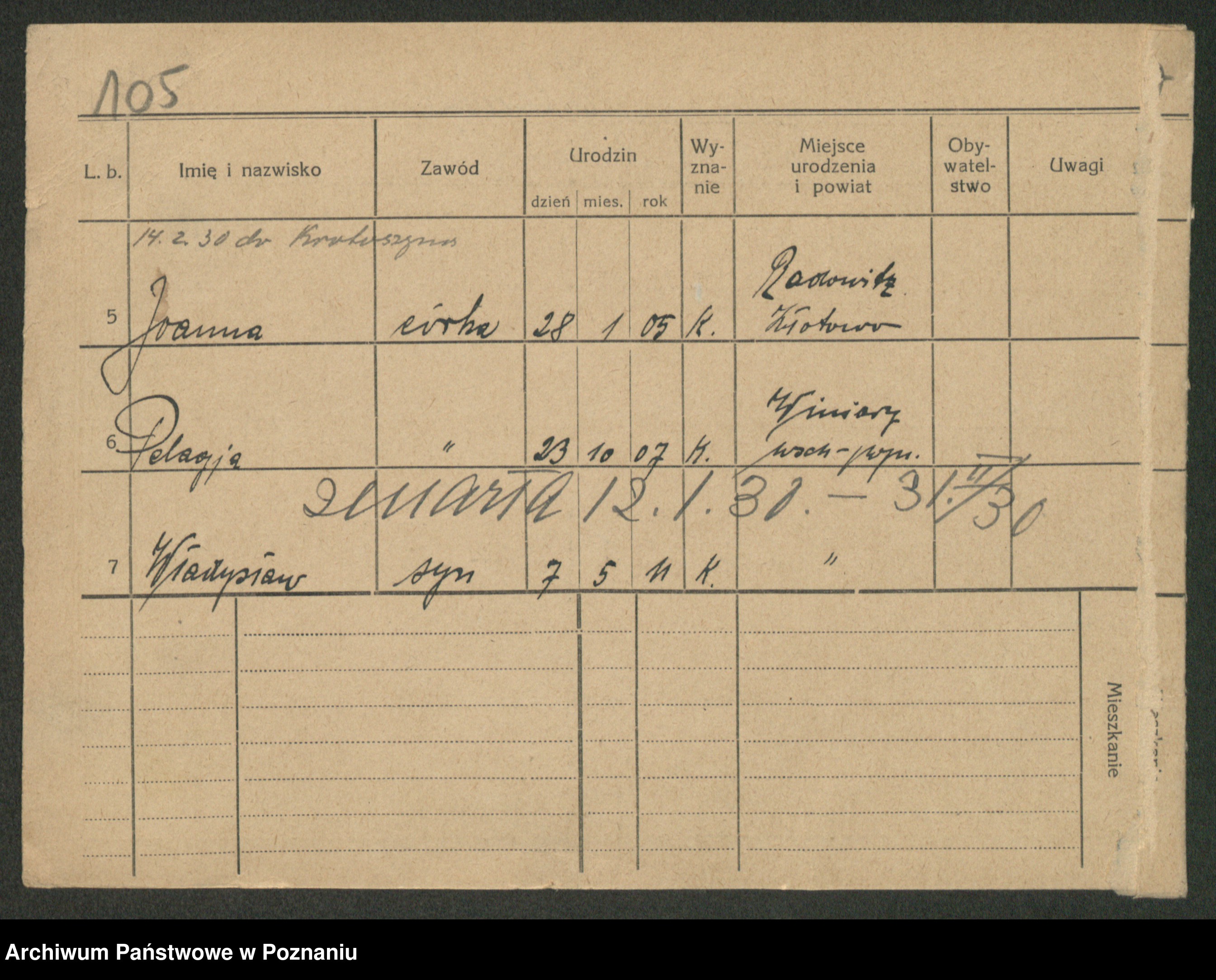 Podgląd karty osobowej dostępny jest po kliknięciu na nazwisko lub ikonkę karty. Można dokonywać powiększenia (ikony na górze) lub przechodzić między kolejnymi skanami (strzałki po bokach).