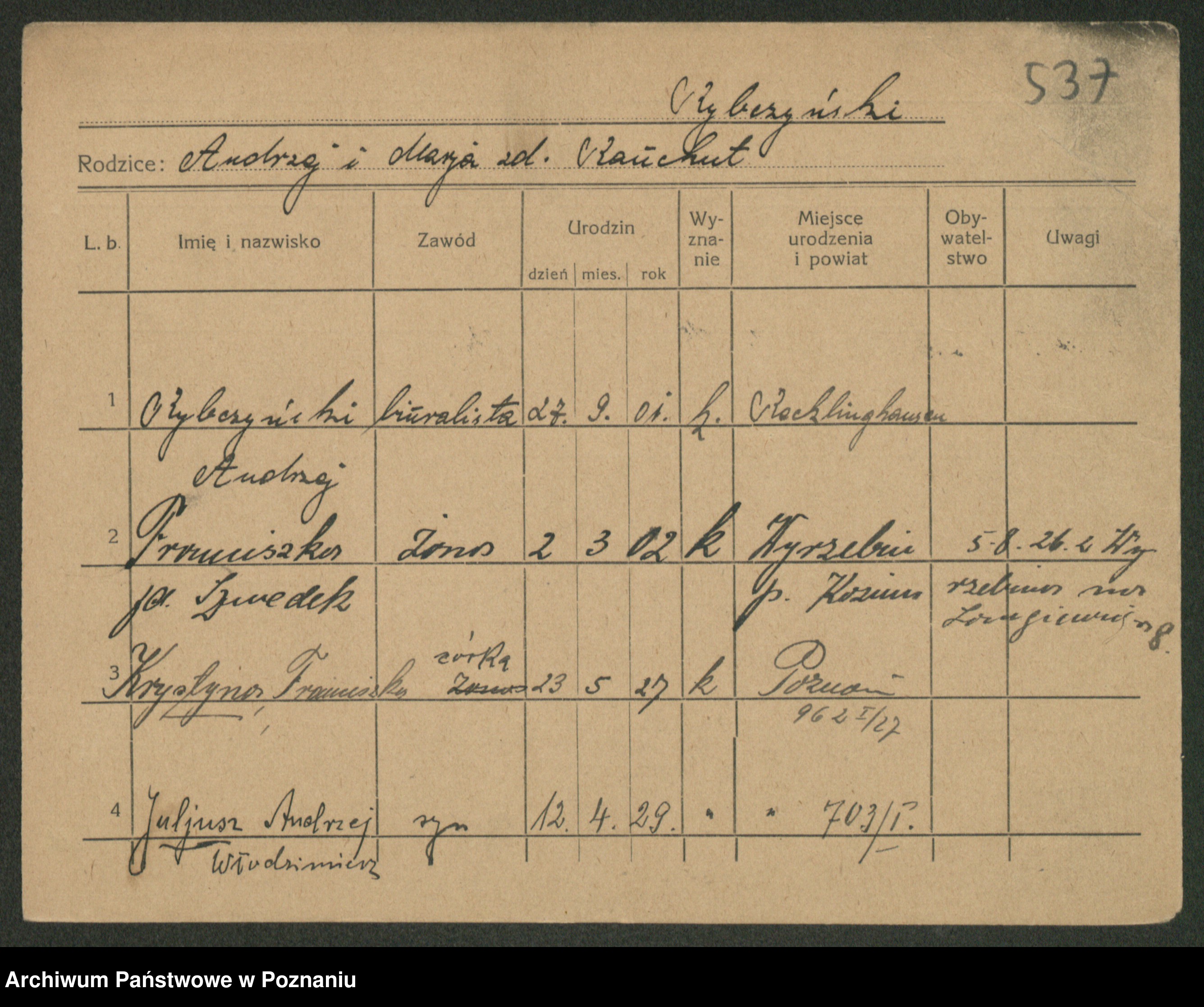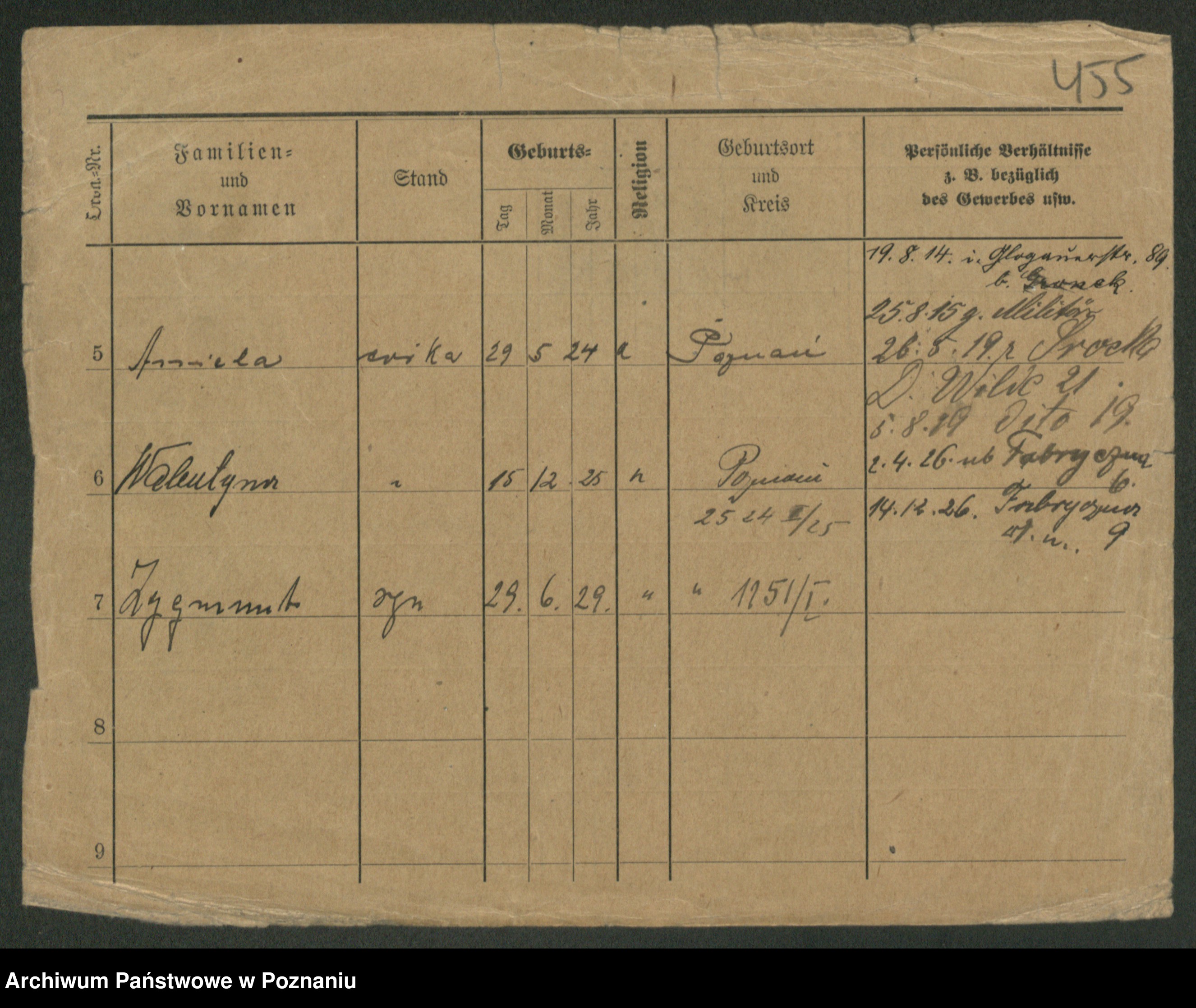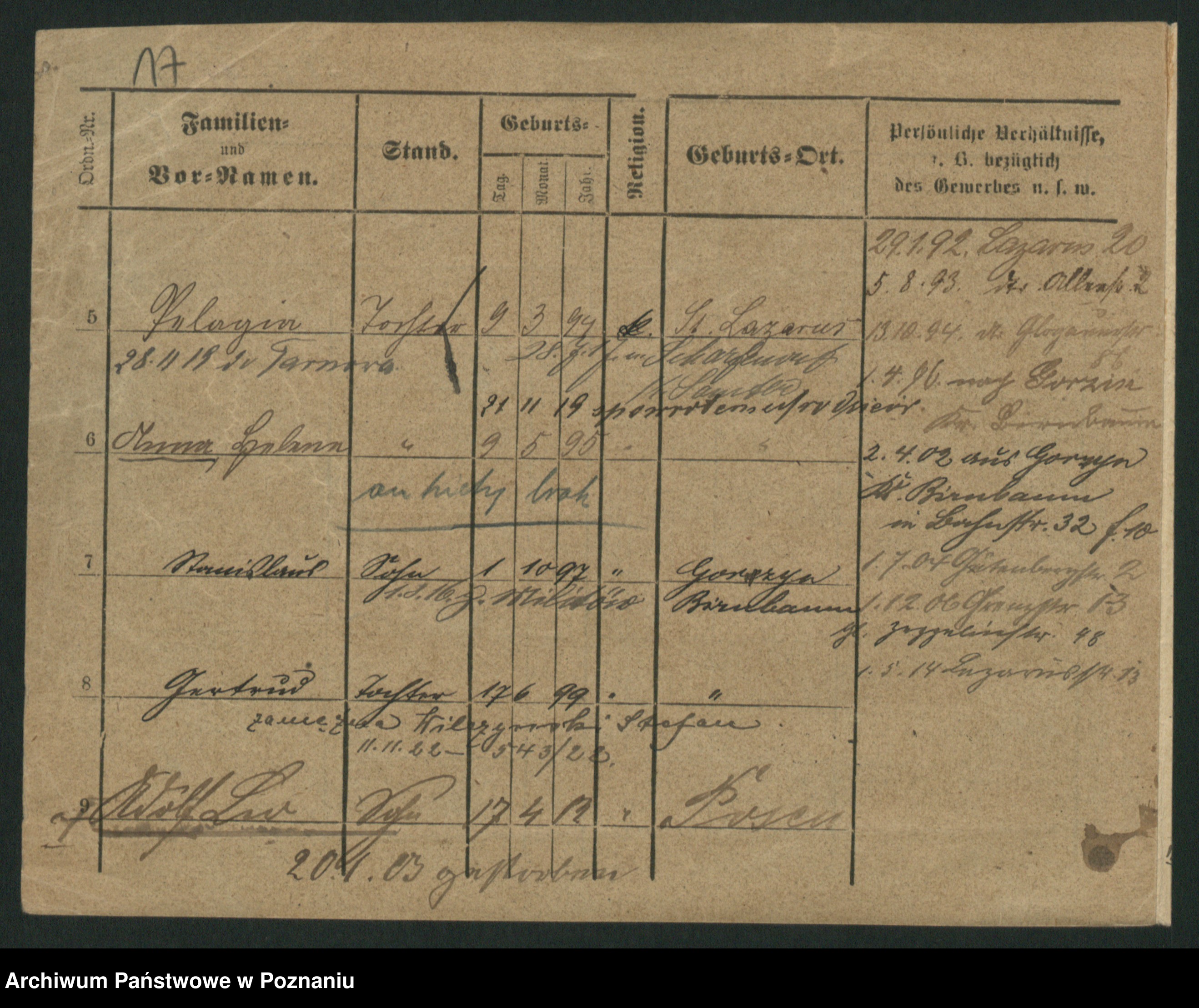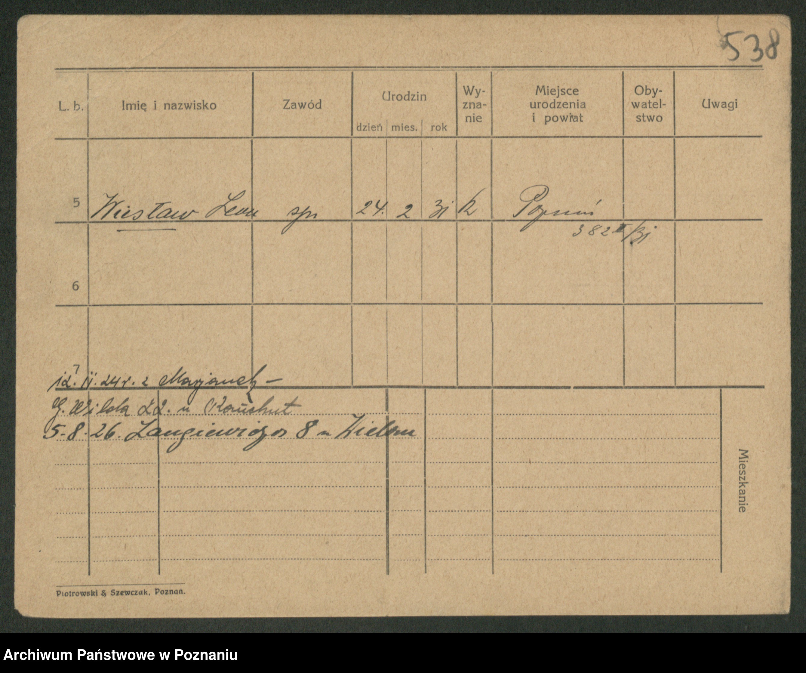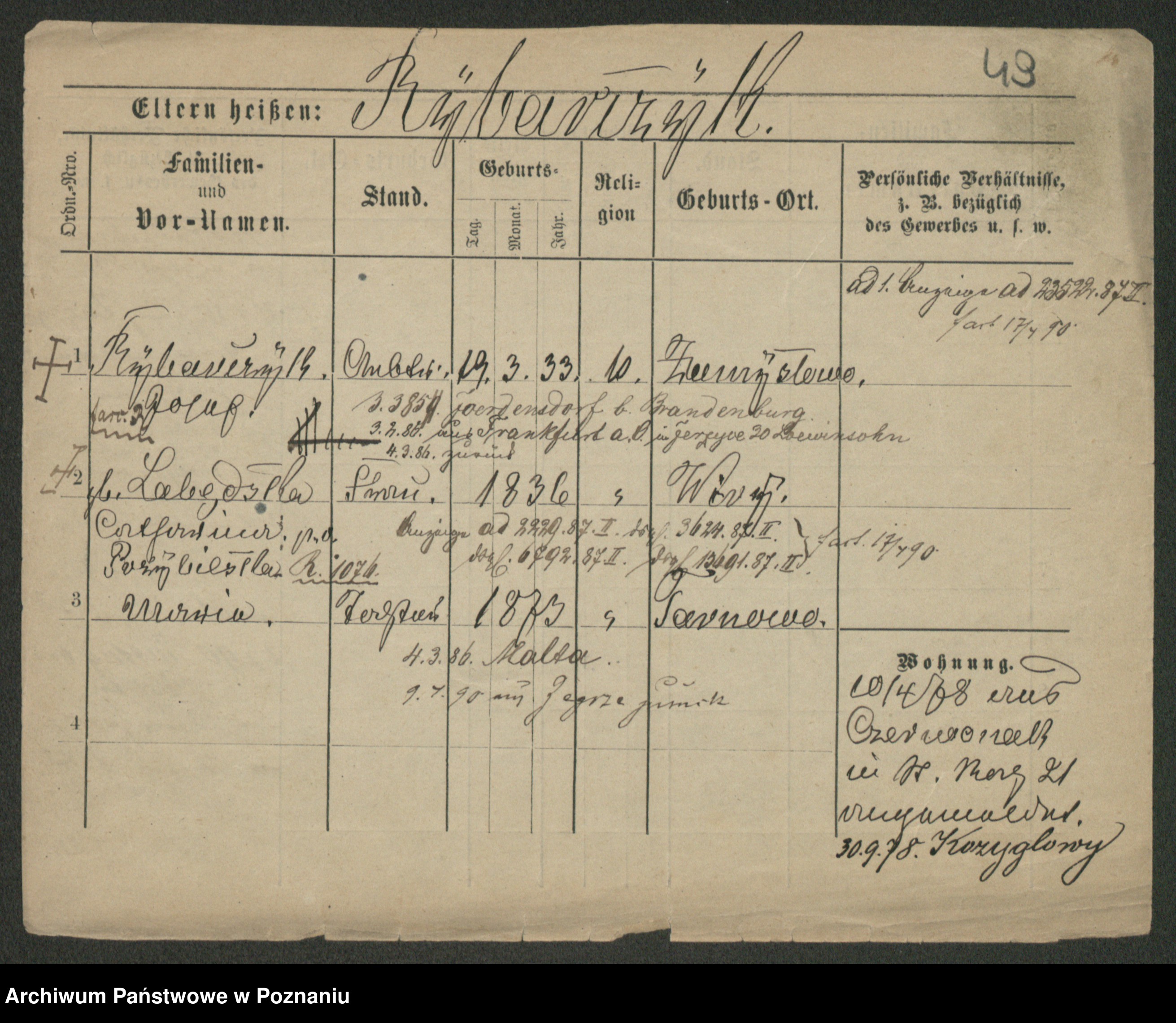 Podgląd karty osobowej dostępny jest po kliknięciu na nazwisko lub ikonkę karty. Można dokonywać powiększenia (ikony na górze) lub przechodzić między kolejnymi skanami (strzałki po bokach).