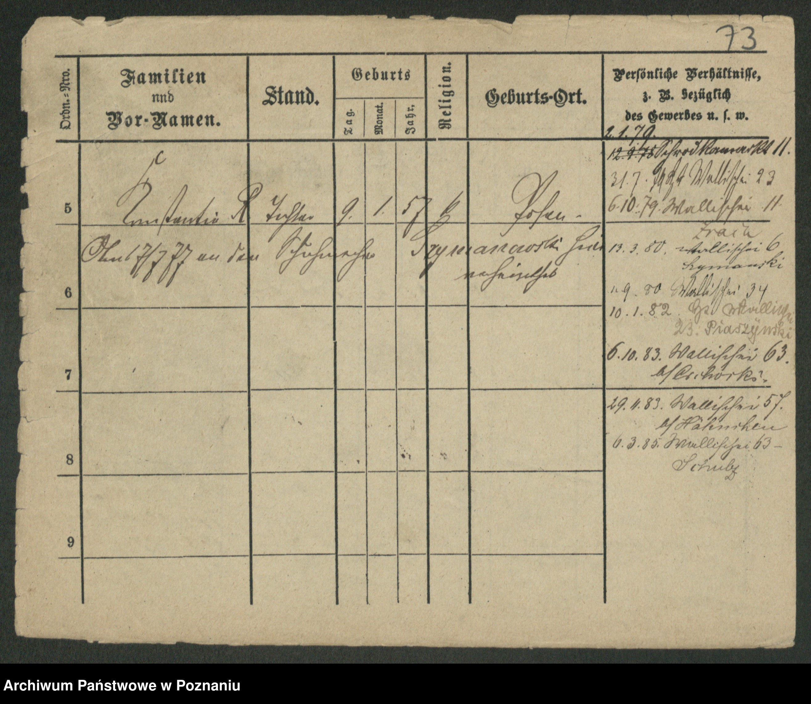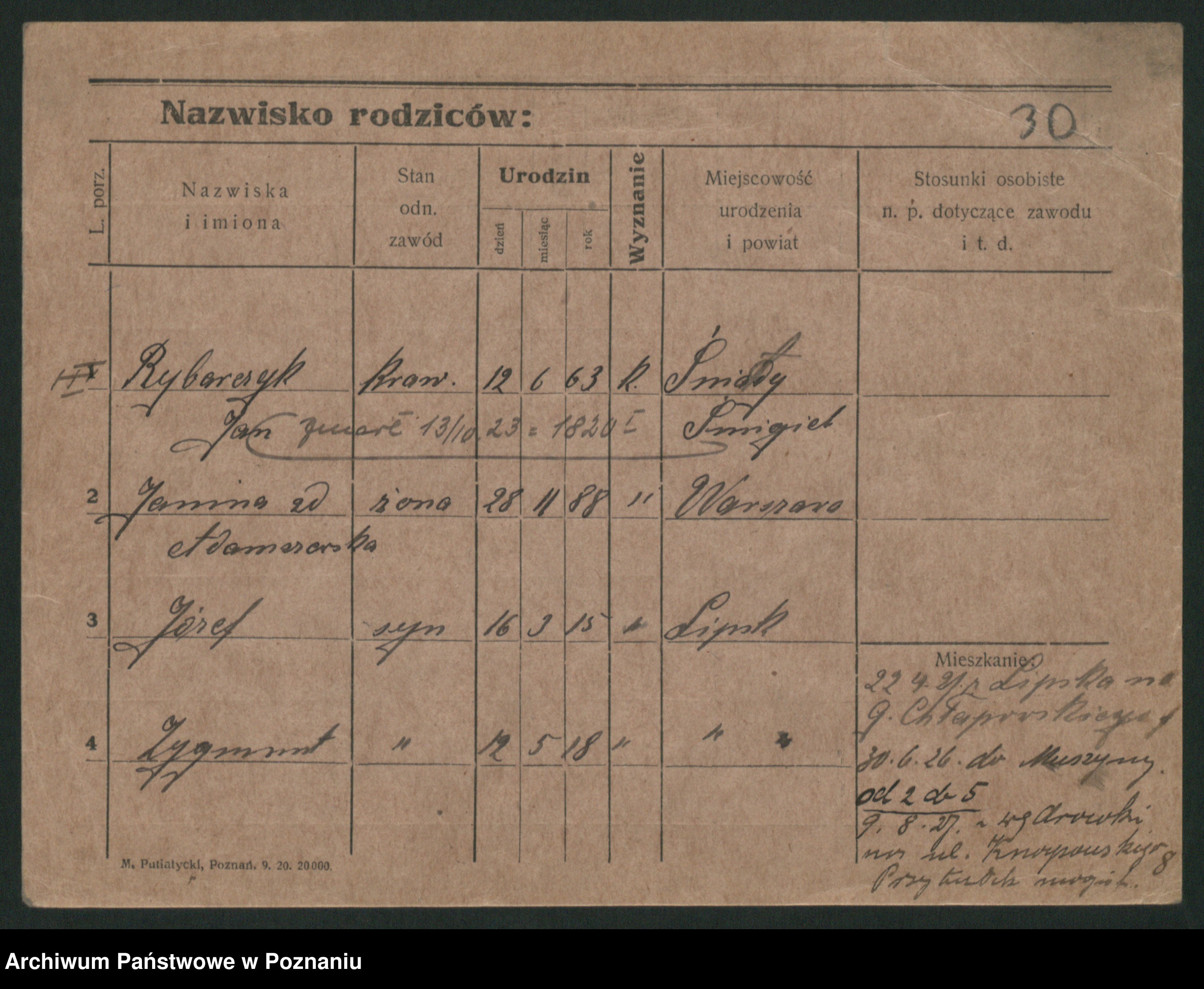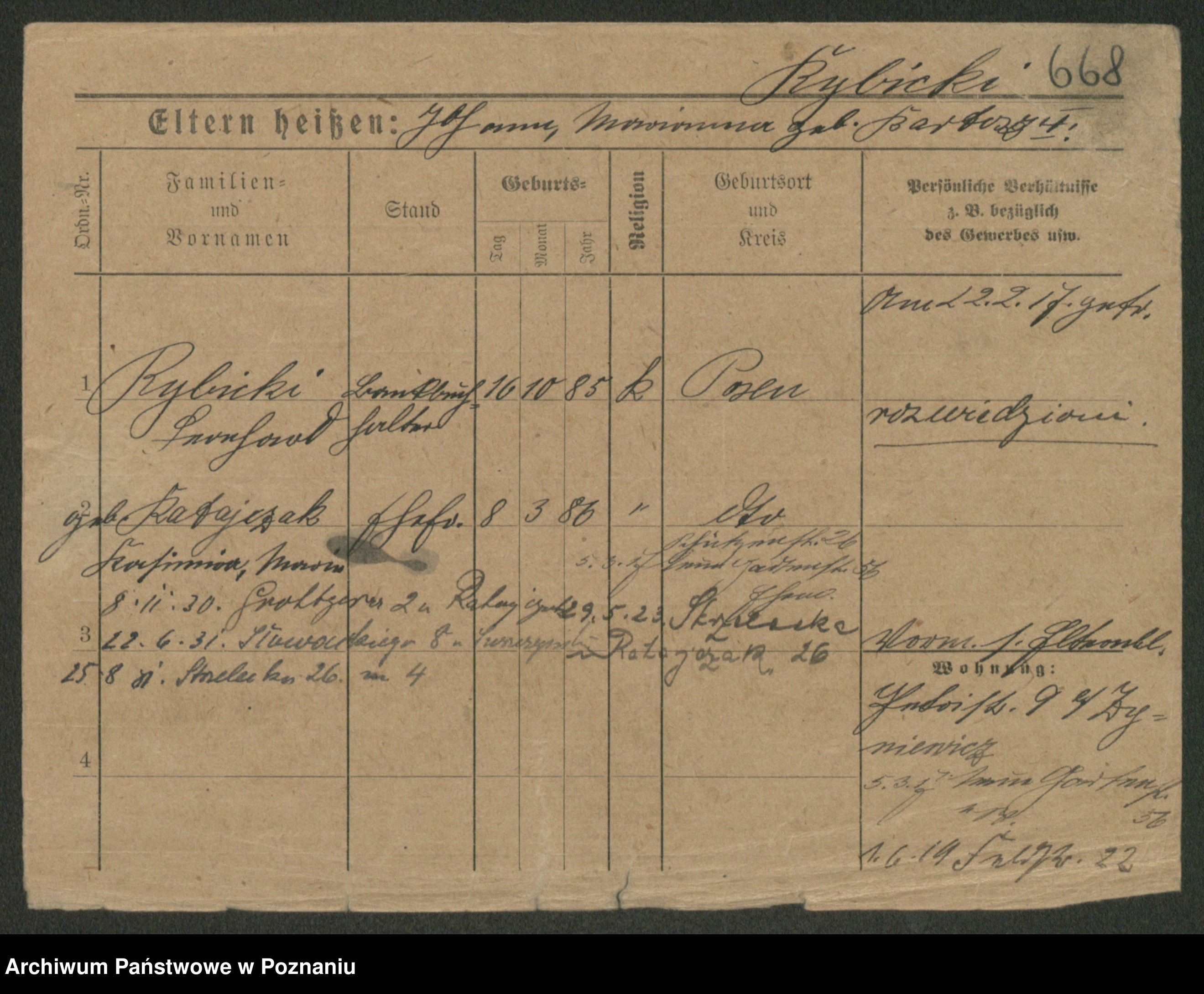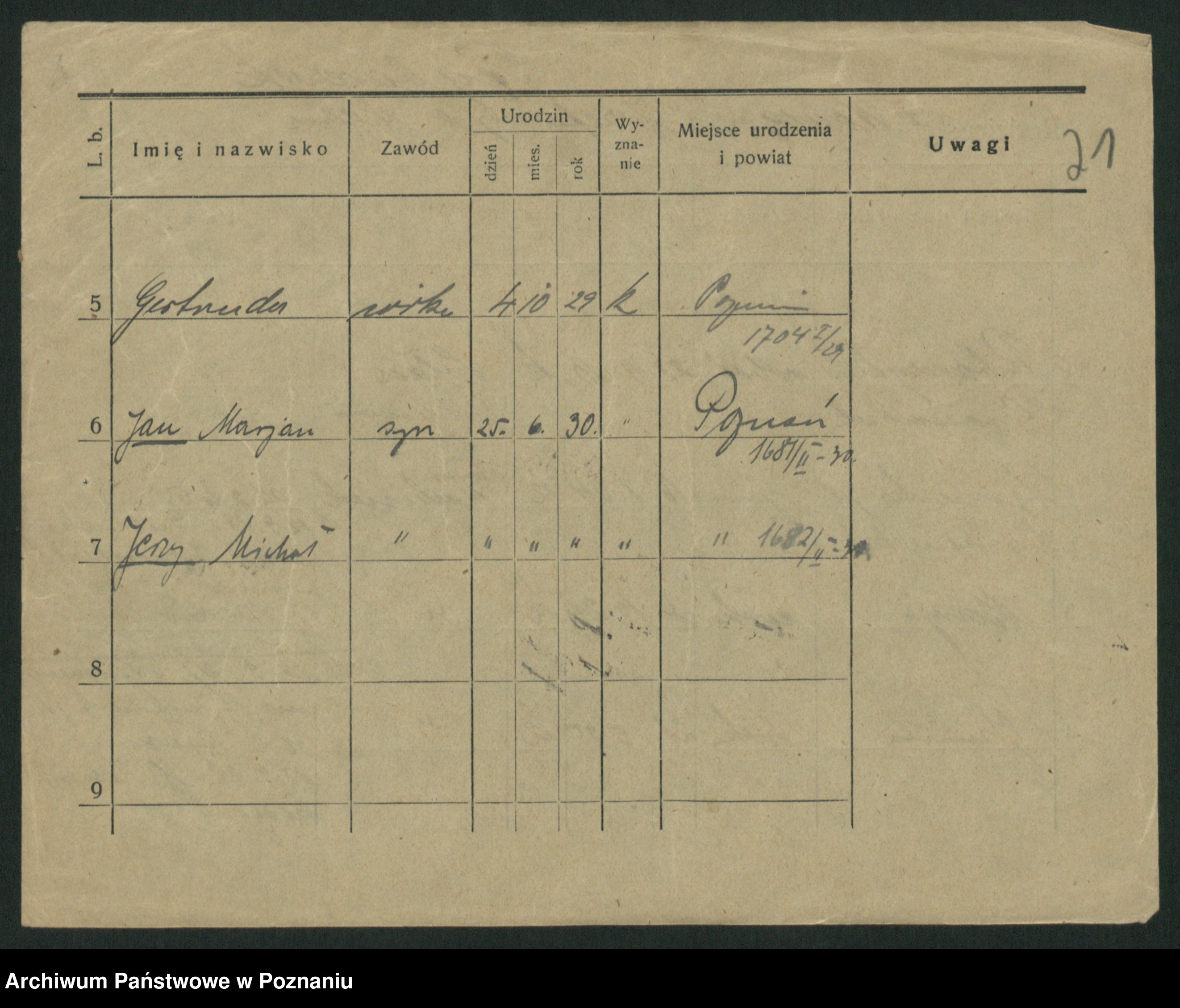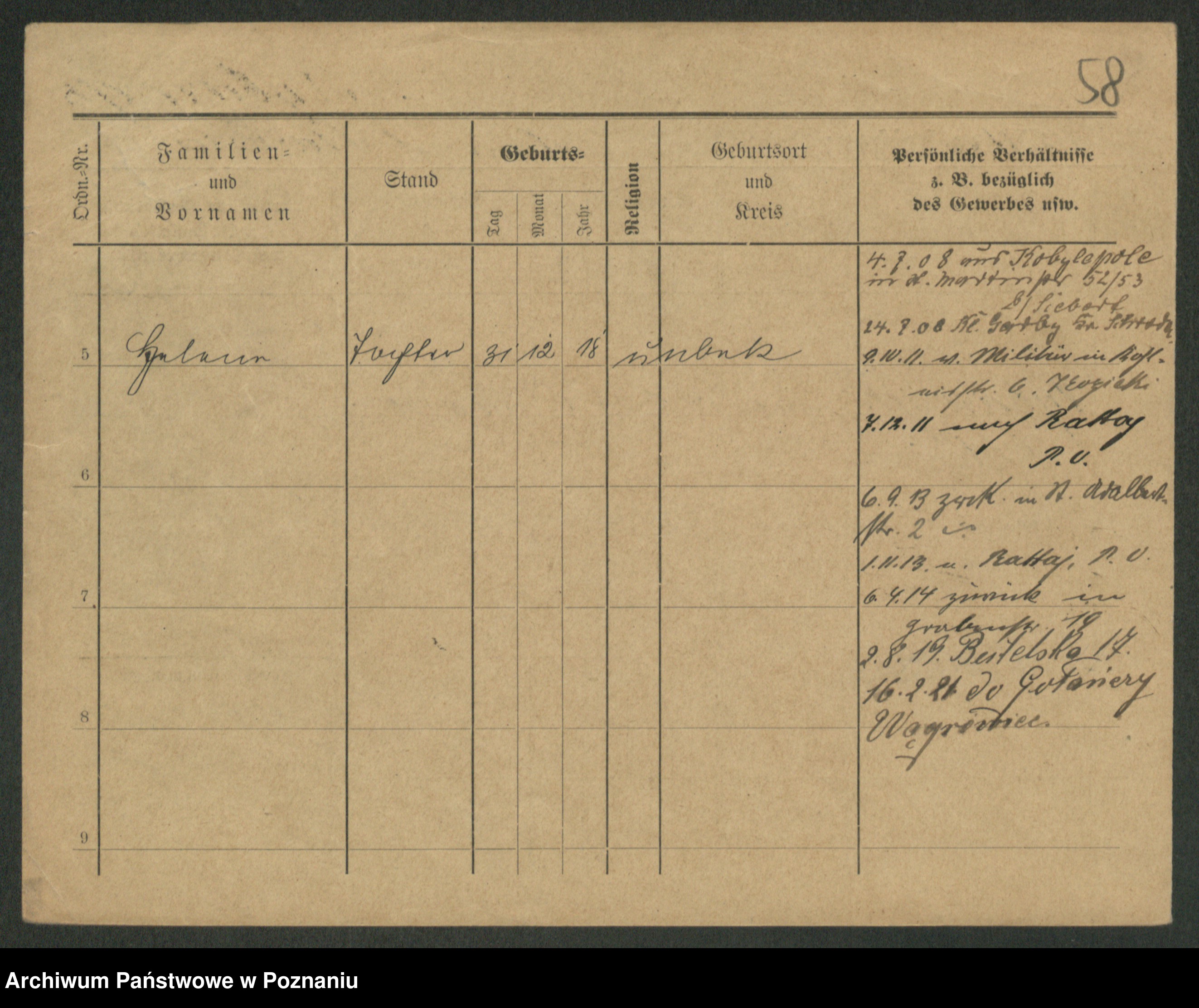 Podgląd karty osobowej dostępny jest po kliknięciu na nazwisko lub ikonkę karty. Można dokonywać powiększenia (ikony na górze) lub przechodzić między kolejnymi skanami (strzałki po bokach).