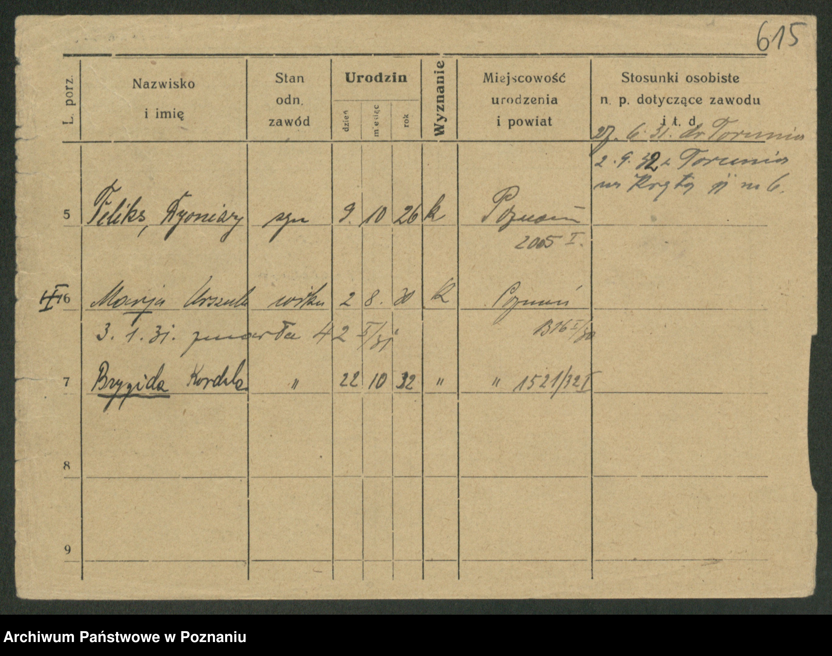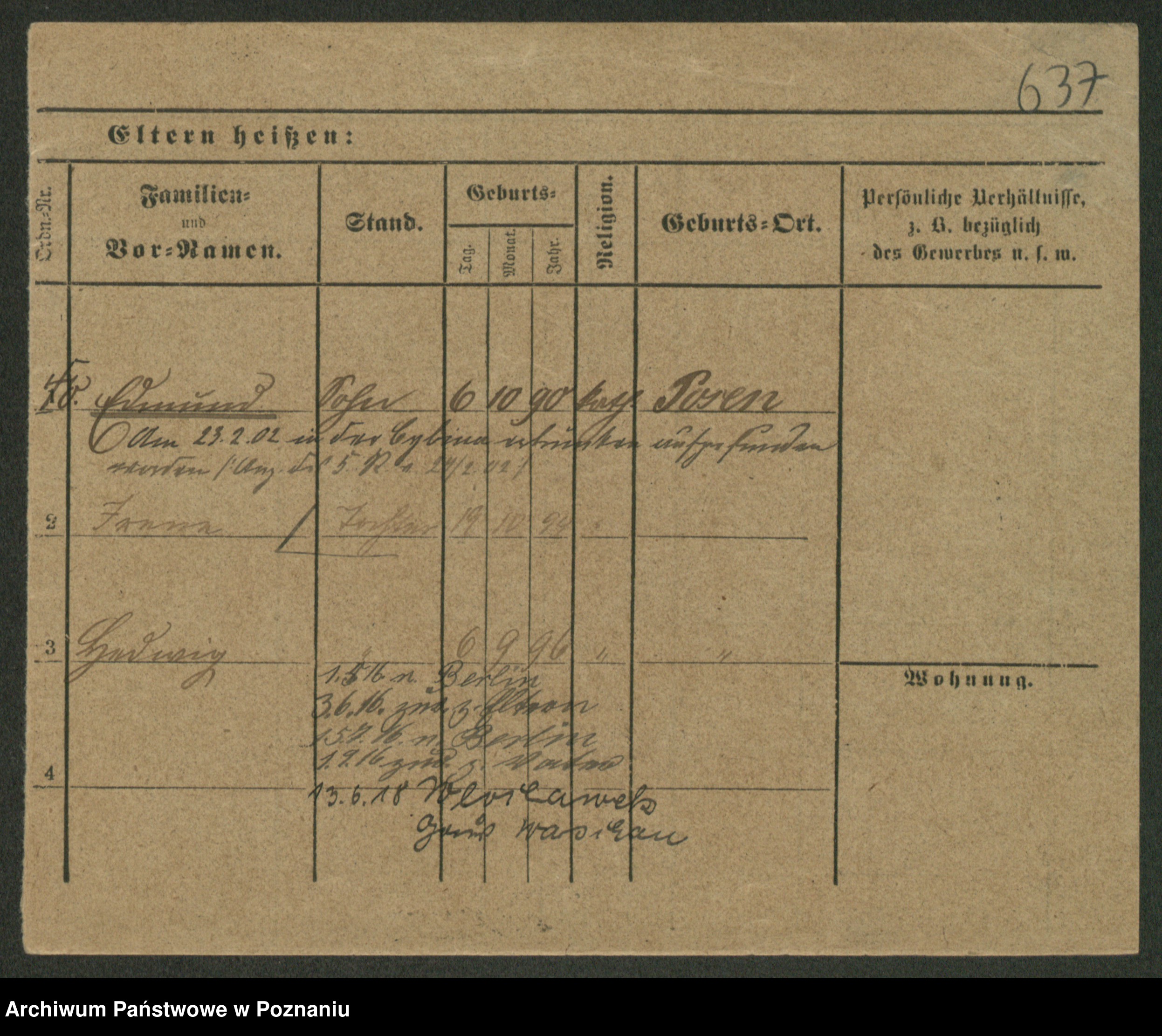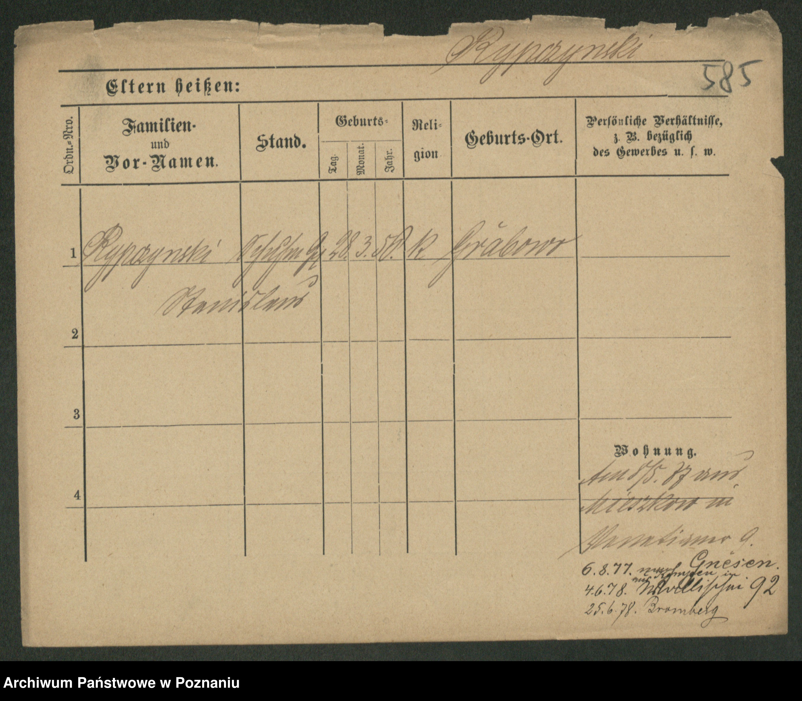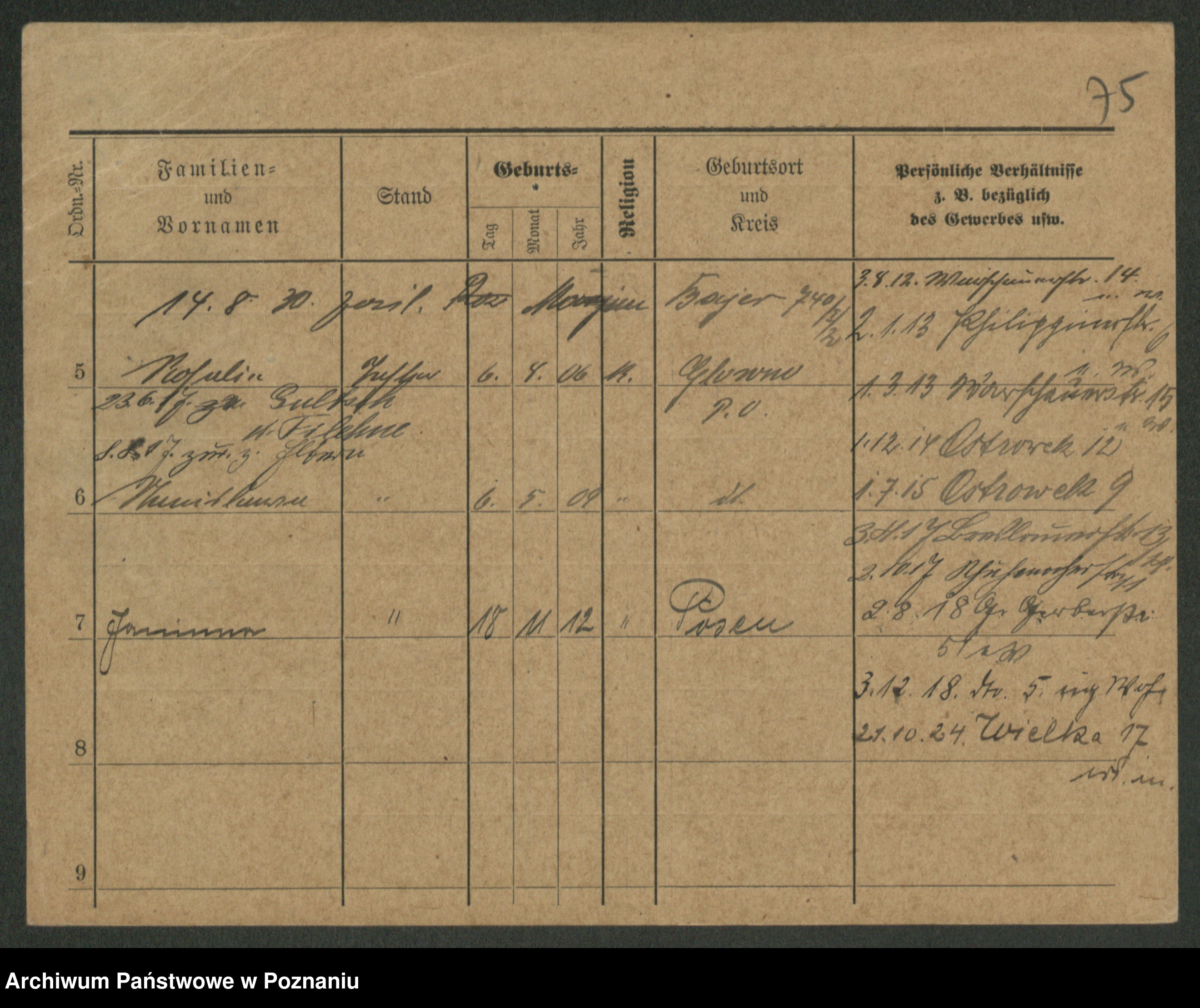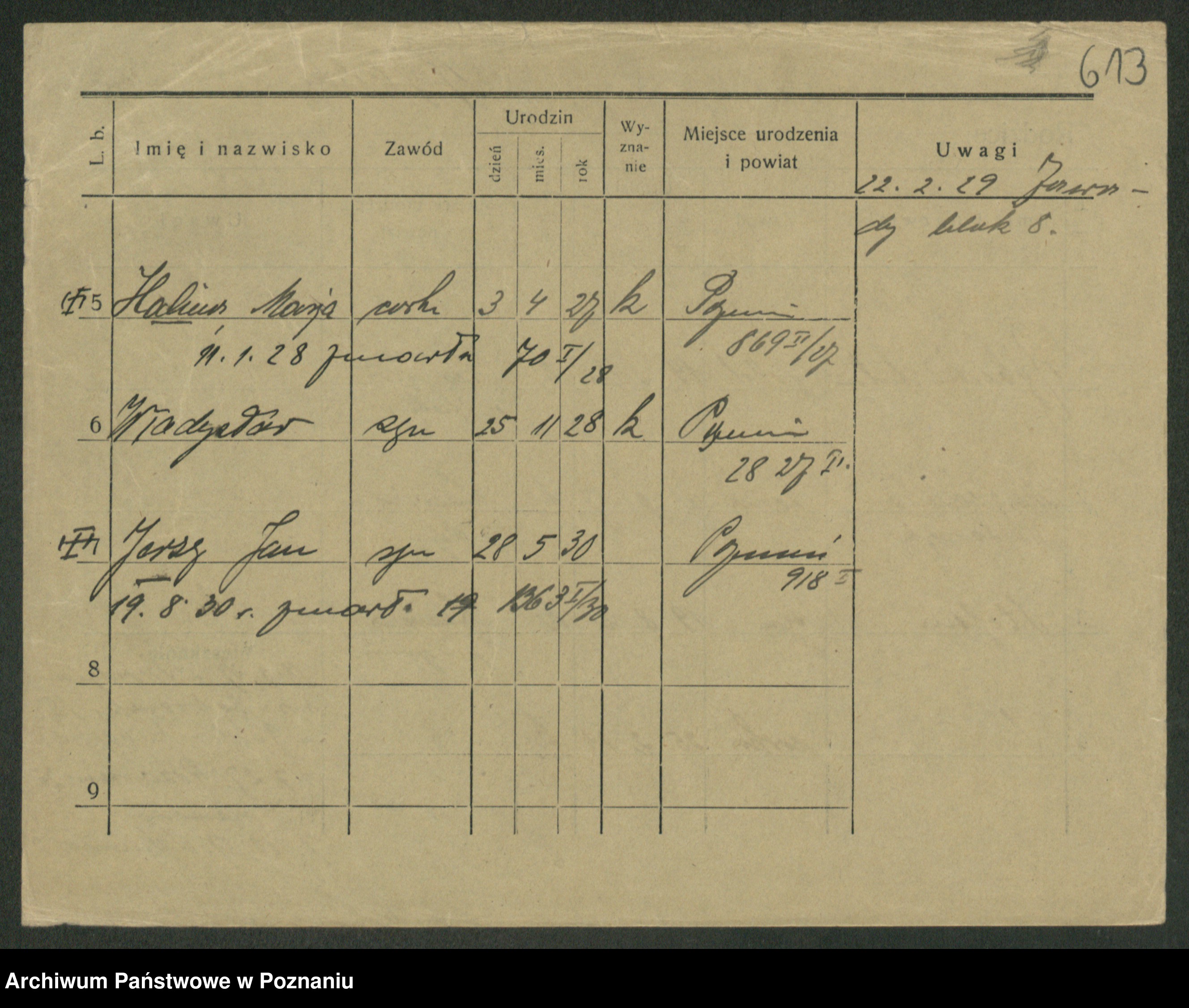 Podgląd karty osobowej dostępny jest po kliknięciu na nazwisko lub ikonkę karty. Można dokonywać powiększenia (ikony na górze) lub przechodzić między kolejnymi skanami (strzałki po bokach).