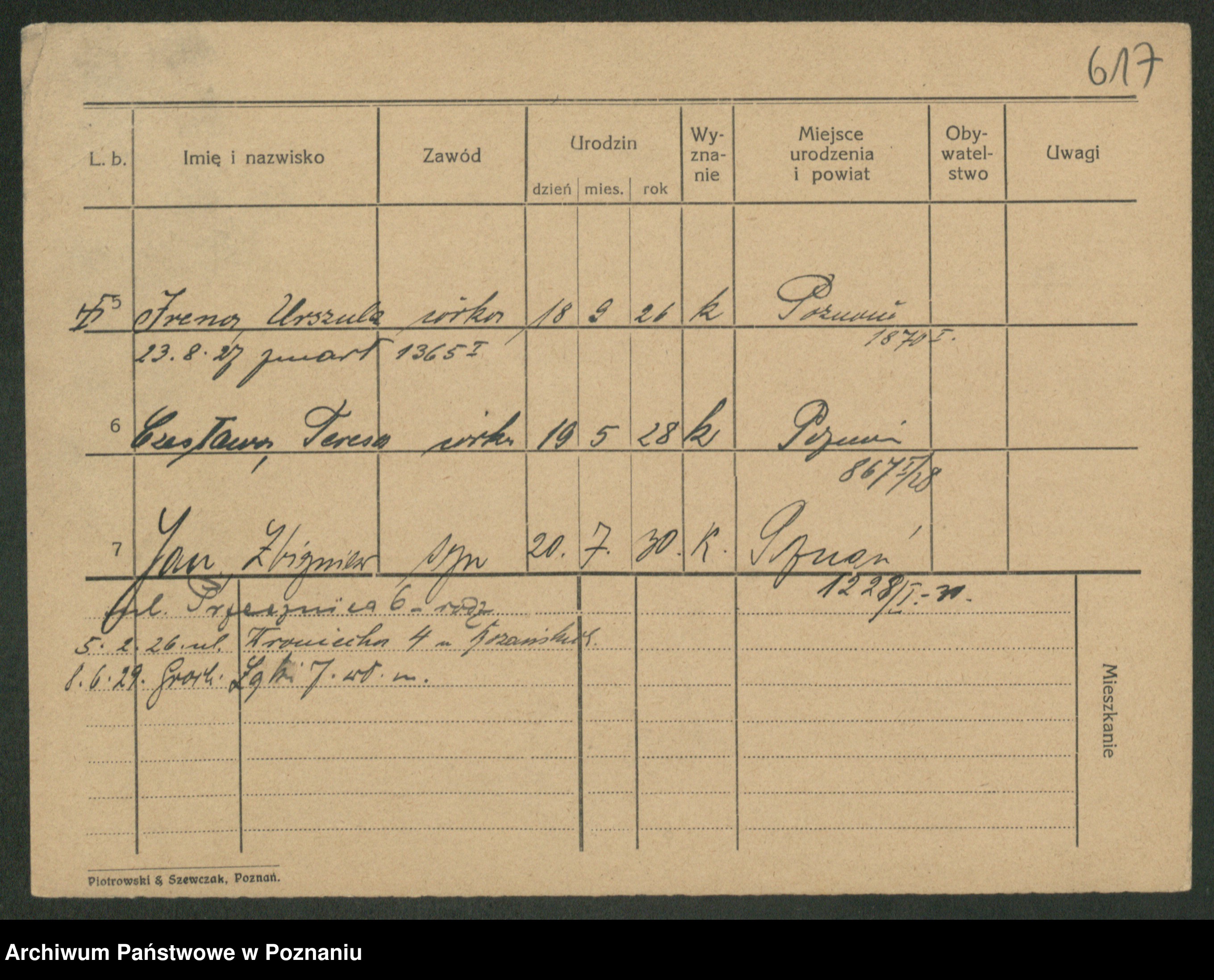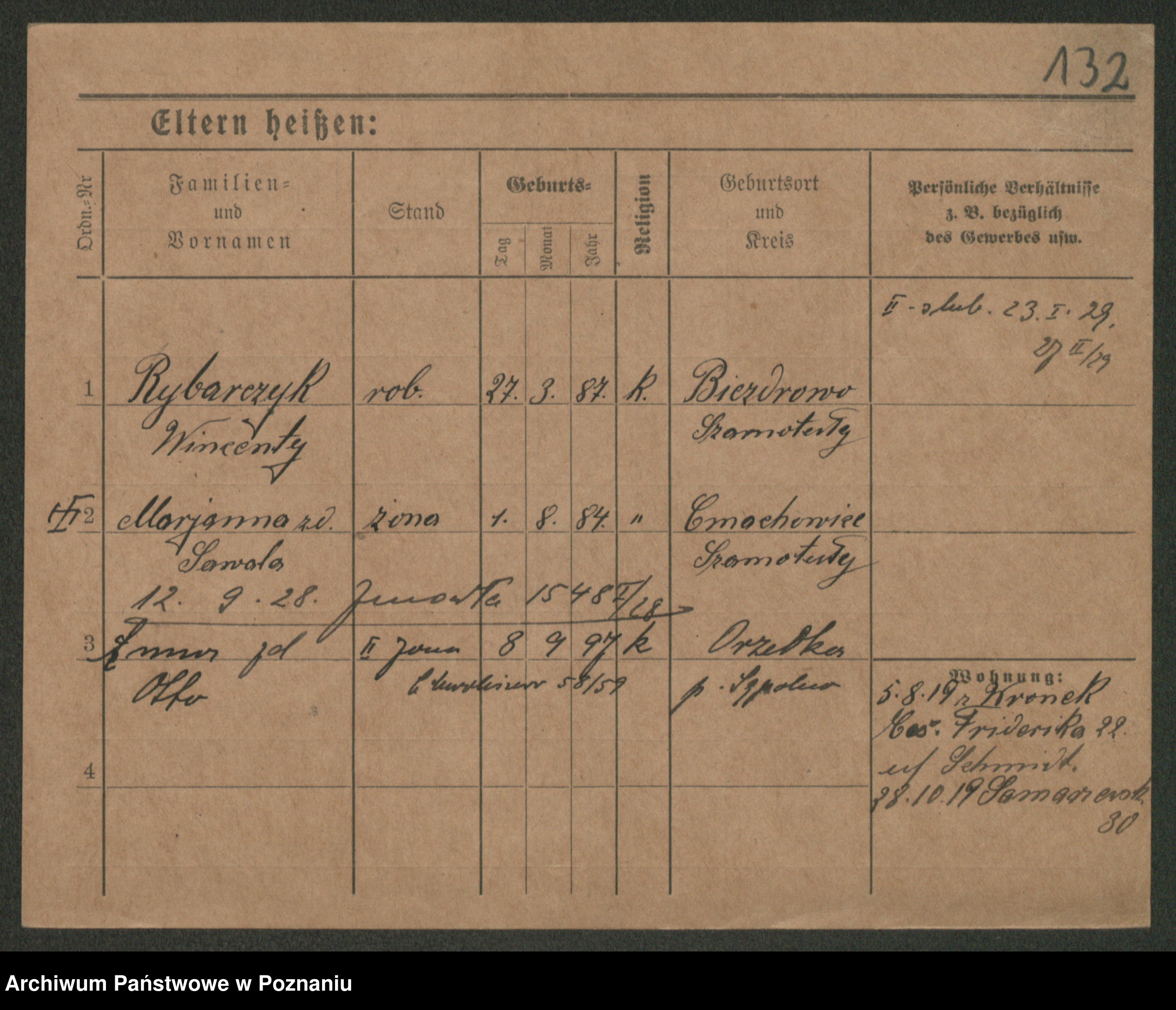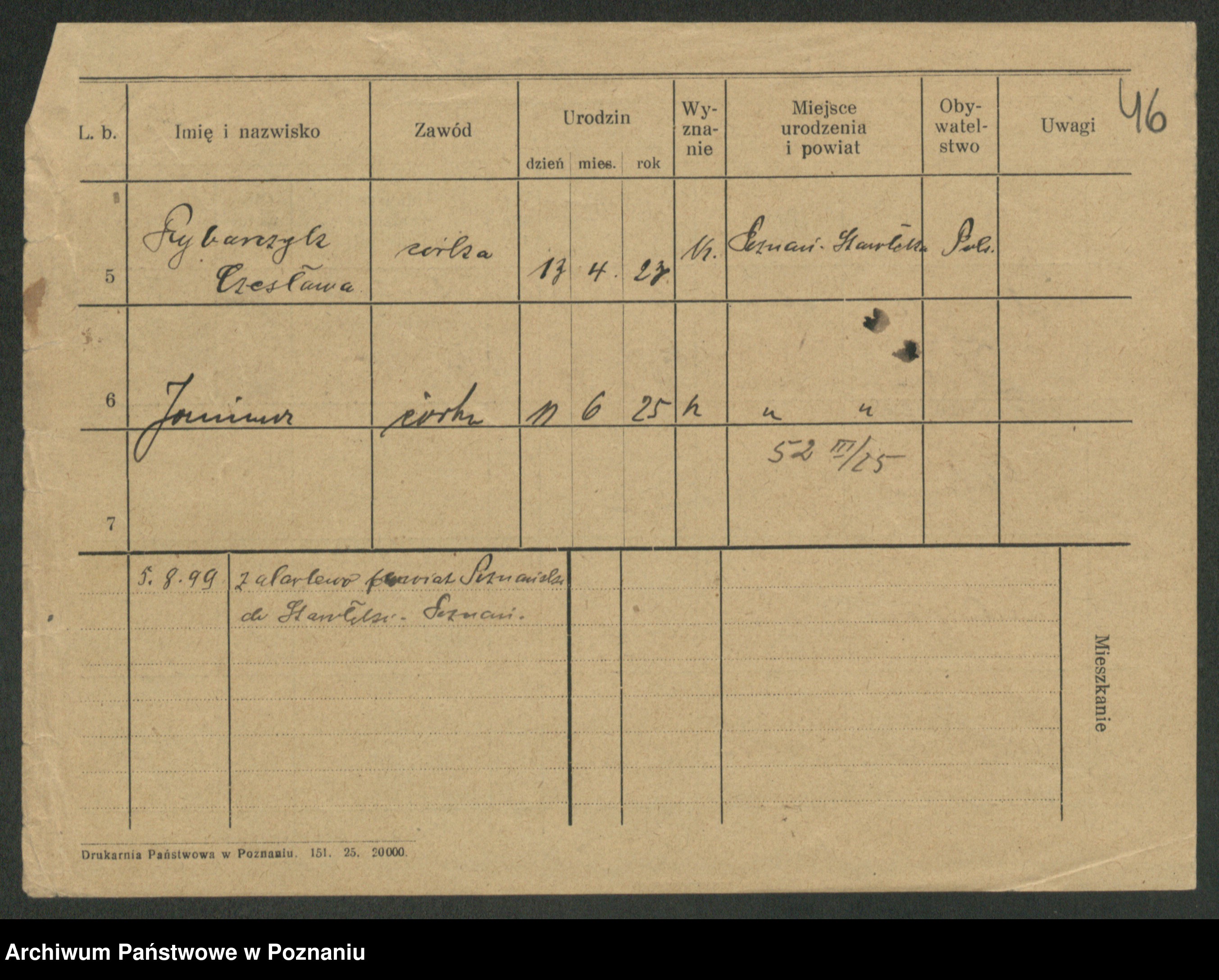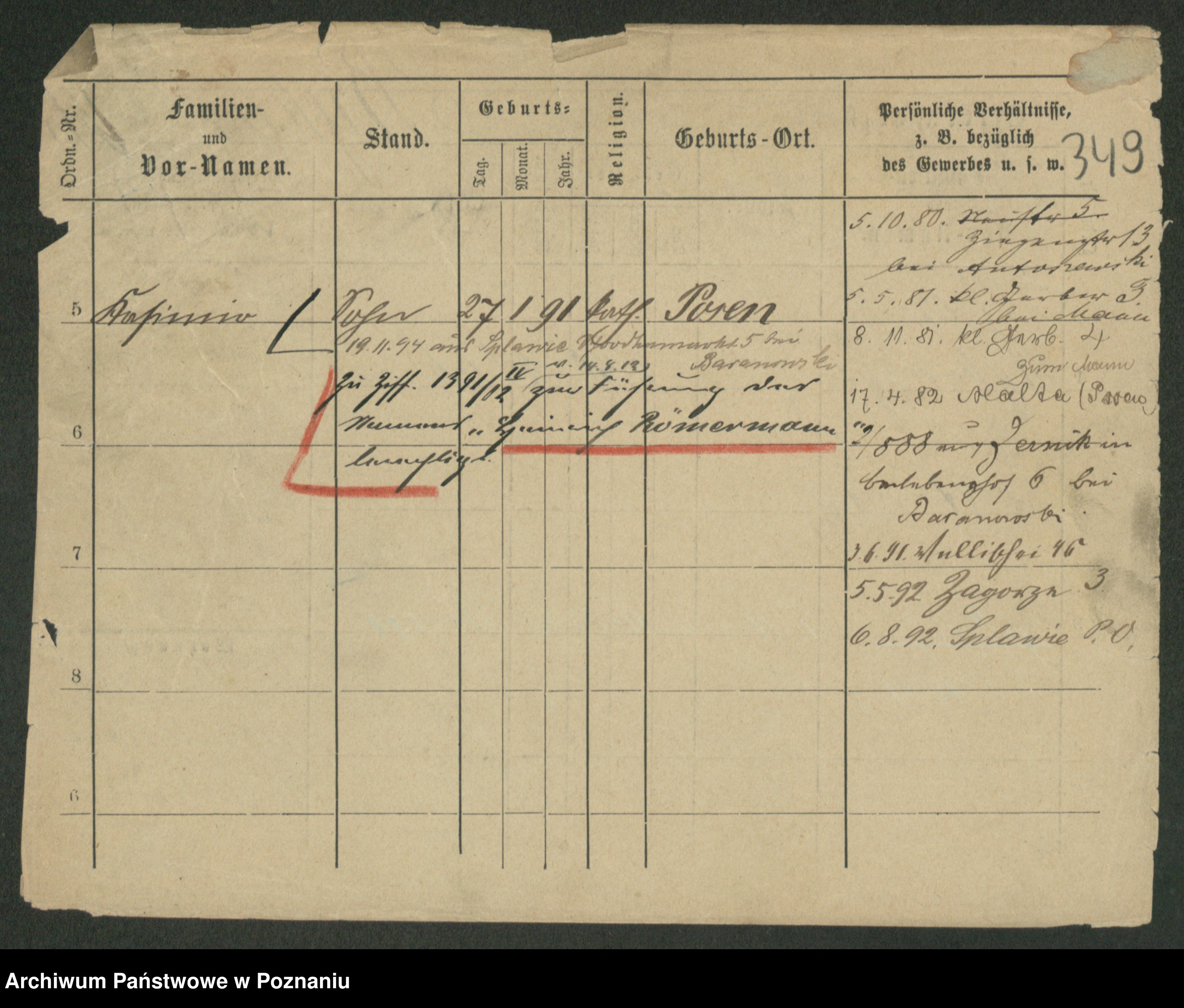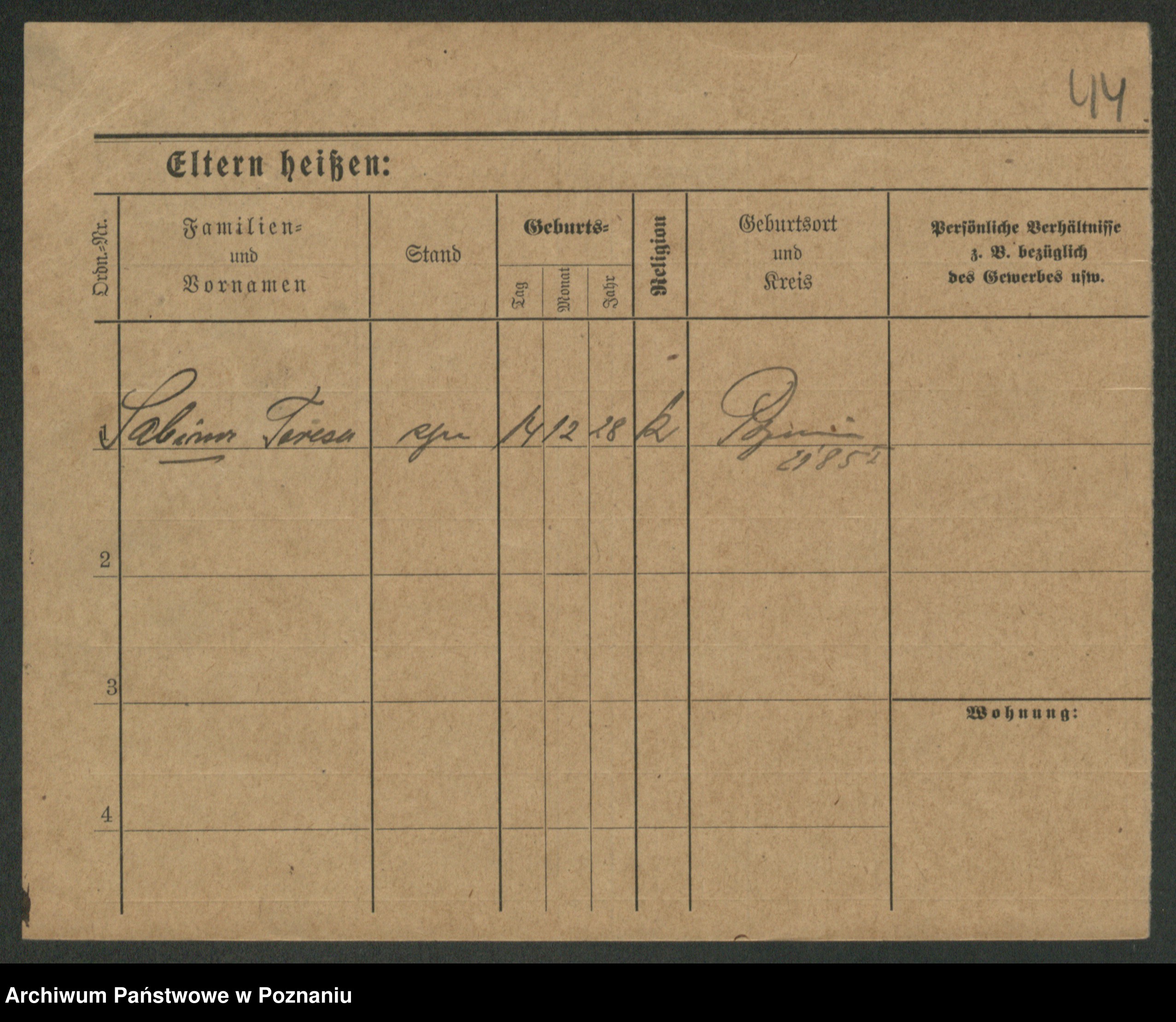 Podgląd karty osobowej dostępny jest po kliknięciu na nazwisko lub ikonkę karty. Można dokonywać powiększenia (ikony na górze) lub przechodzić między kolejnymi skanami (strzałki po bokach).