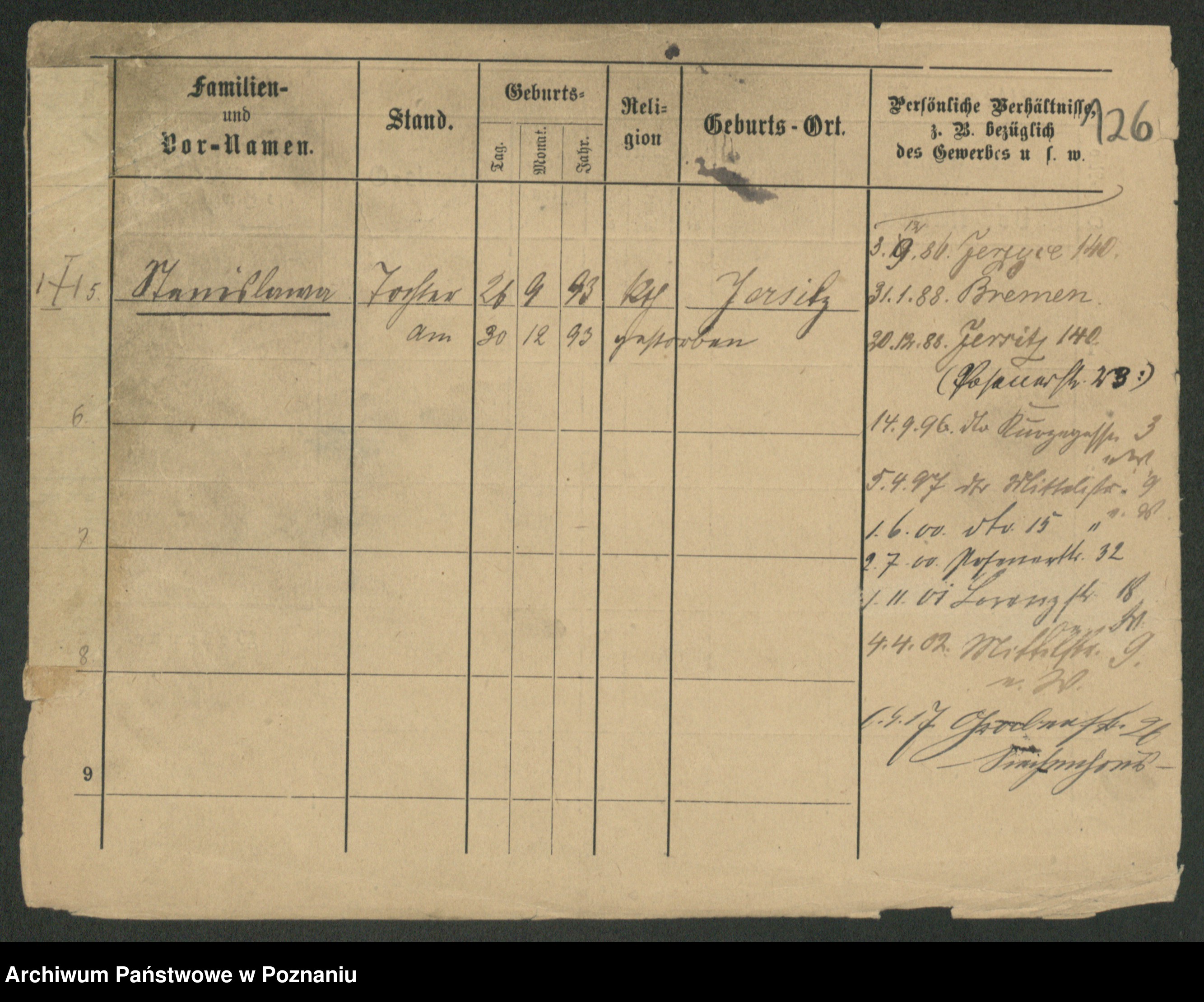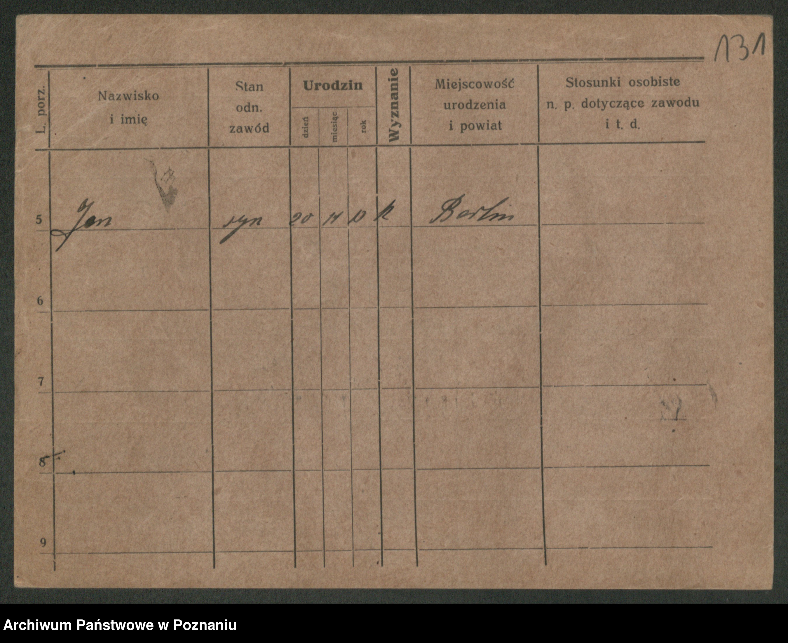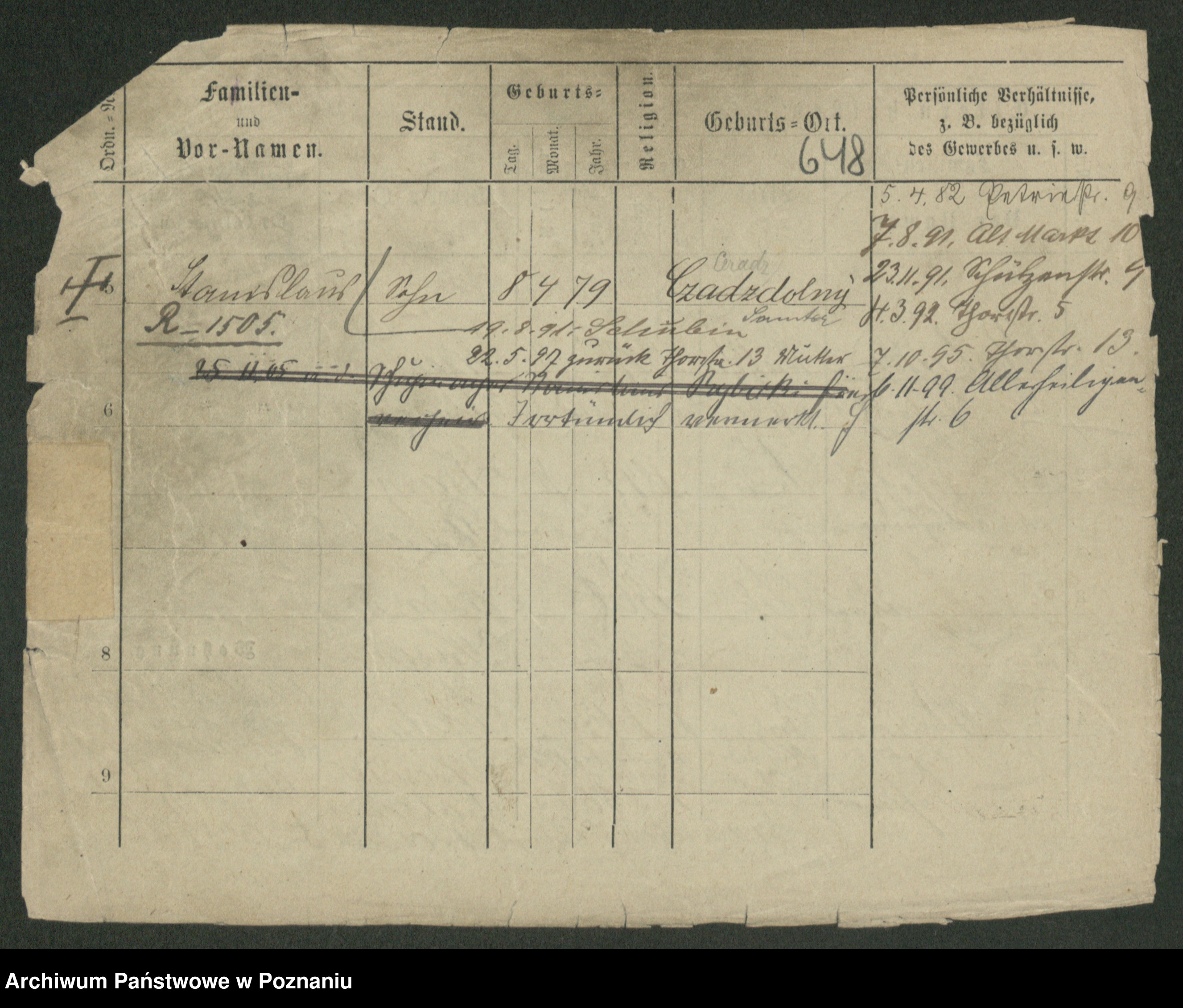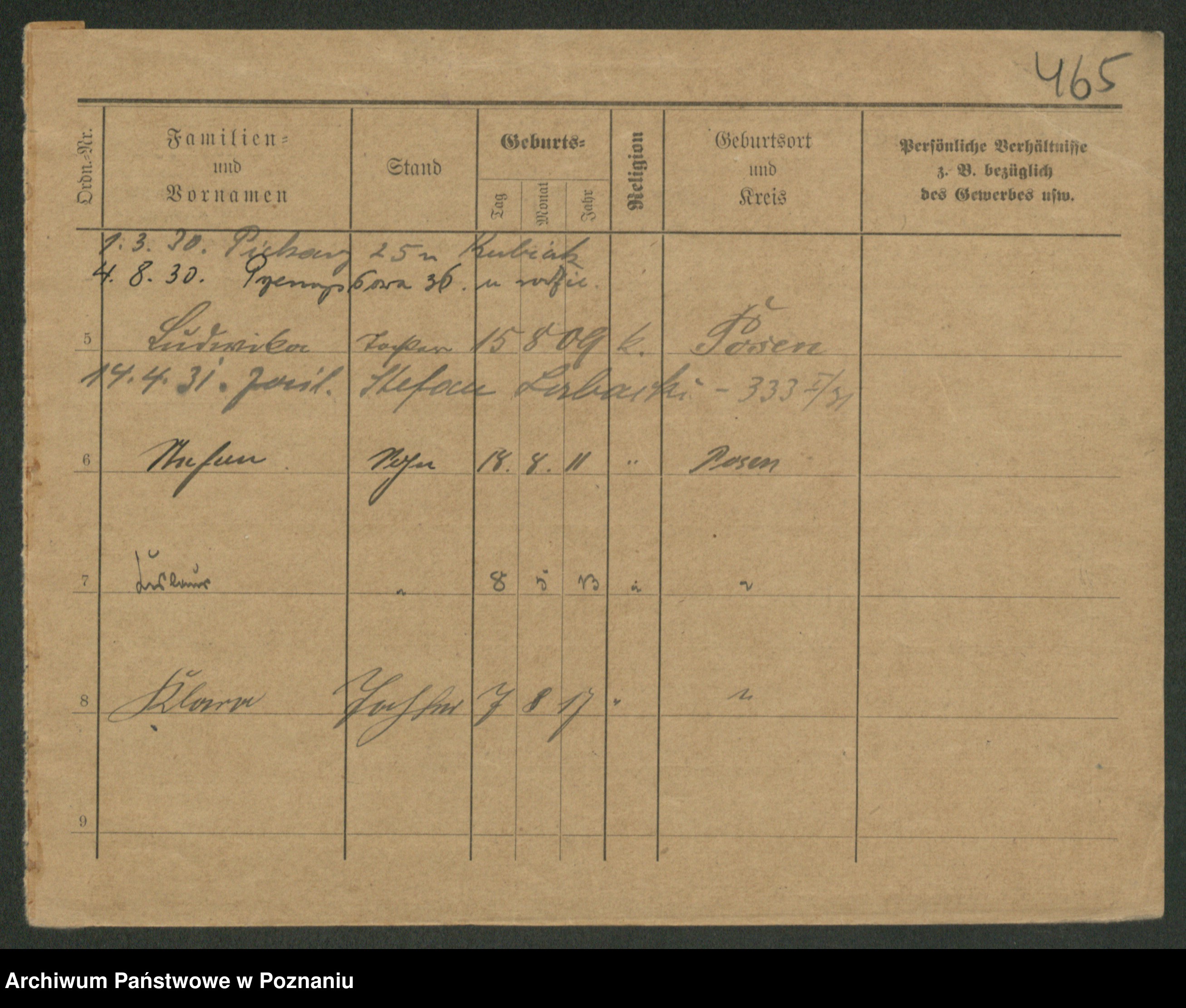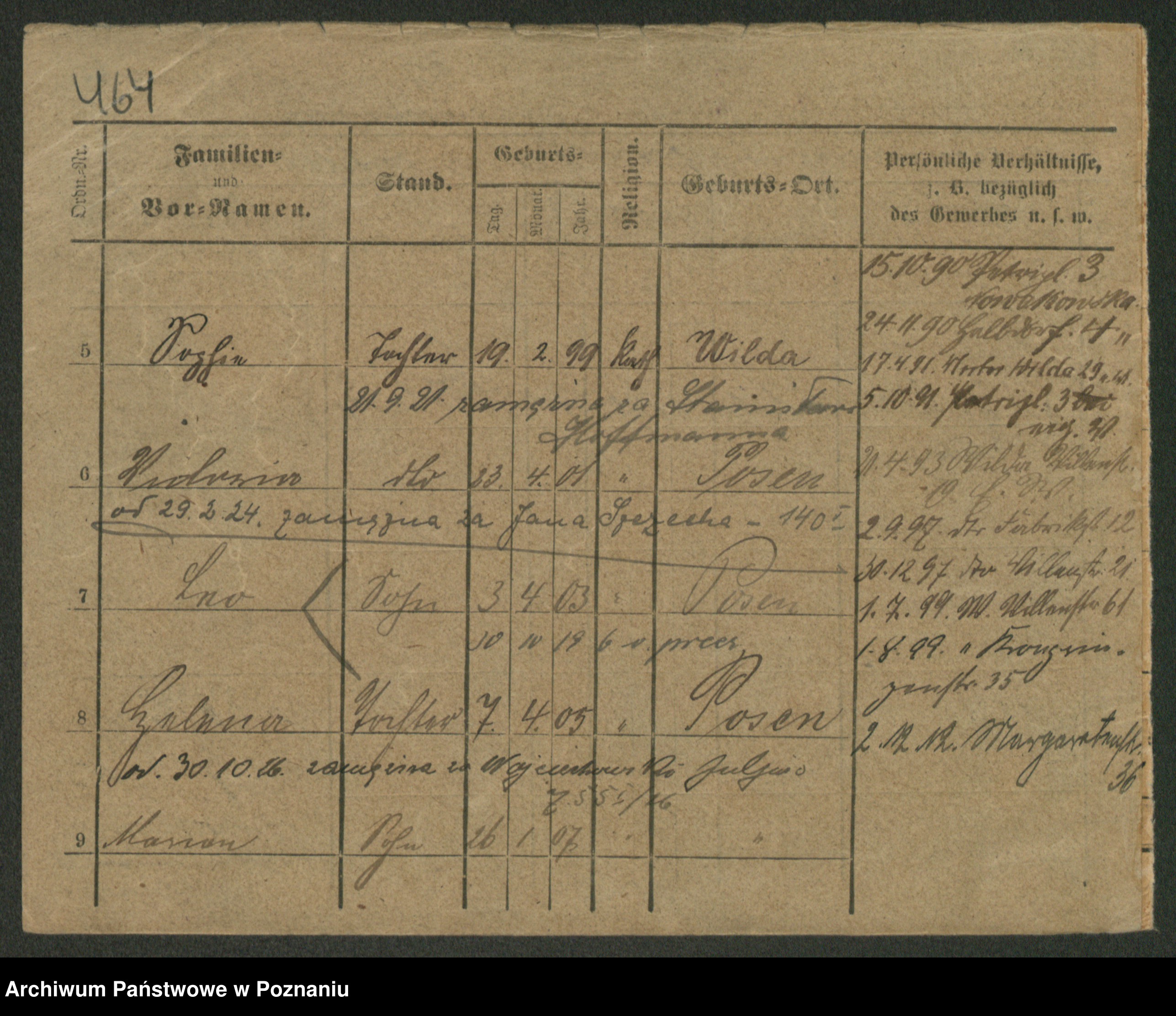 Podgląd karty osobowej dostępny jest po kliknięciu na nazwisko lub ikonkę karty. Można dokonywać powiększenia (ikony na górze) lub przechodzić między kolejnymi skanami (strzałki po bokach).