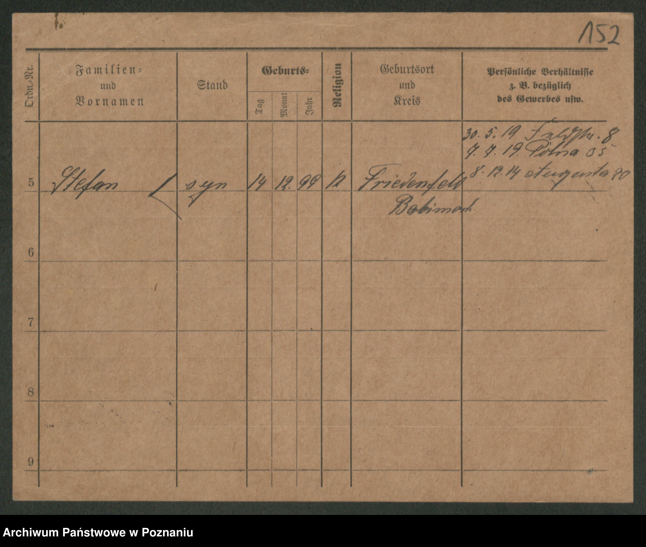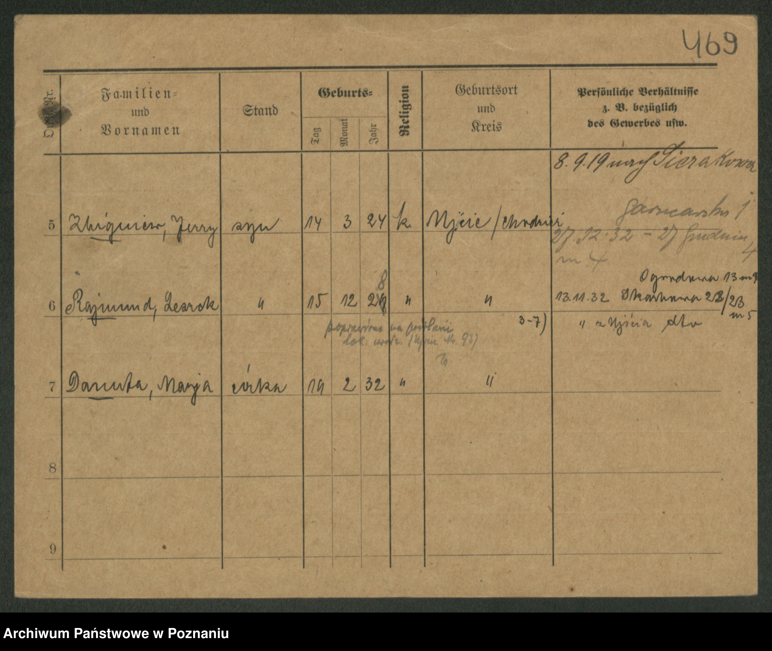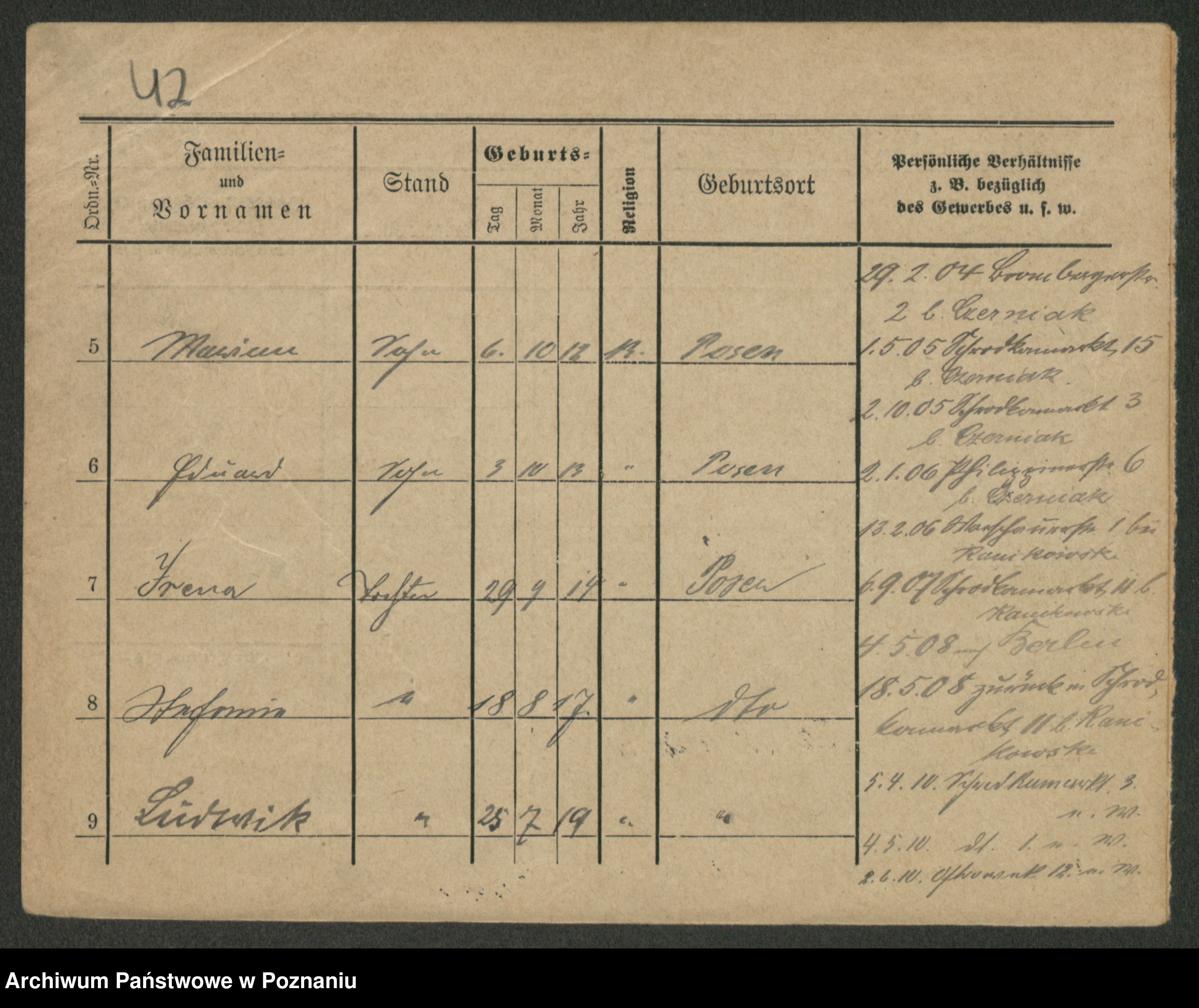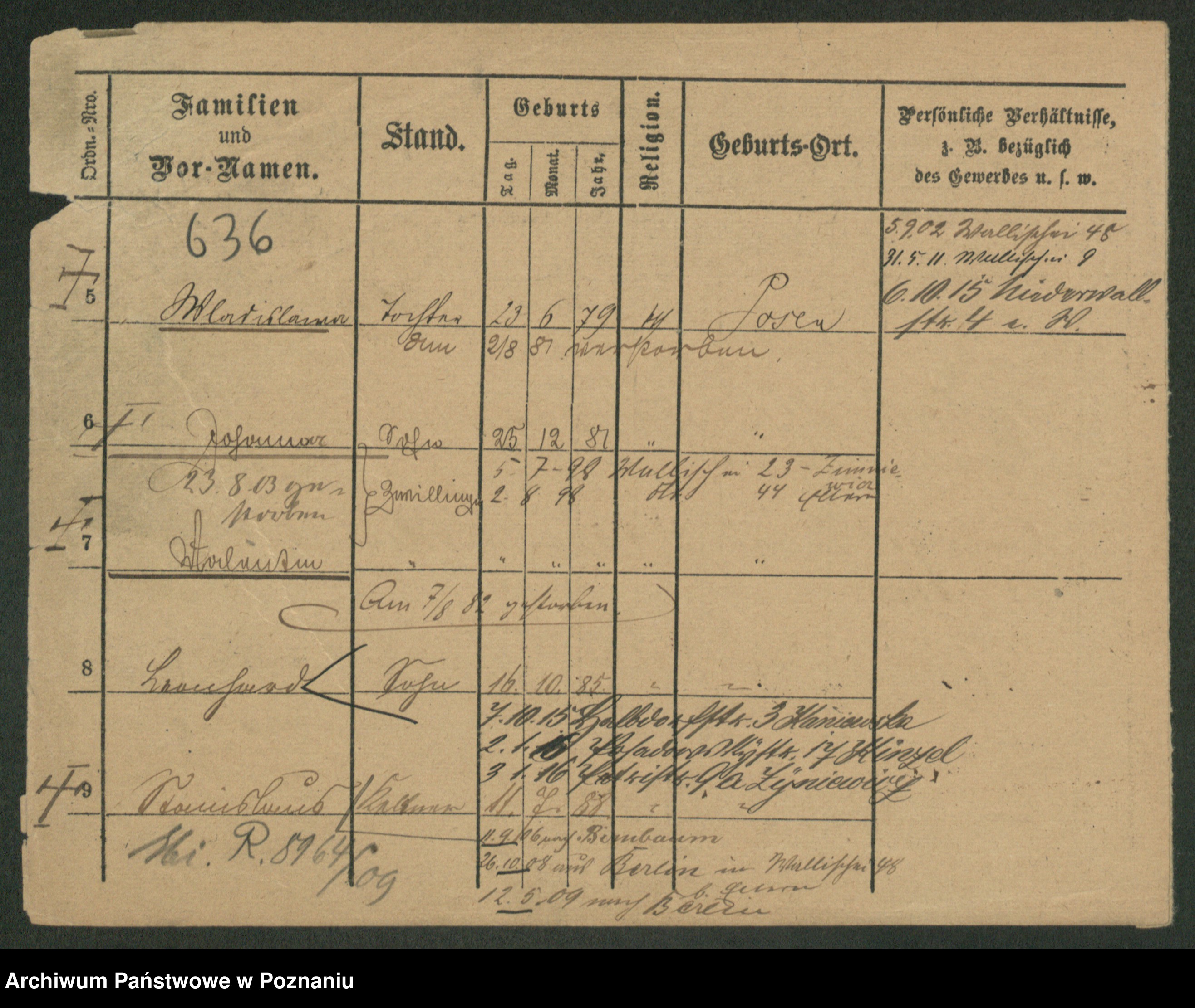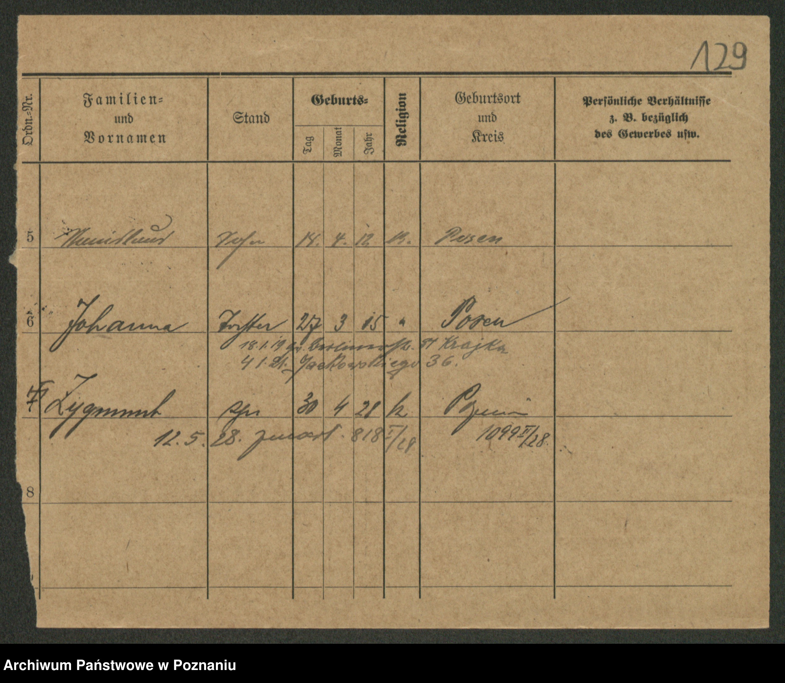 Podgląd karty osobowej dostępny jest po kliknięciu na nazwisko lub ikonkę karty. Można dokonywać powiększenia (ikony na górze) lub przechodzić między kolejnymi skanami (strzałki po bokach).