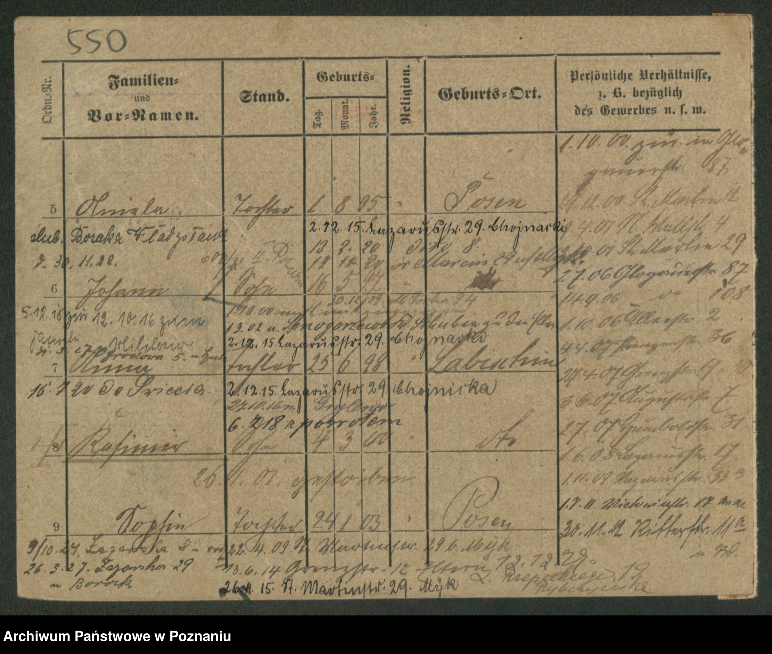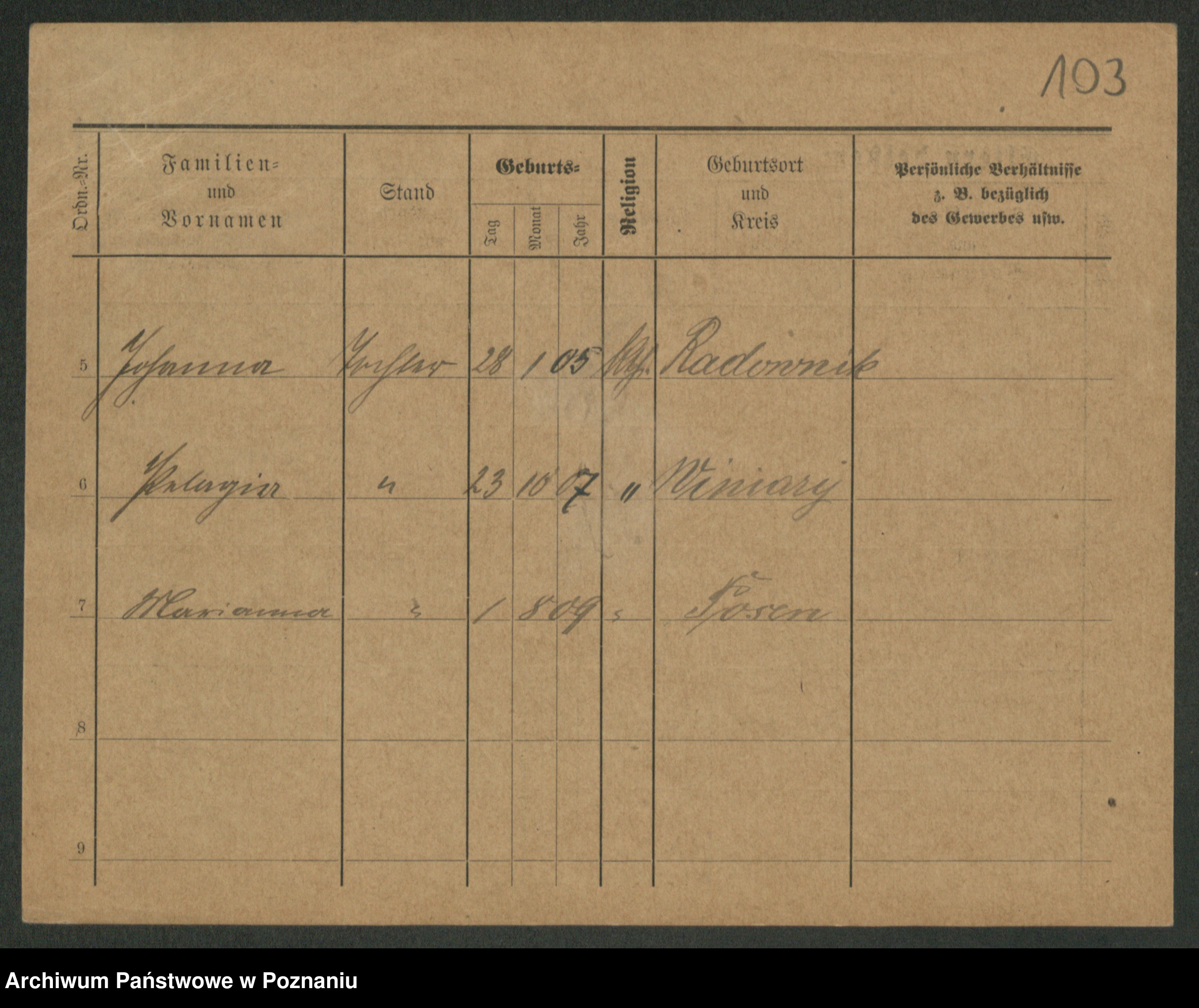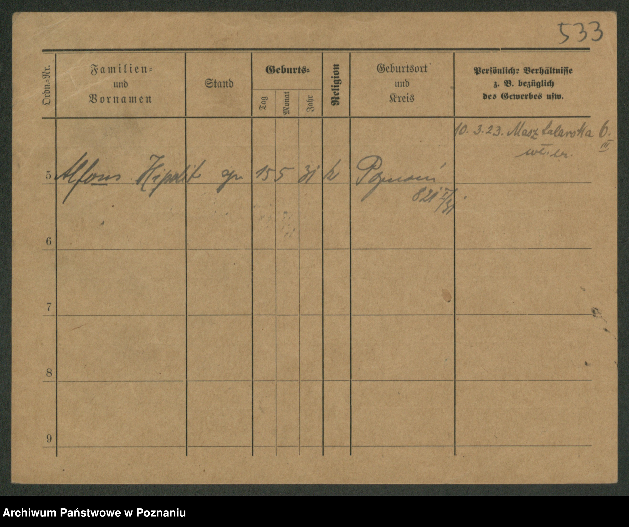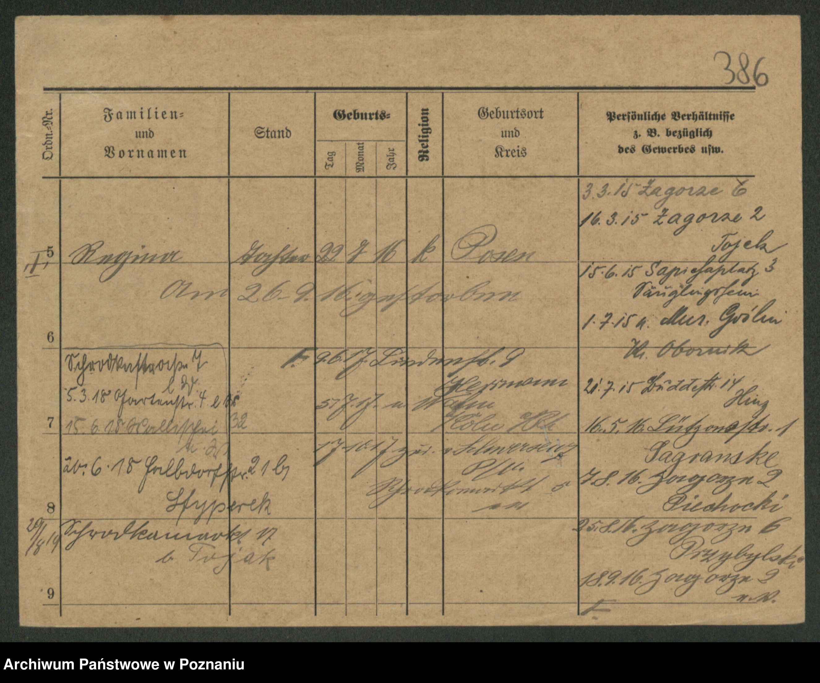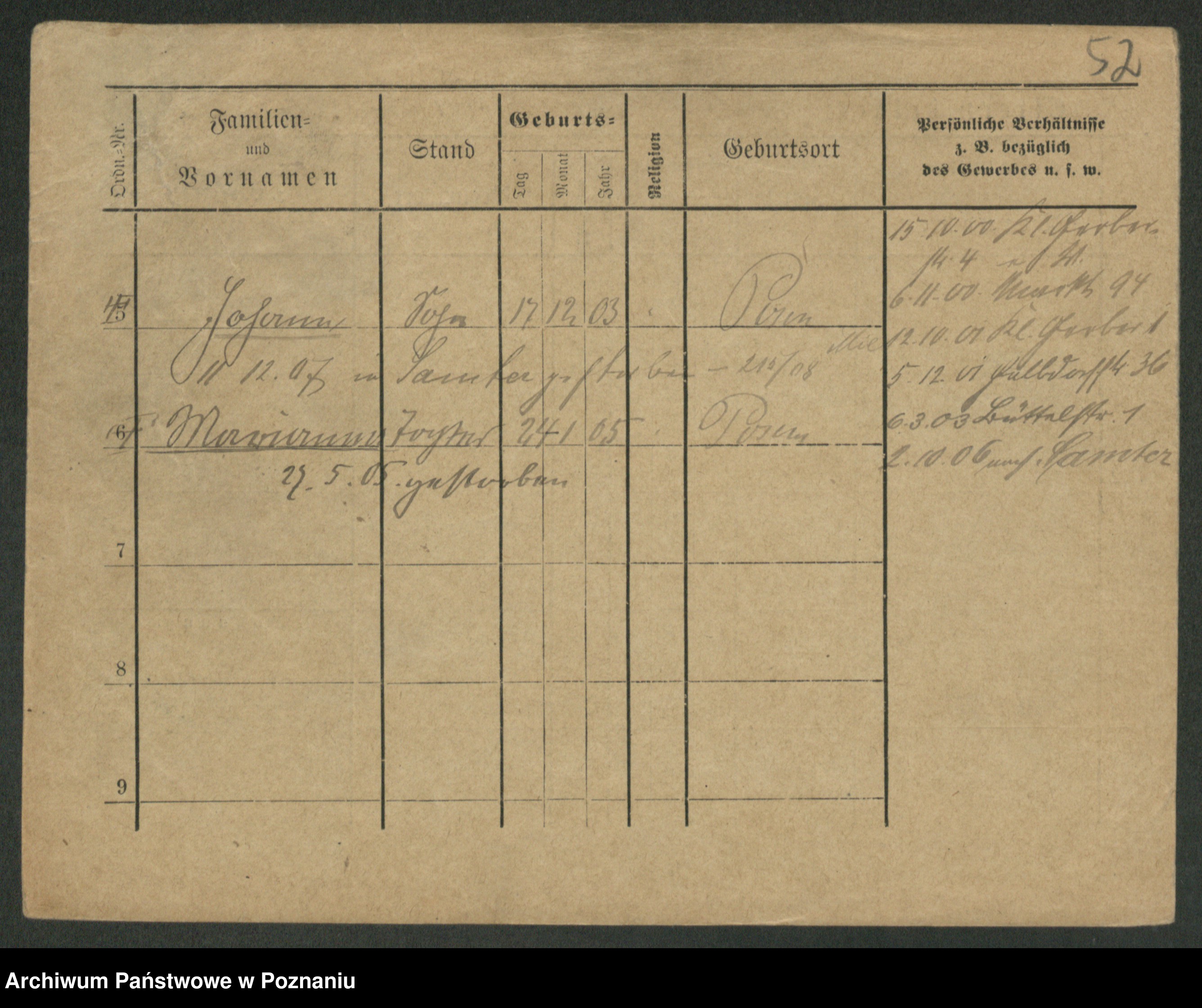 Podgląd karty osobowej dostępny jest po kliknięciu na nazwisko lub ikonkę karty. Można dokonywać powiększenia (ikony na górze) lub przechodzić między kolejnymi skanami (strzałki po bokach).