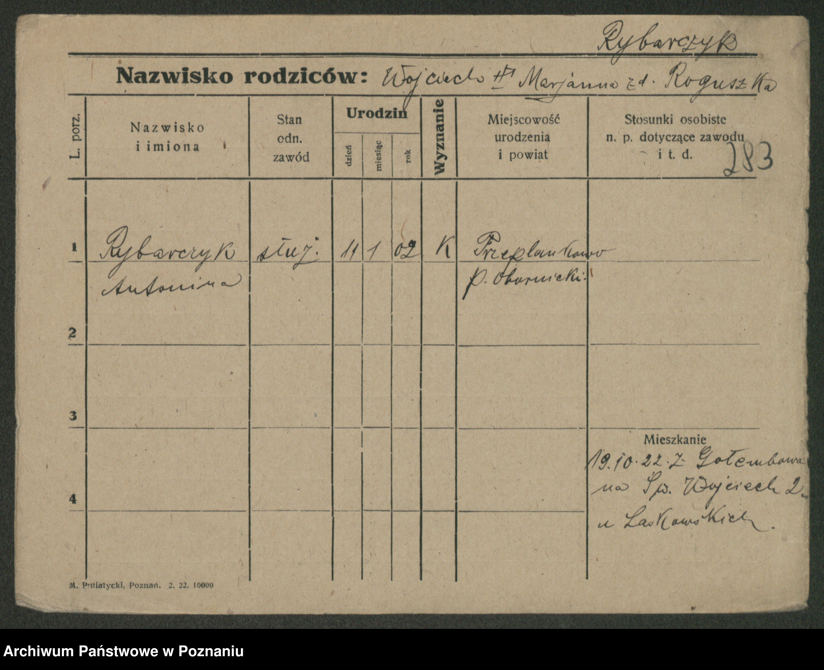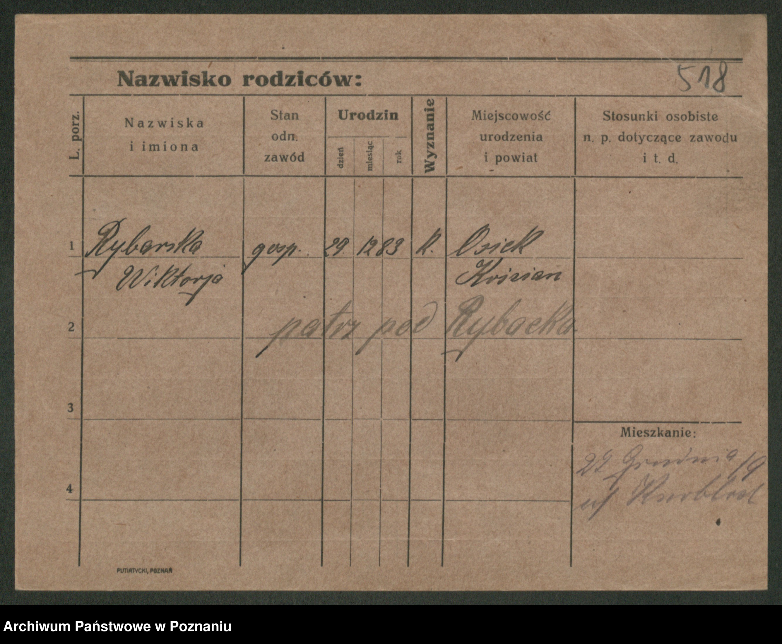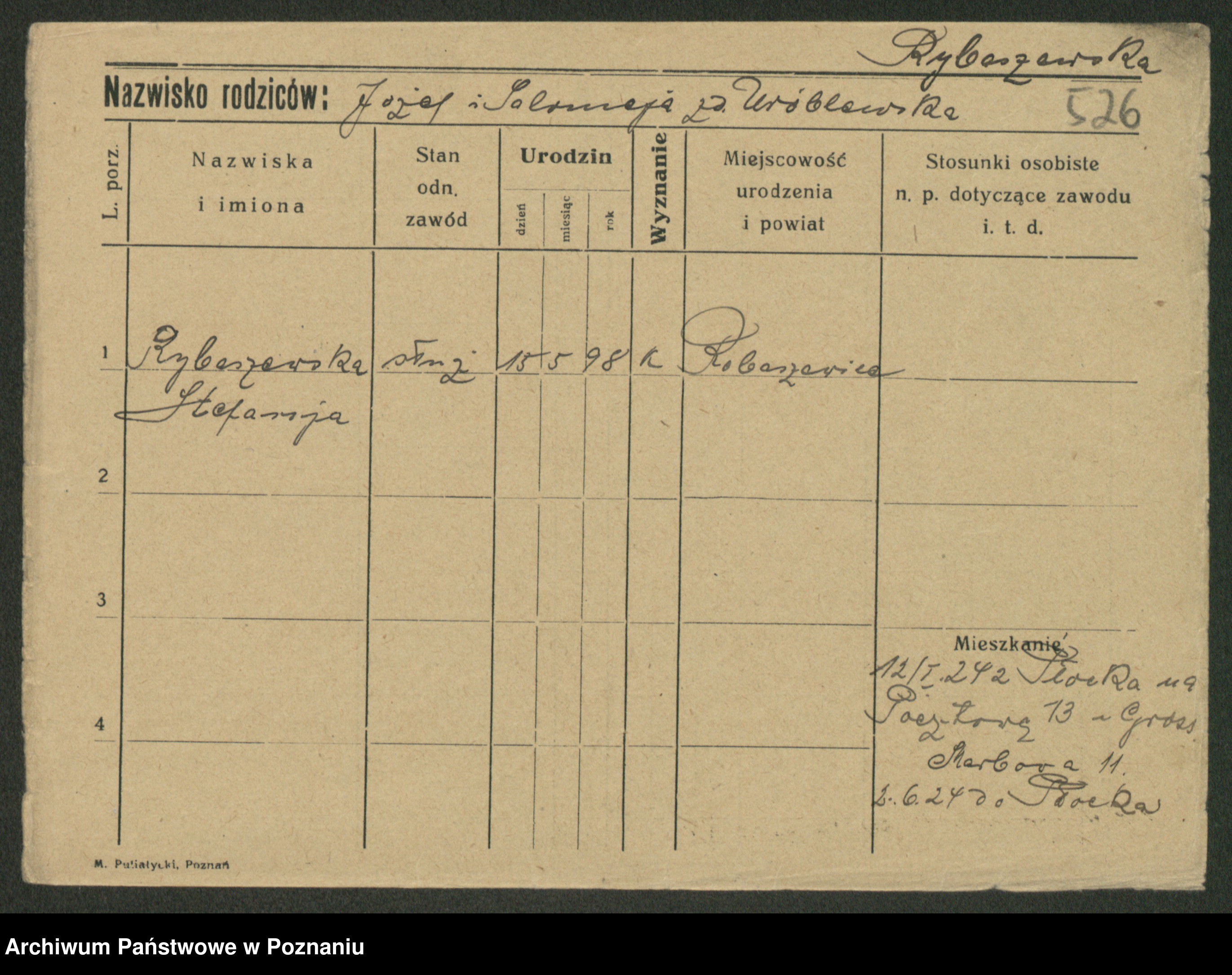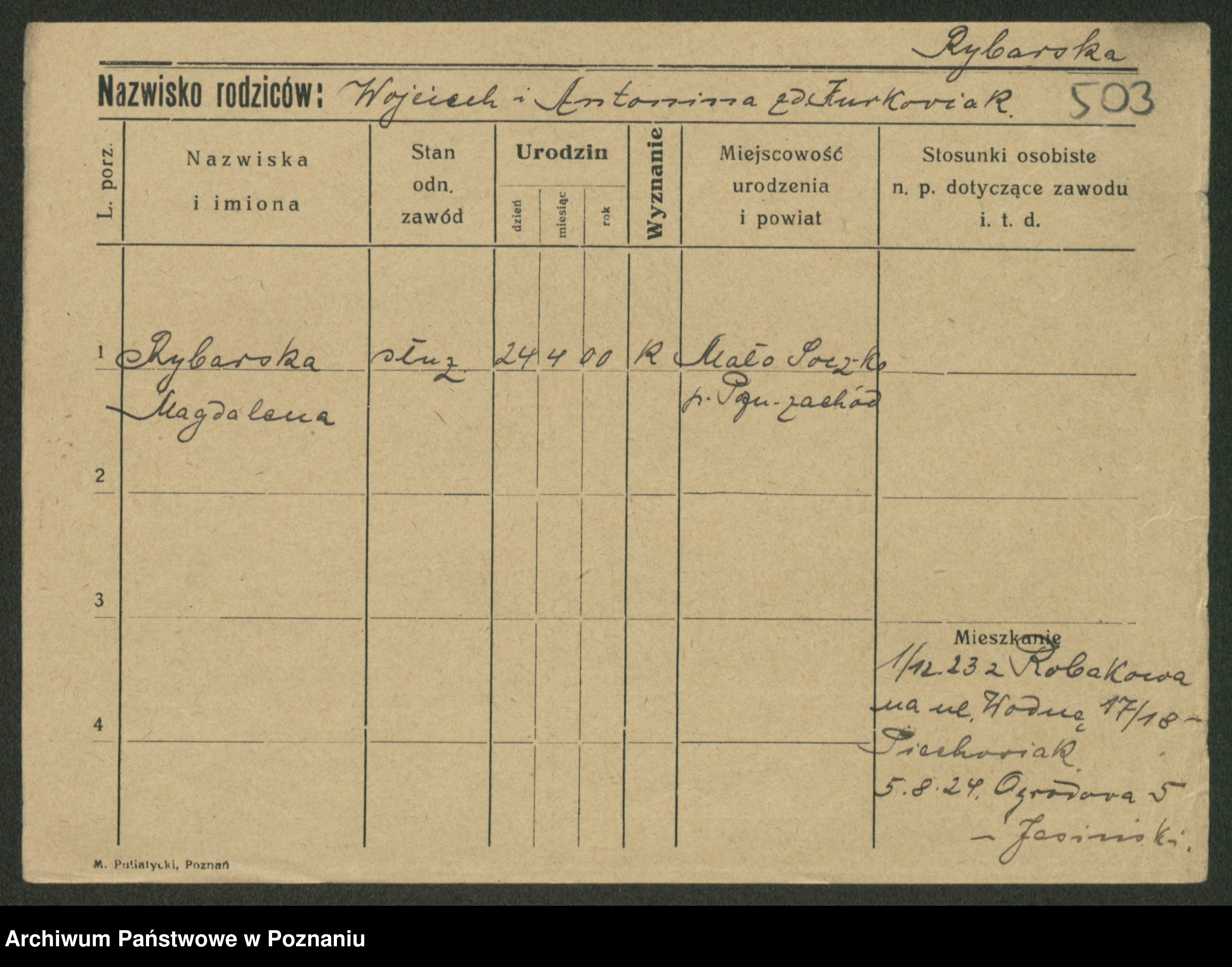 Rybicki z.d. Skowrońska, Marja