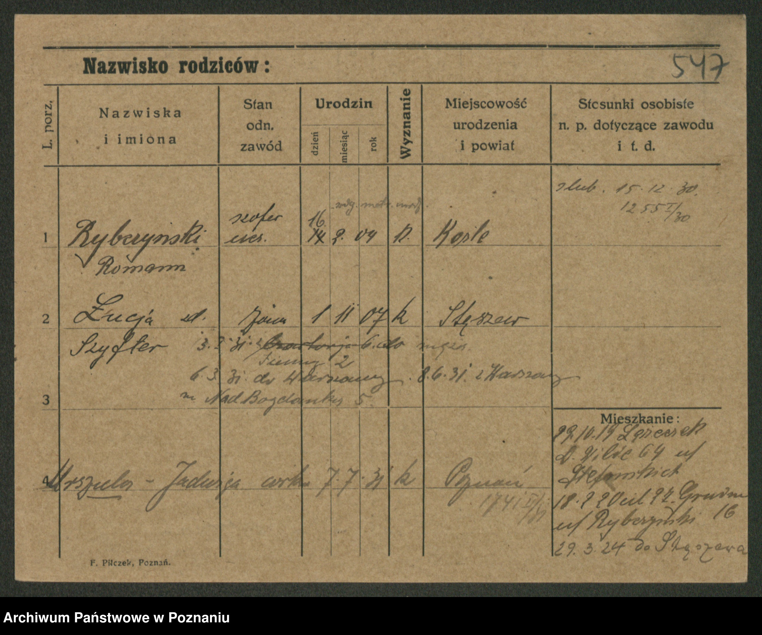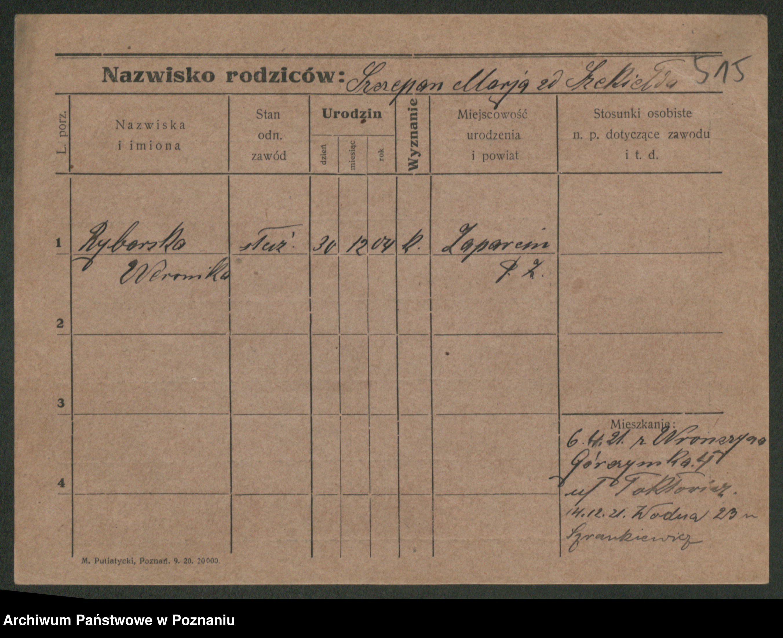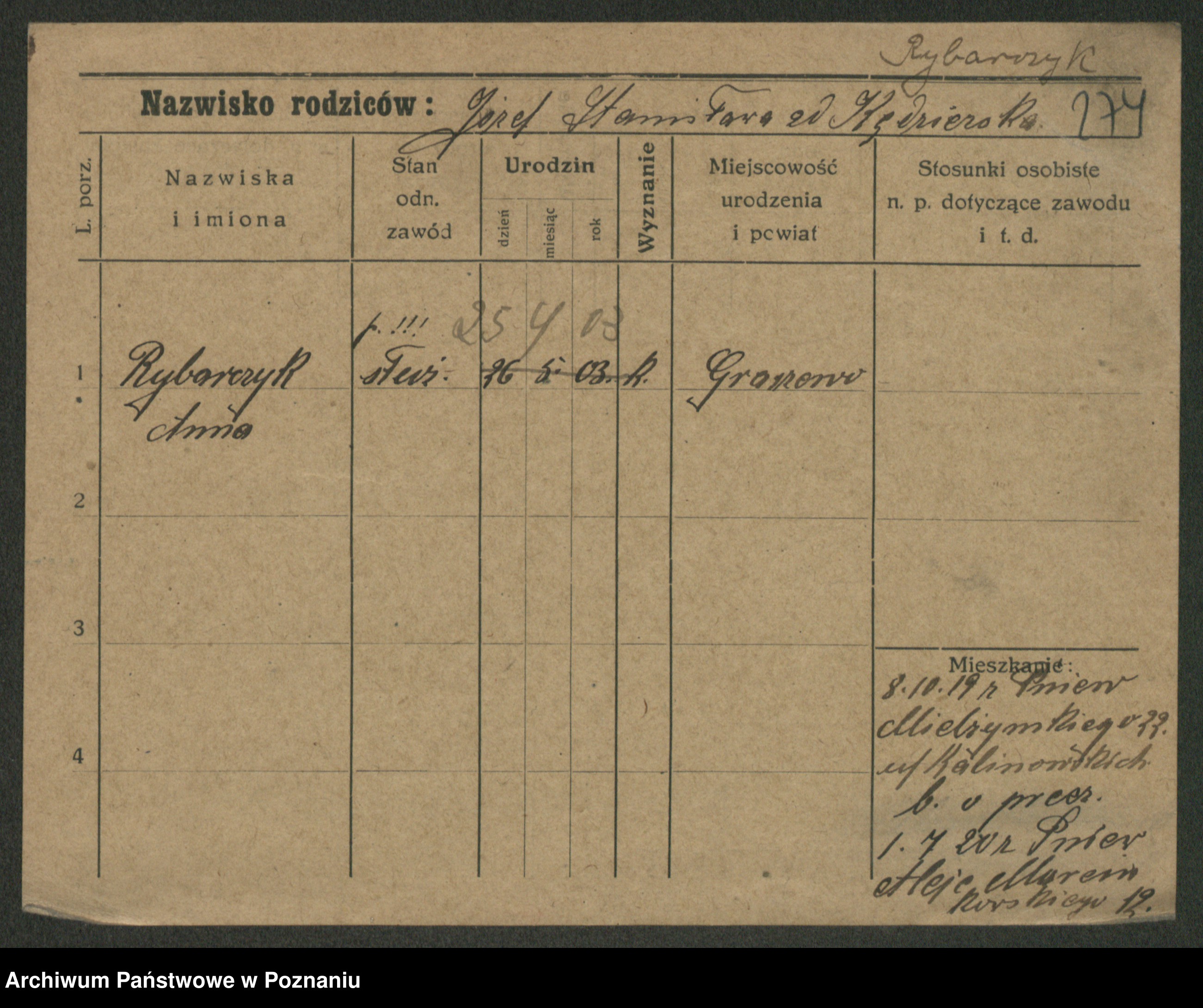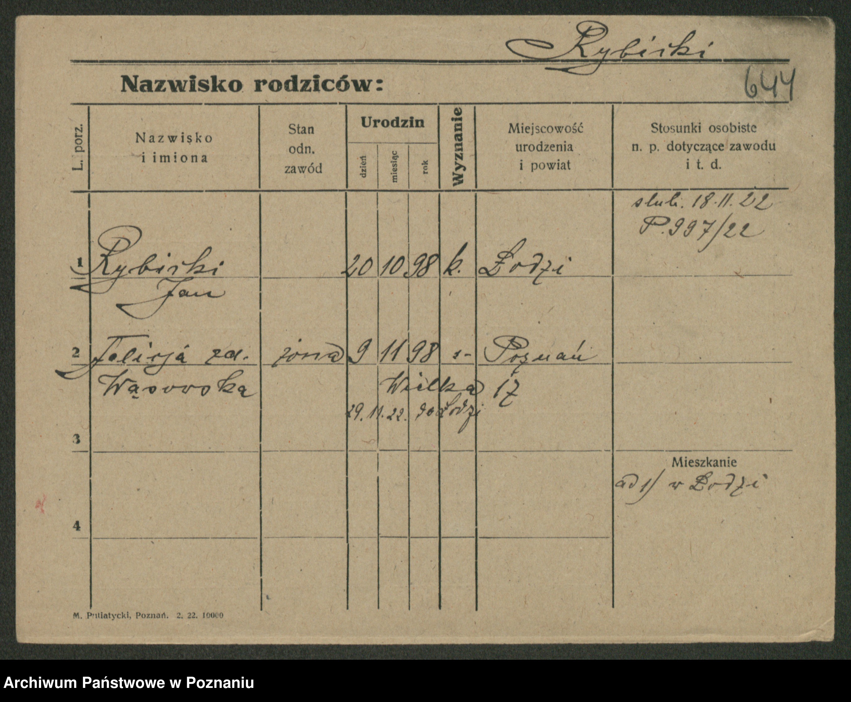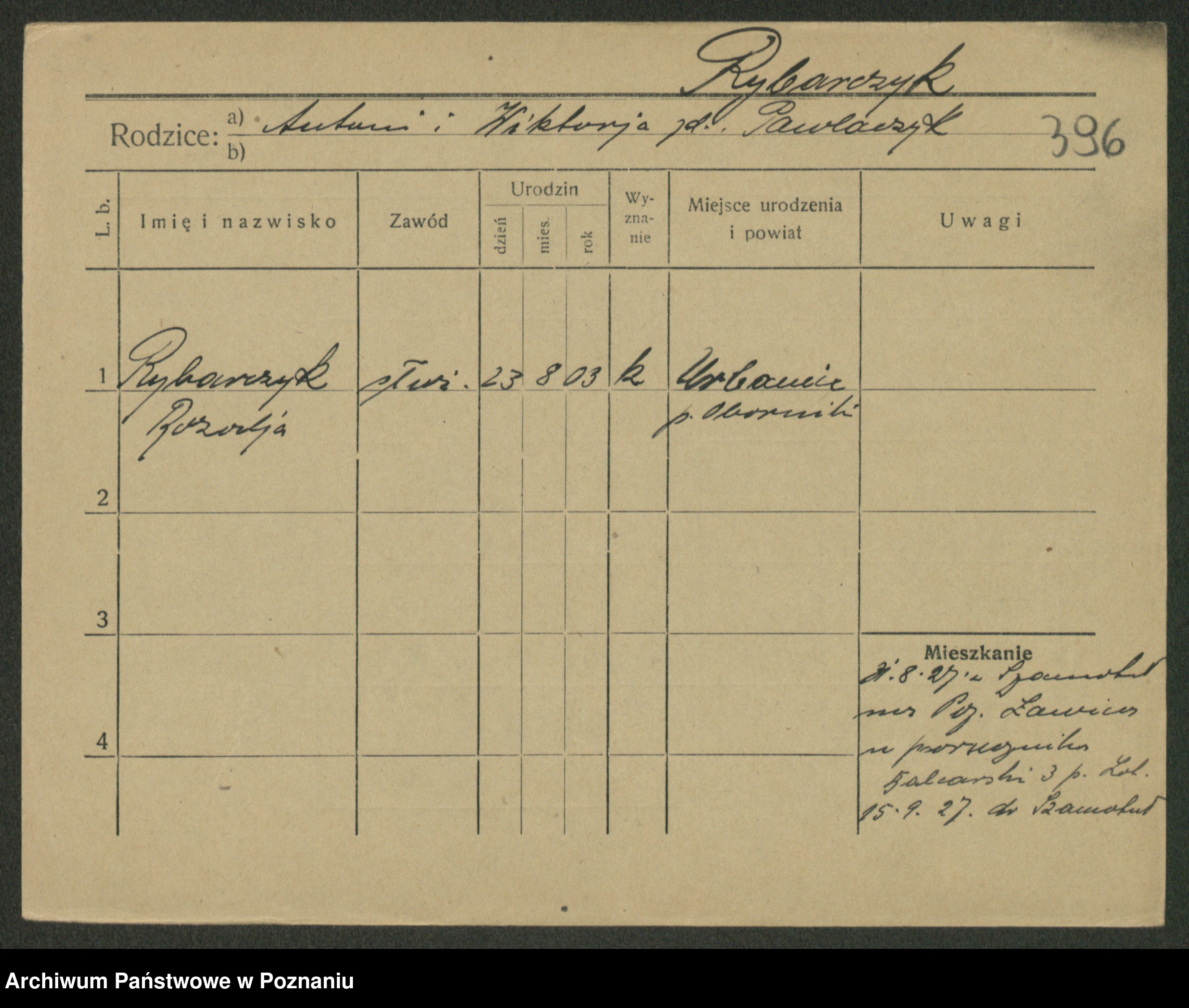 Rybicki z.d. Skowrońska, Marja