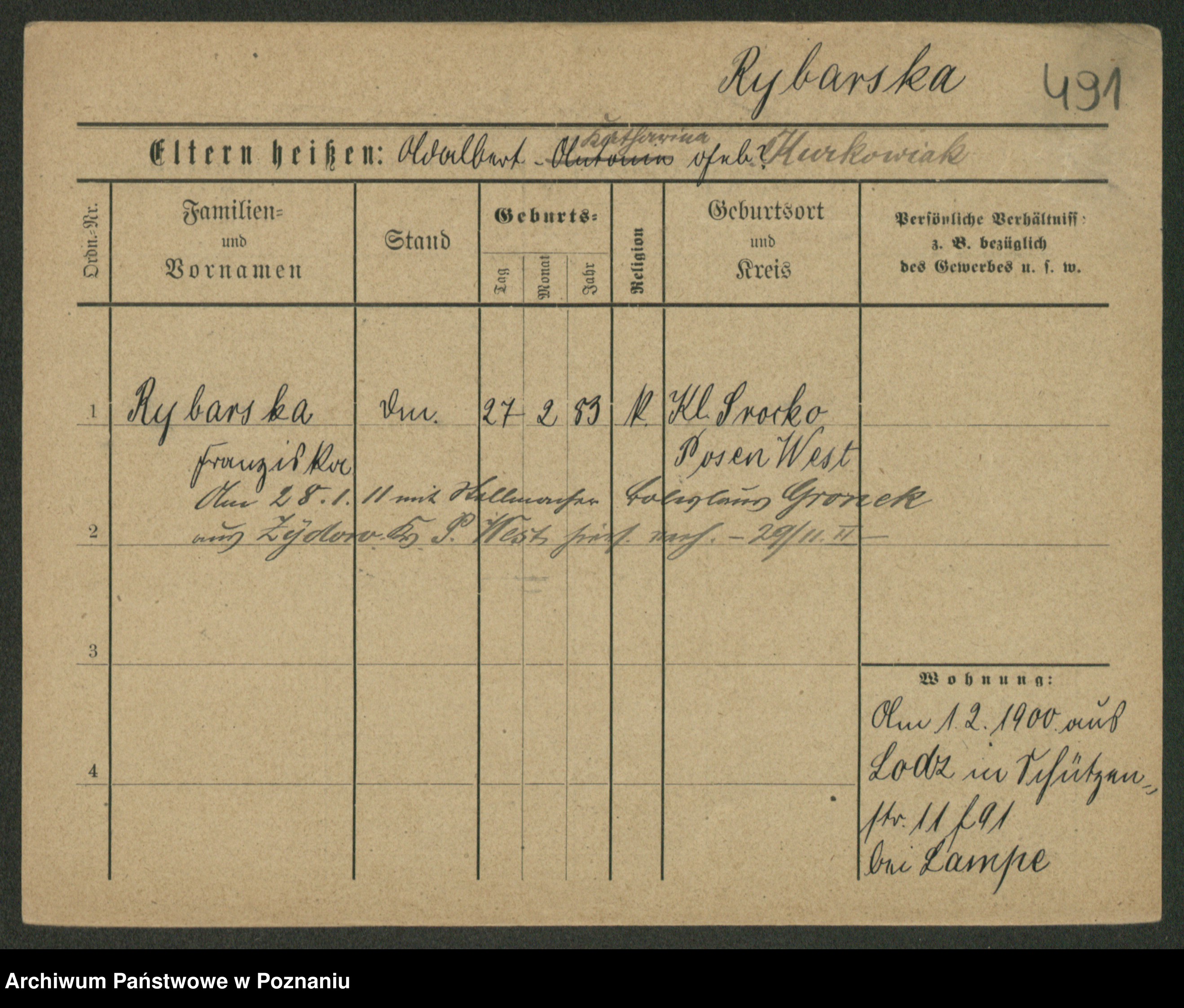 Rybicki z.d. Ratajczak, Kasimira Marie