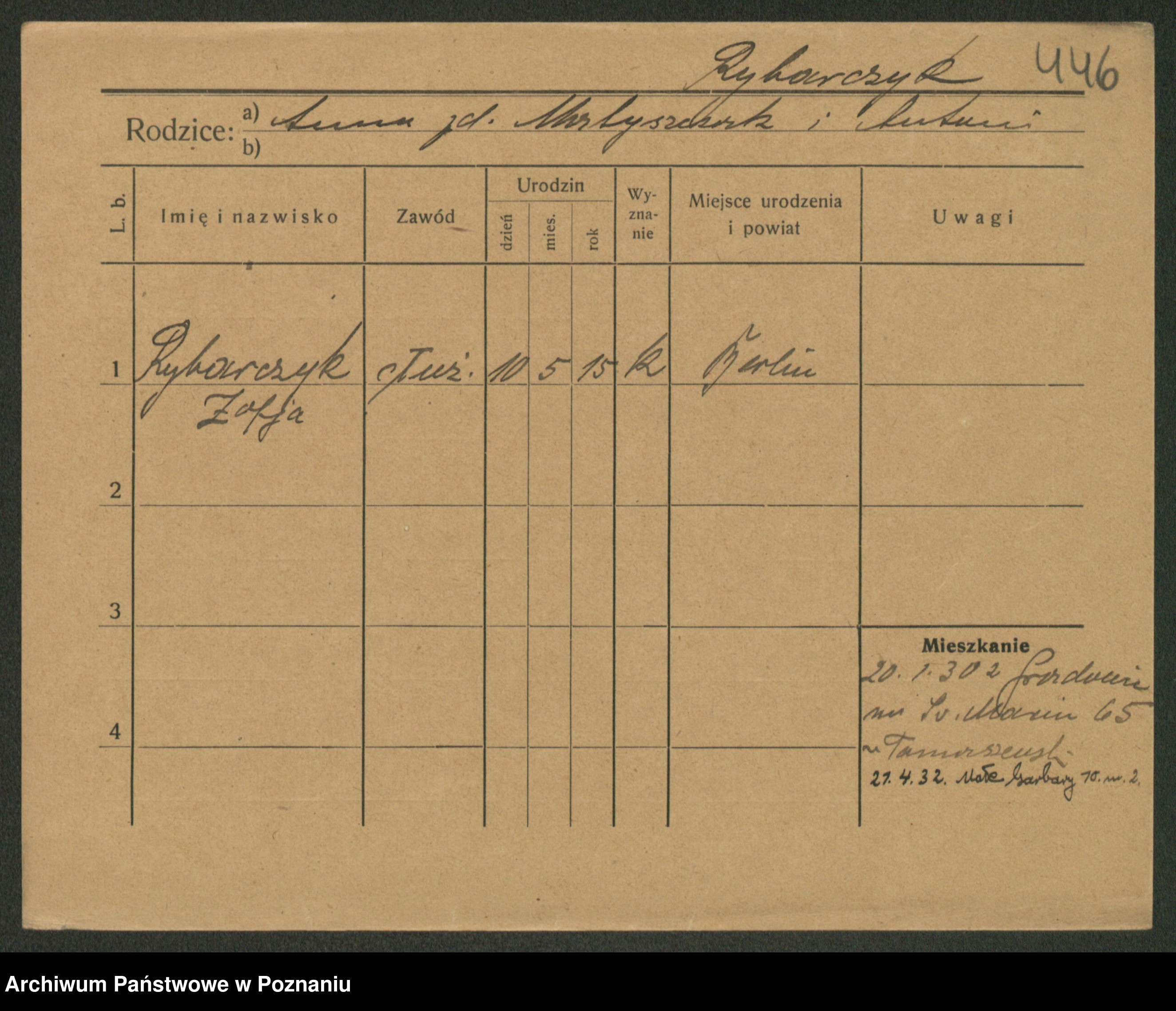 Rybarczyk z.d. Marciniak, Zofja