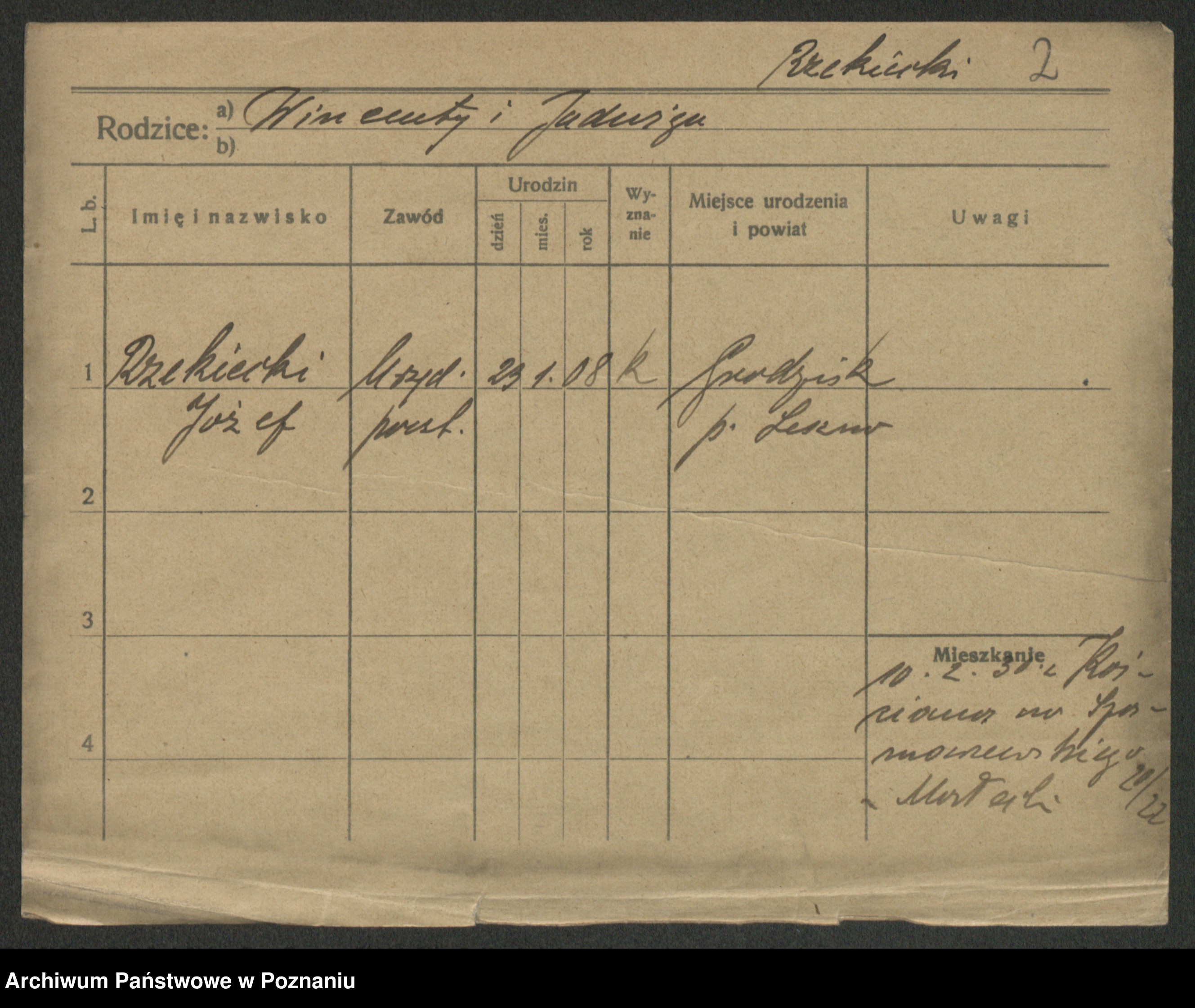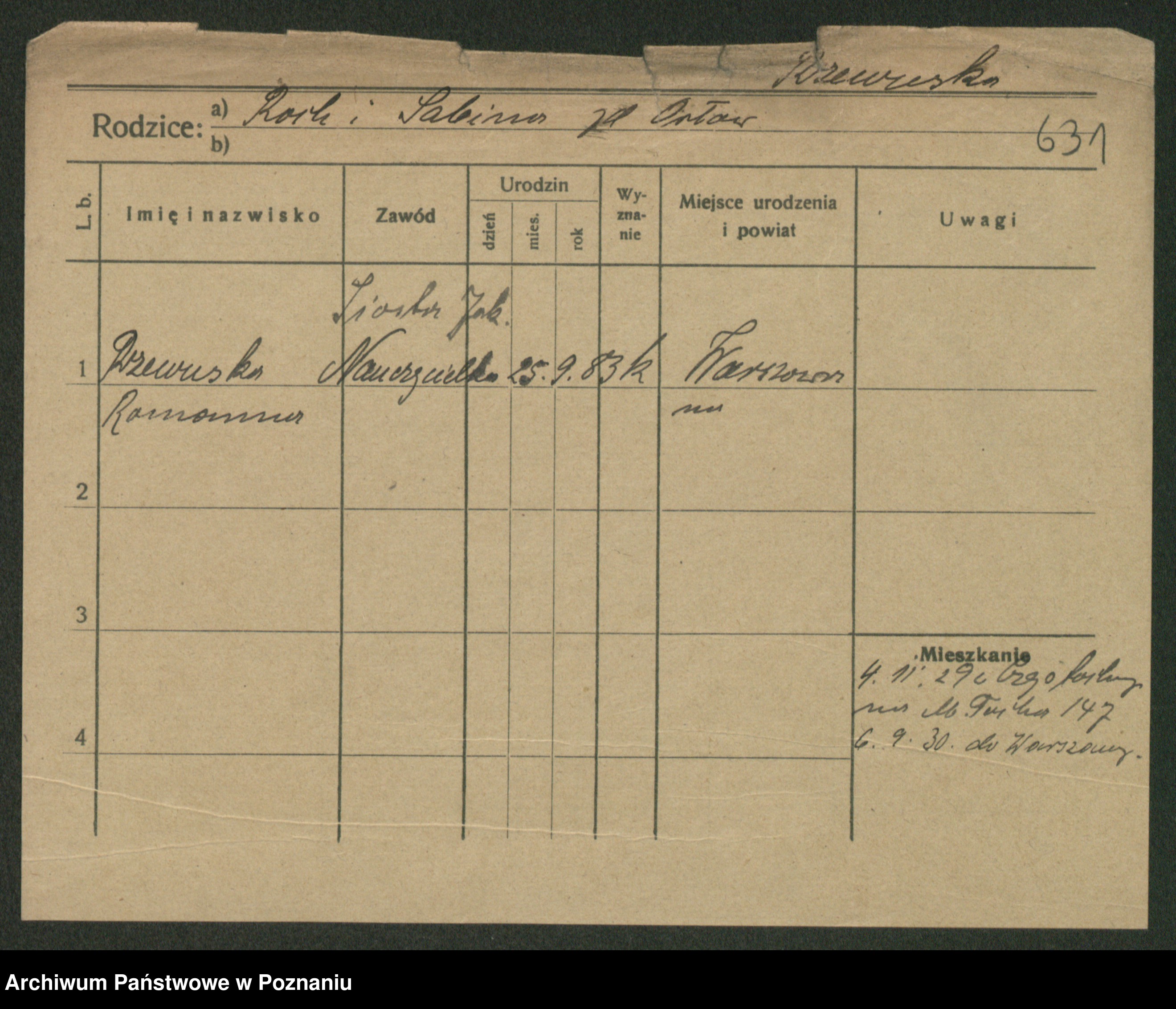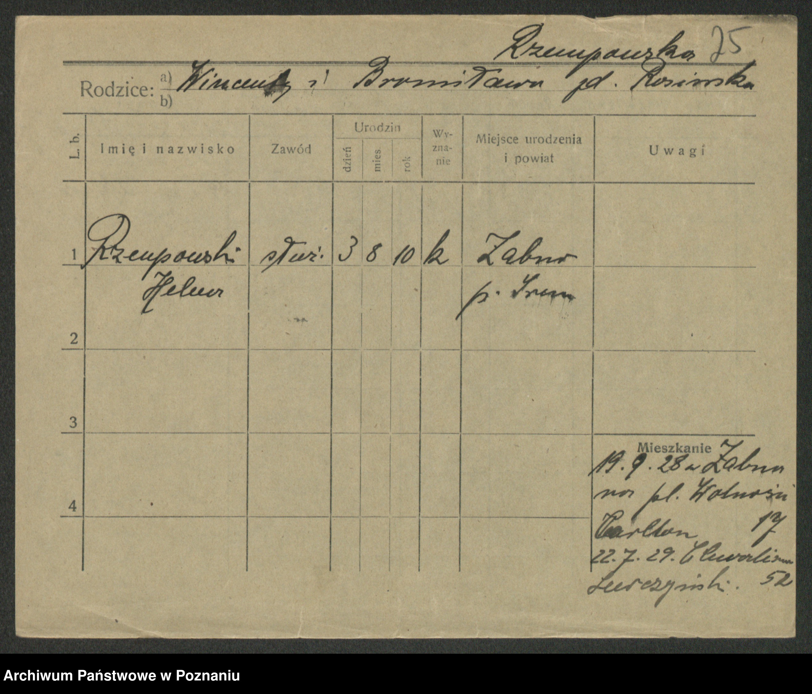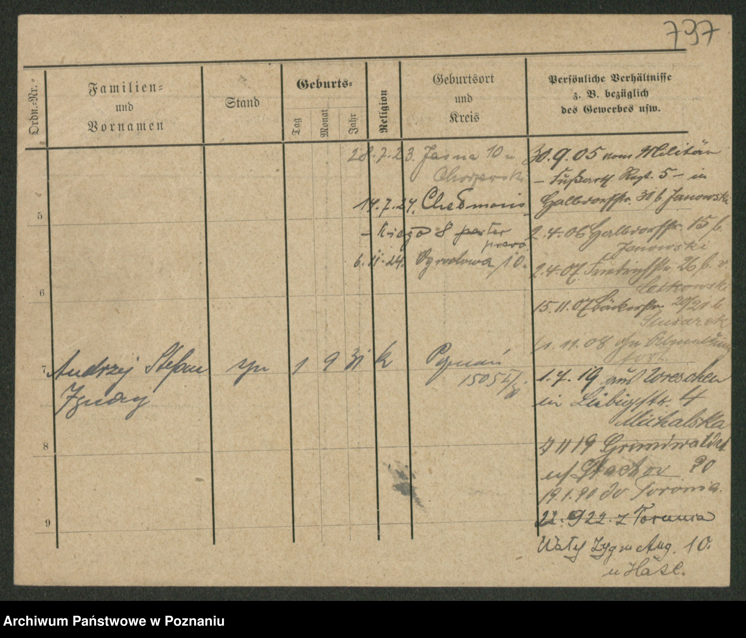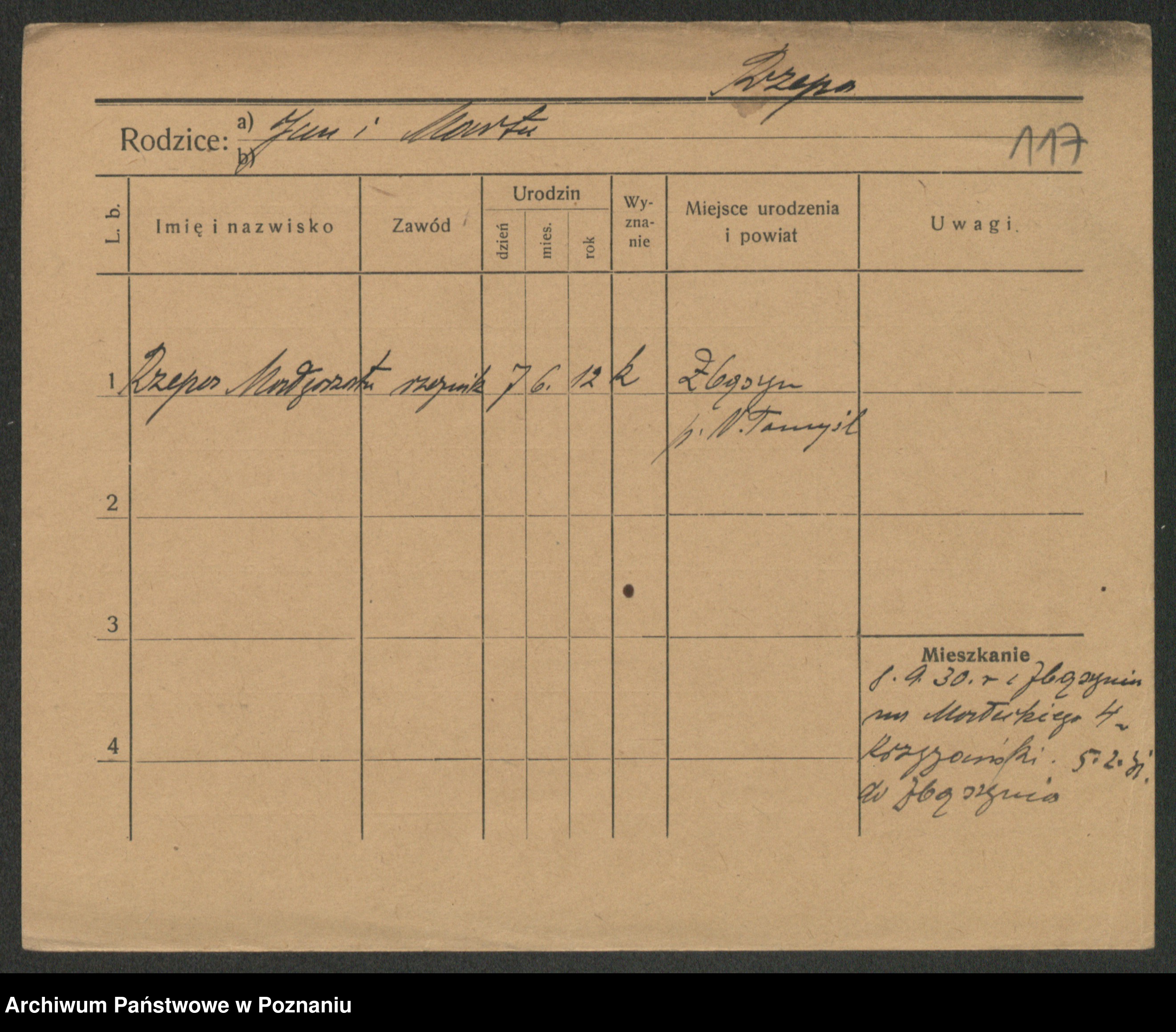 Podgląd karty osobowej dostępny jest po kliknięciu na nazwisko lub ikonkę karty. Można dokonywać powiększenia (ikony na górze) lub przechodzić między kolejnymi skanami (strzałki po bokach).
