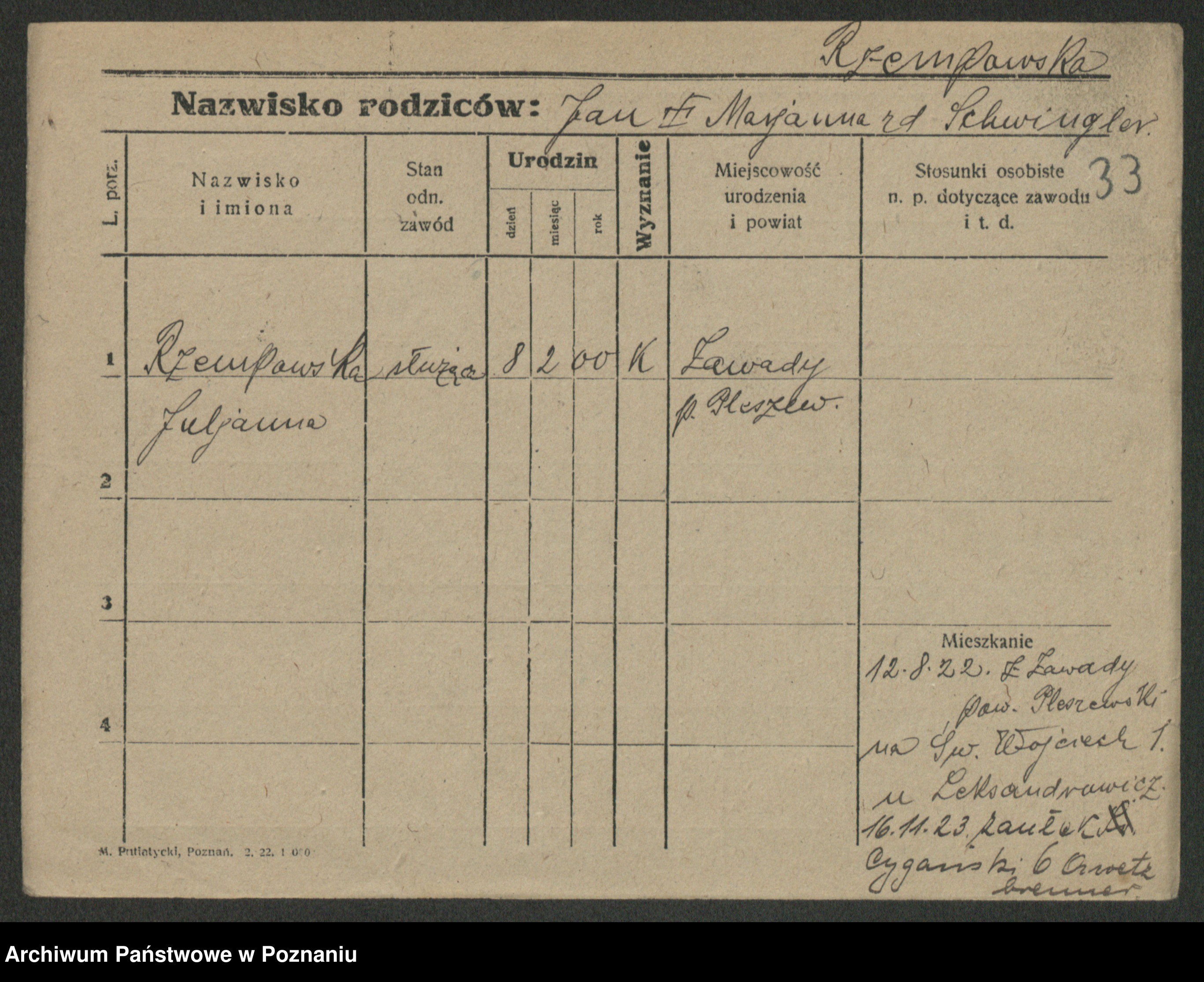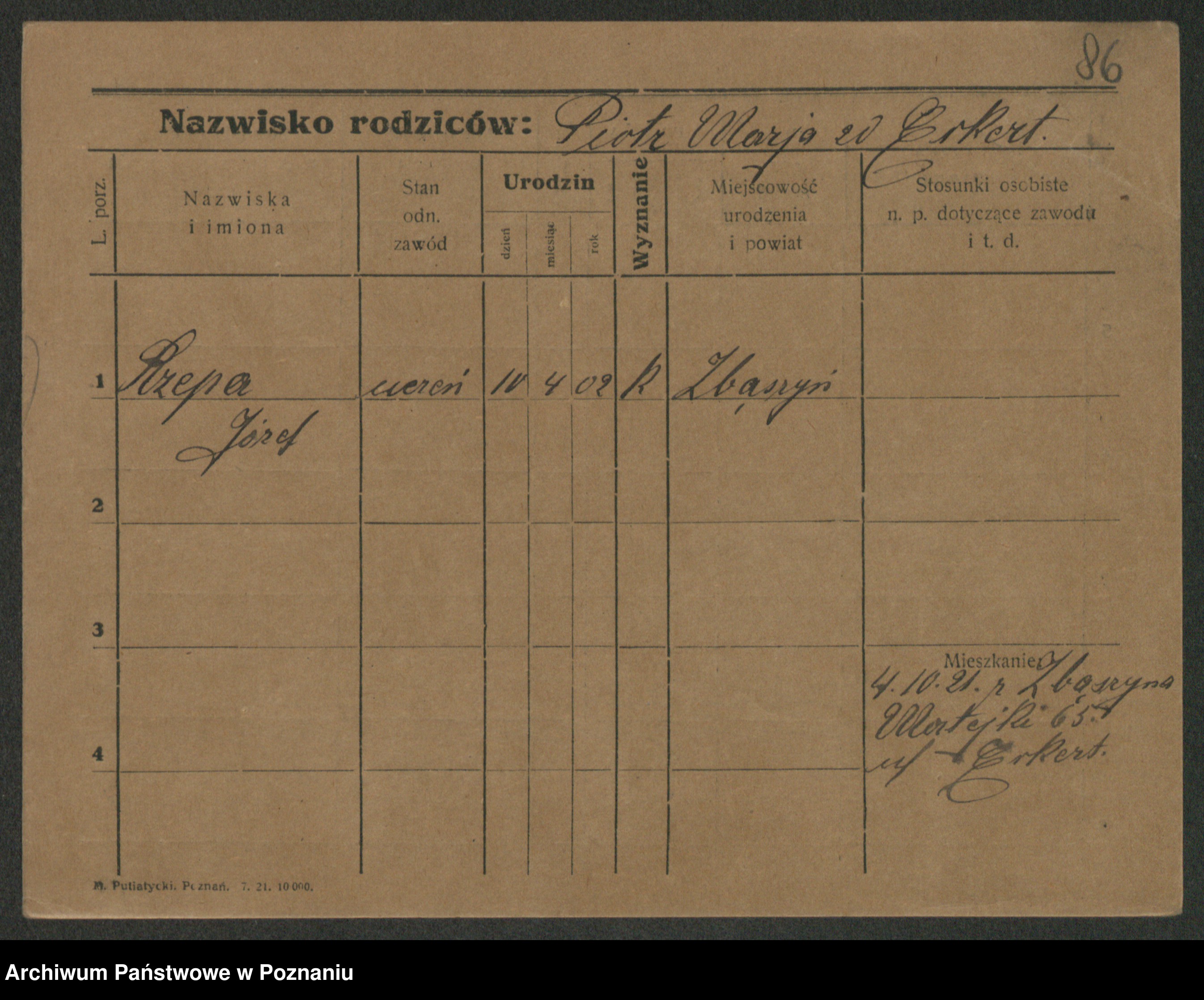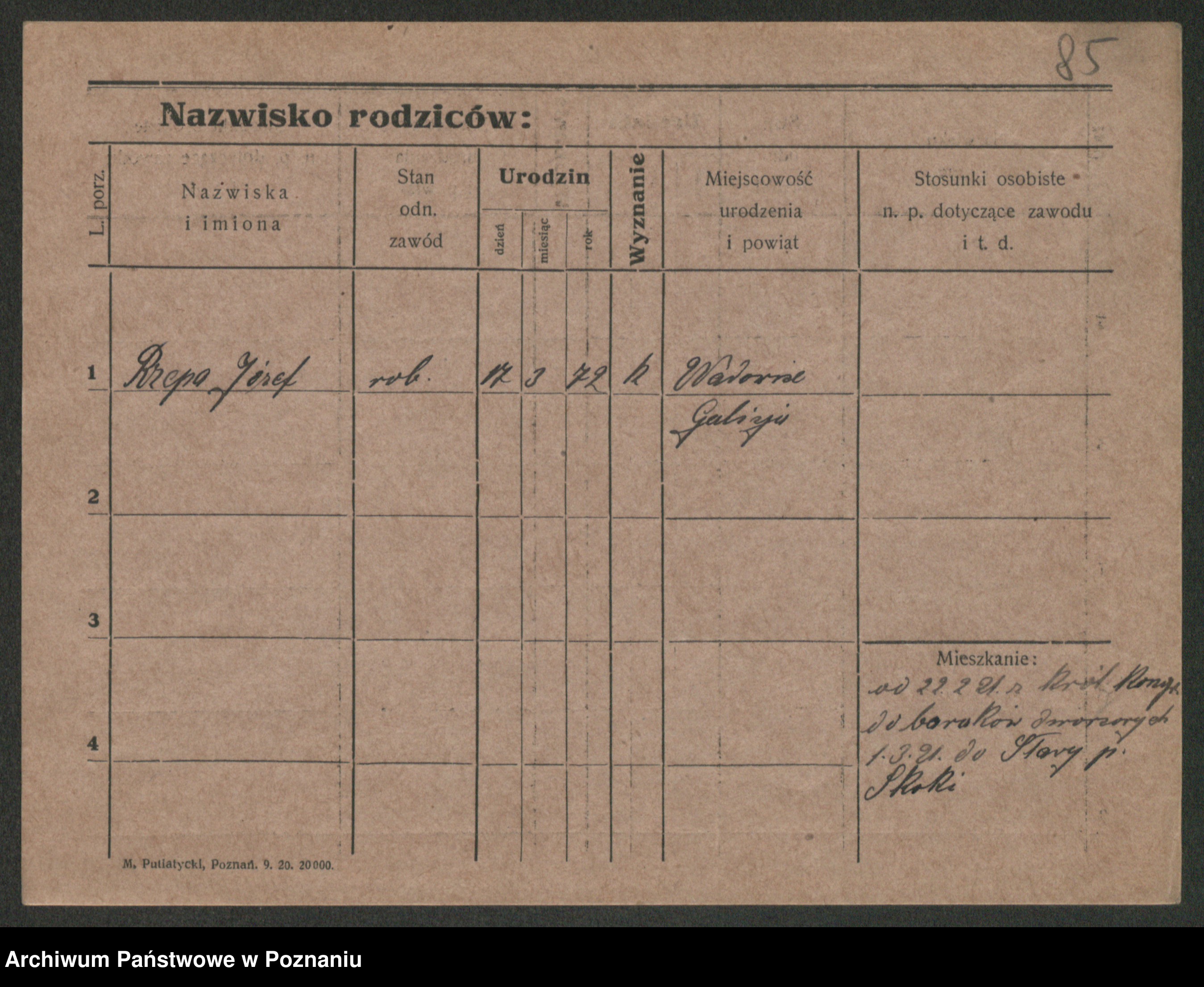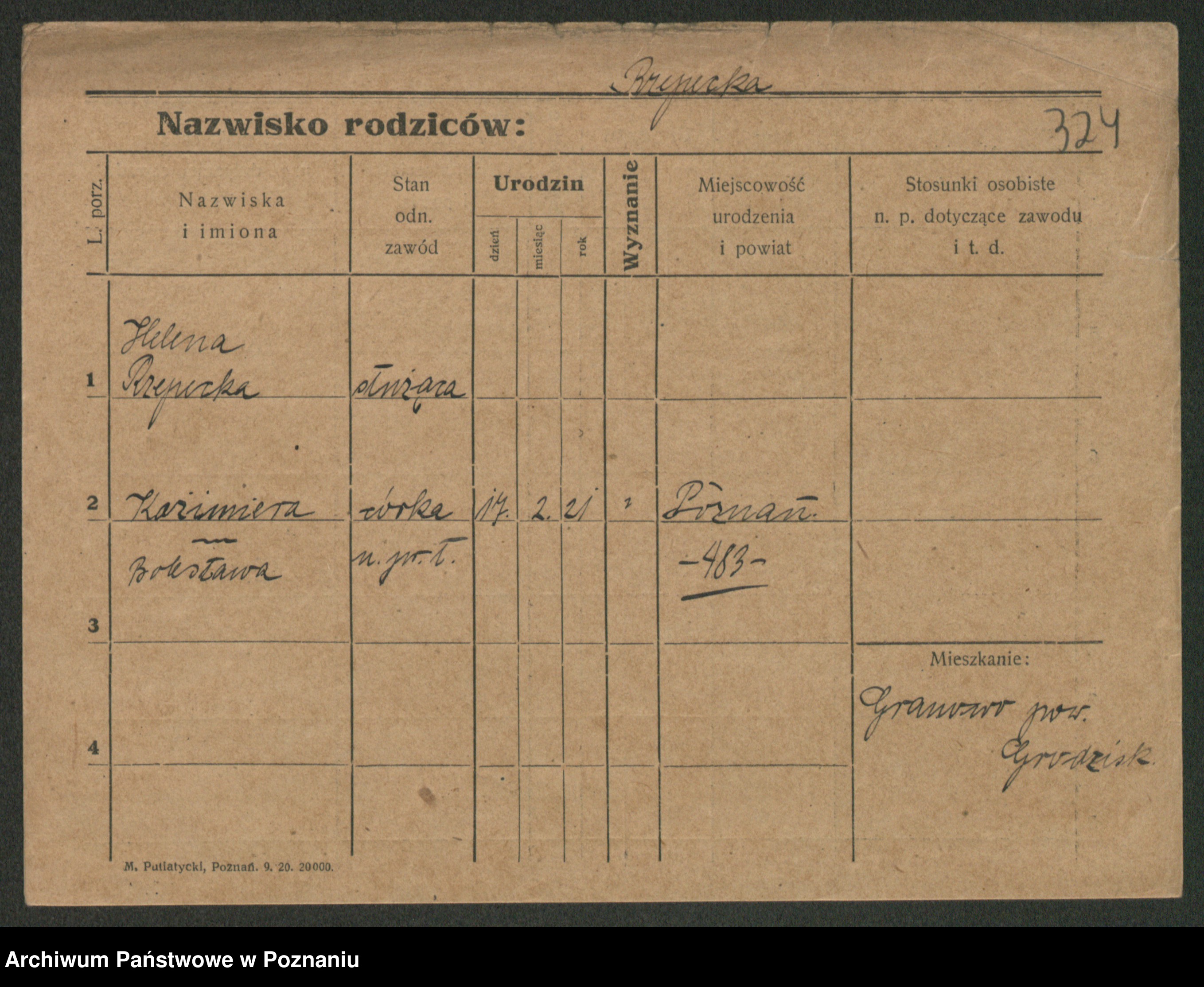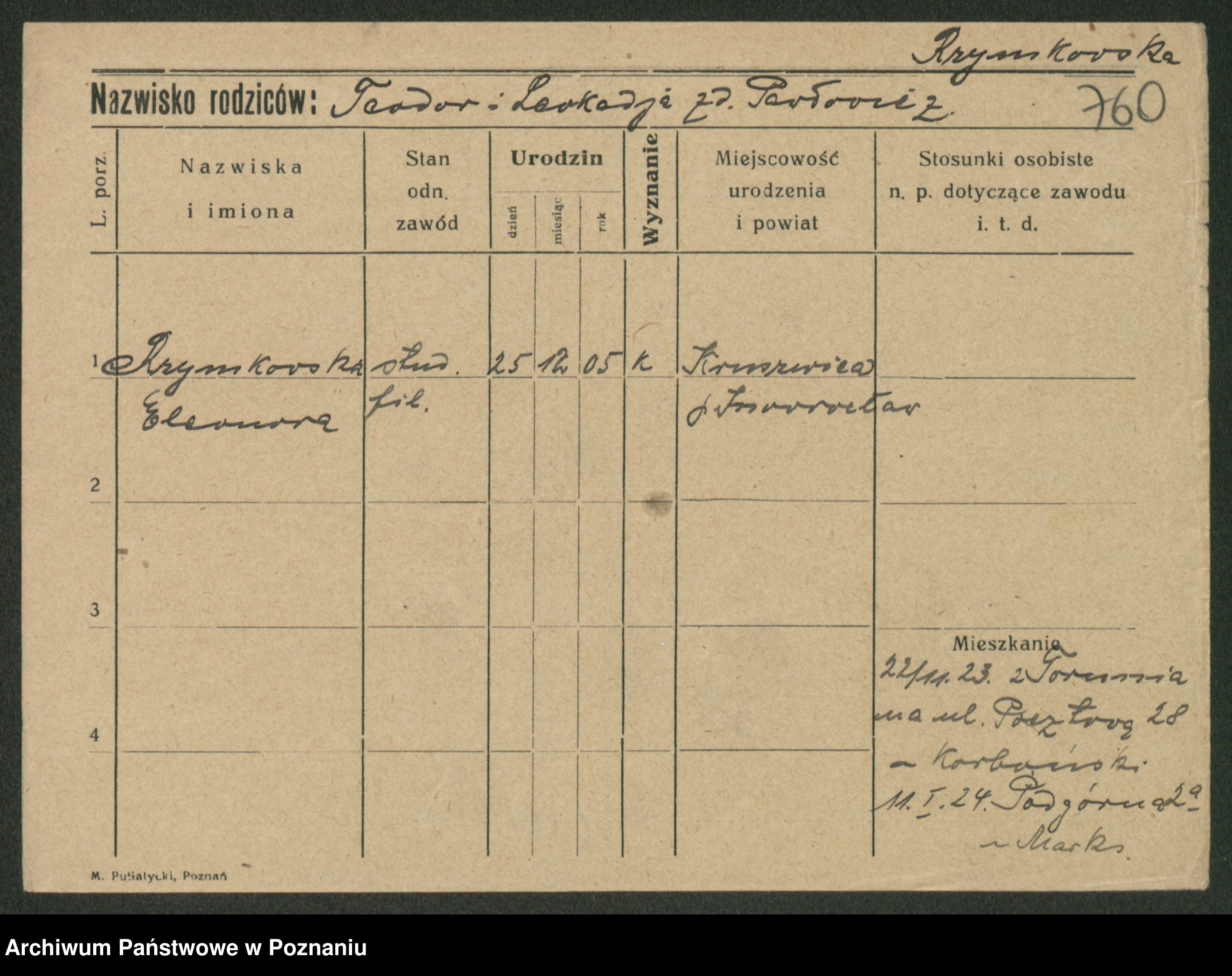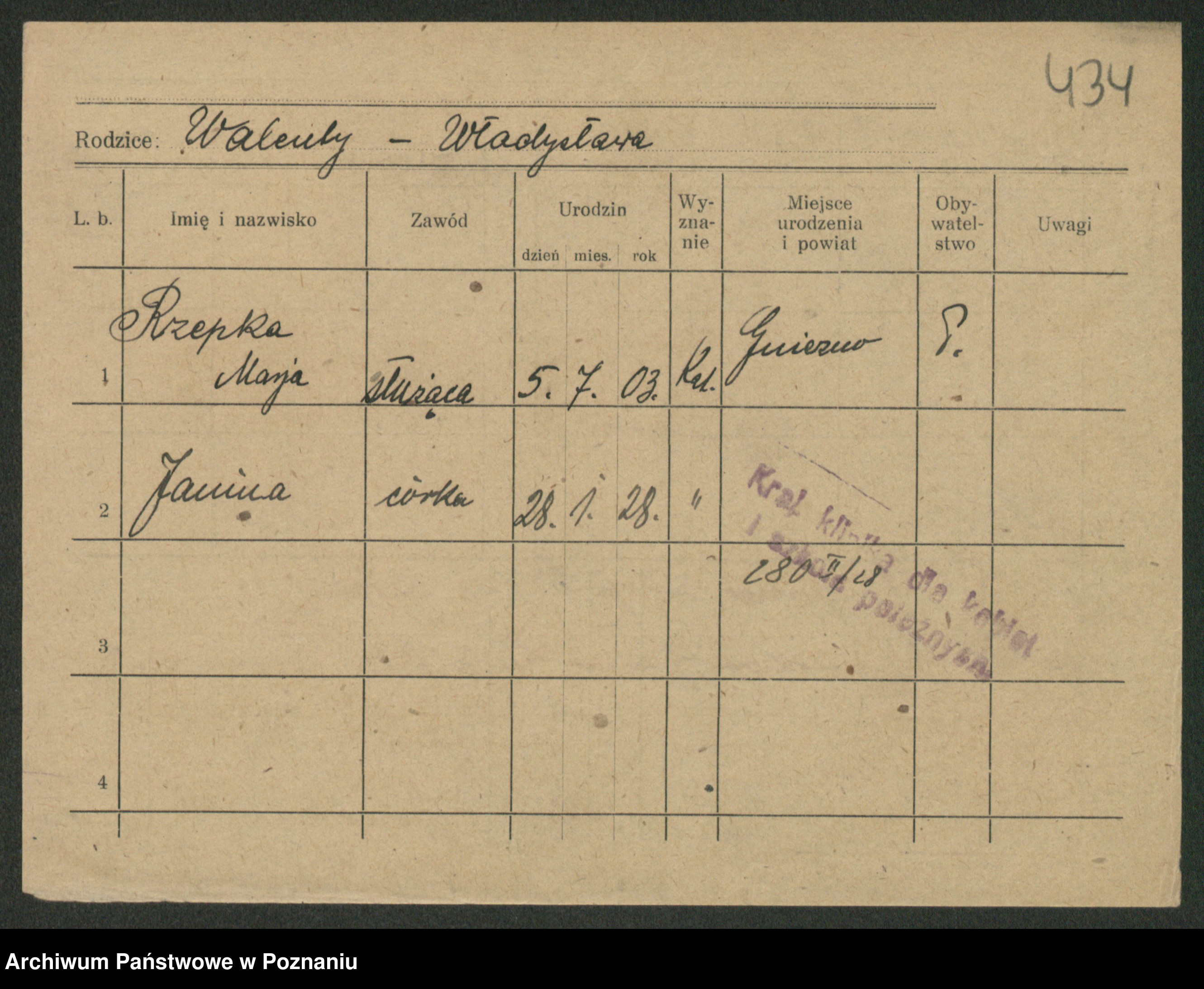 Podgląd karty osobowej dostępny jest po kliknięciu na nazwisko lub ikonkę karty. Można dokonywać powiększenia (ikony na górze) lub przechodzić między kolejnymi skanami (strzałki po bokach).