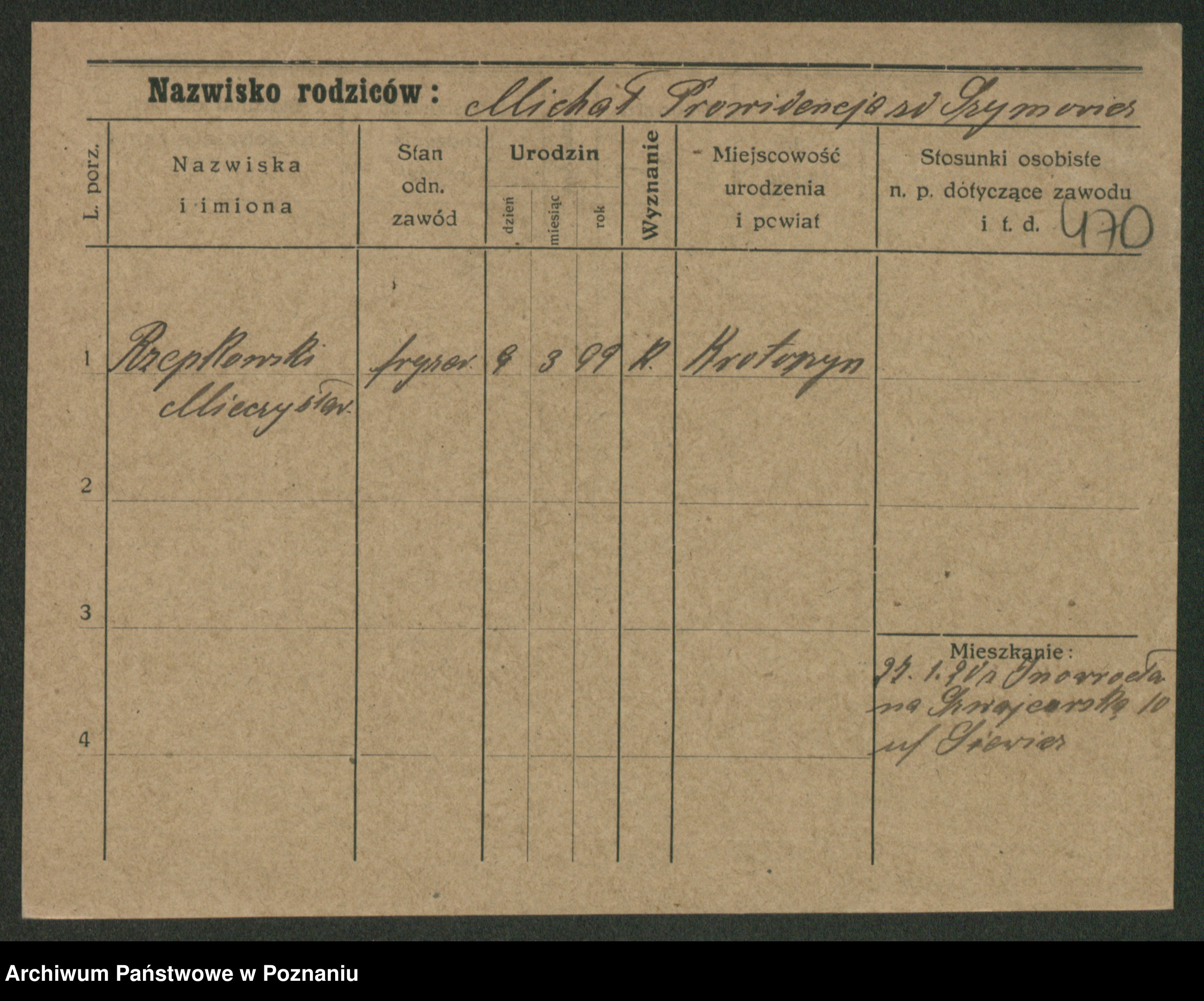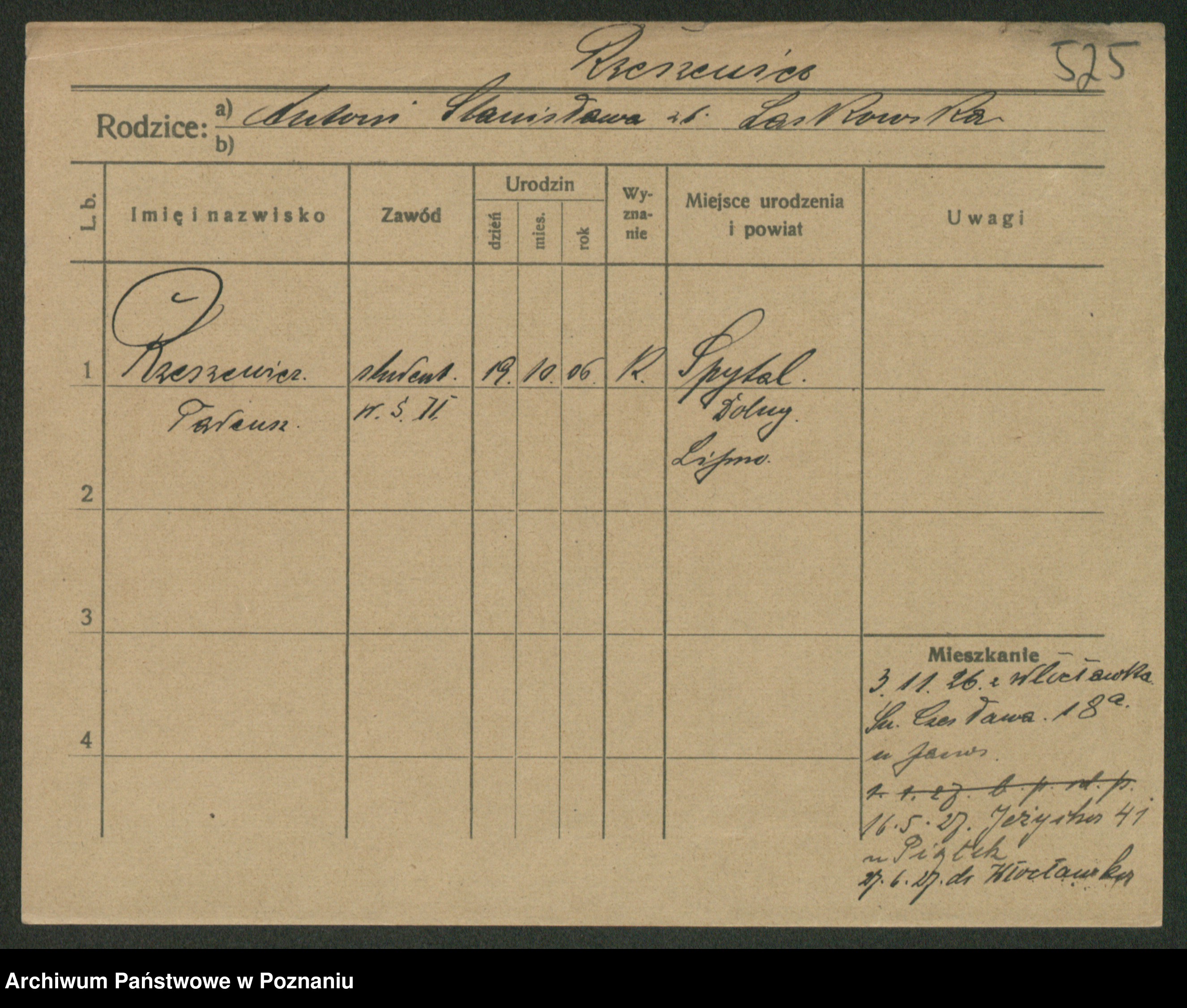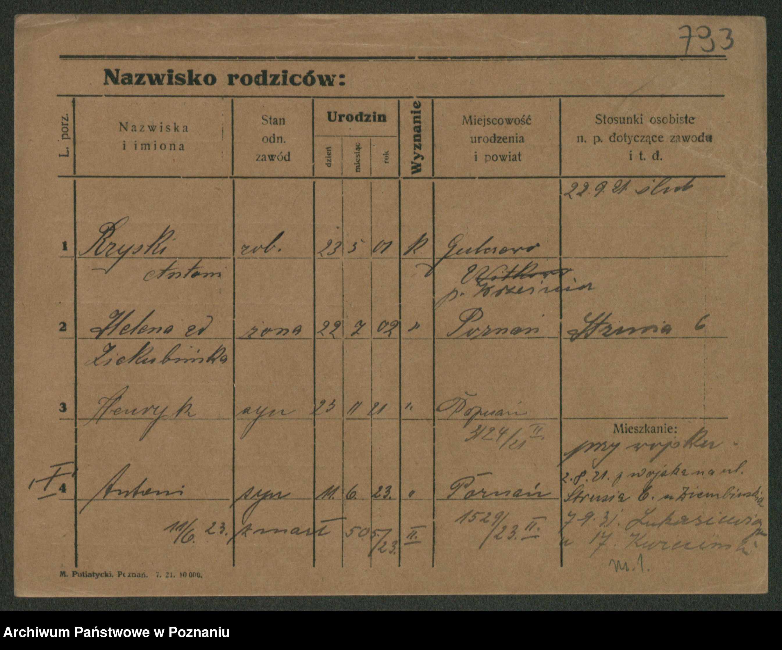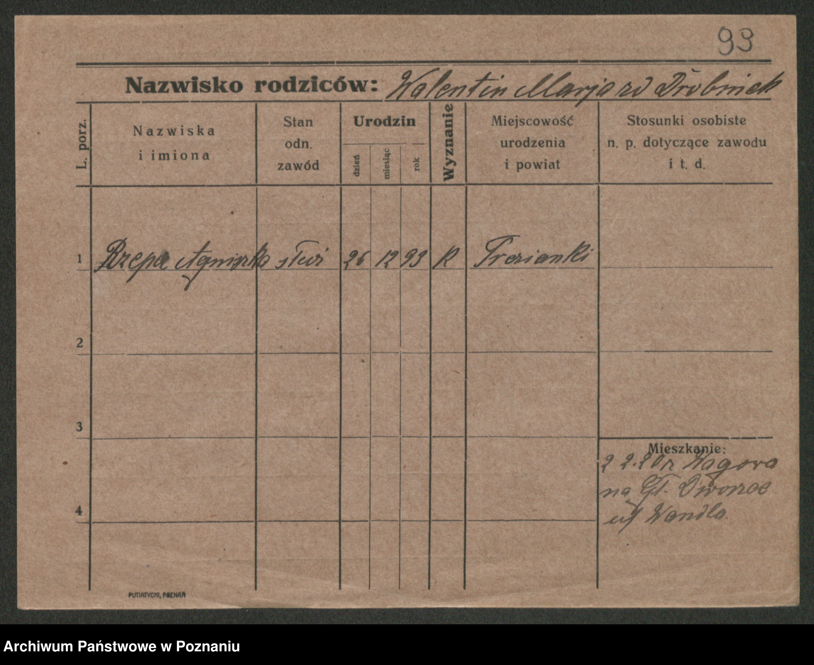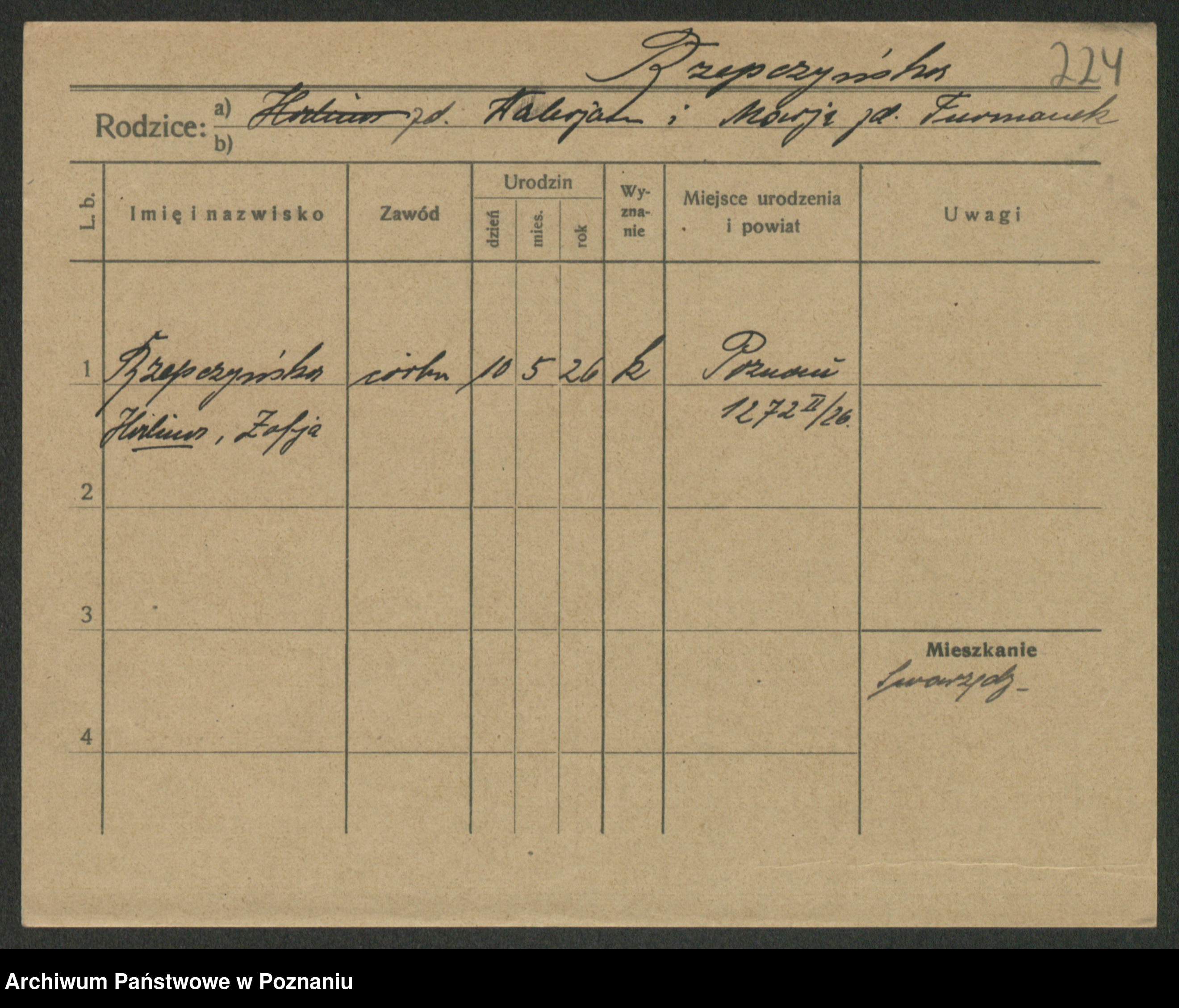 Podgląd karty osobowej dostępny jest po kliknięciu na nazwisko lub ikonkę karty. Można dokonywać powiększenia (ikony na górze) lub przechodzić między kolejnymi skanami (strzałki po bokach).